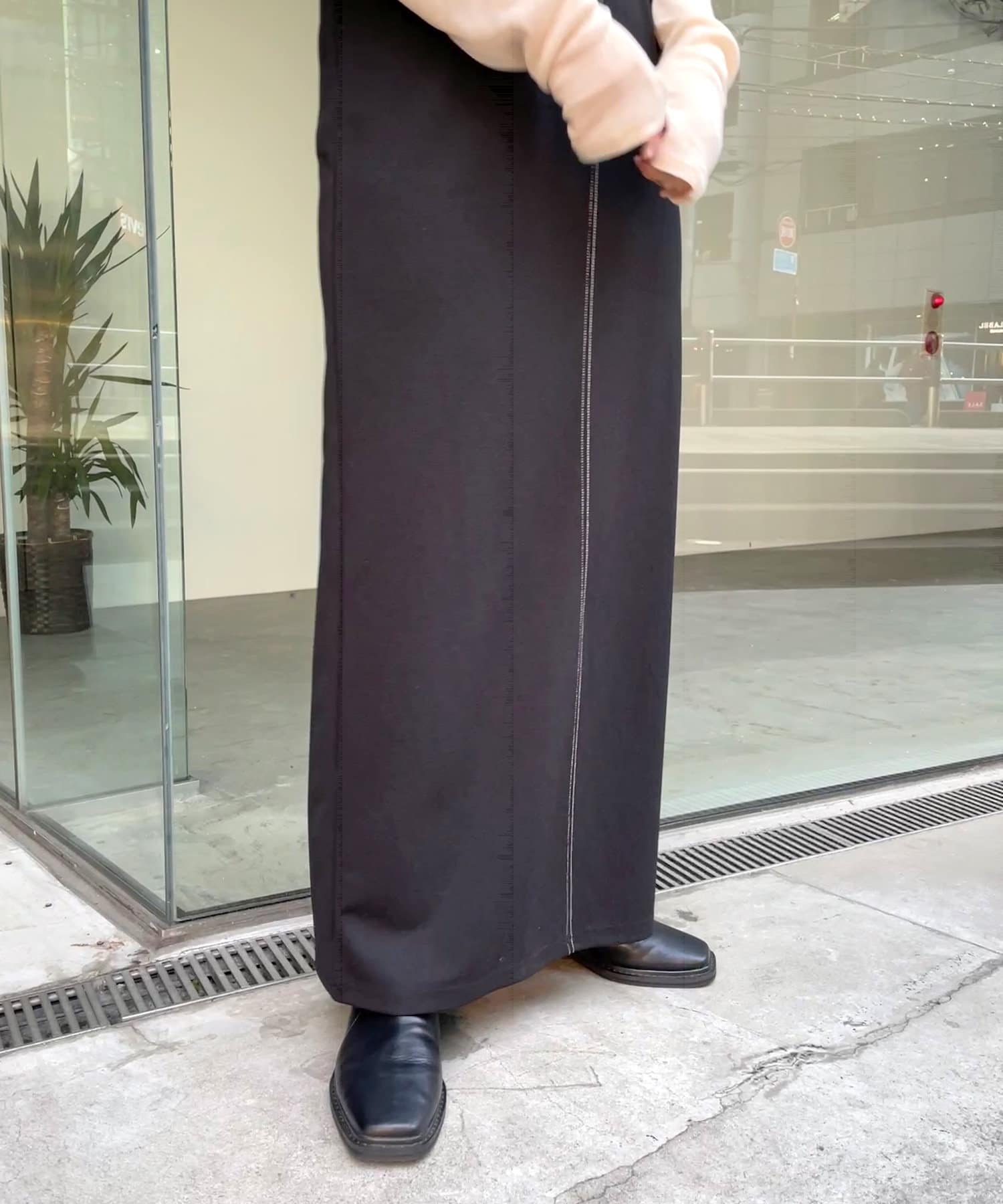 ・裾は後ろスリットで脚捌き良く、抜け感もでるデザイン。