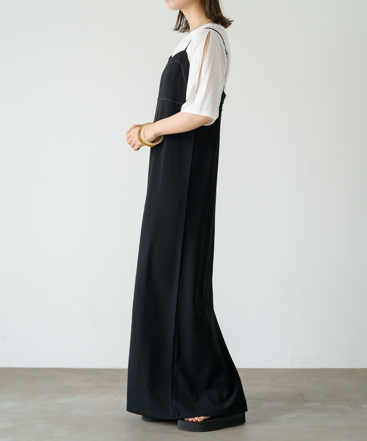 【カジュアルにもキレイめにも】ステッチキャミワンピース