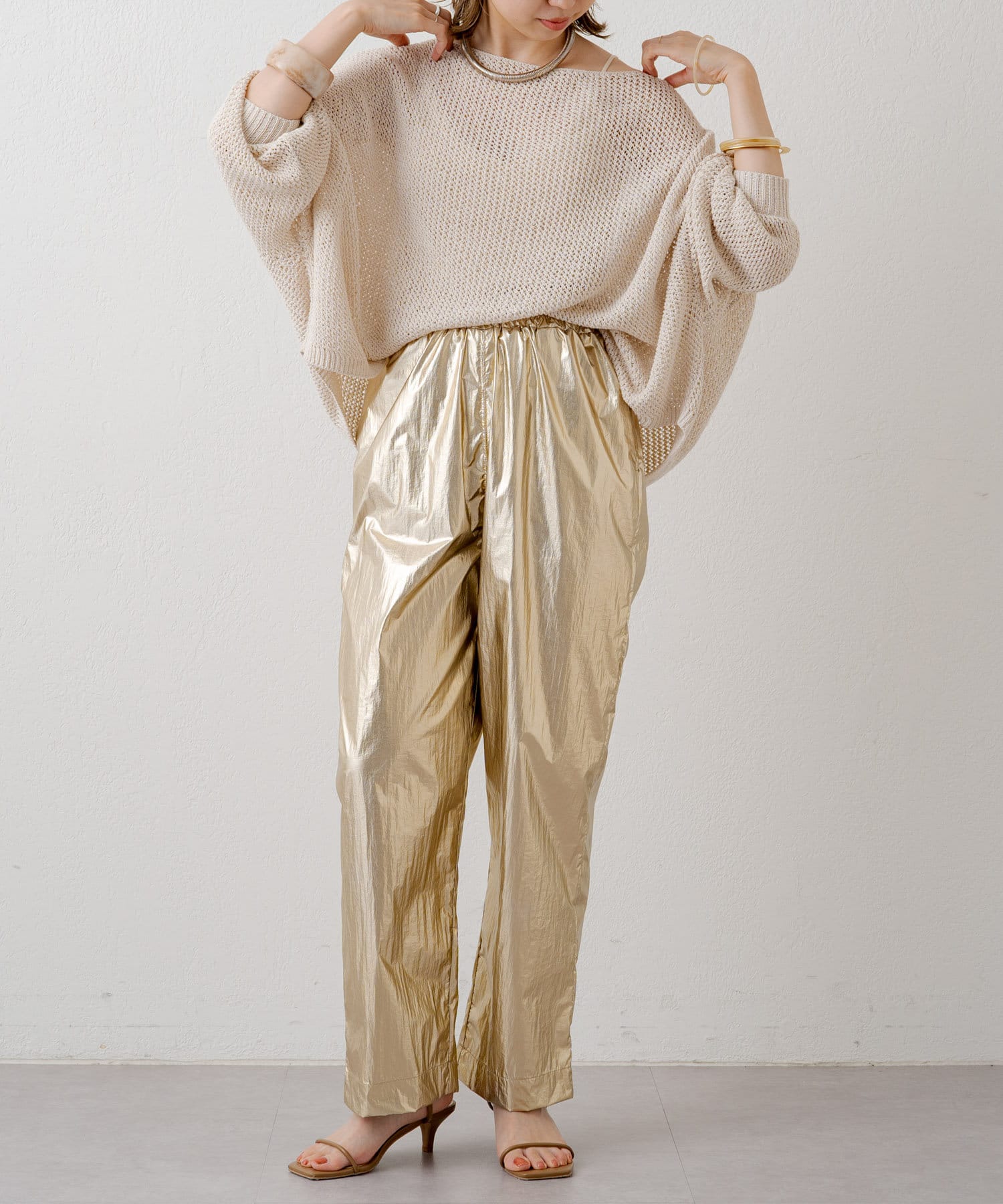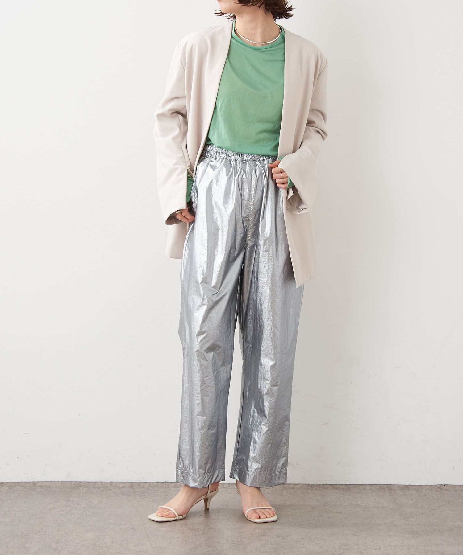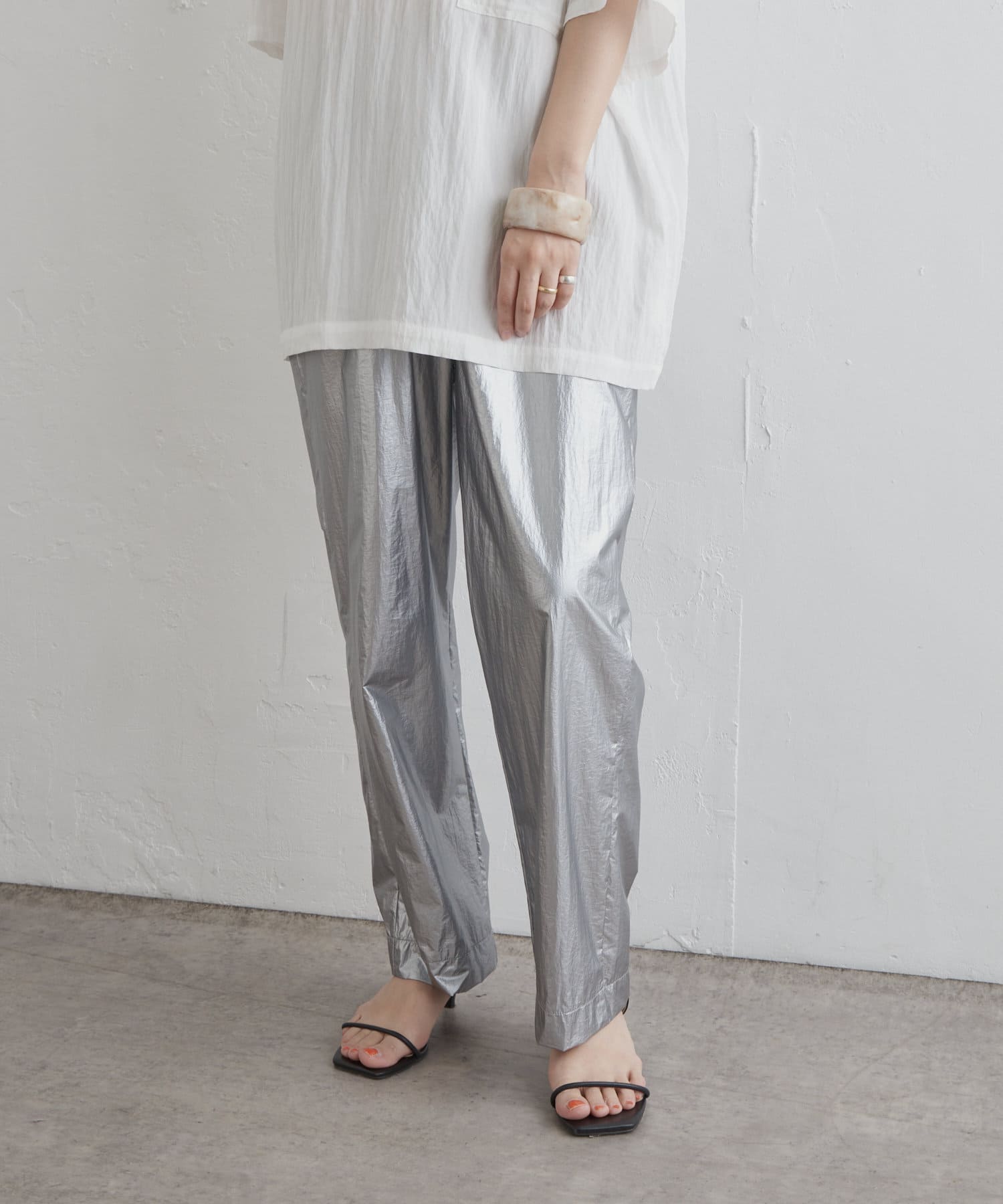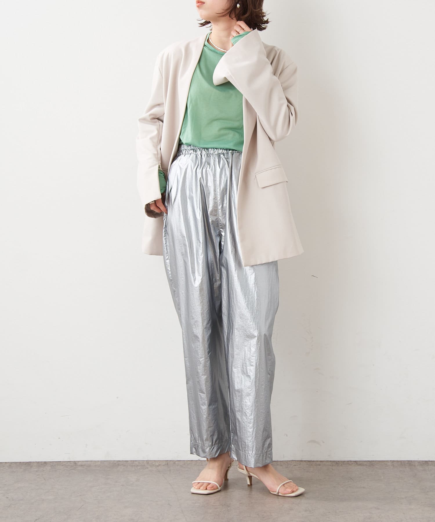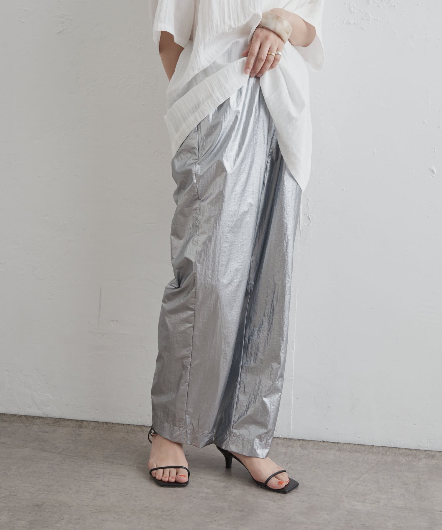 ・シャイニーな素材感が抜け感とカジュアルで大人な印象を与えてくれます。