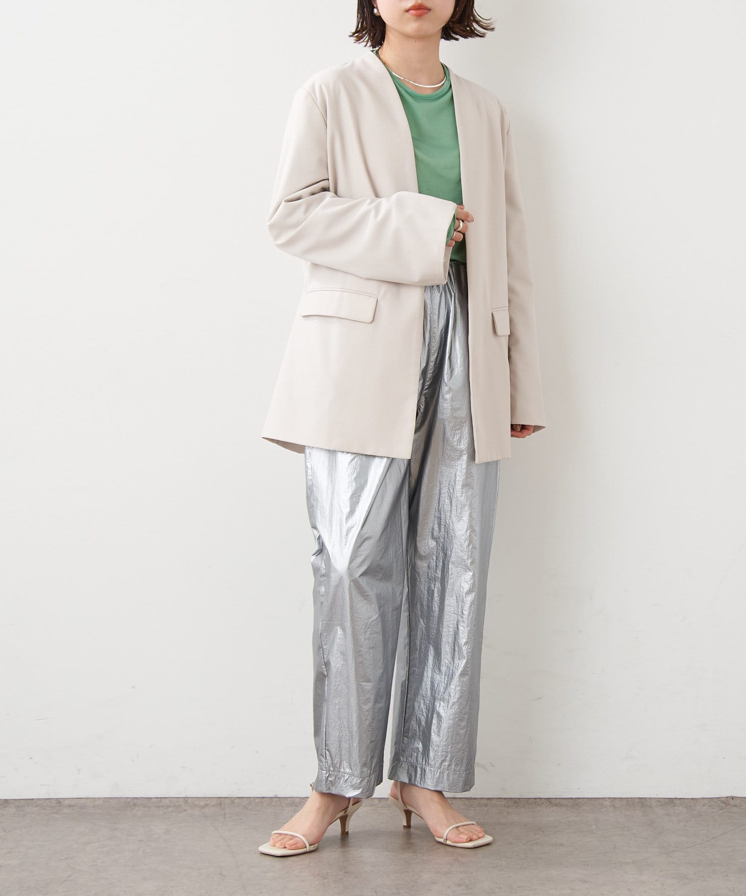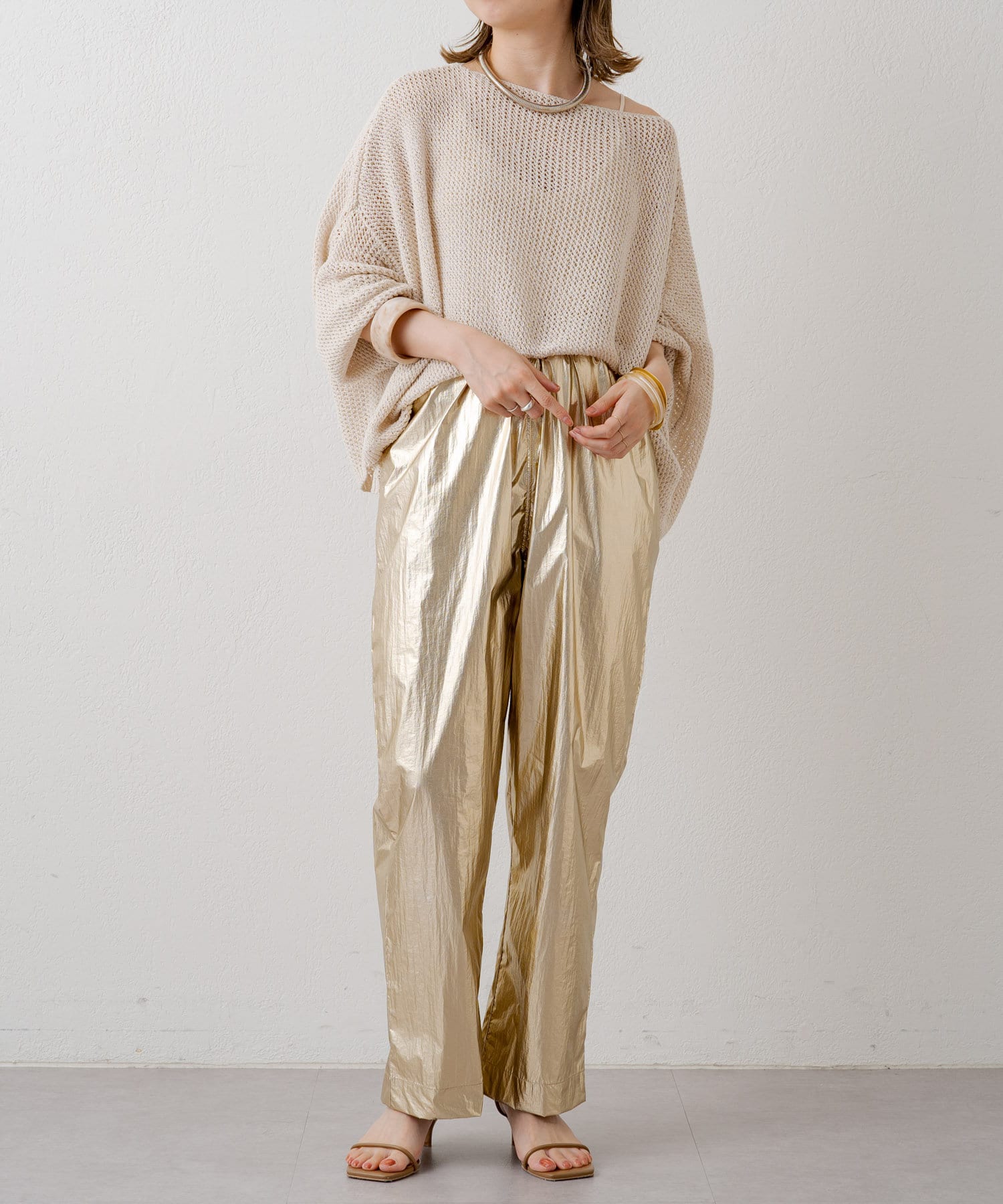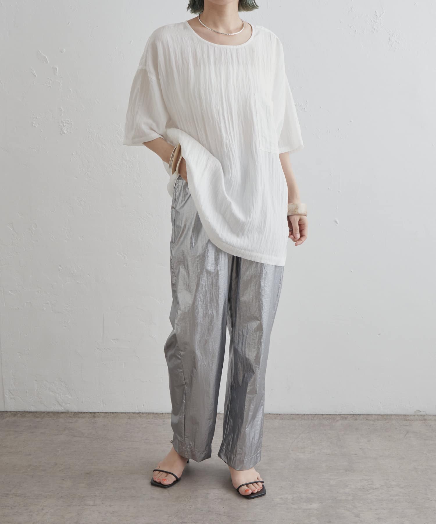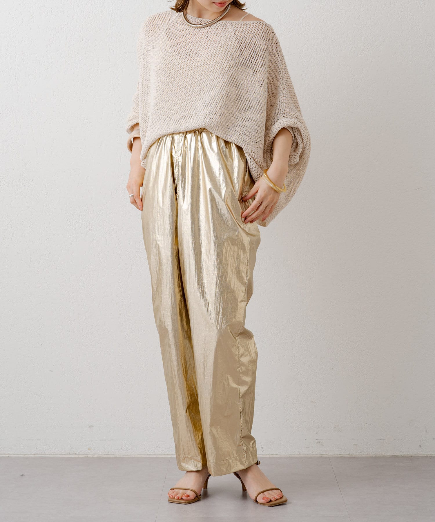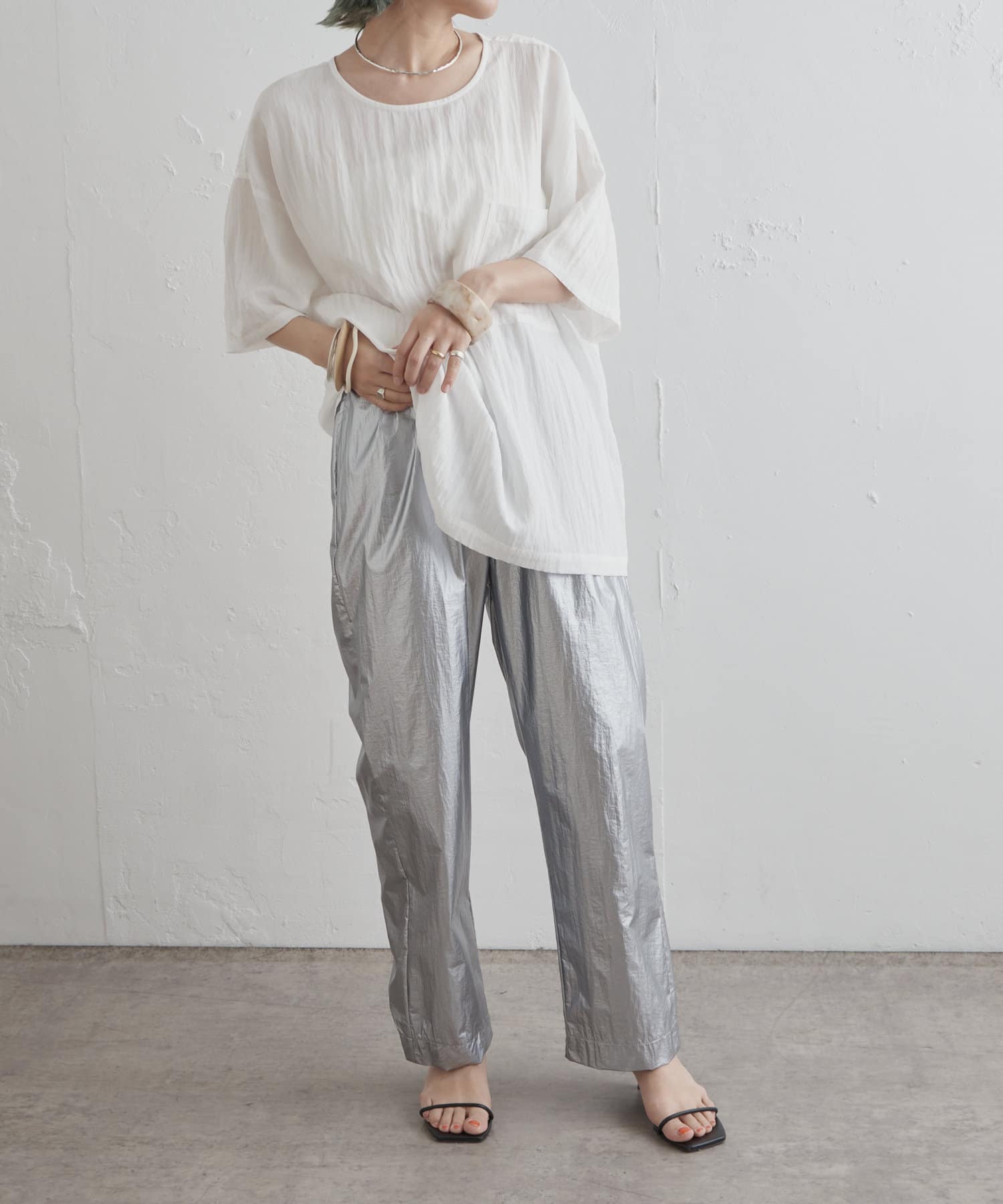 ・シャイニーな素材感が抜け感とカジュアルで大人な印象を与えてくれます。