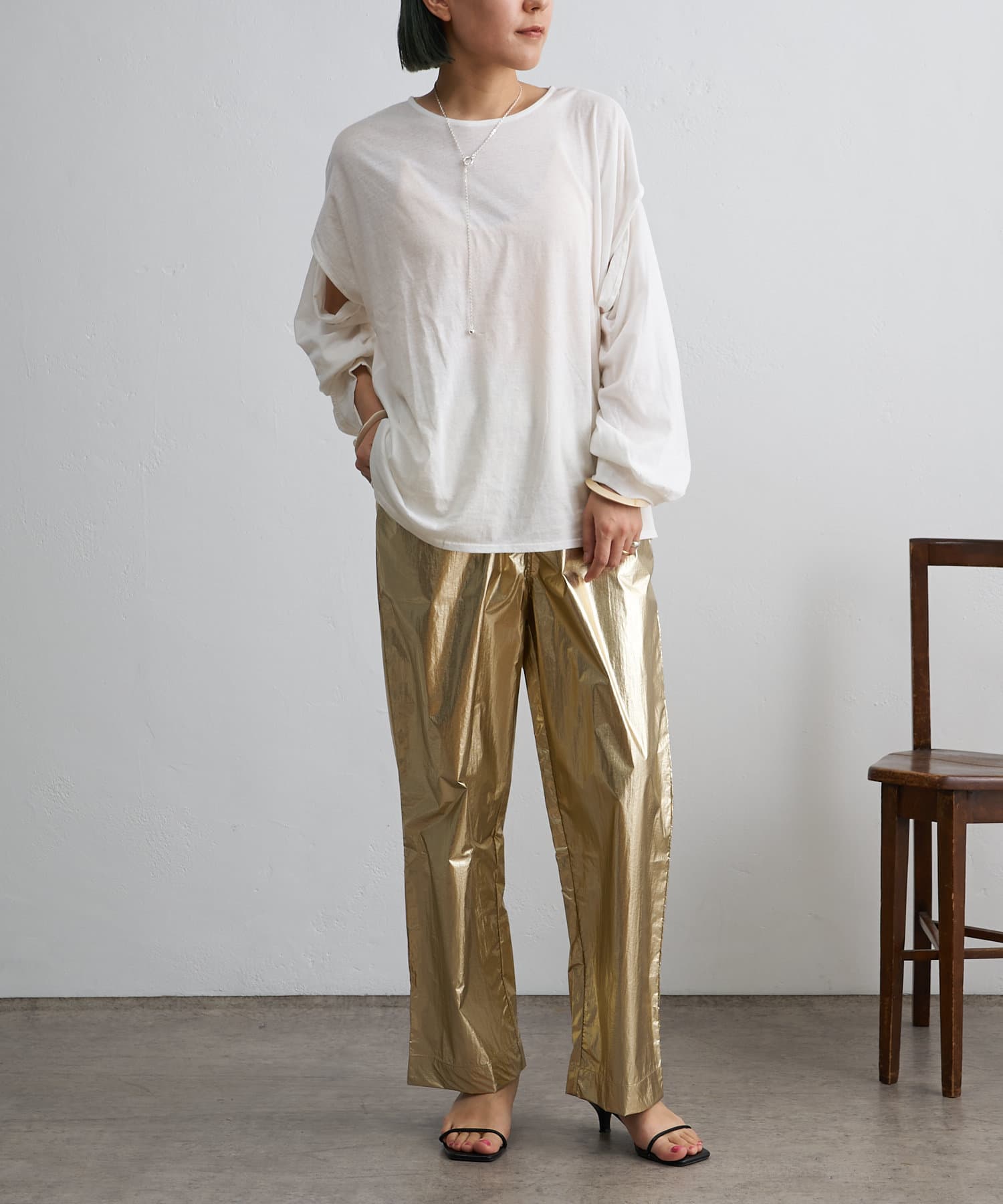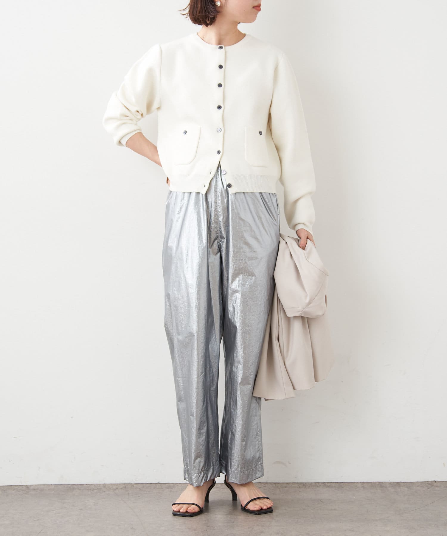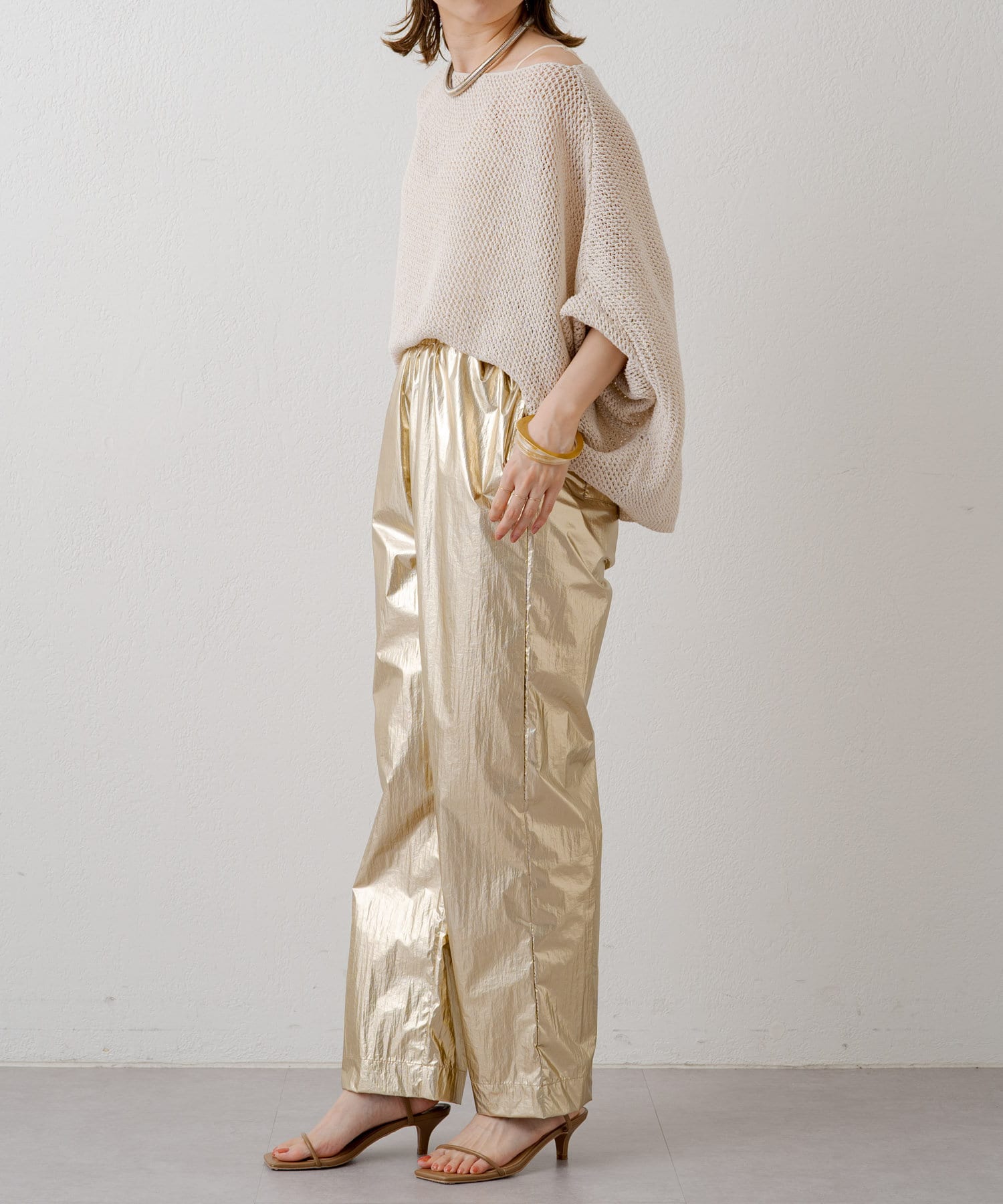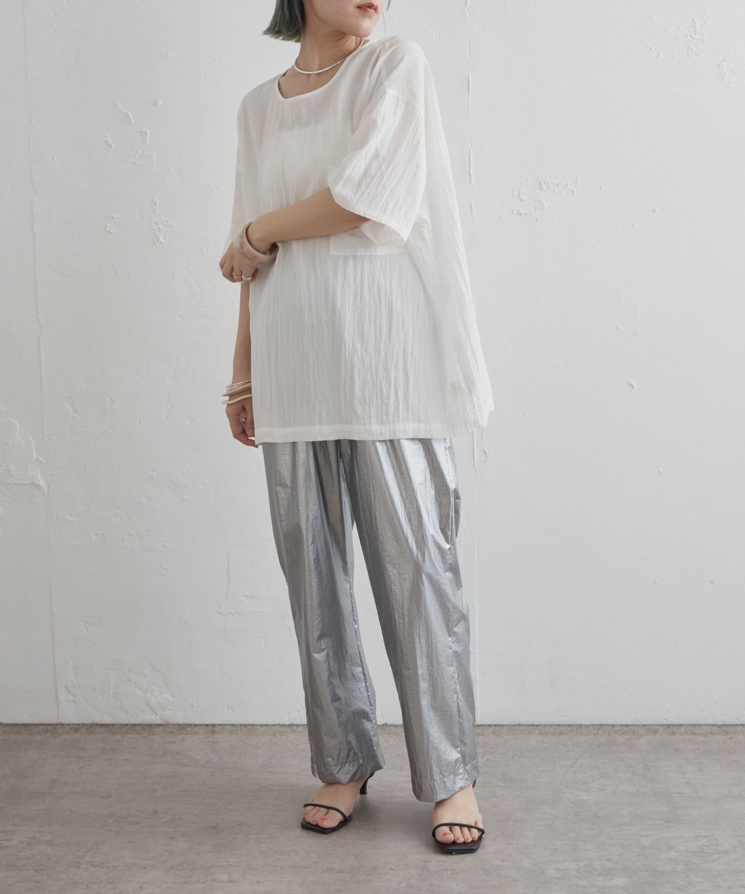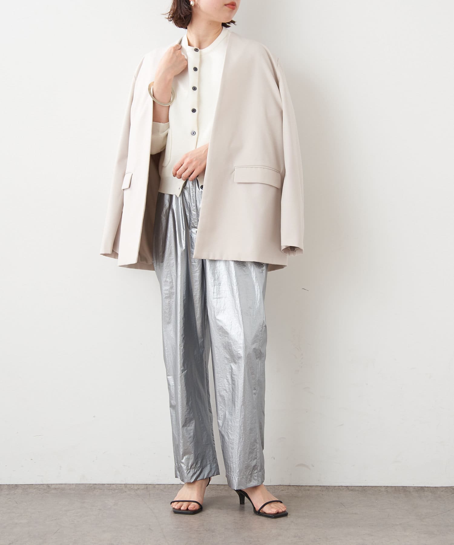 ・シャイニーな素材感が抜け感とカジュアルで大人な印象を与えてくれます。