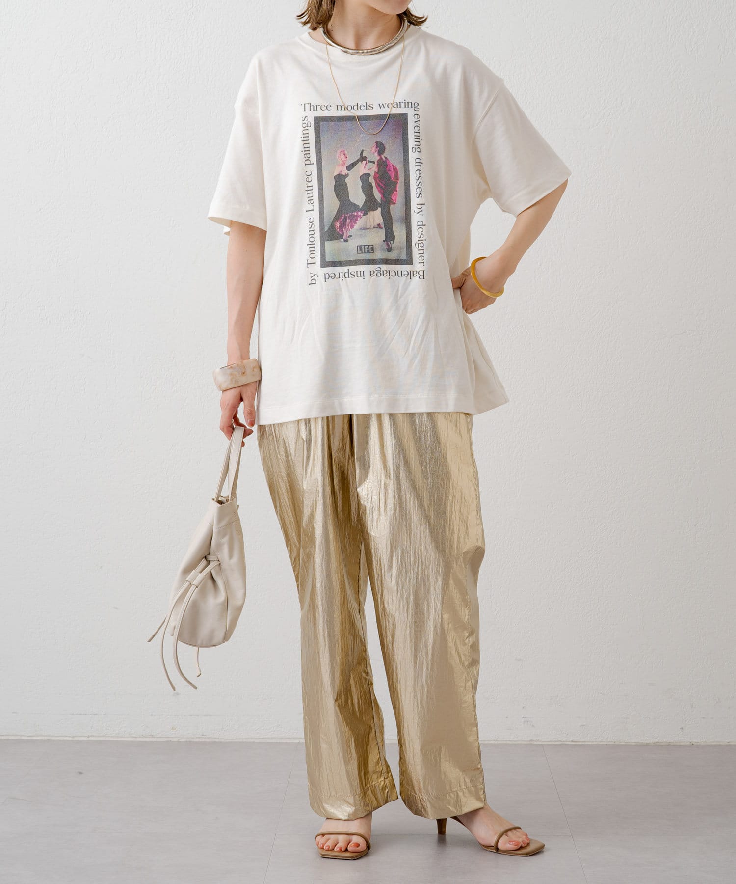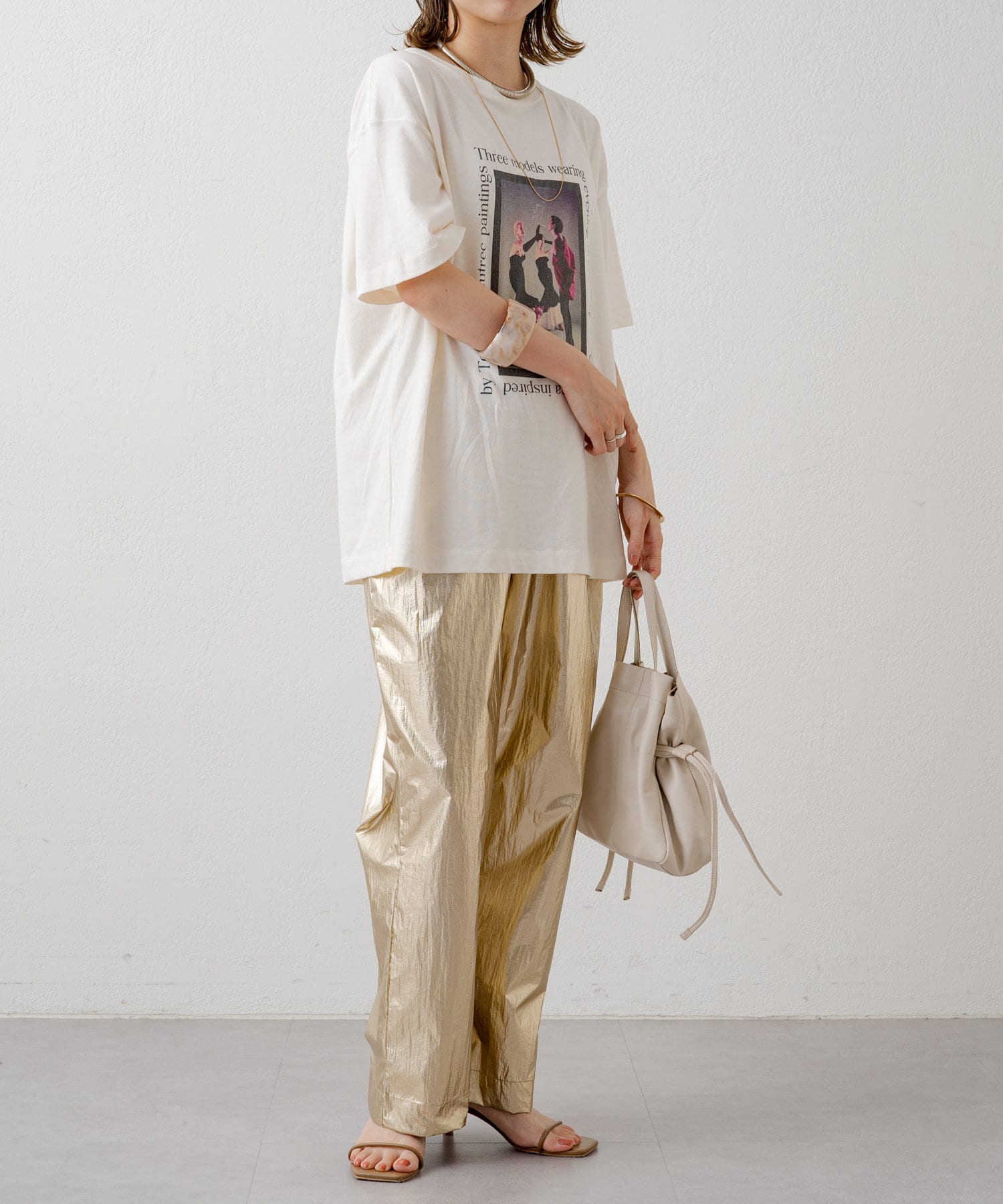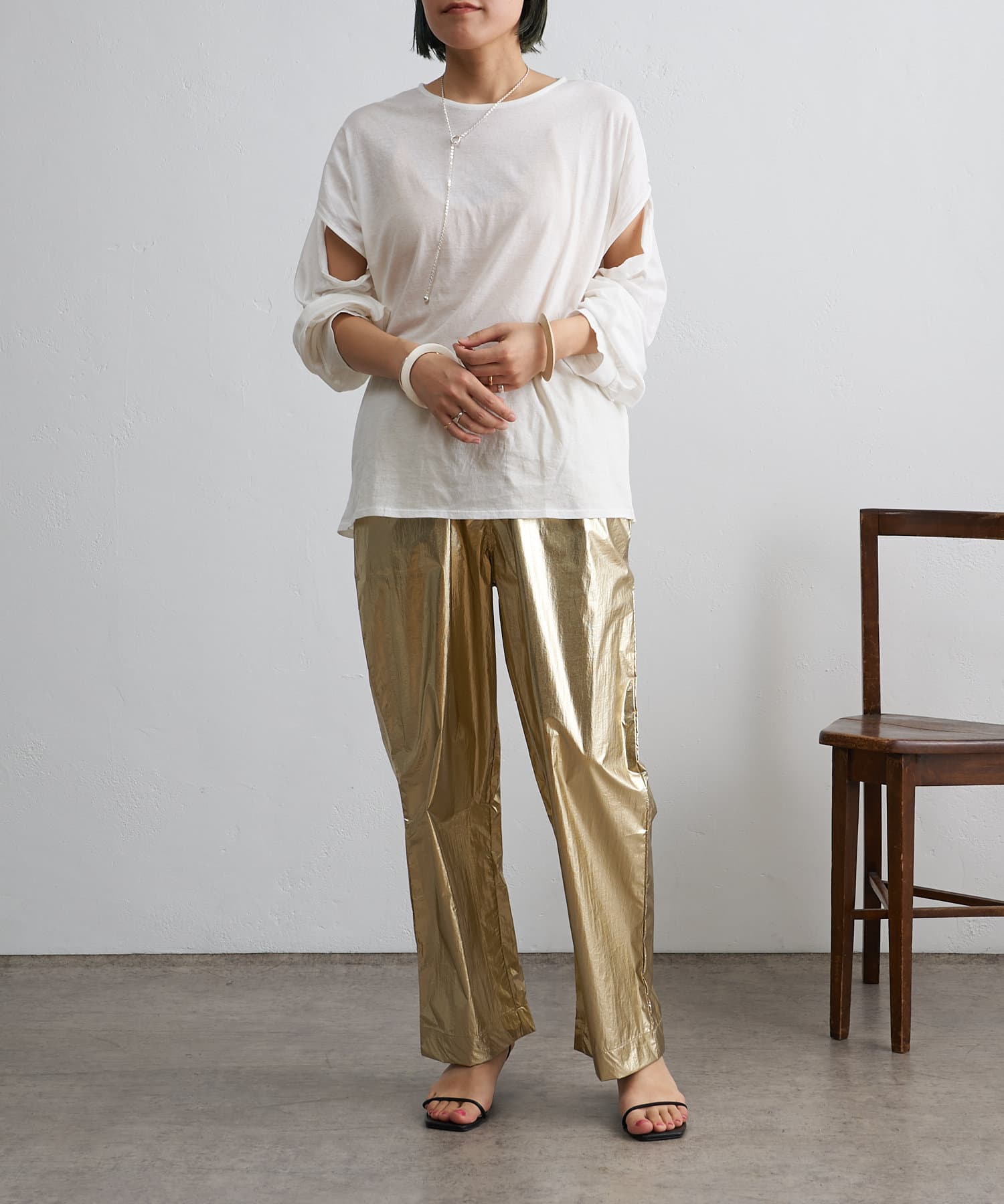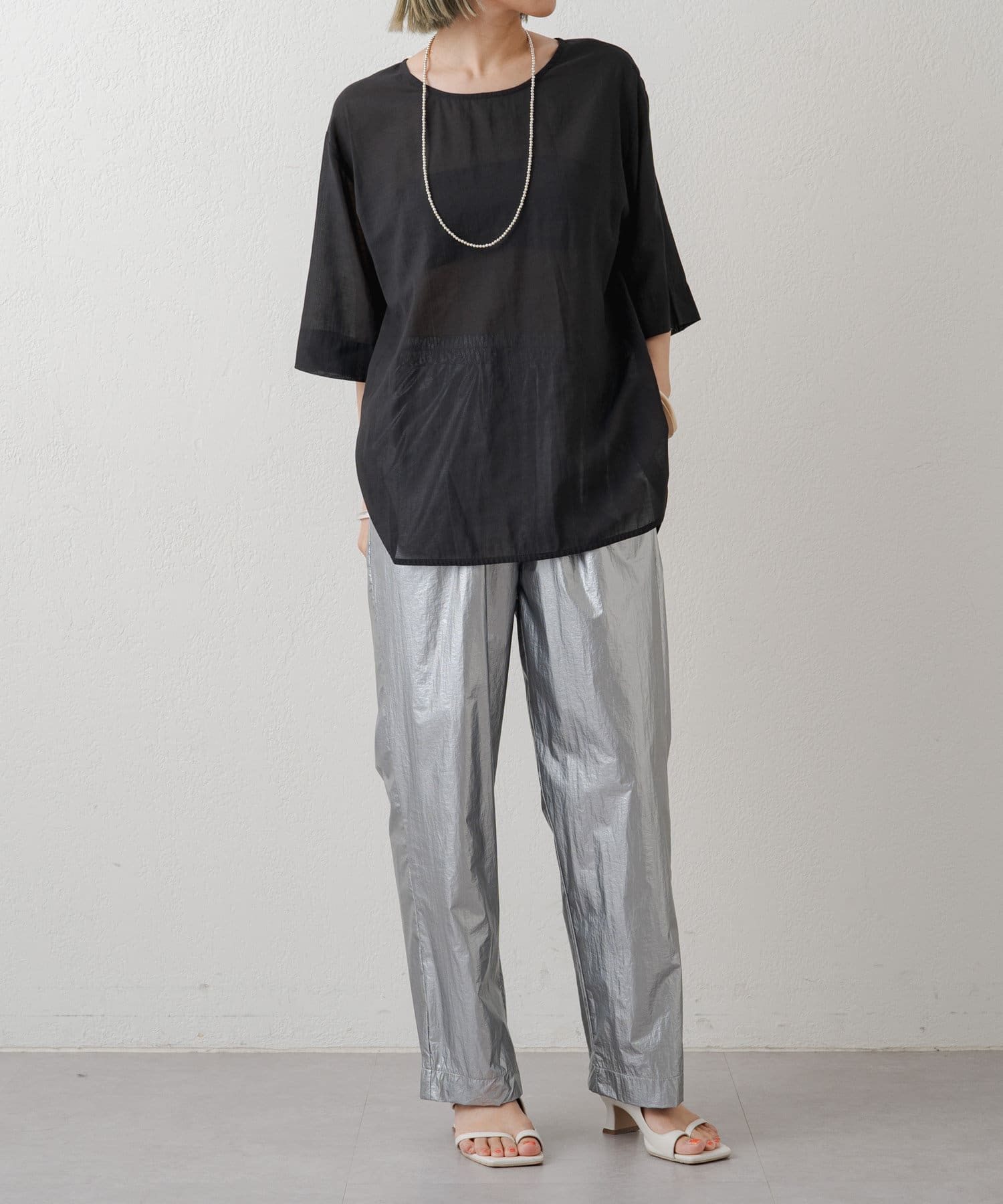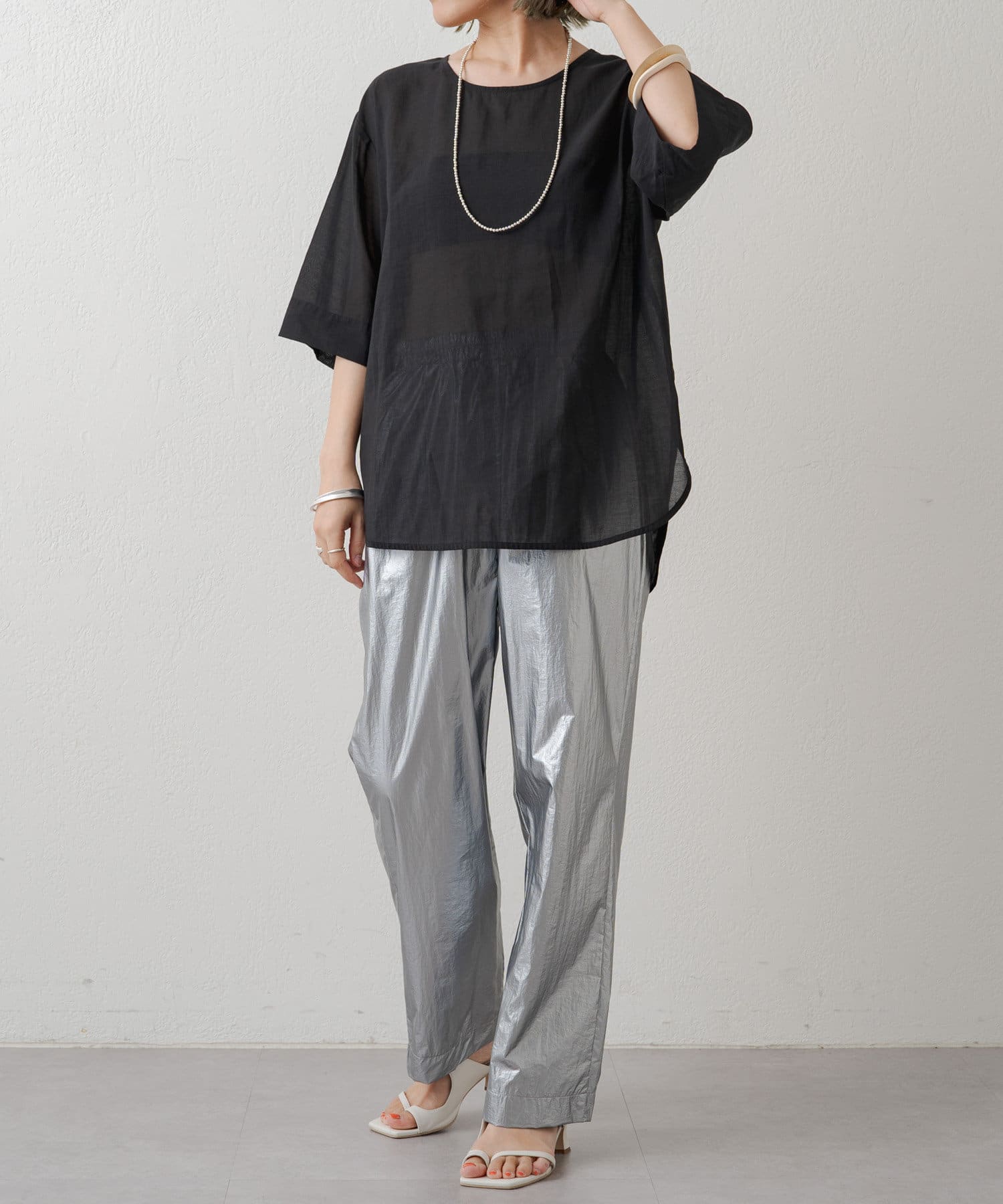 ・シャイニーな素材感が抜け感とカジュアルで大人な印象を与えてくれます。
