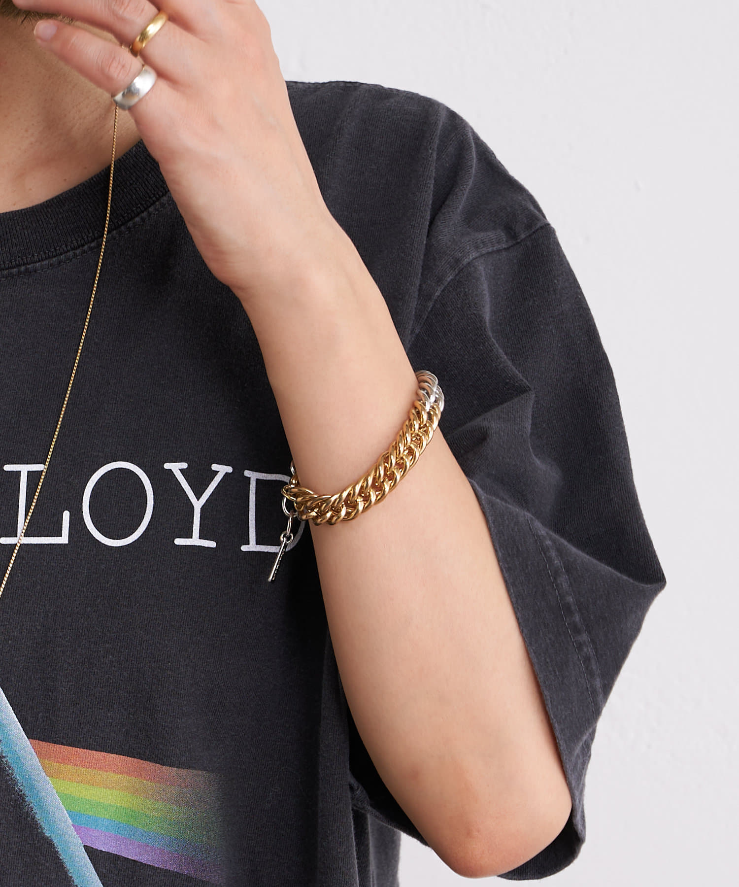 ・シルバーとゴールドの2トーンデザインで、単品ではもちろんお手持ちのブレスレットとの重ね付けも◎