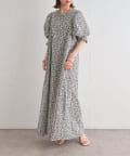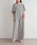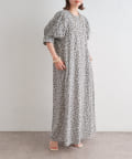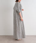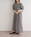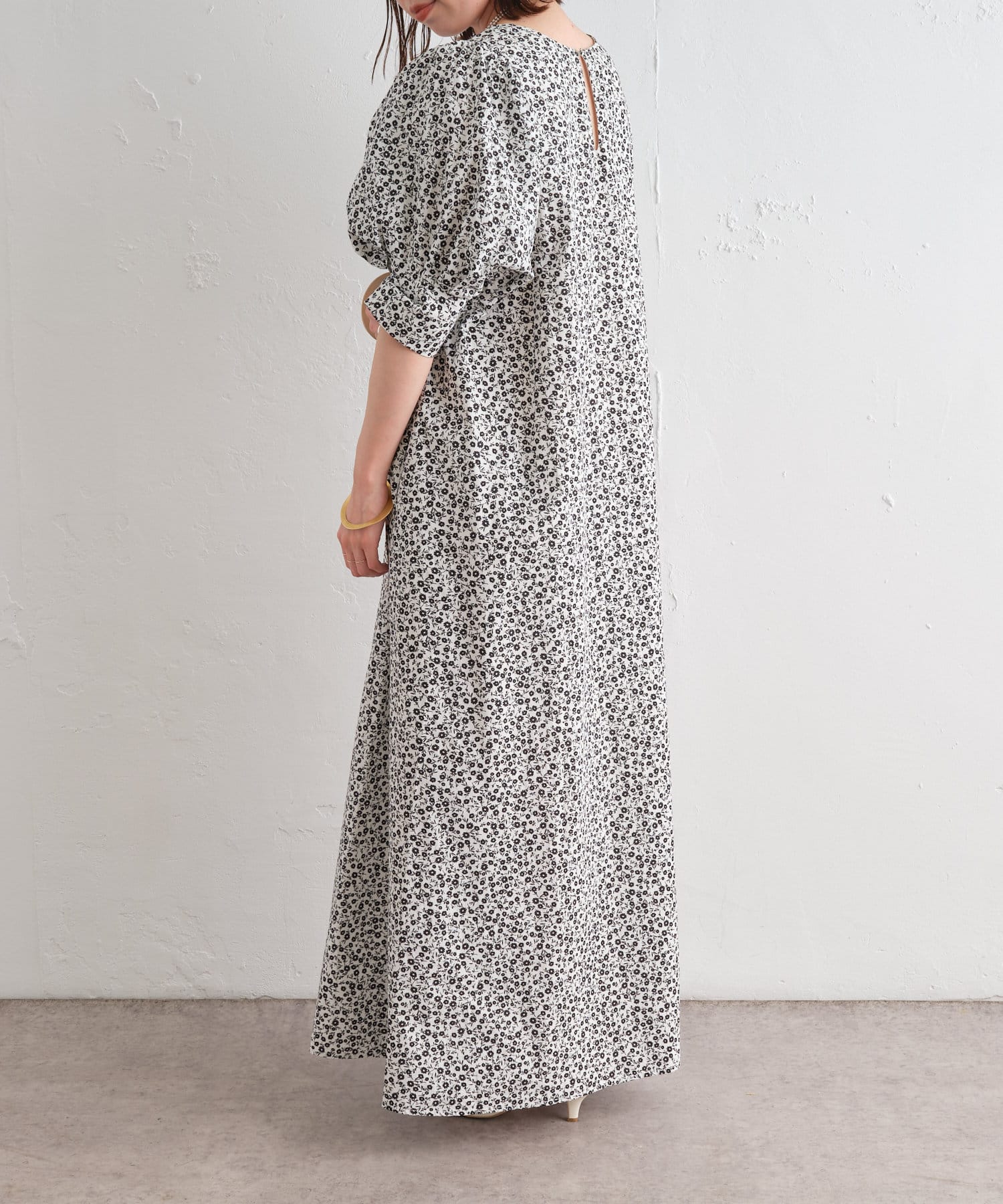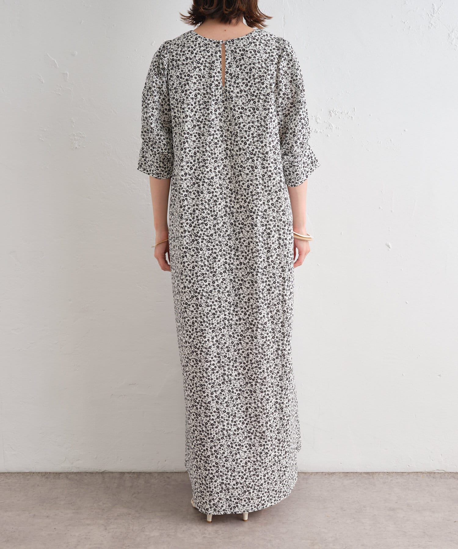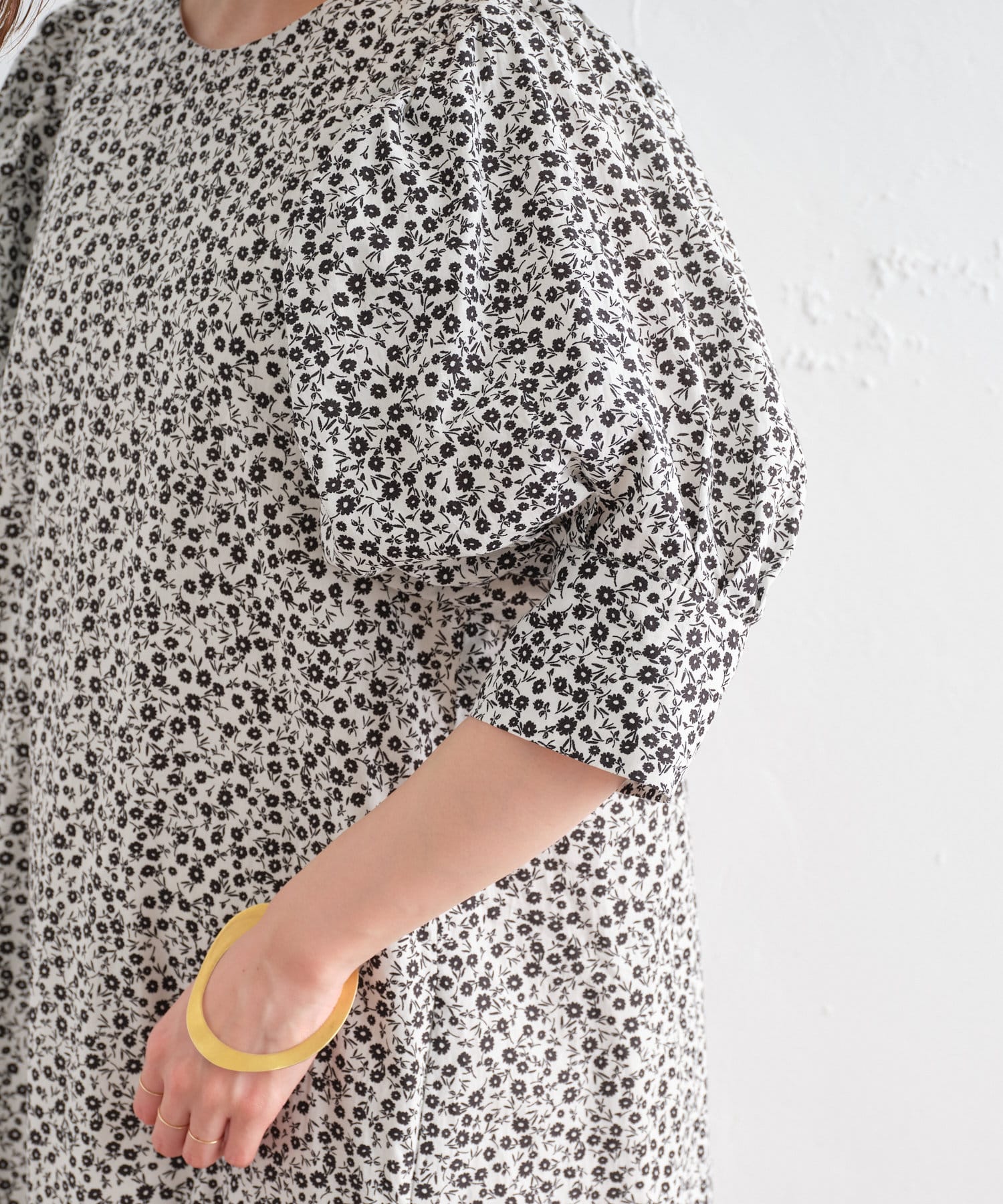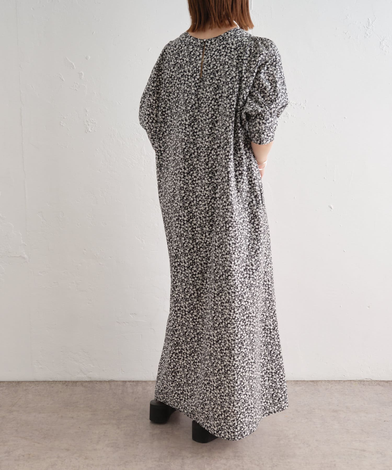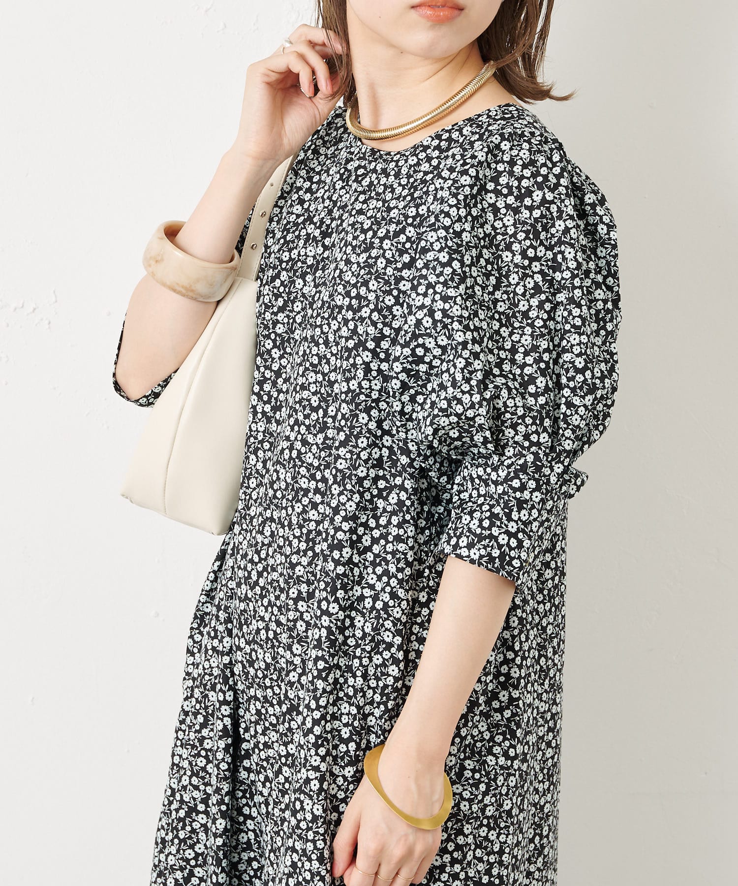 【モノトーンの花柄が大人な印象で着れる】小花ビッグスリーブワンピース