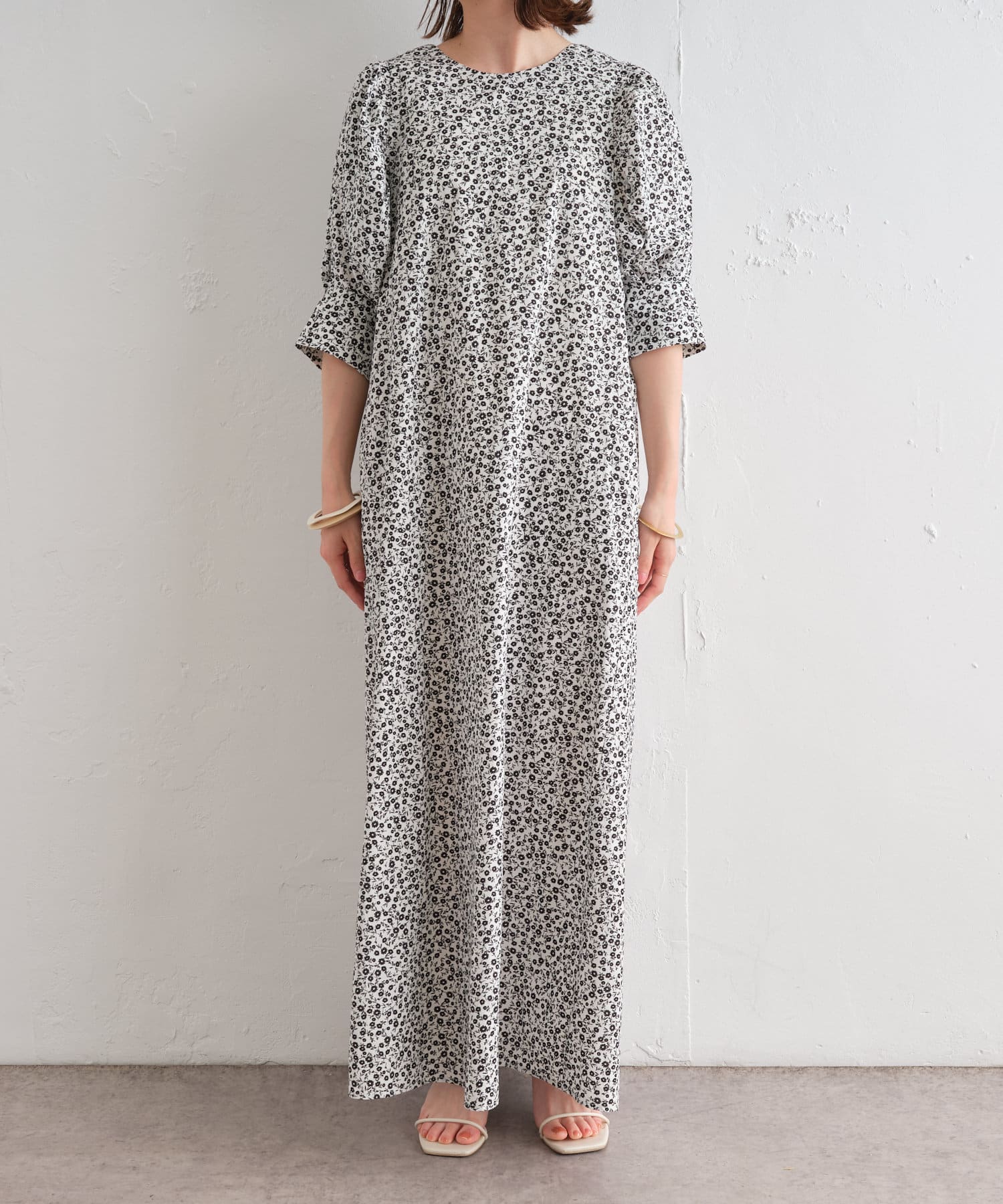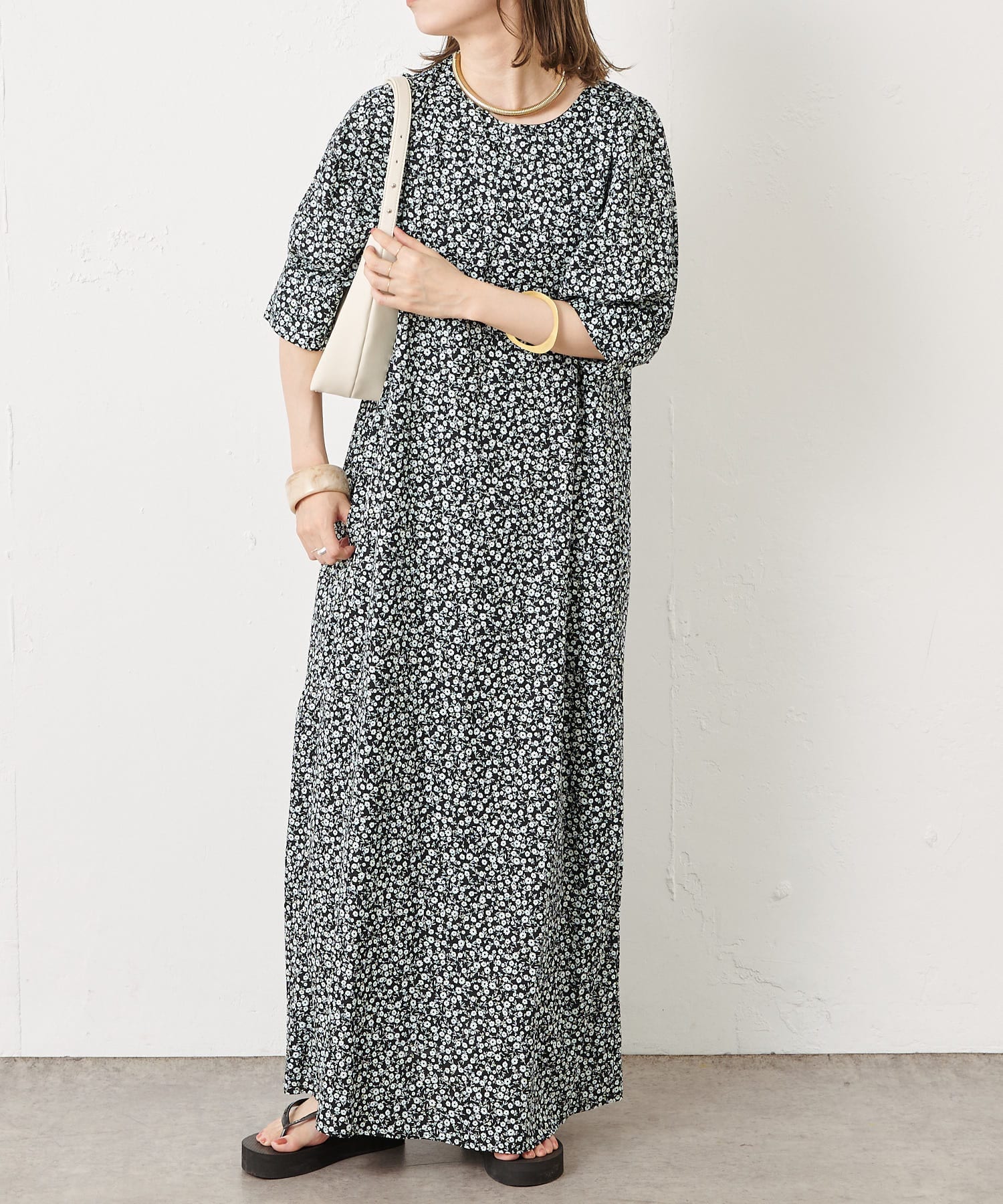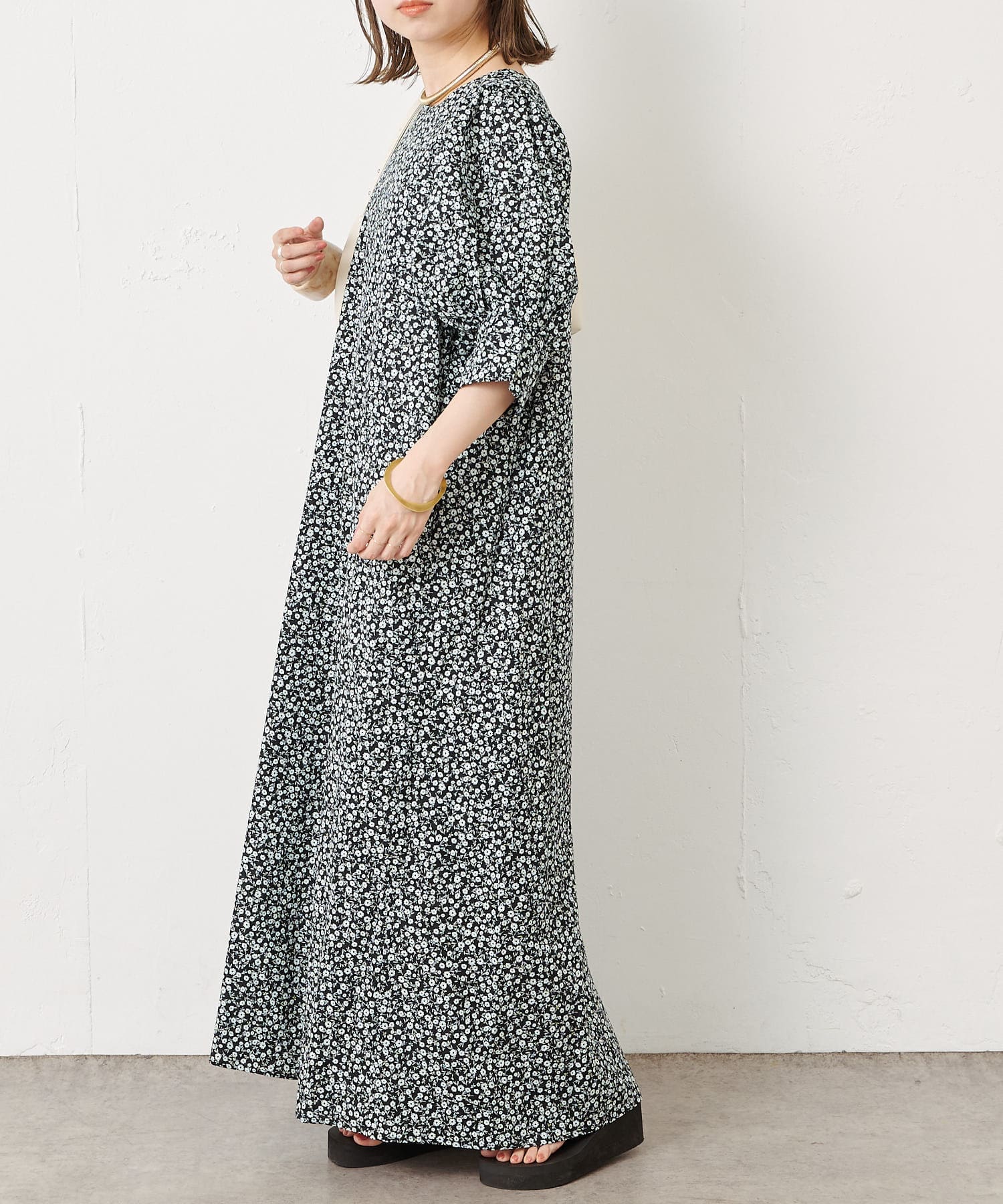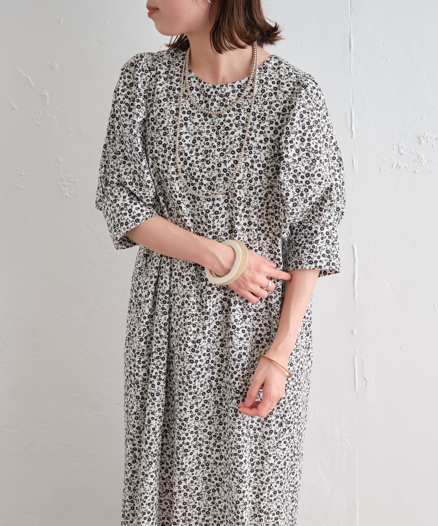 大人な小花柄がコーディネートの主役になるビッグスリーブワンピース