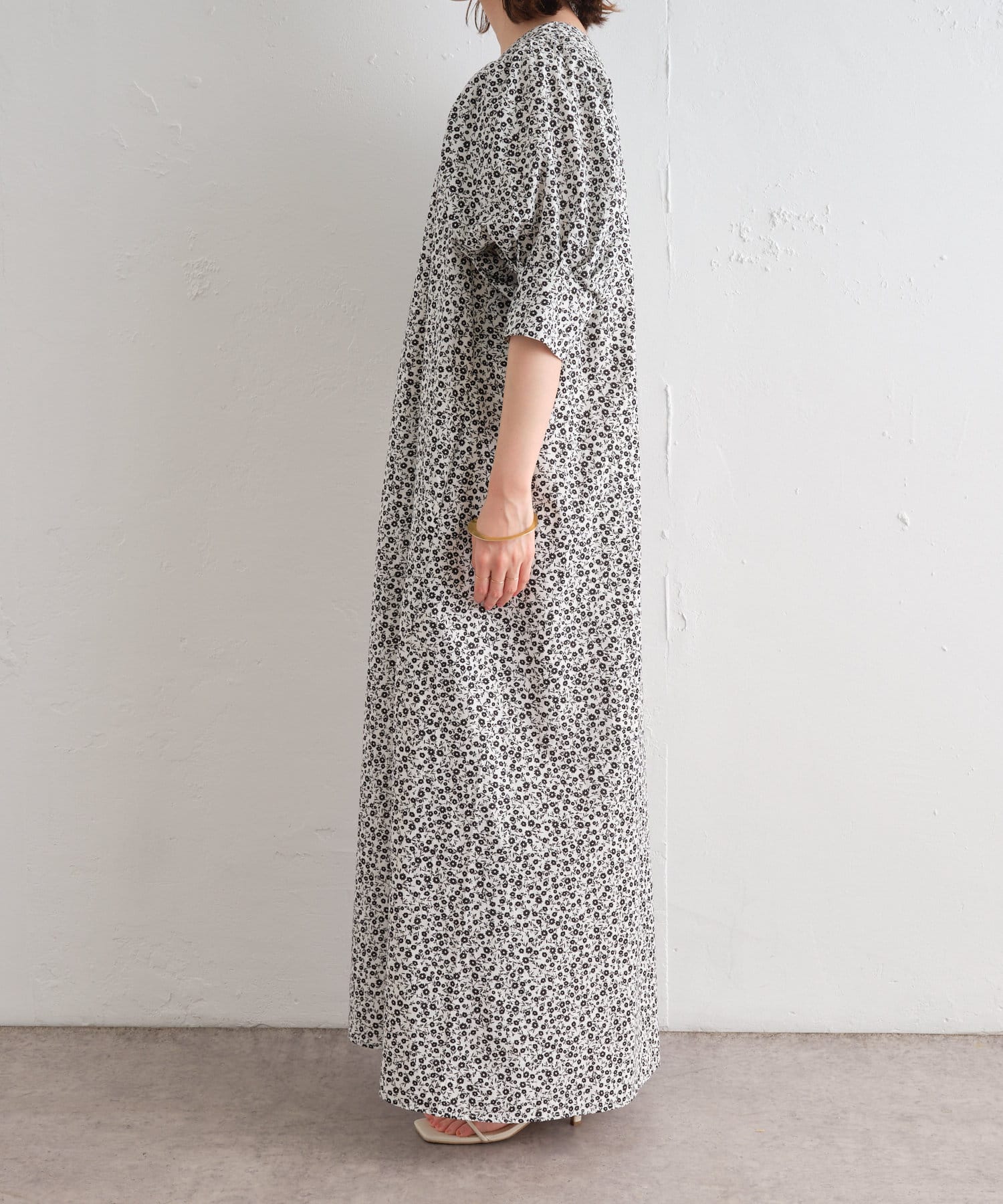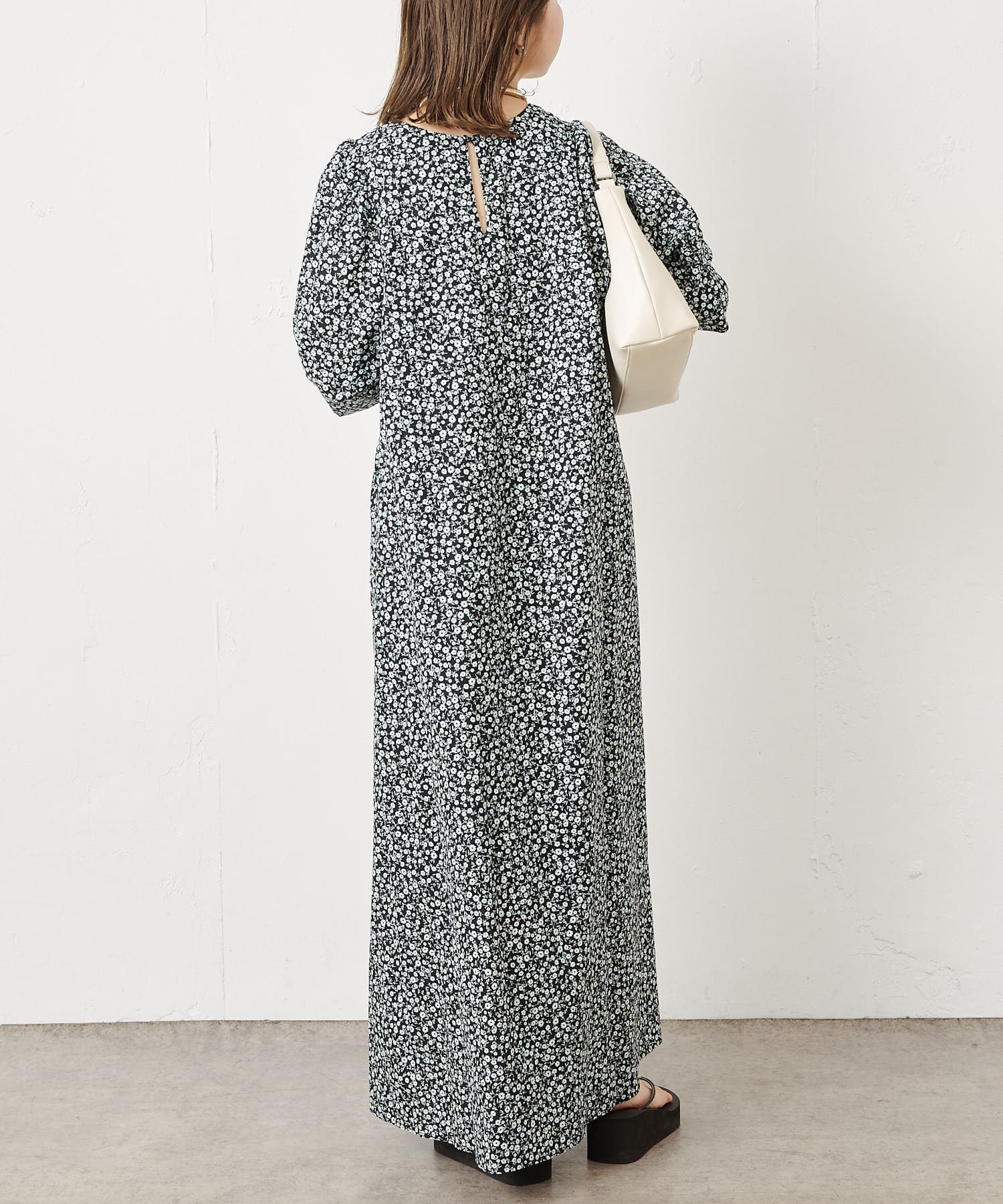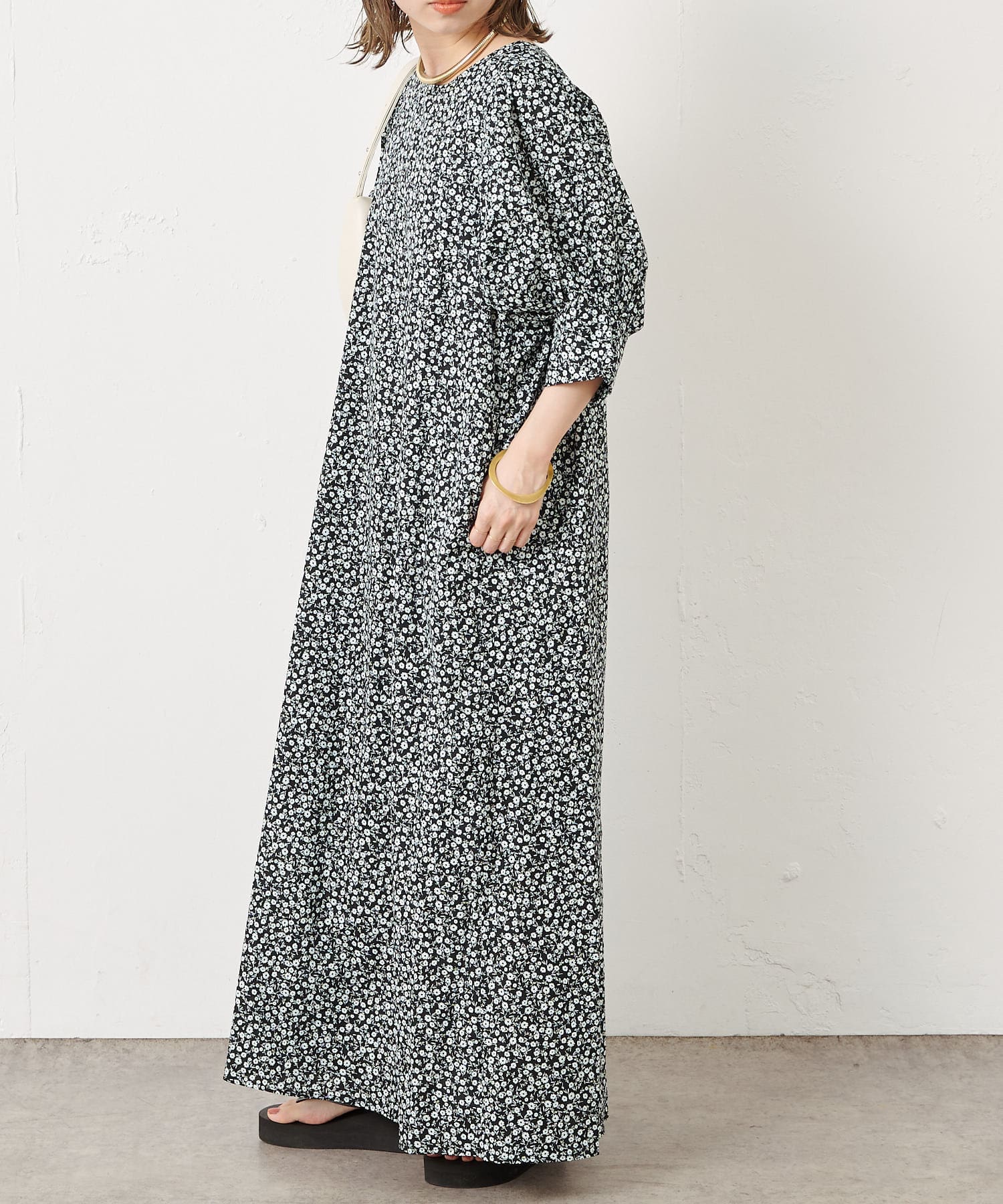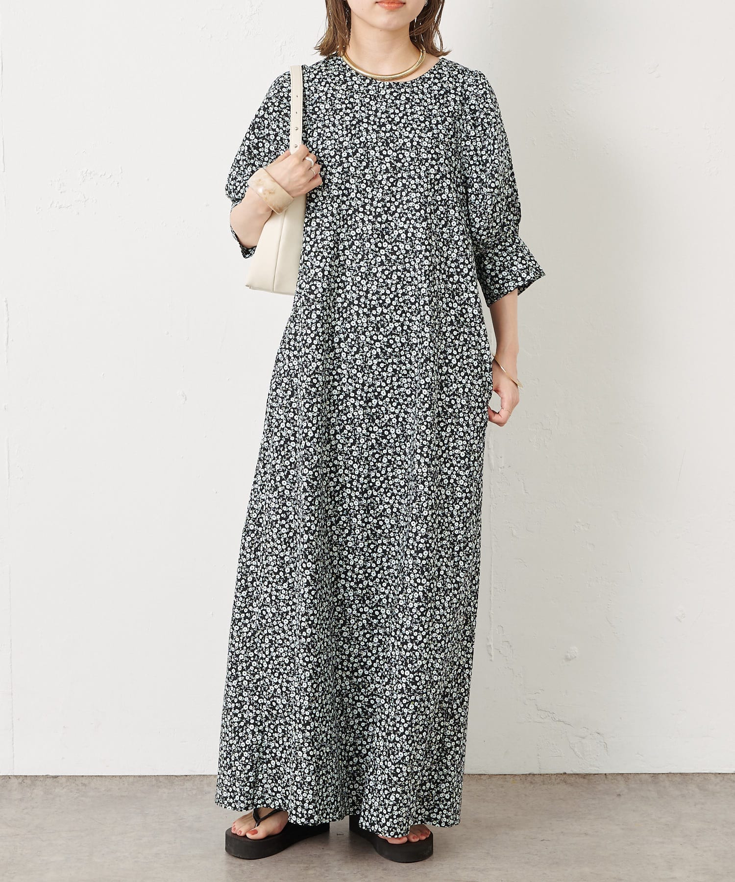 大人な小花柄がコーディネートの主役になるビッグスリーブワンピース