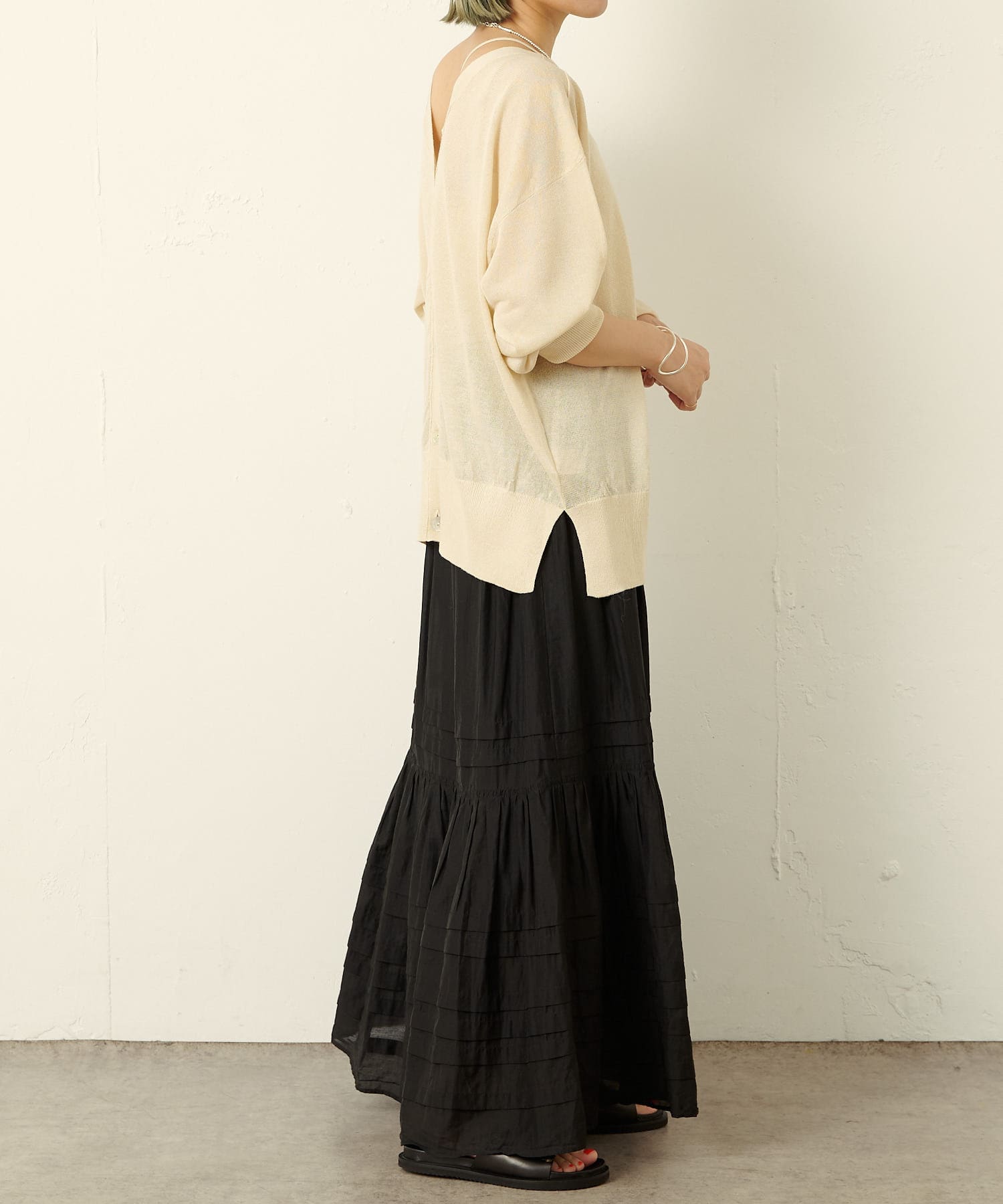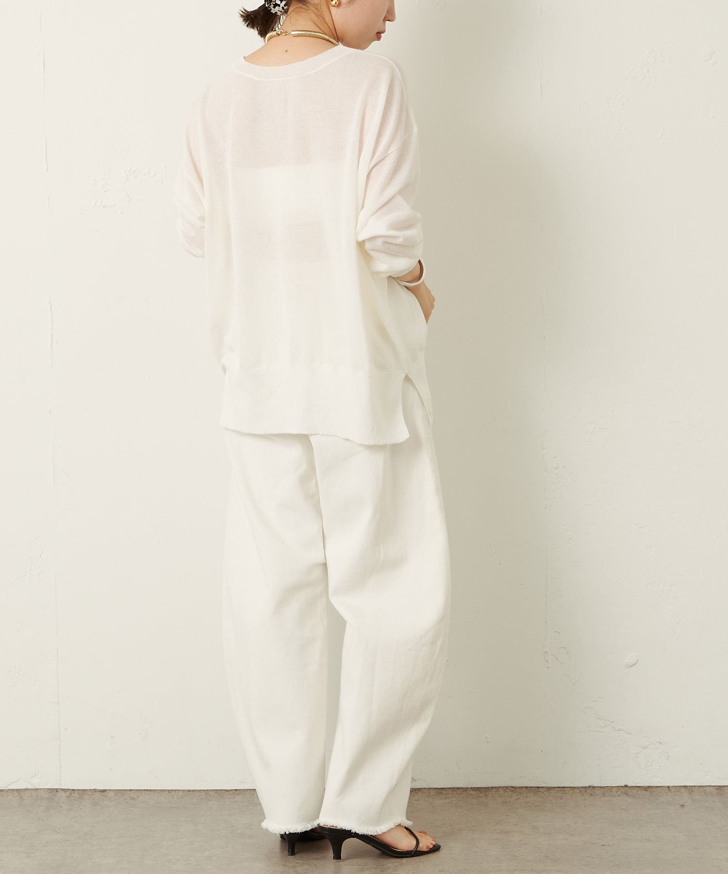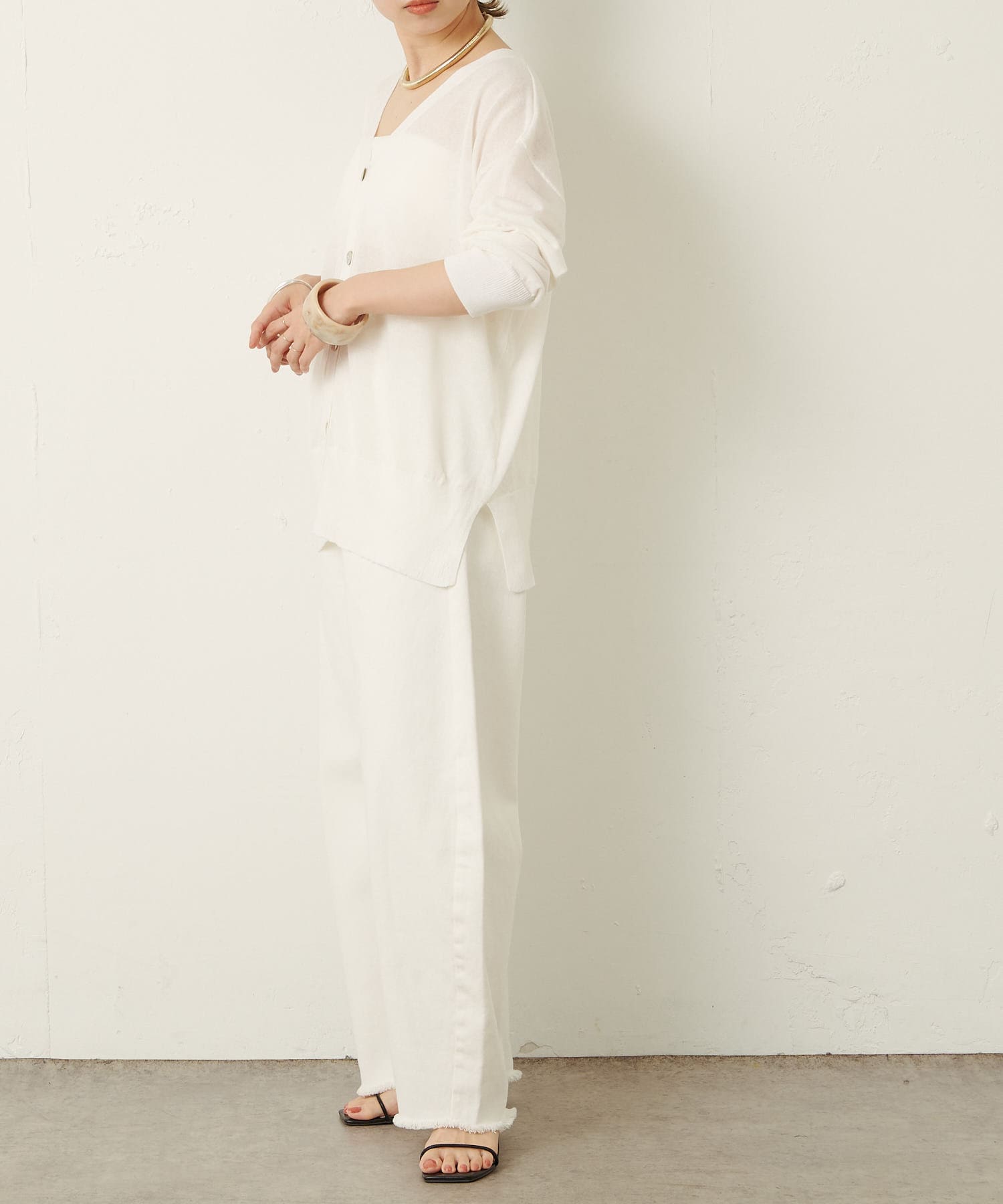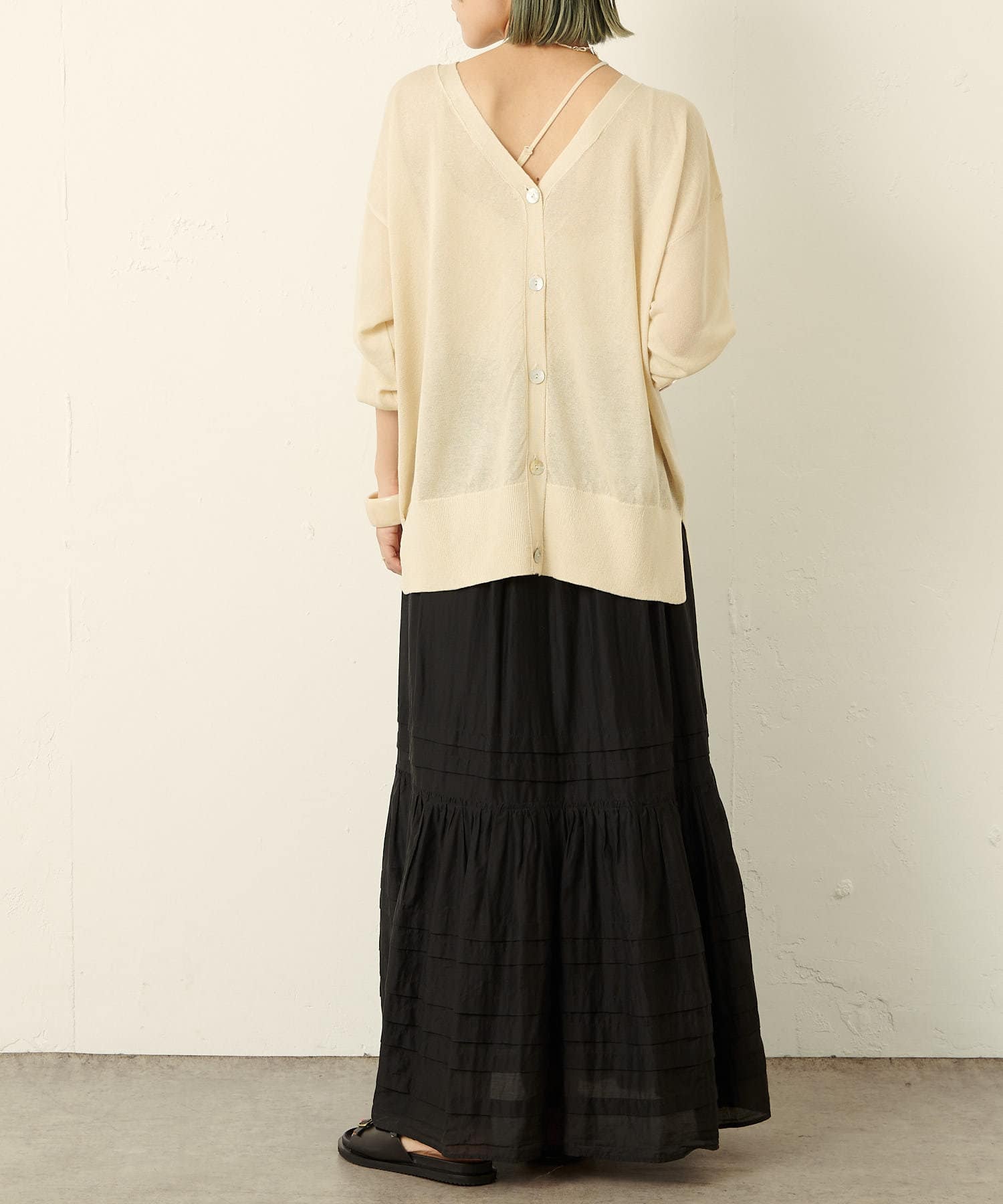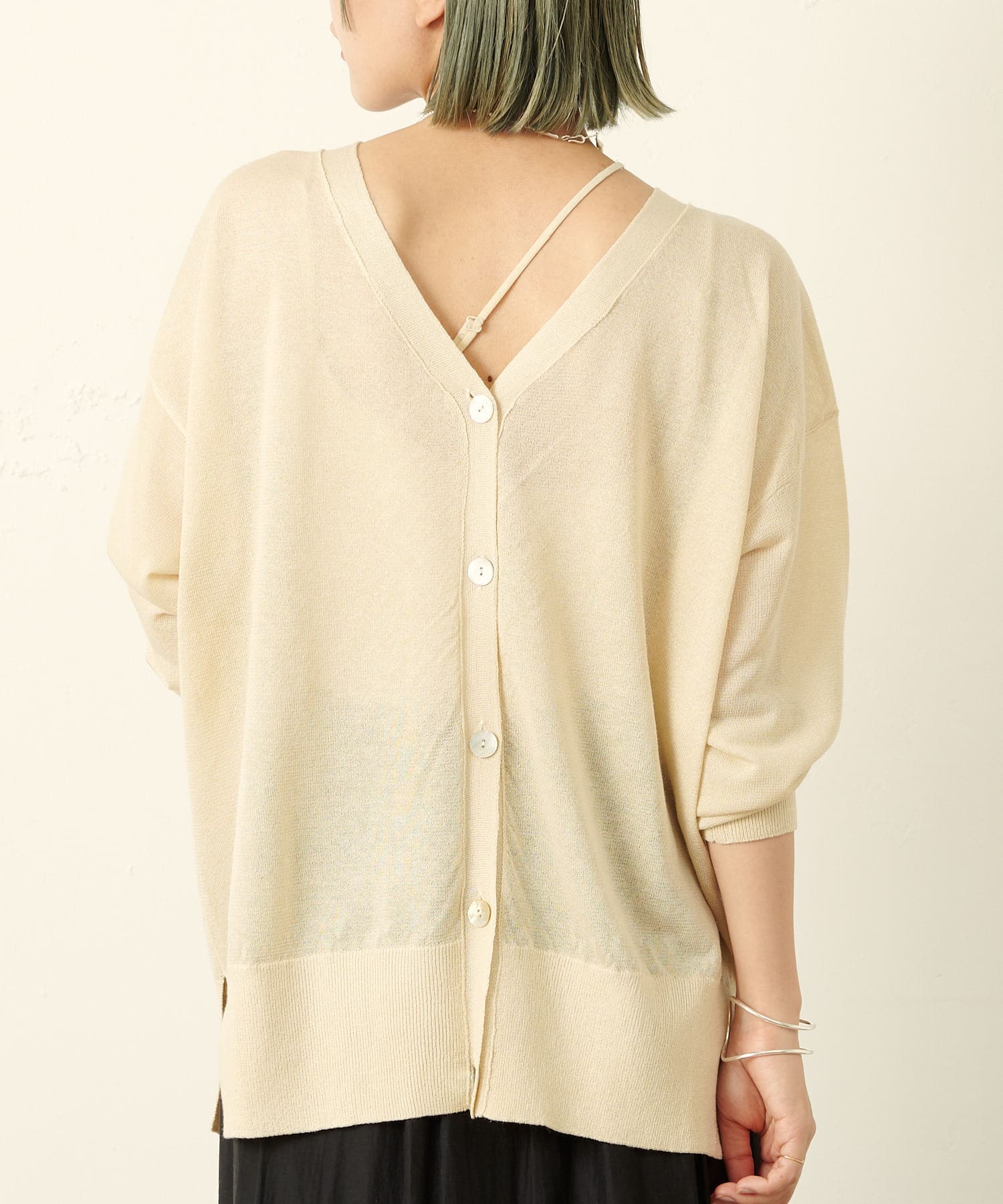 ・カーディガンとしてはもちろん、前後両前で2WAYで着用できるので、サマーニットとしても着用いただけます。