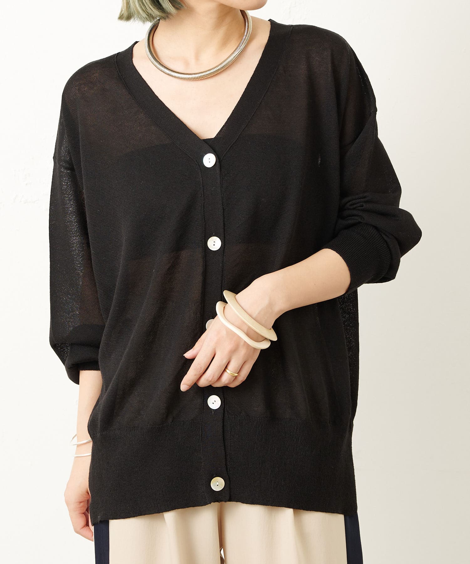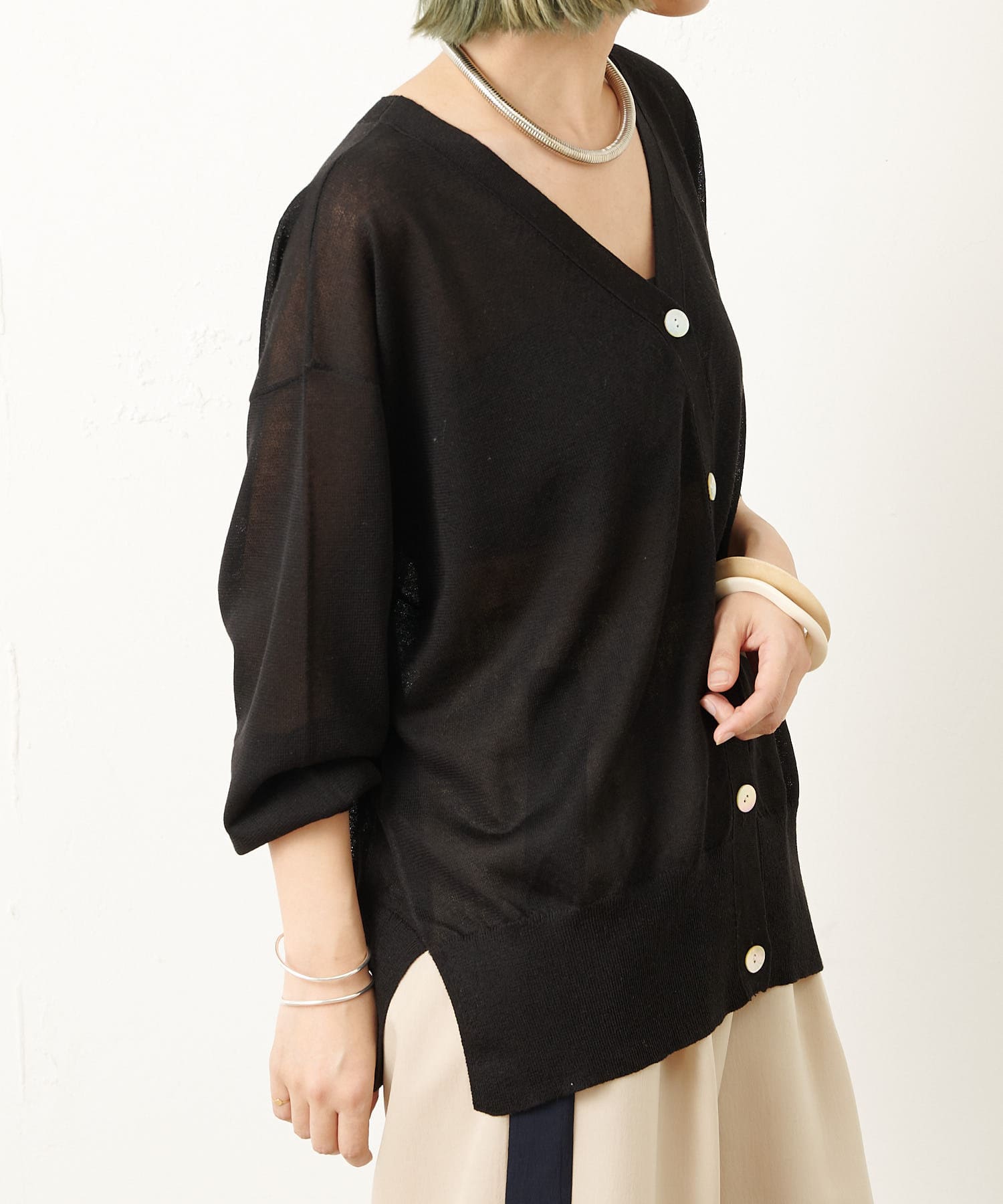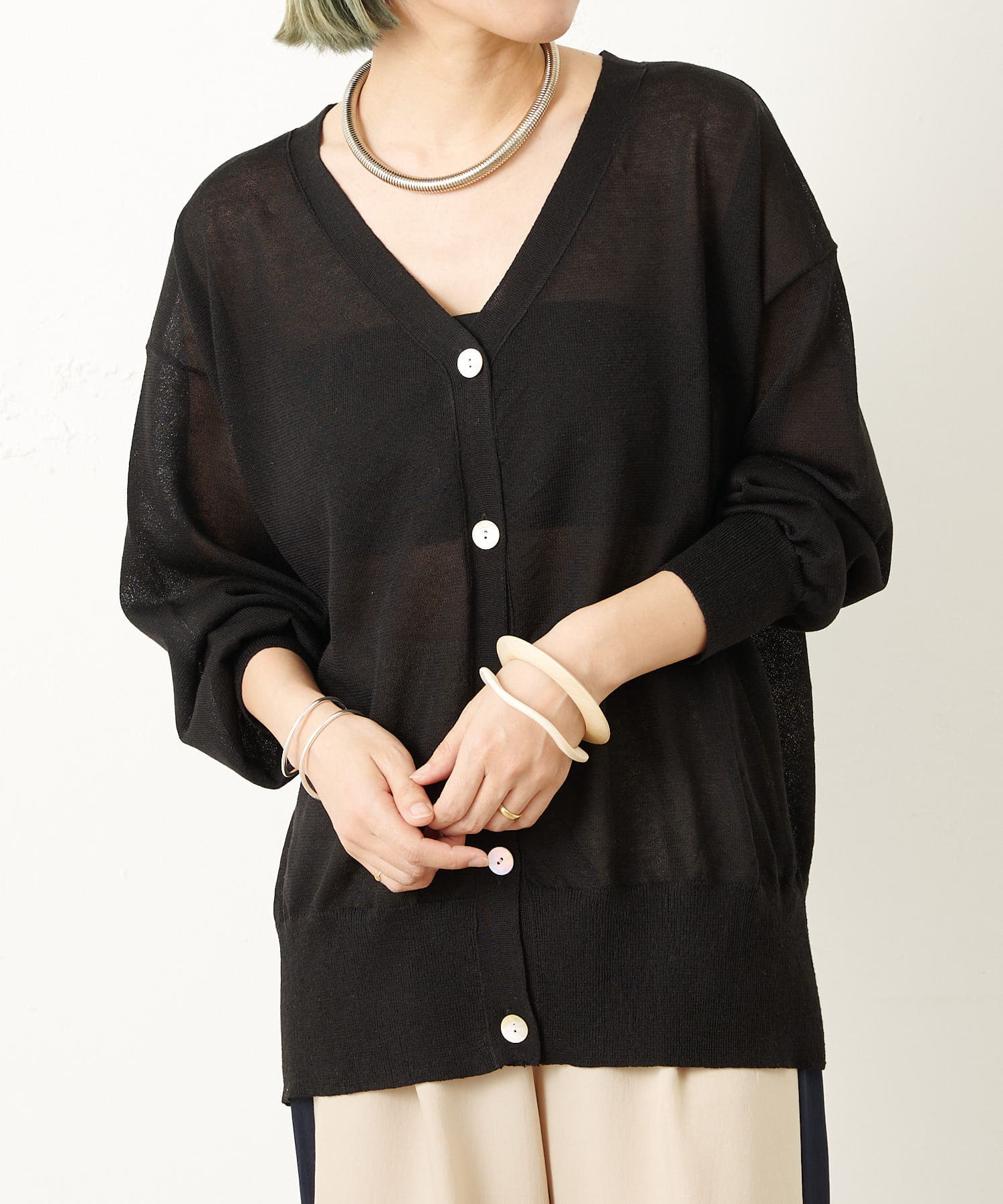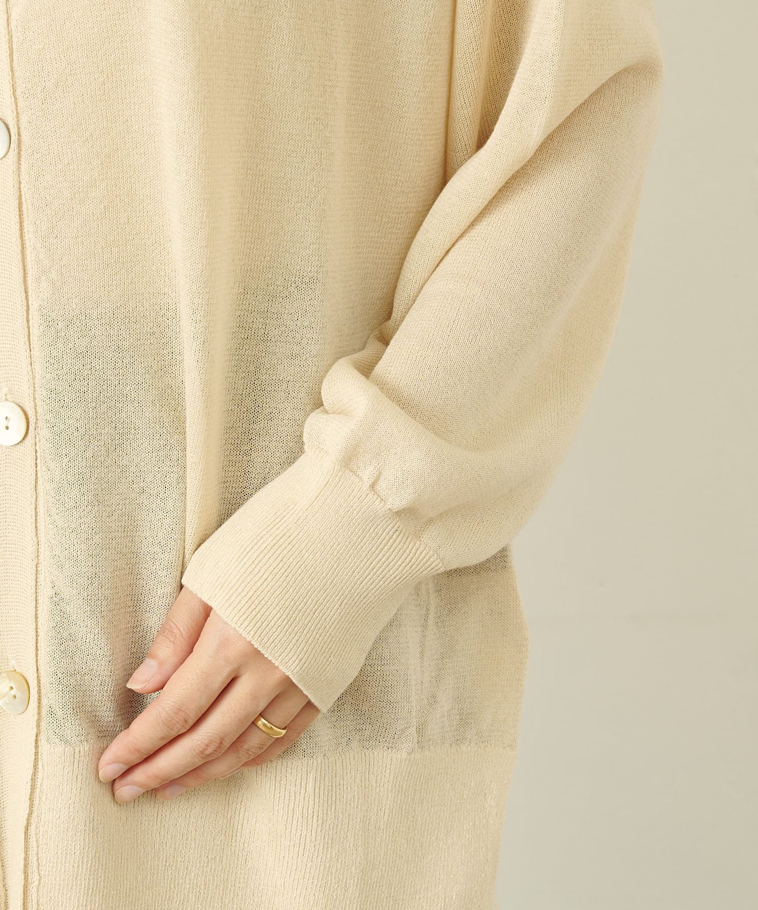 ・ゆとりのあるサイジングで大人な雰囲気で着ていただけるシアーカーディガン。