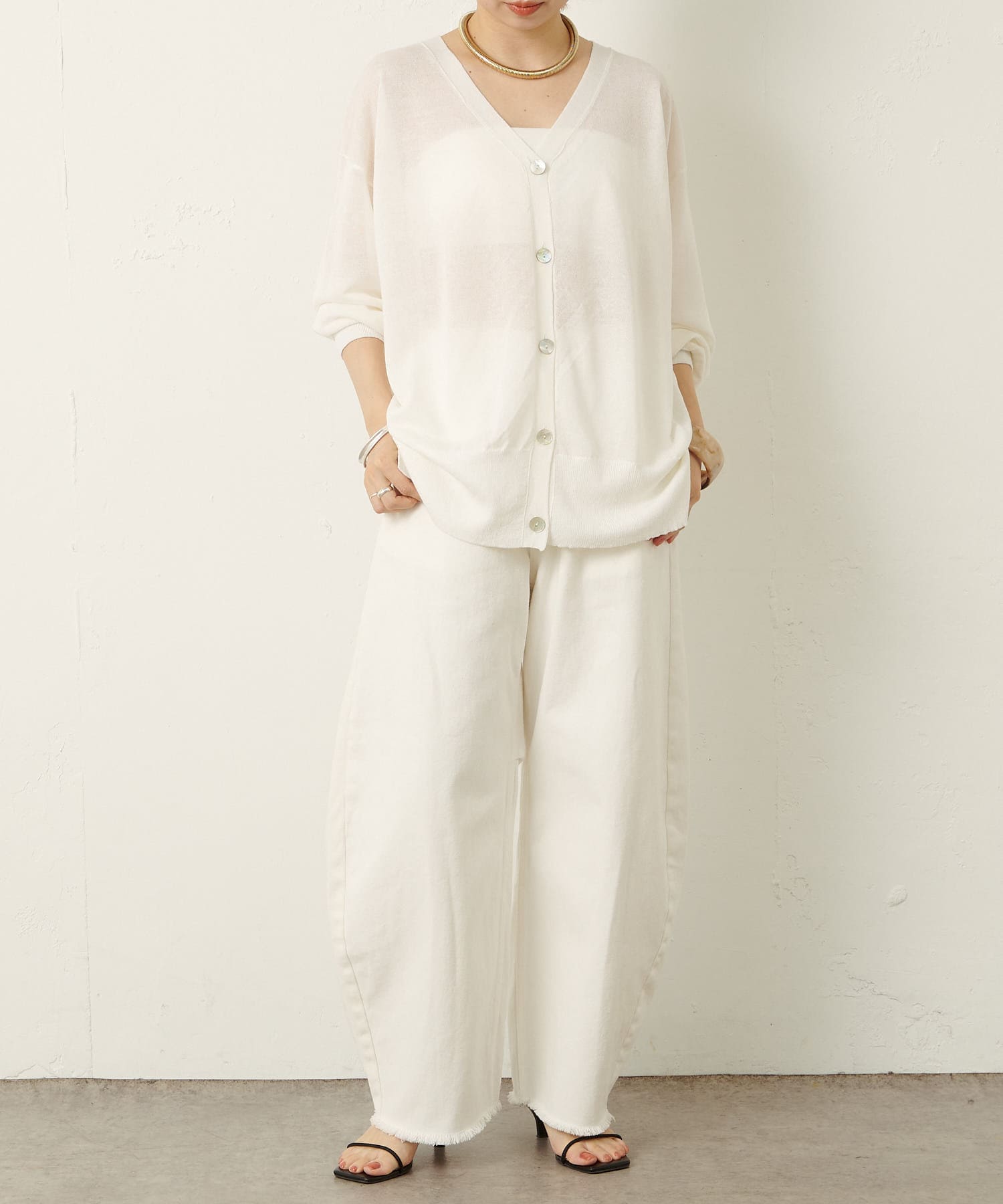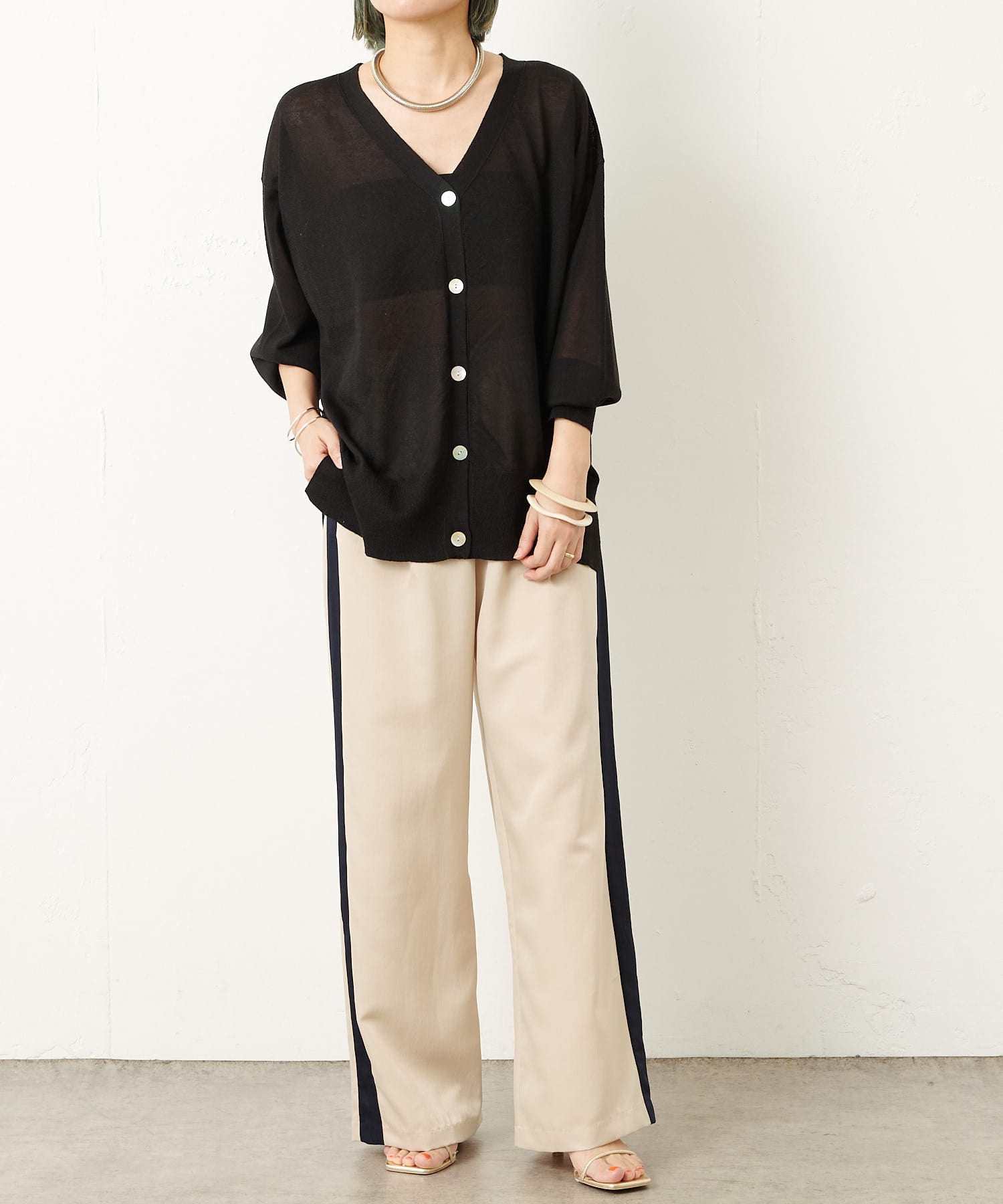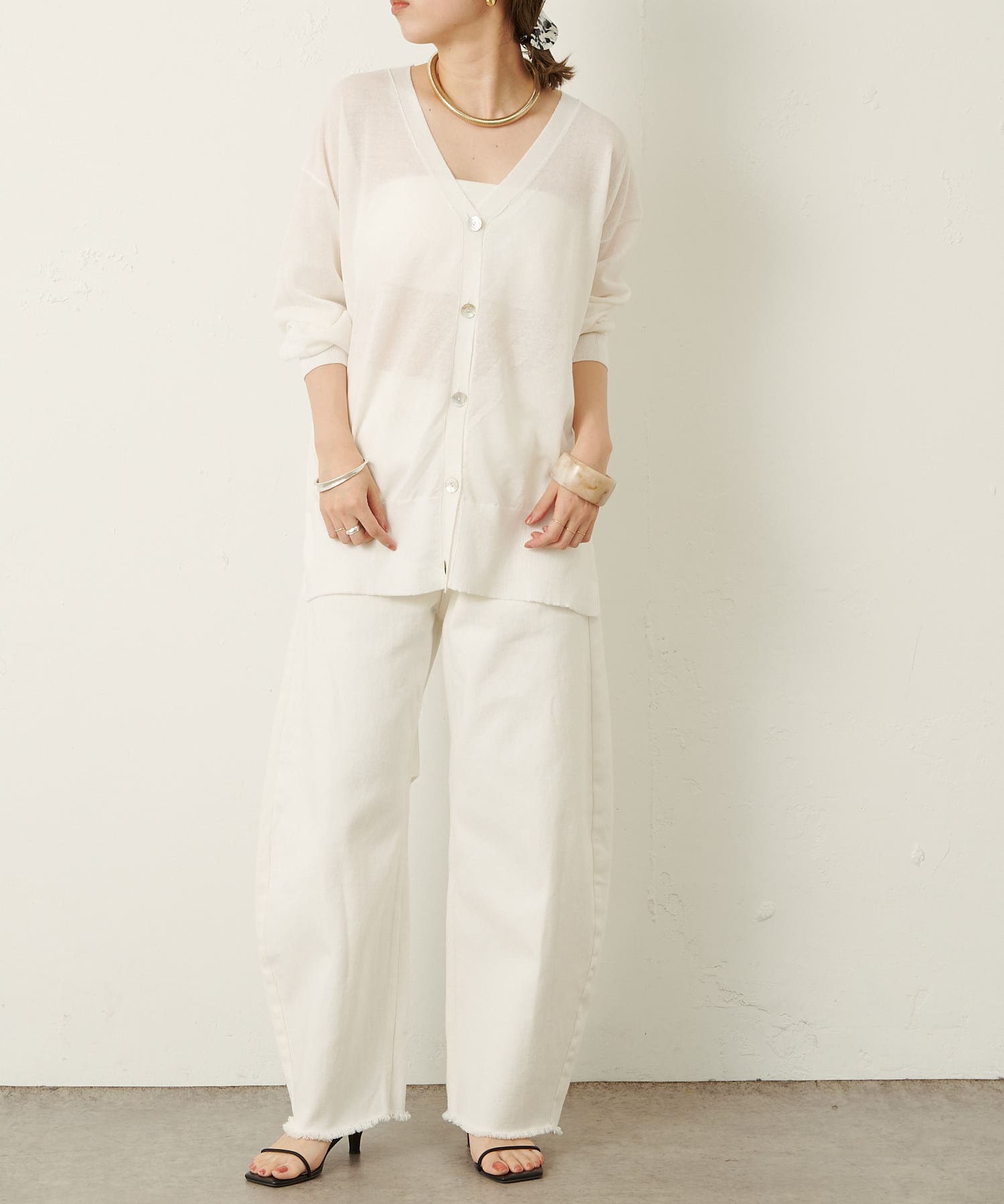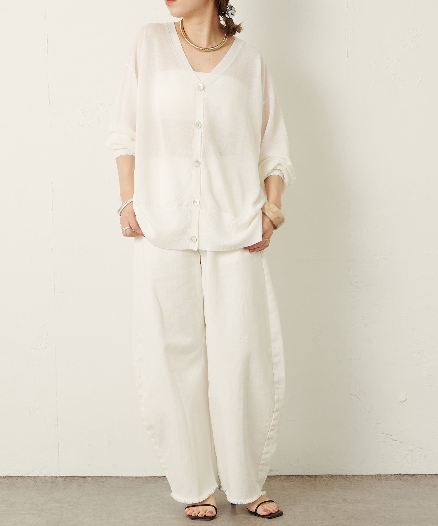 ・ゆとりのあるサイジングで大人な雰囲気で着ていただけるシアーカーディガン。