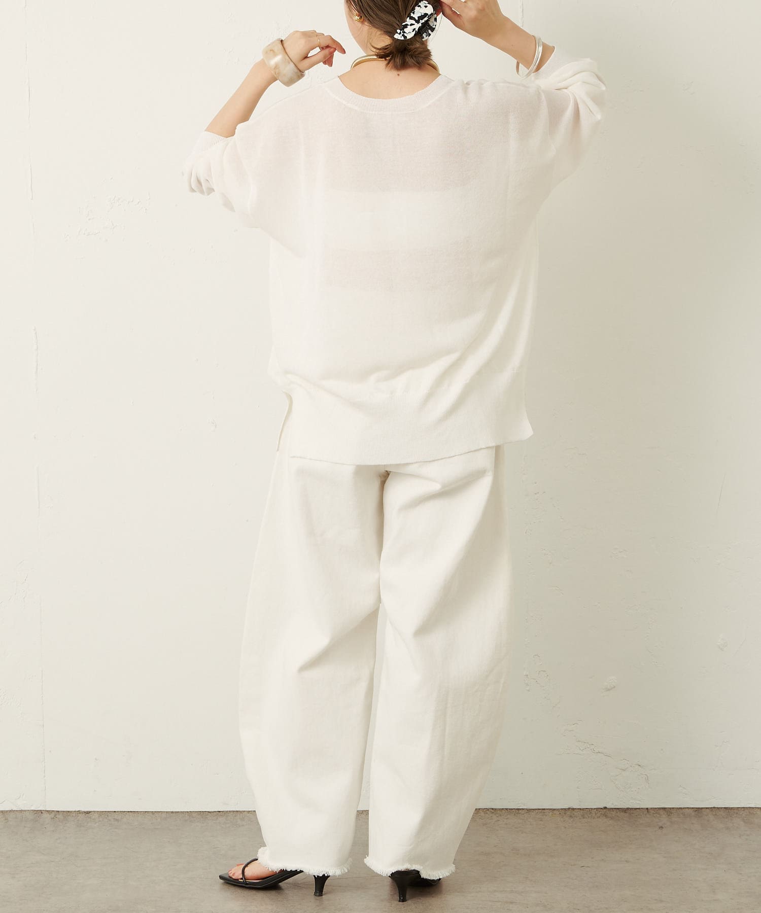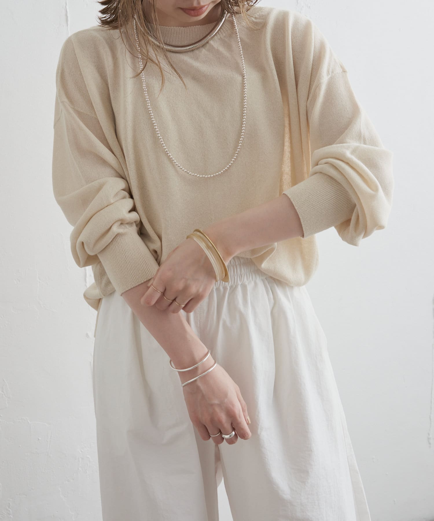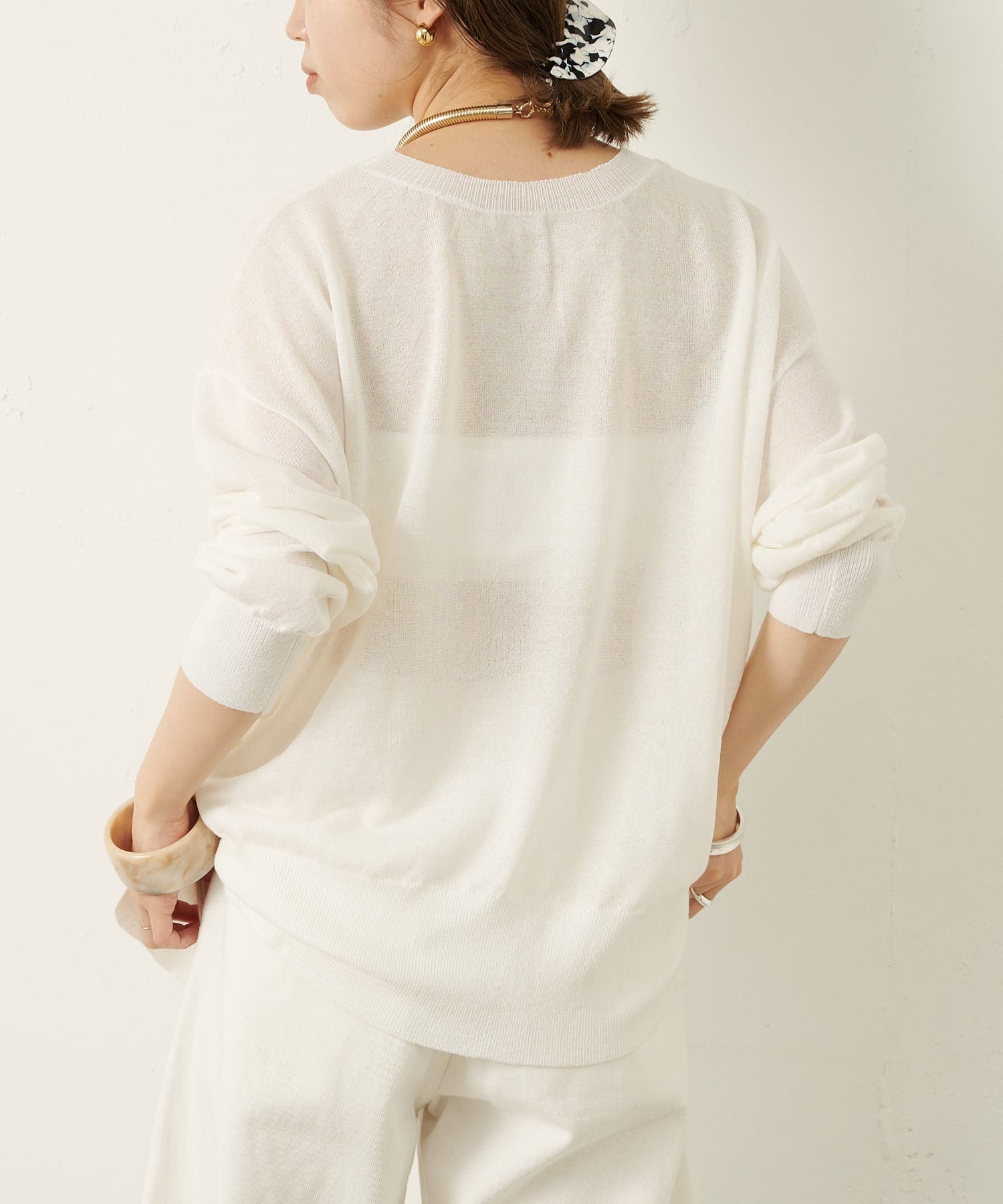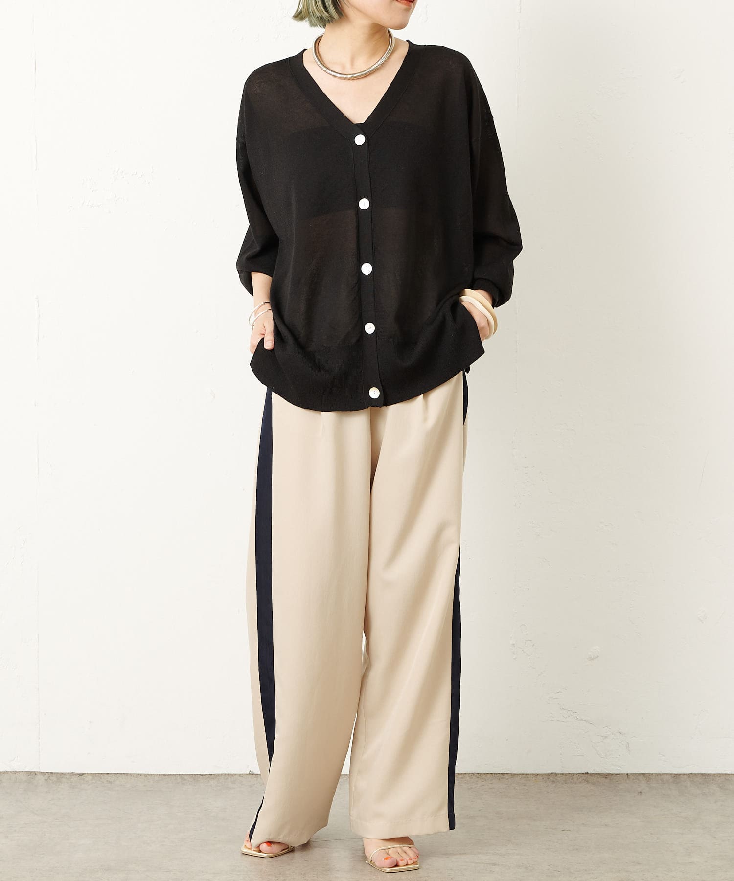 ・ゆとりのあるサイジングで大人な雰囲気で着ていただけるシアーカーディガン。