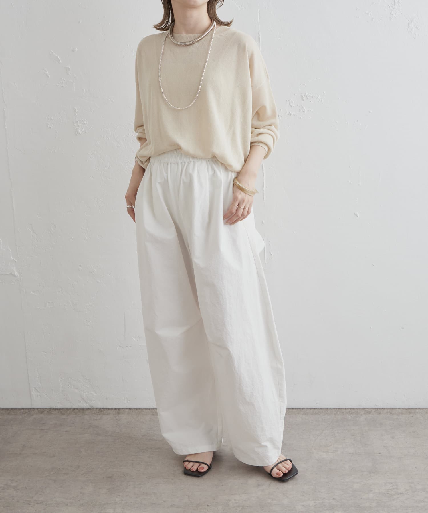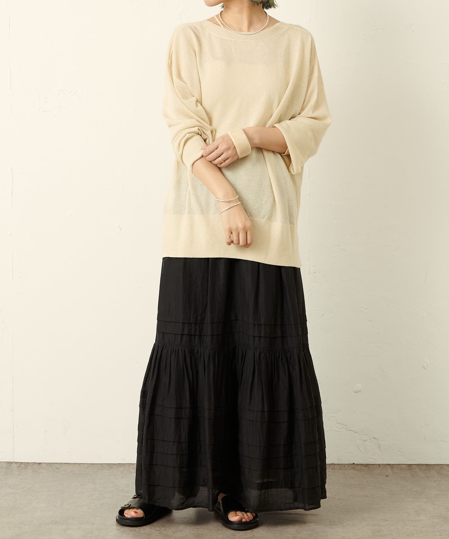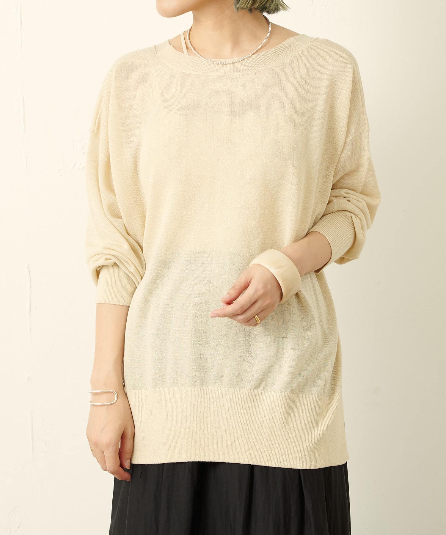 ・インナーにキャミソールやタンクトップを合わせて透けさせることで旬なスタイリングが出来上がります。