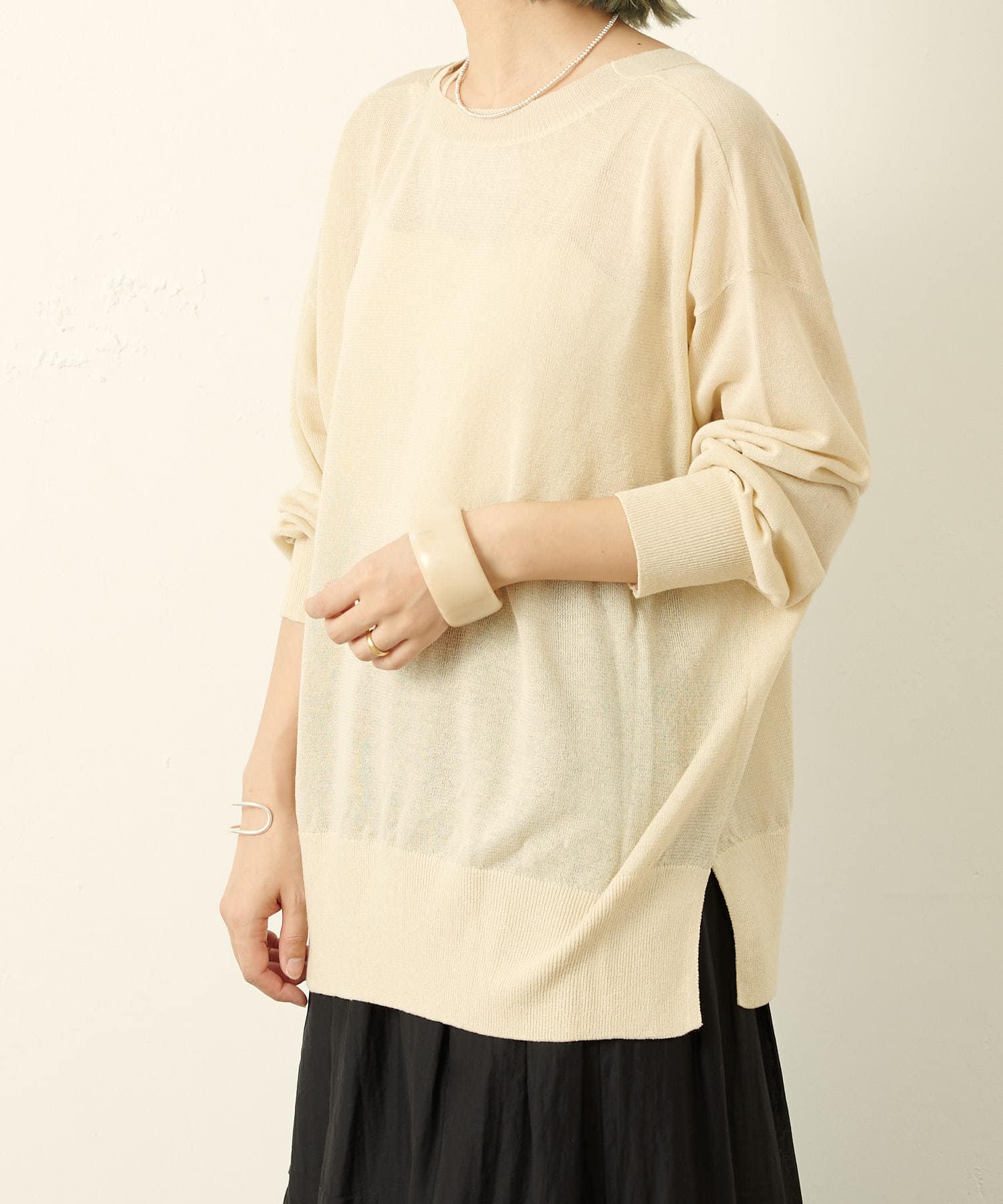 インスタで見かけて店舗に行きました。すけすぎないので、私の年齢でも抵抗なく着れました。サラッとした着心地でお気に入りです。