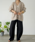 ボリューム感がありなががらも、深めのVネックで顔周りがスッキリと見え、着膨れしてみえないのが◎