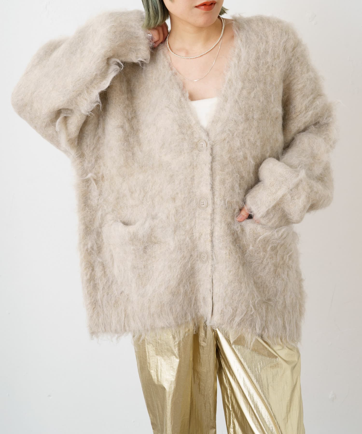 Omekashi(オメカシ) 【主役級のボリューム感】アルパカ起毛Vネックカーディガン