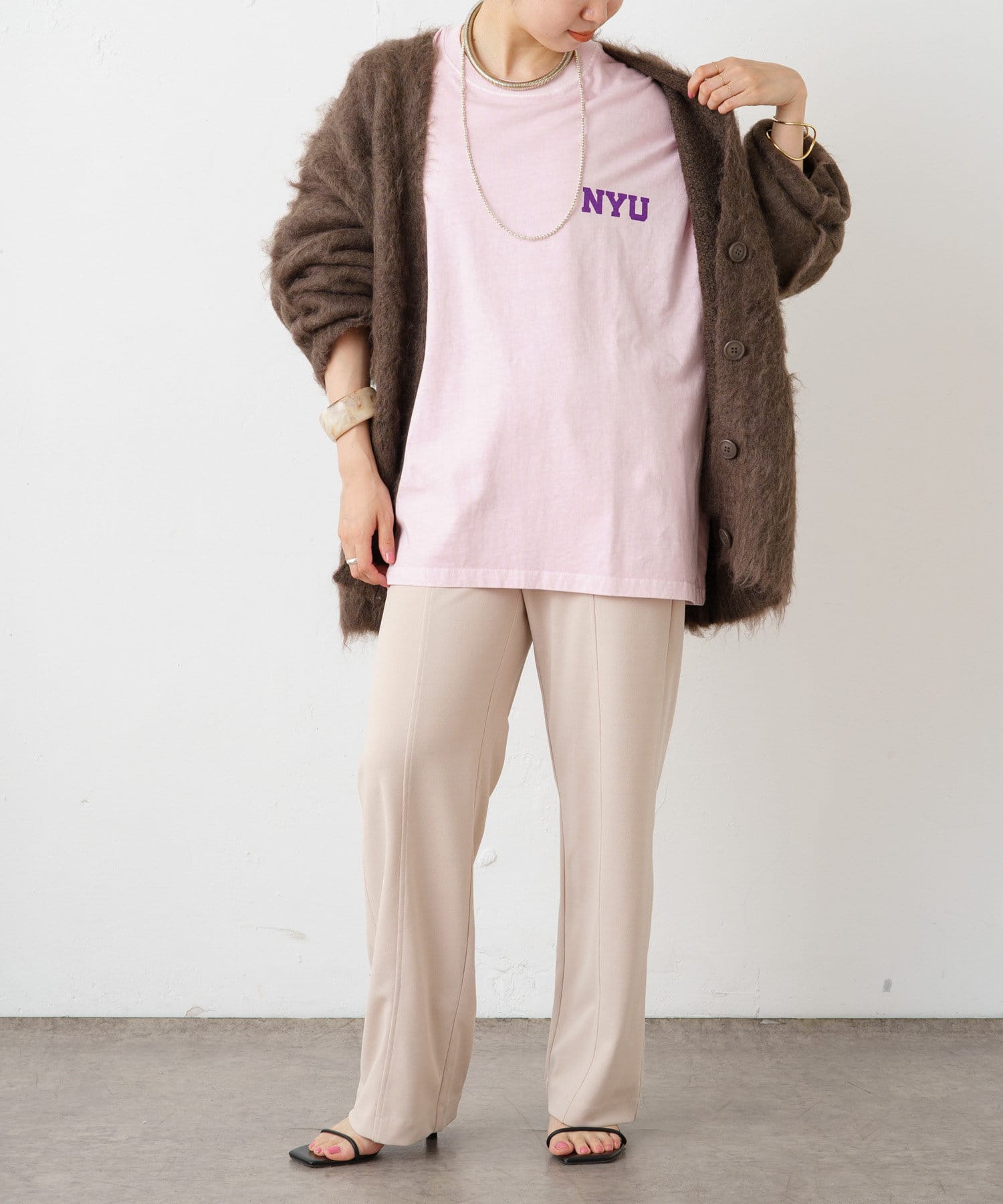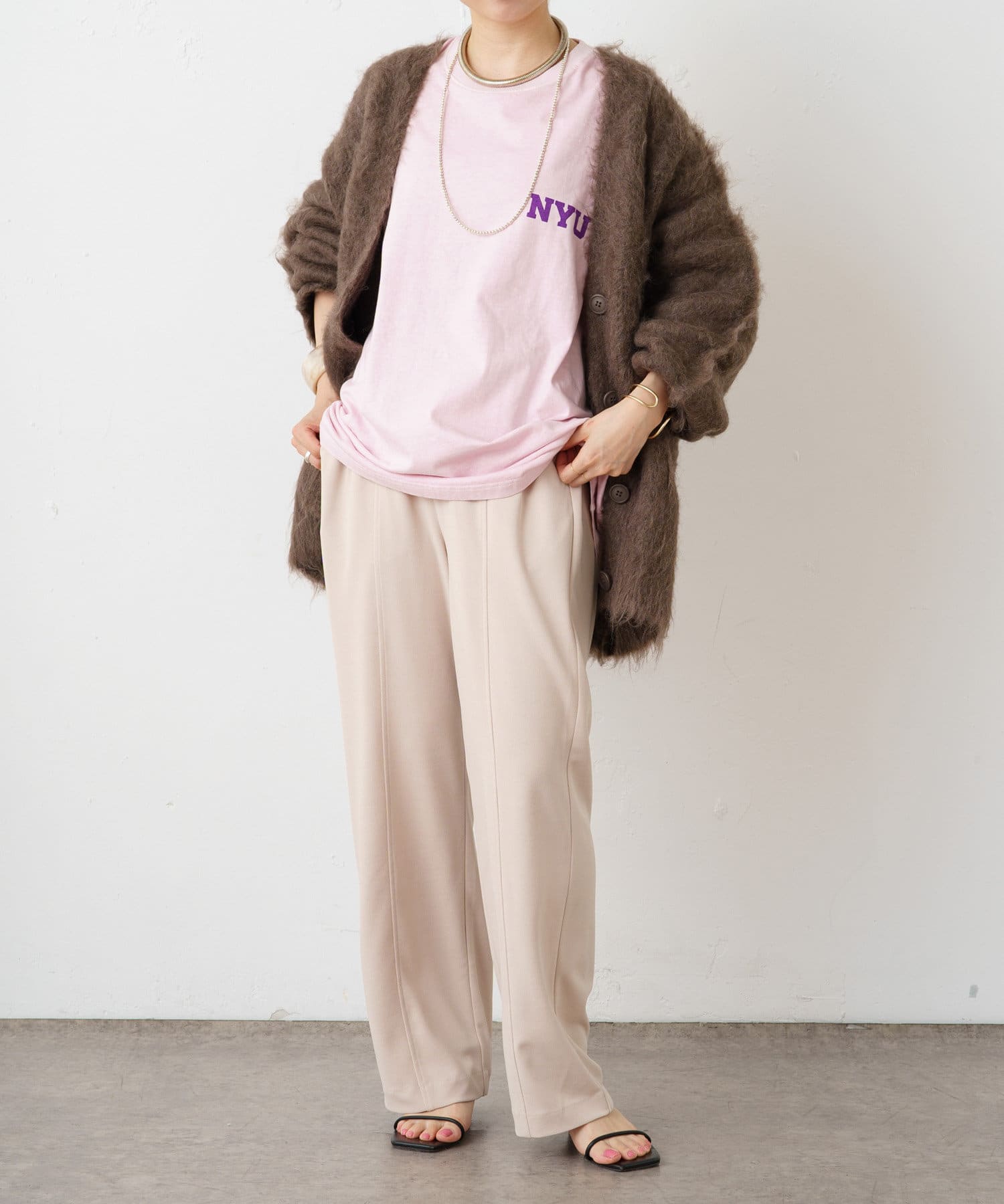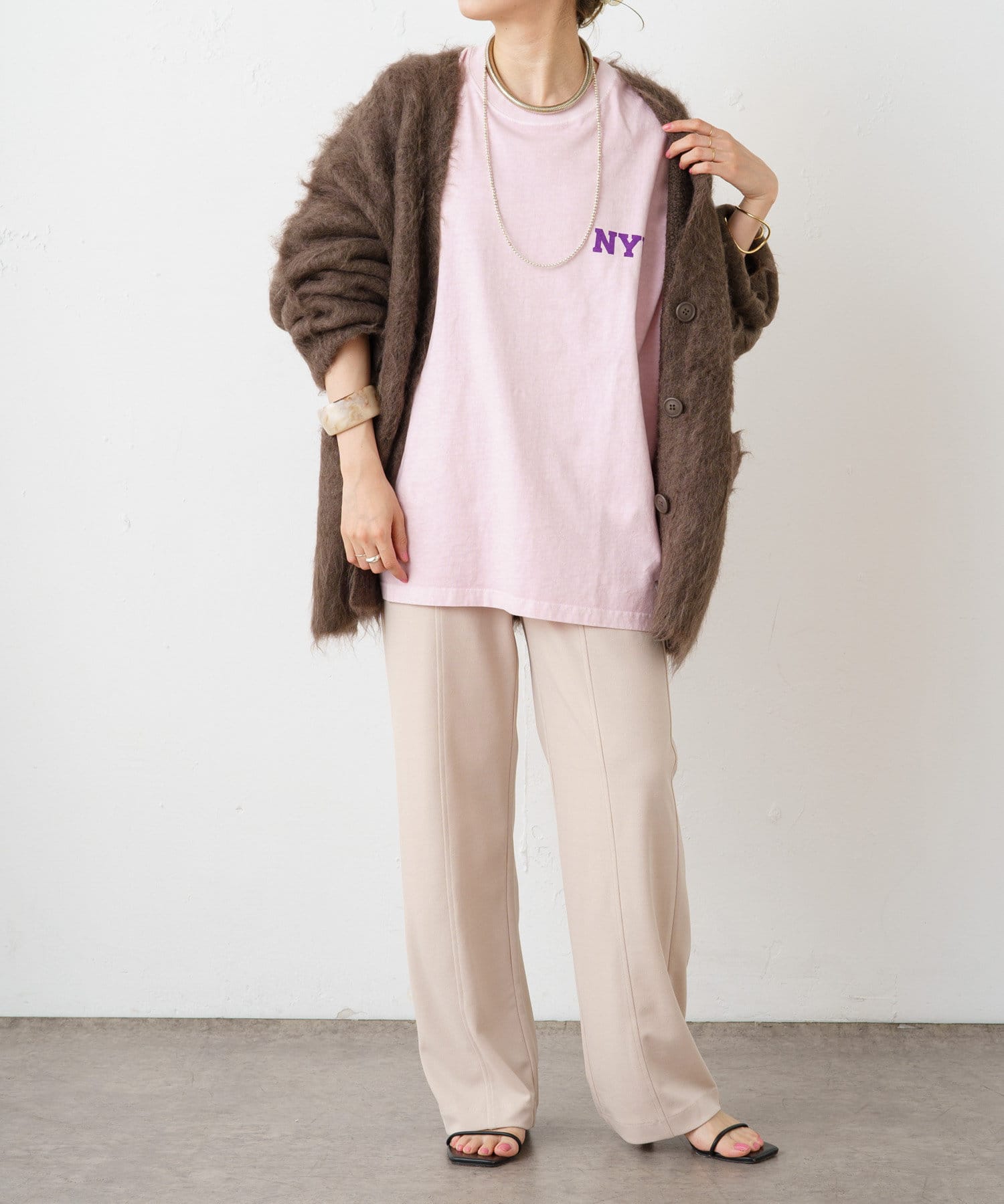 オーバーサイズで大きく見えるか心配でしたが、ざっくりVネックなので、首元を見せればスッキリ見えそうでした!お尻も隠れるくらいのオーバーサイズなのでアウターにもなりそうです♩
