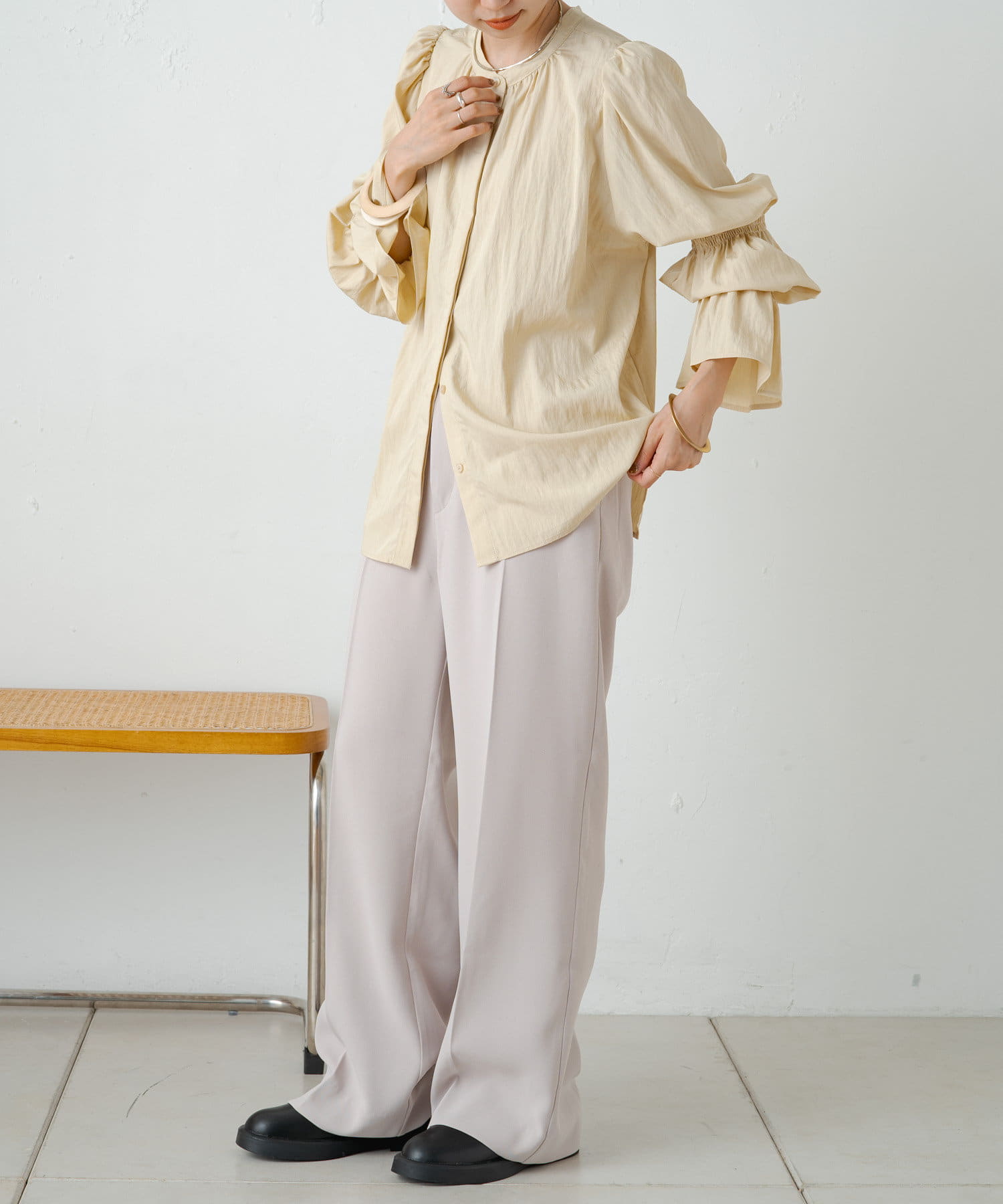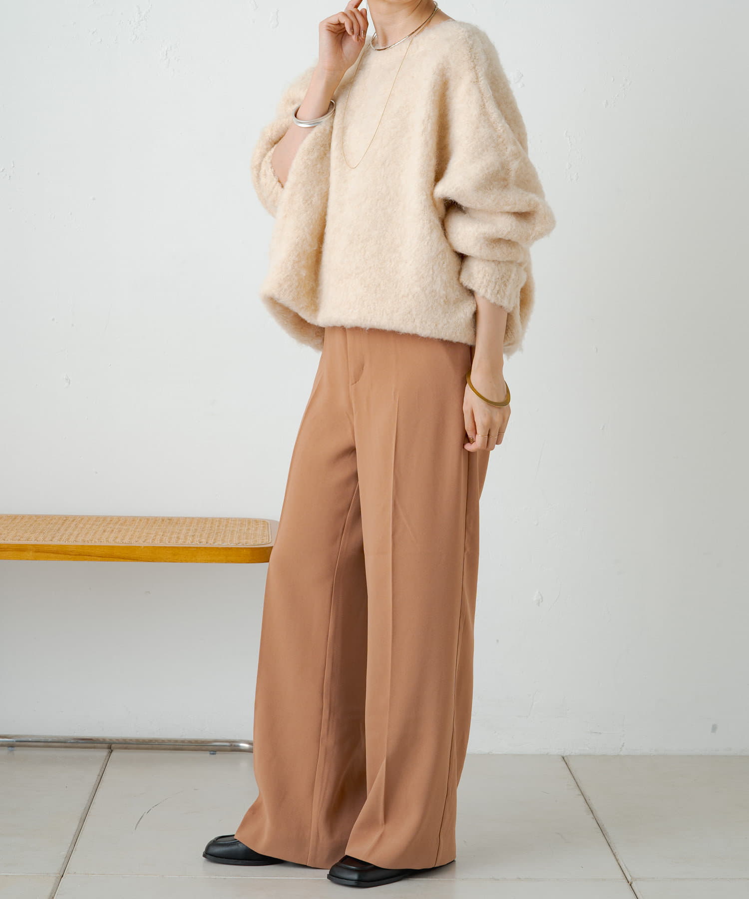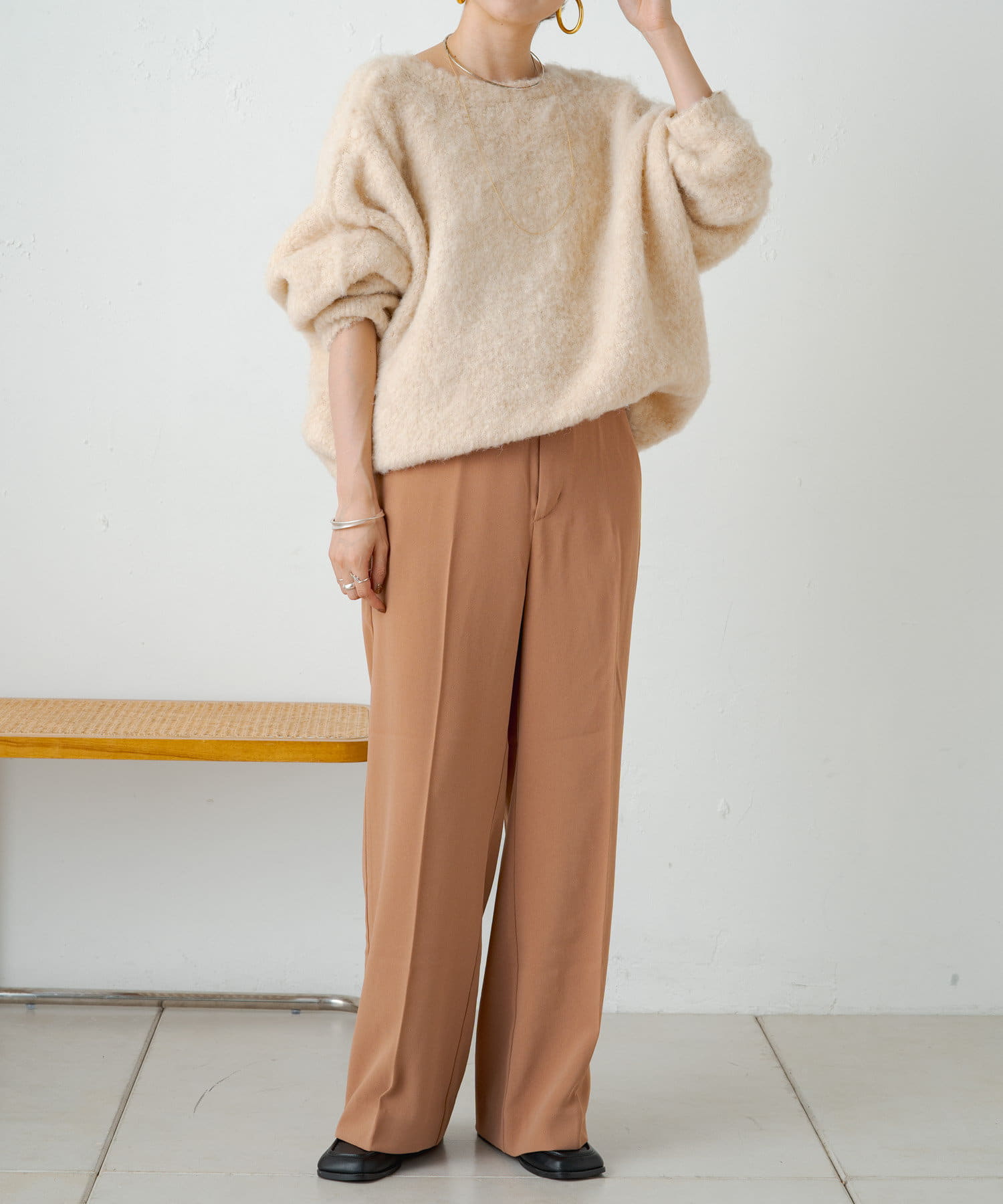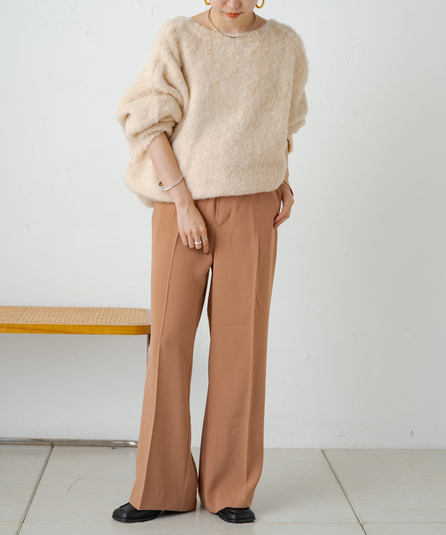 ・カジュアルにも綺麗めにも合わせやすく、オンオフ両方におすすめなアイテム。