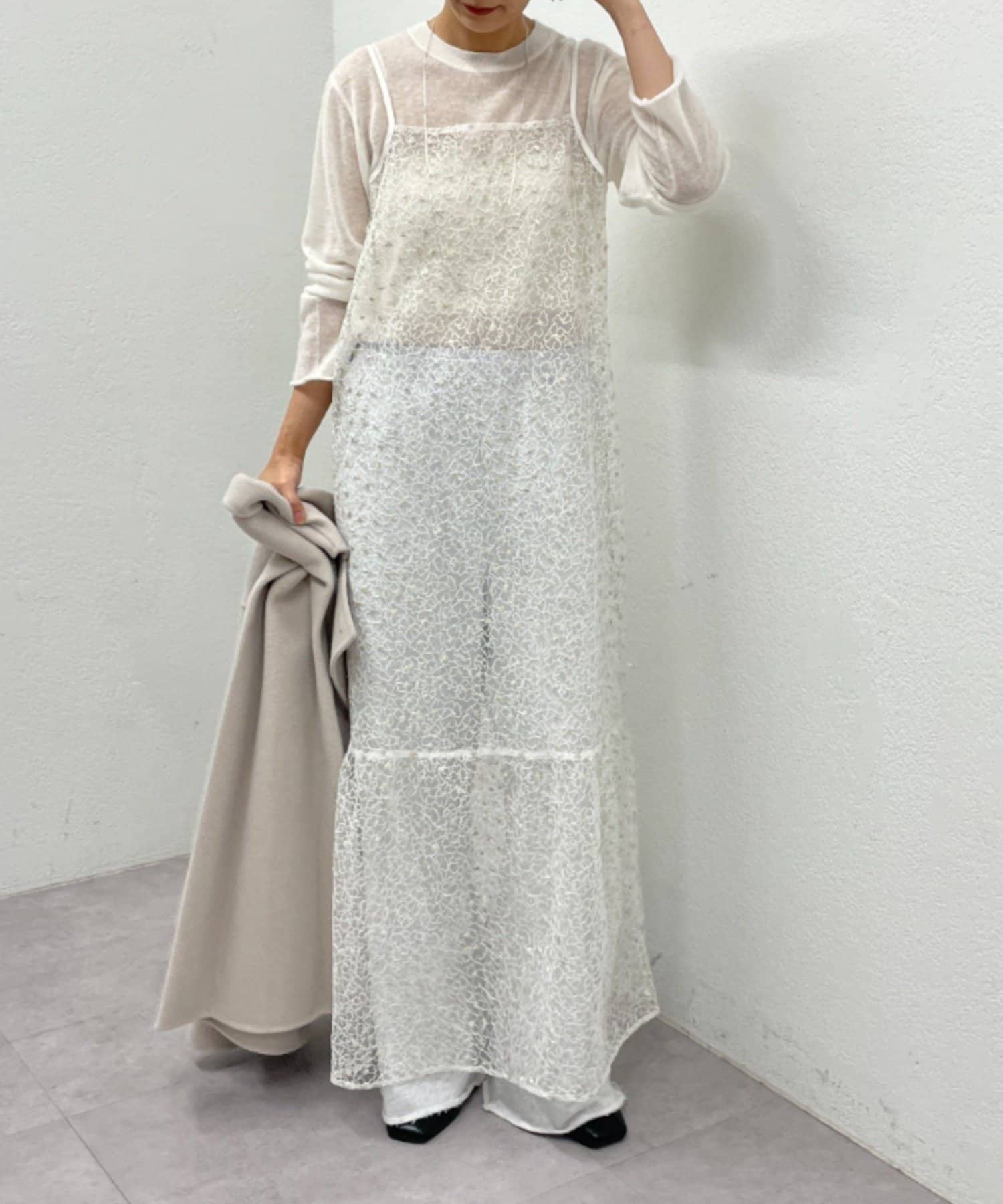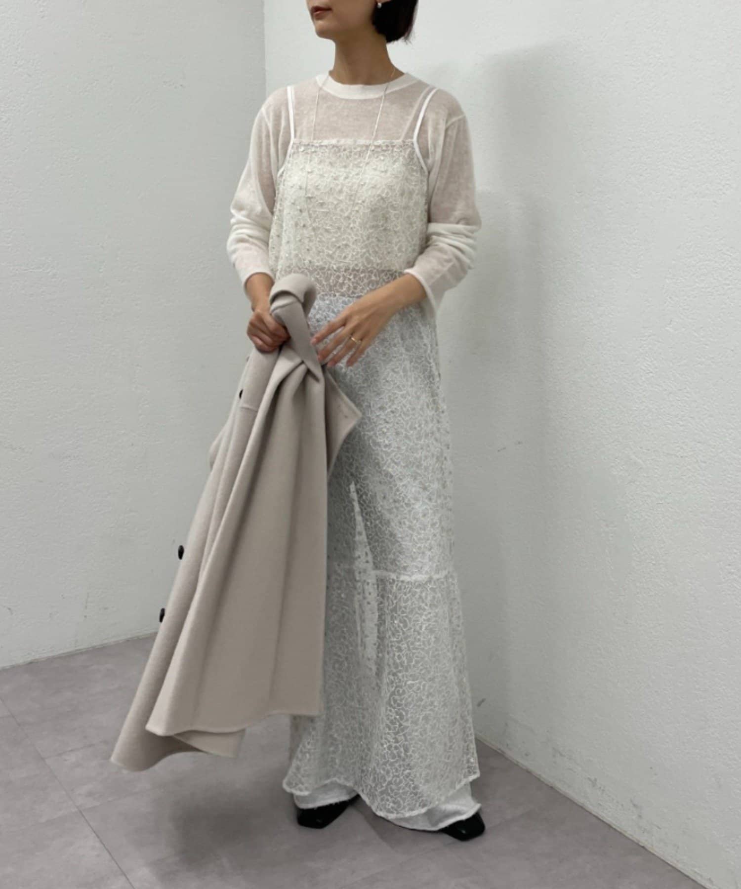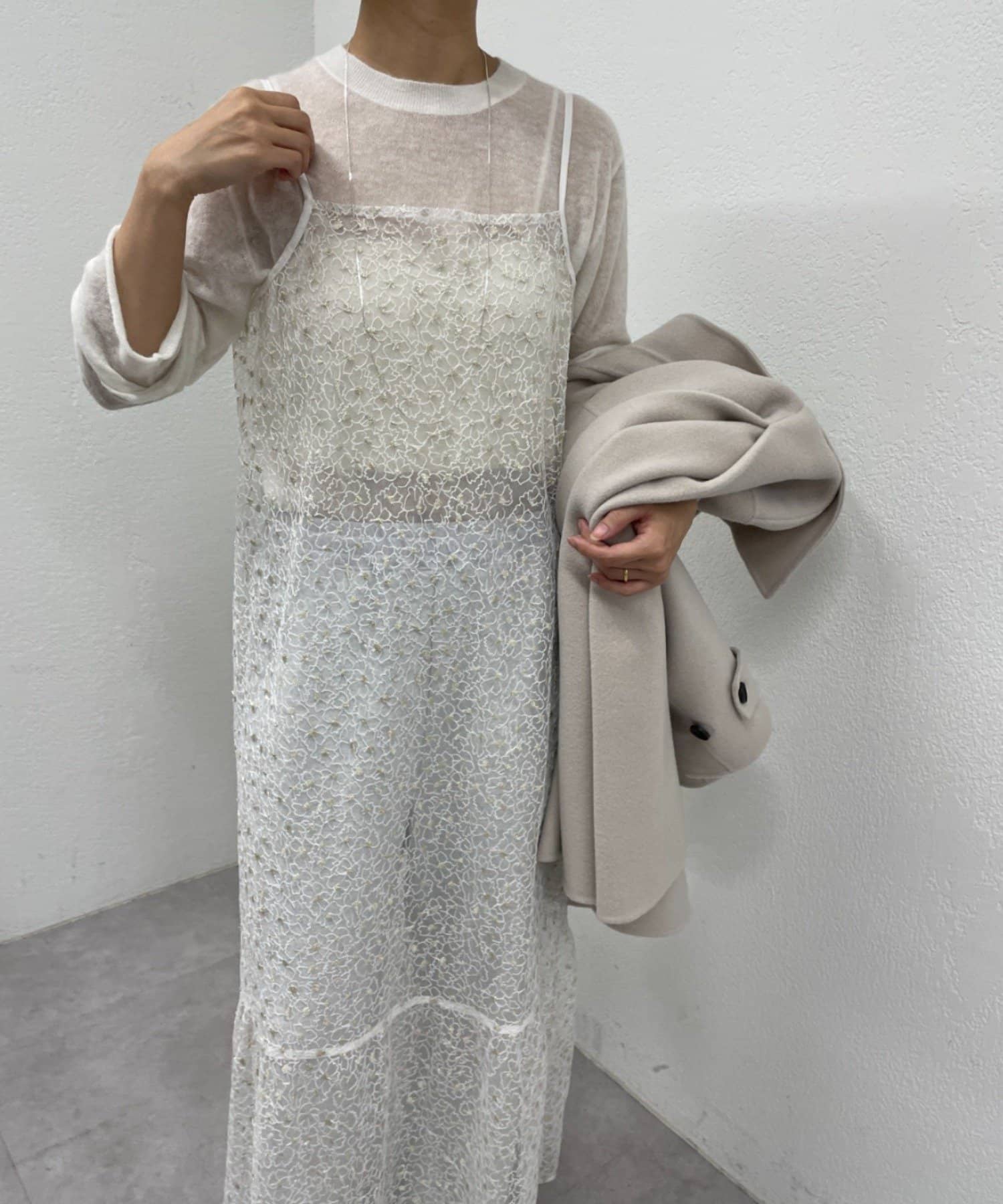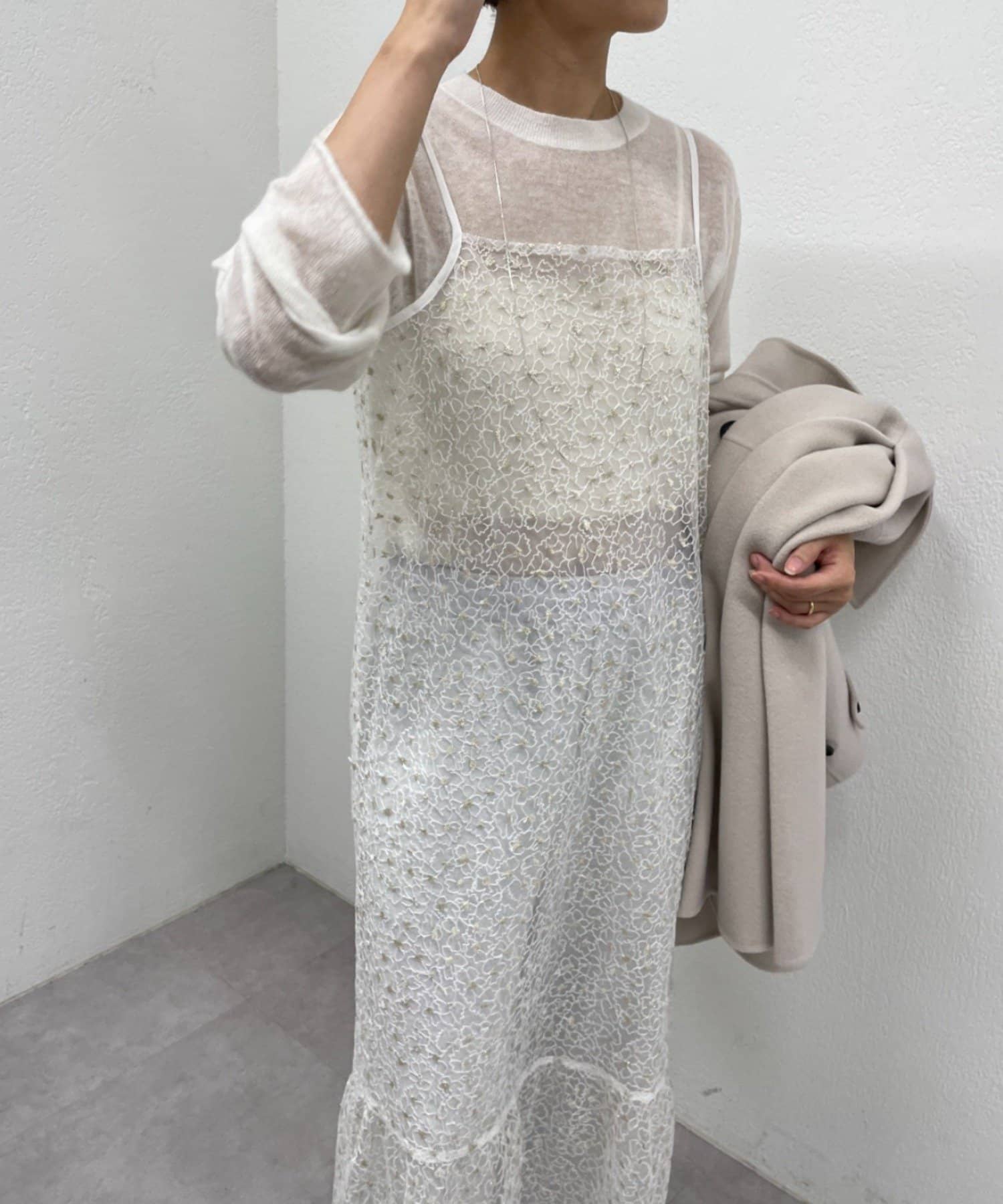 レイヤードスタイルにプラスしたいレース刺繍キャミワンピースが登場!