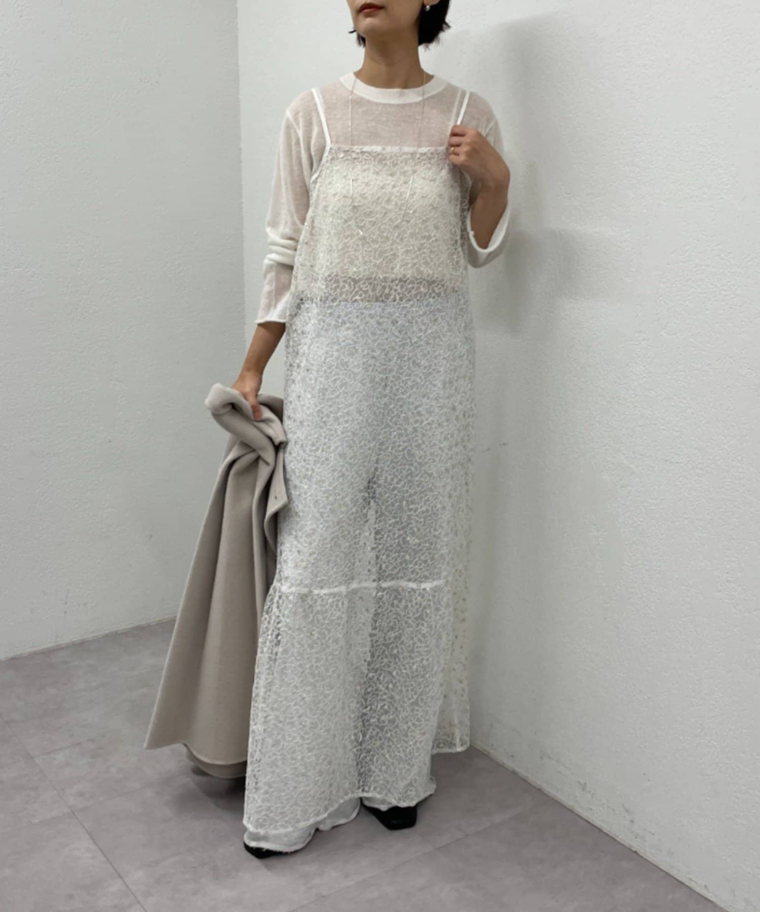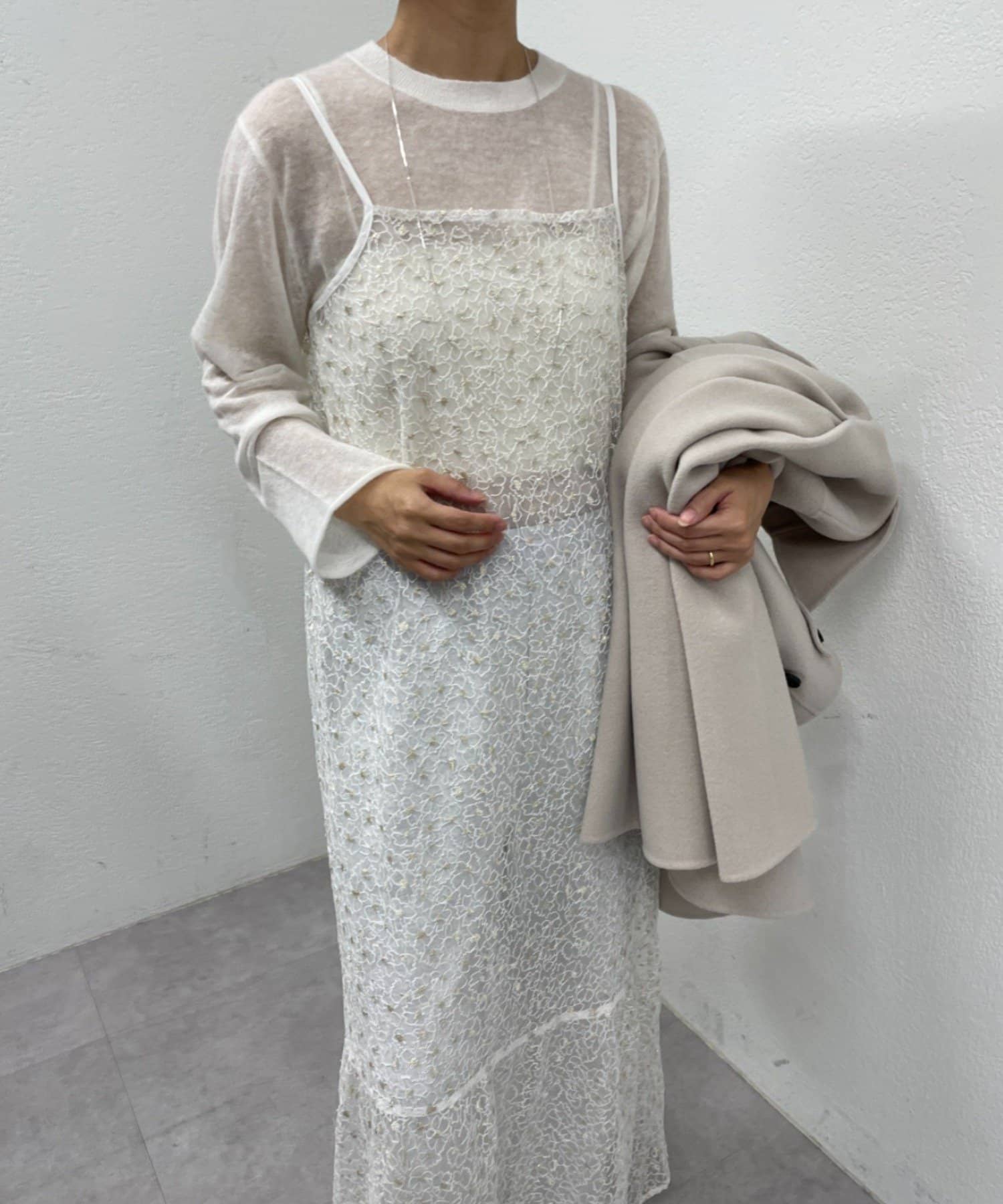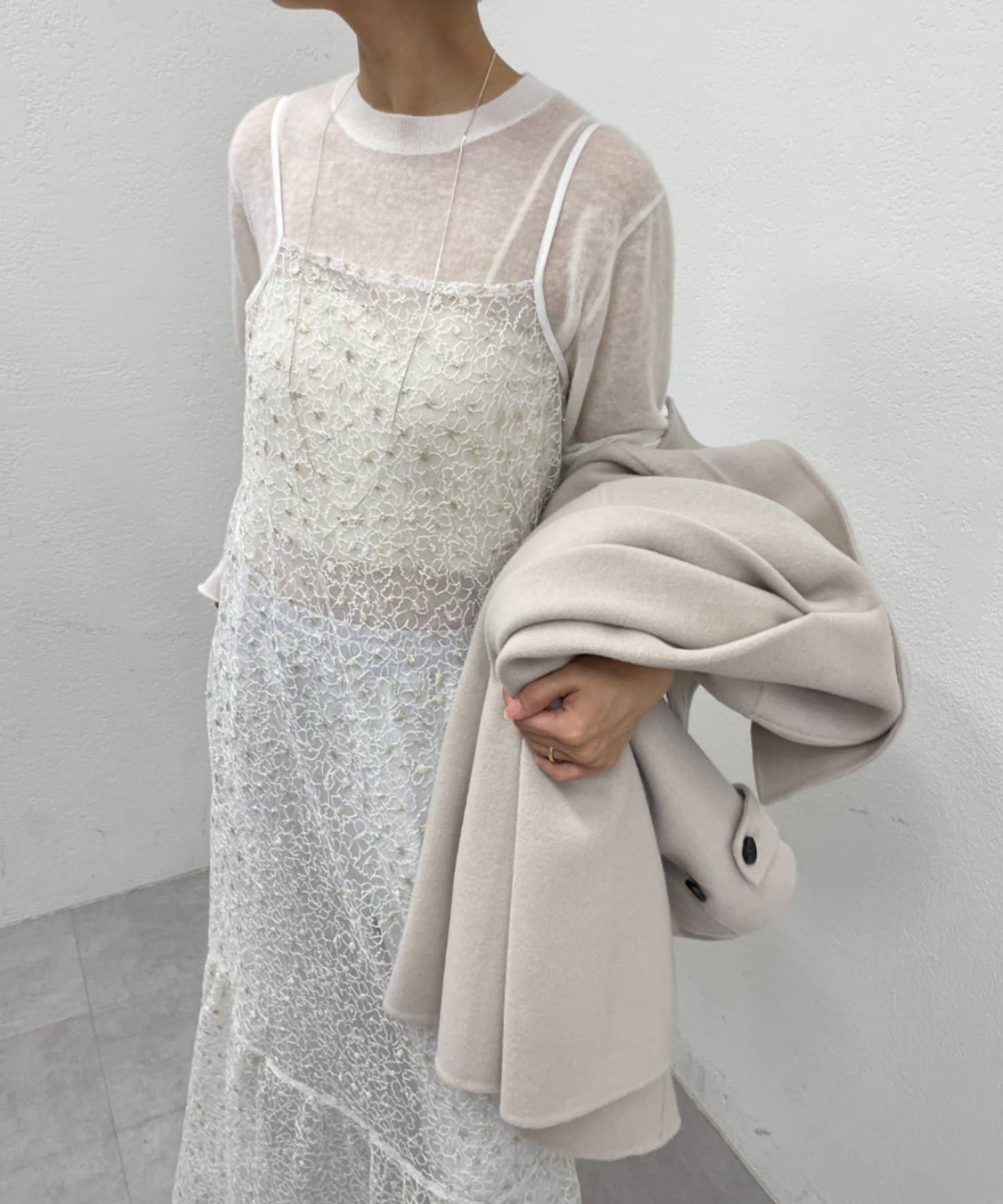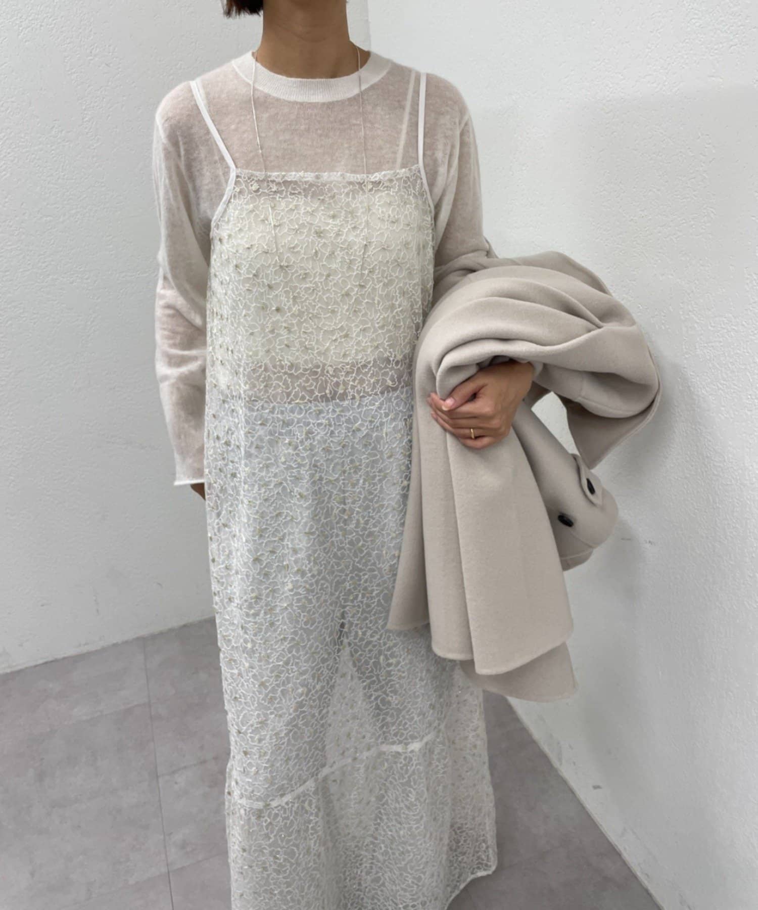 レイヤードスタイルにプラスしたいレース刺繍キャミワンピースが登場!