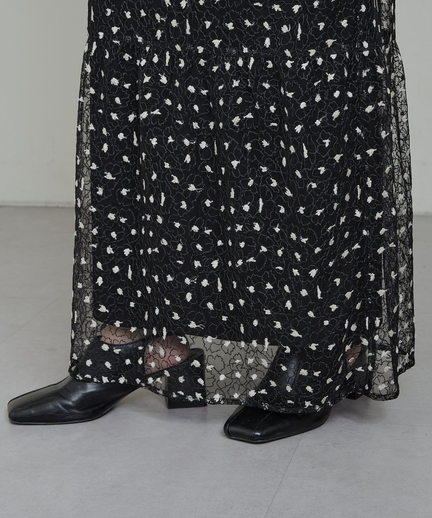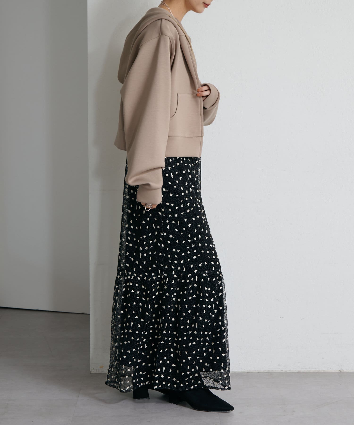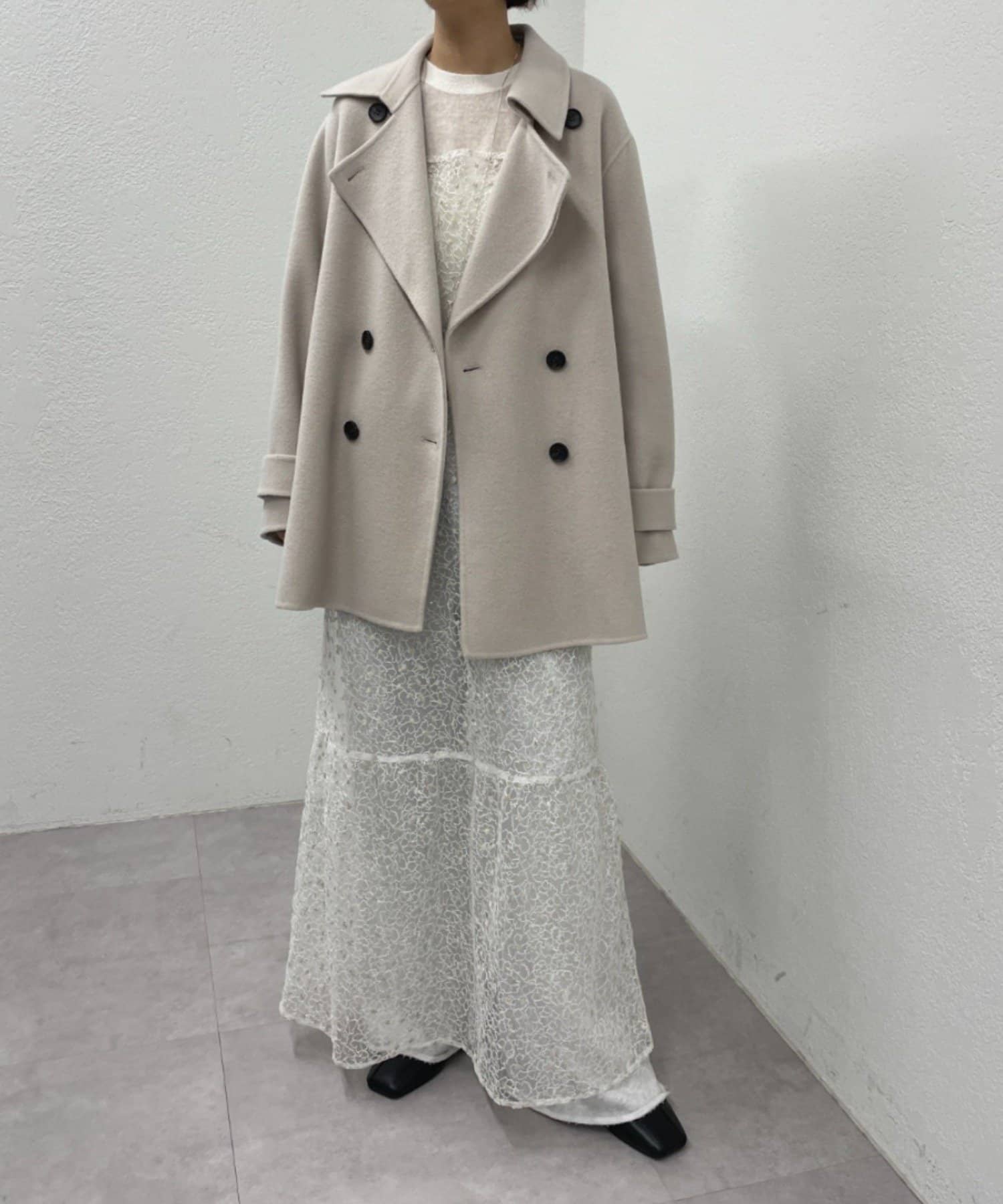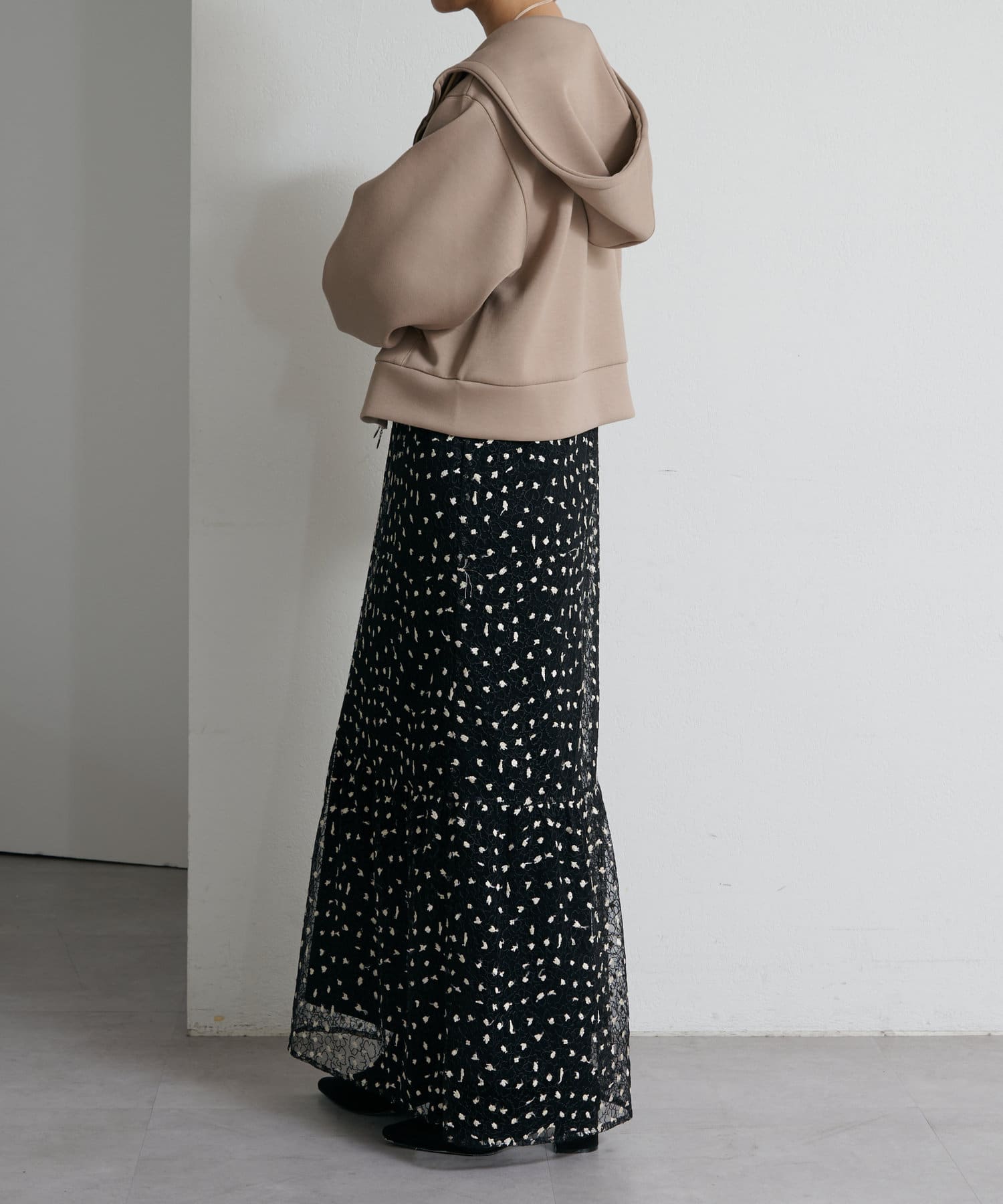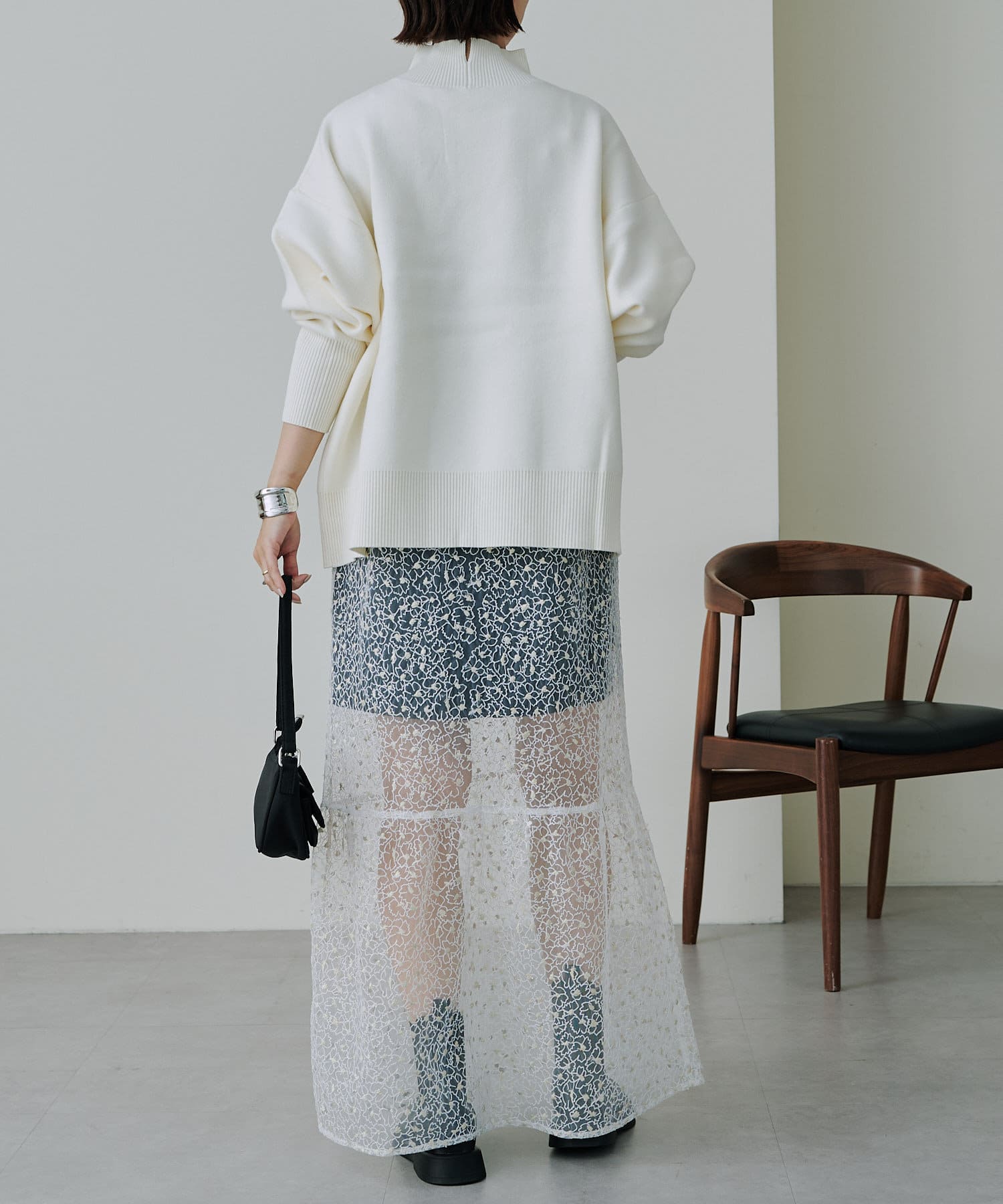 ・コーディネートのポイントになるレース刺繡柄が映える1枚。