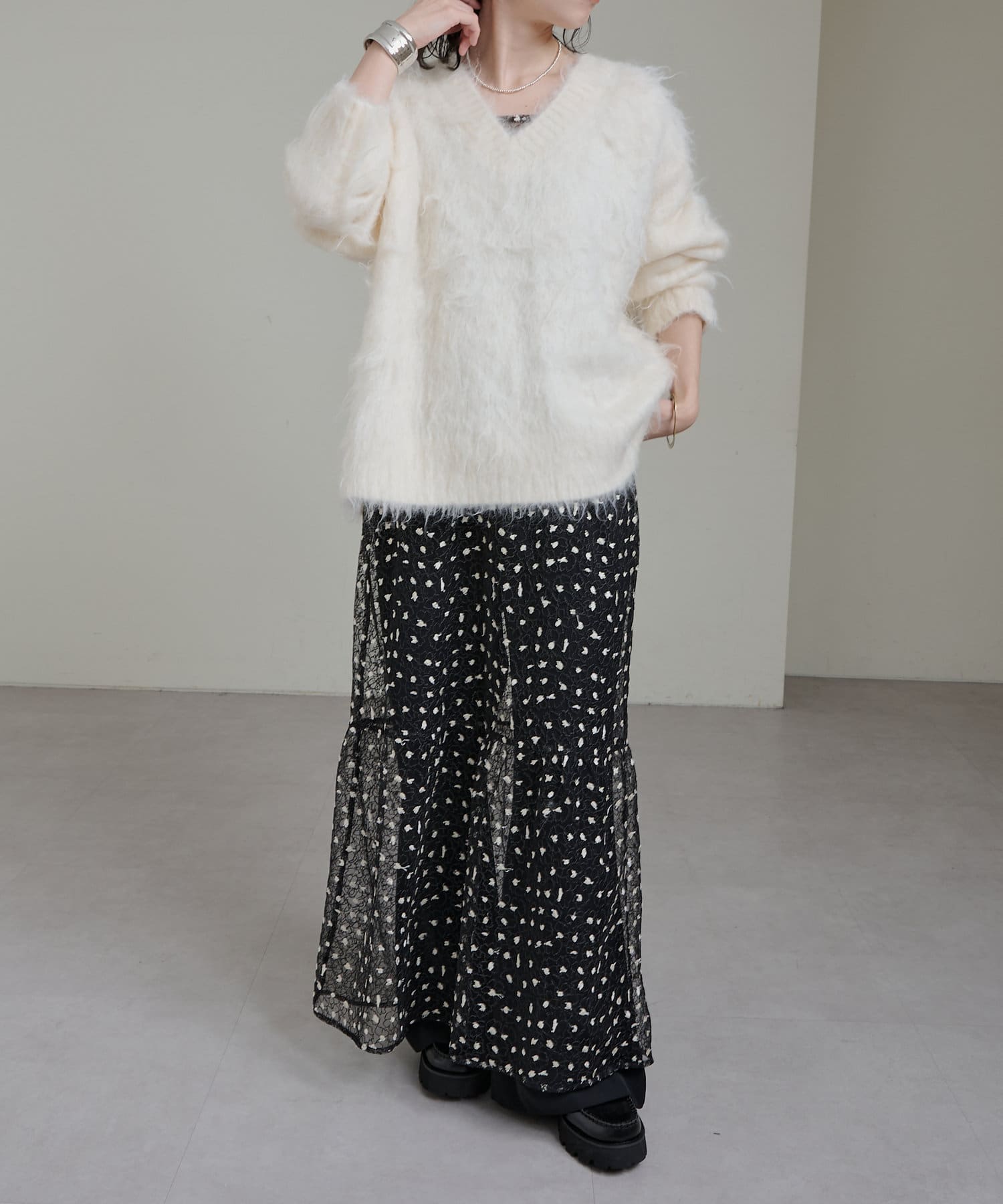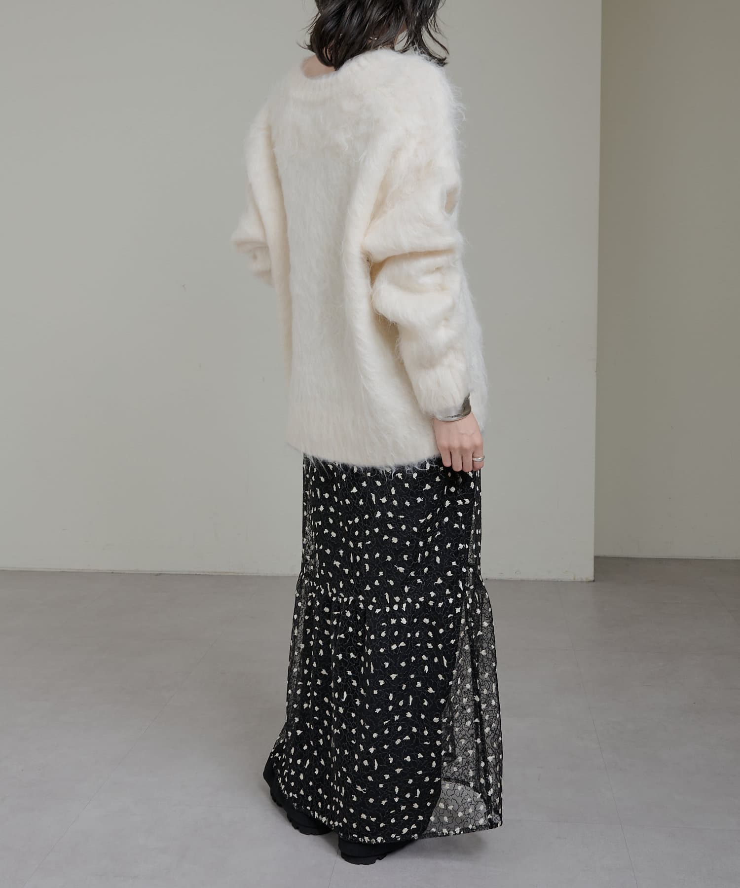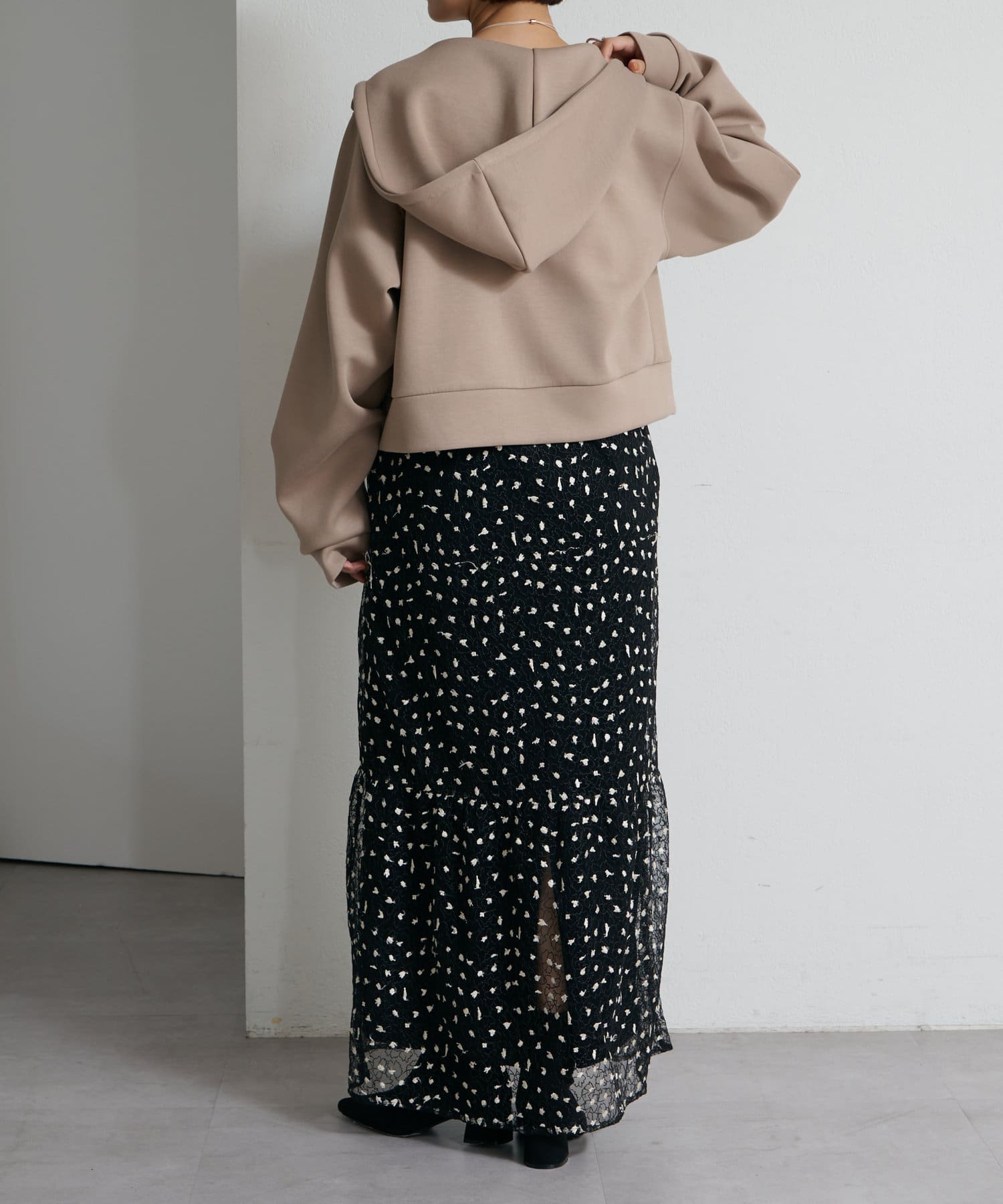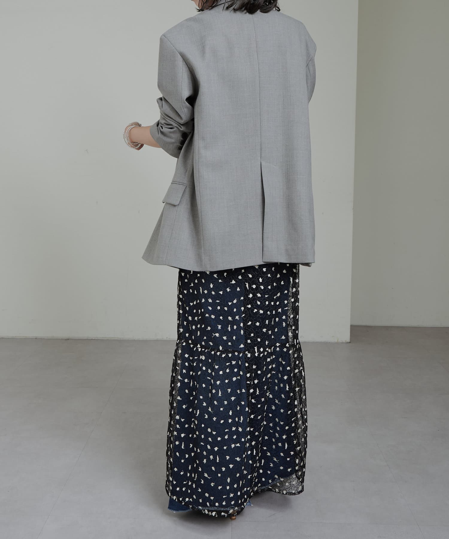 ・コーディネートのポイントになるレース刺繡柄が映える1枚。