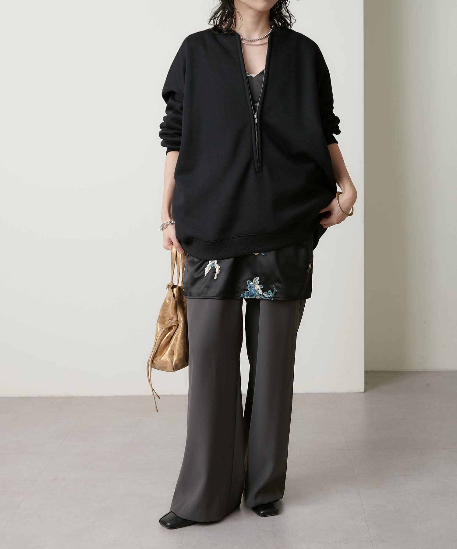 ・脚のラインを拾いづらいややワイドなシルエットが履き心地抜群です!
