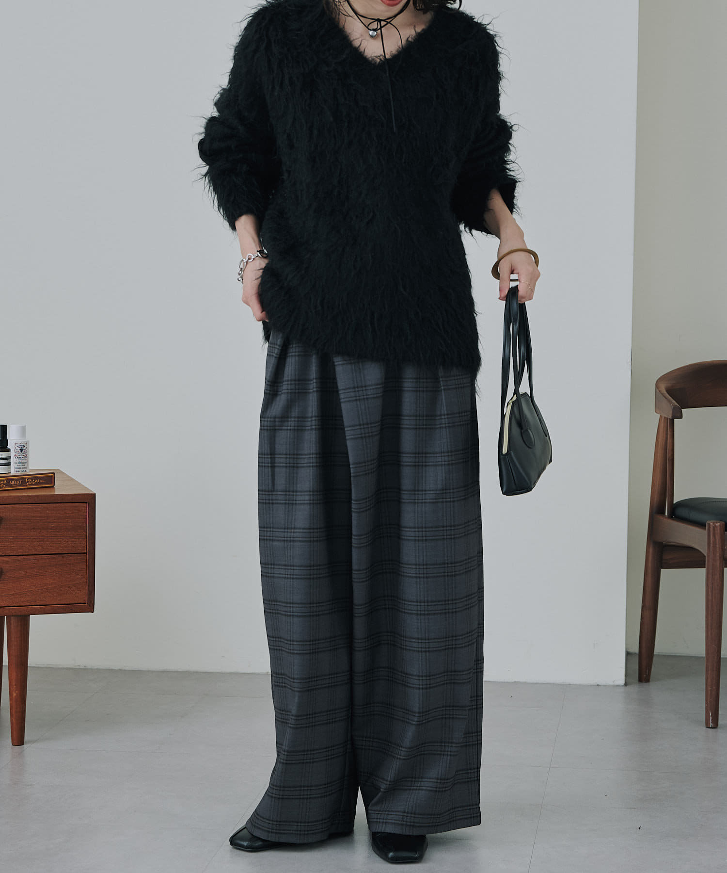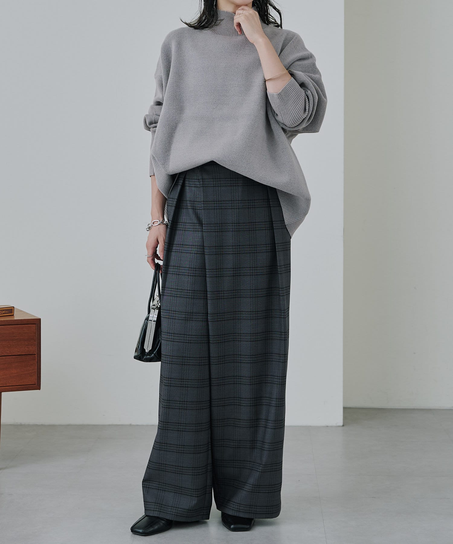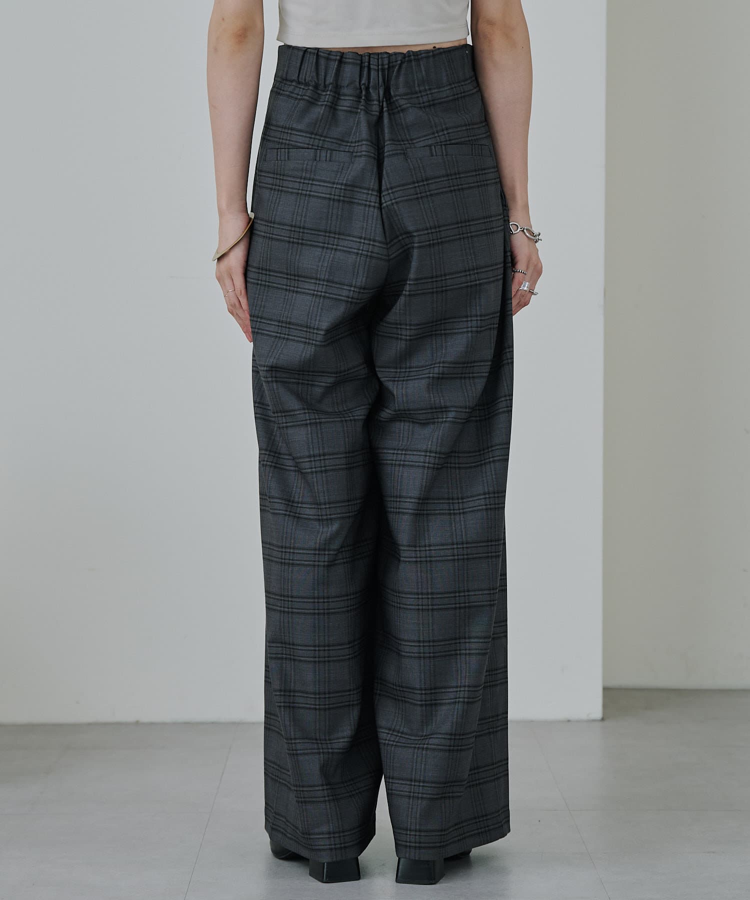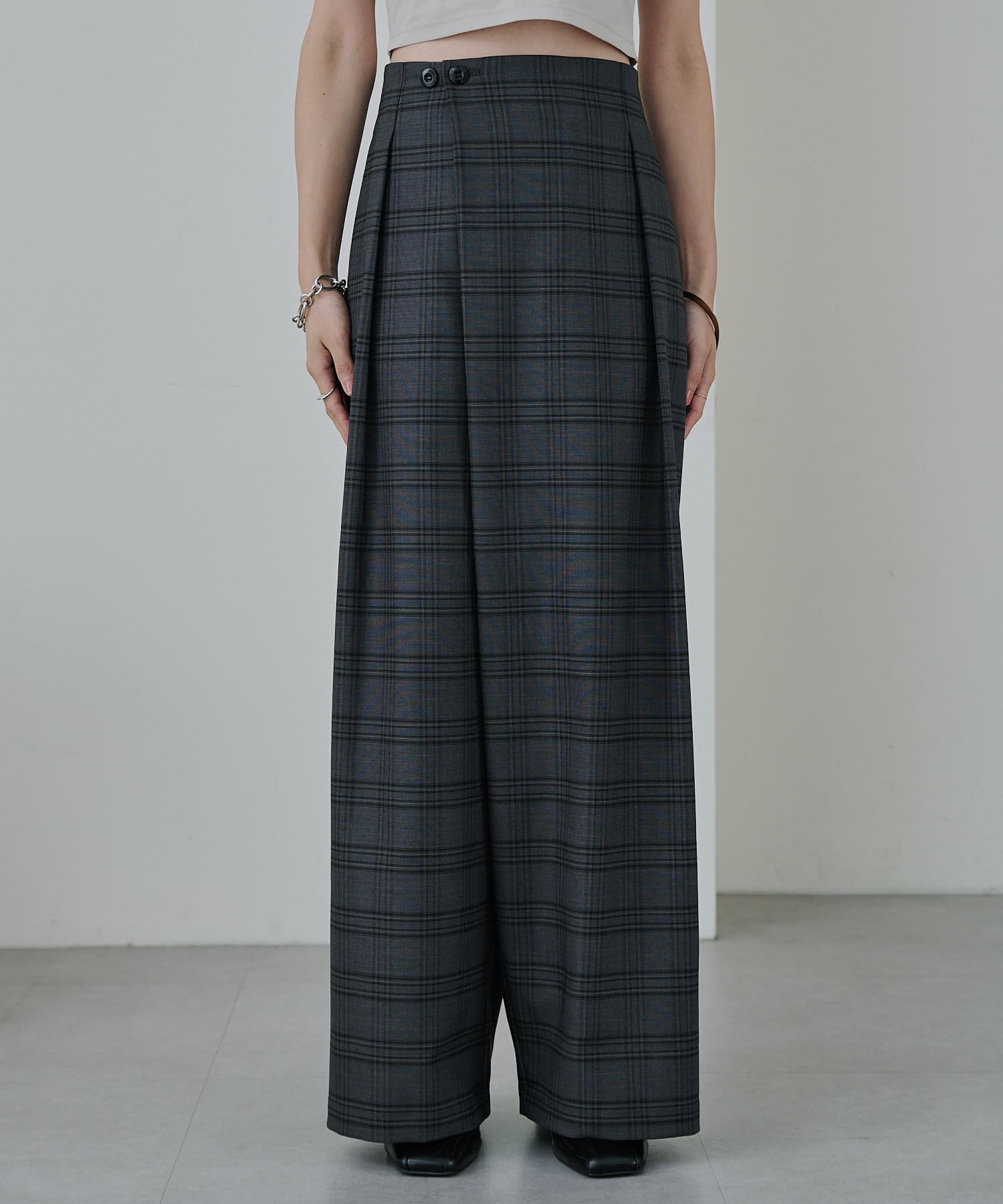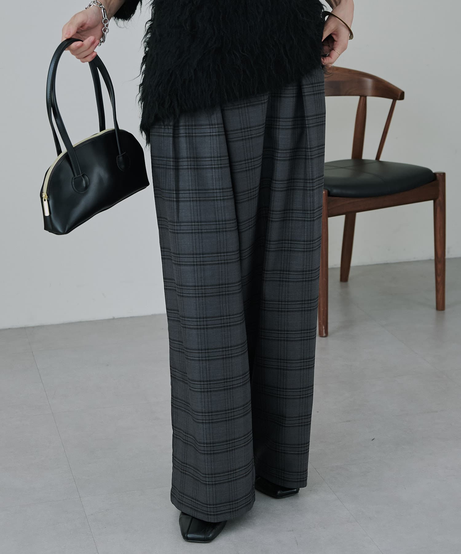 すとんと落ちるシルエットとタックの入ったウエストデザインですっきり一枚で決まるパンツ