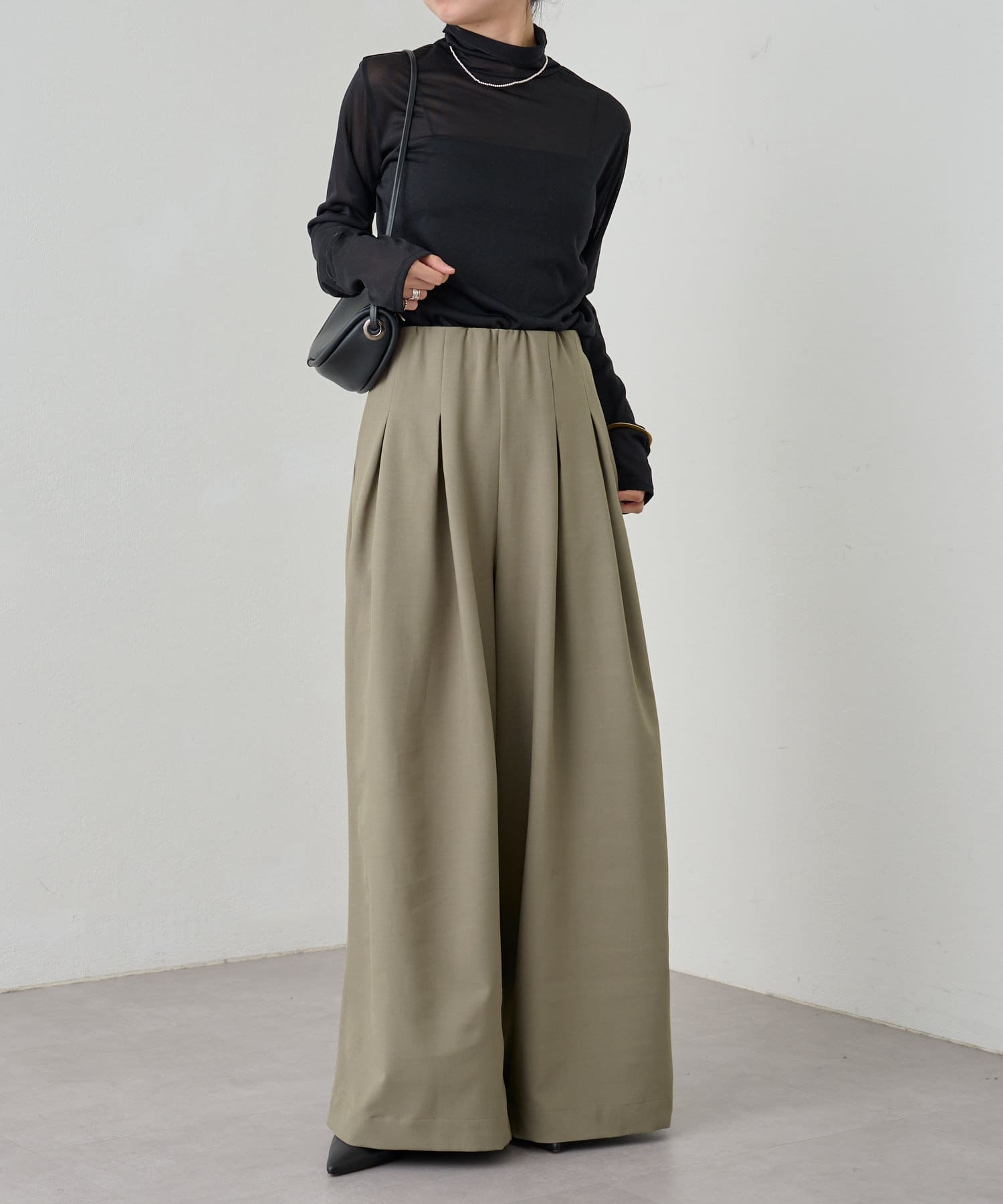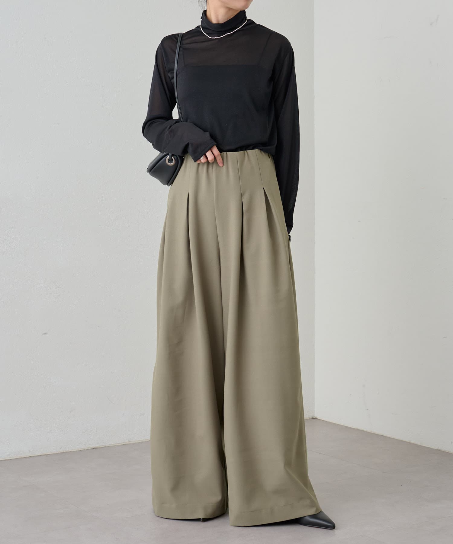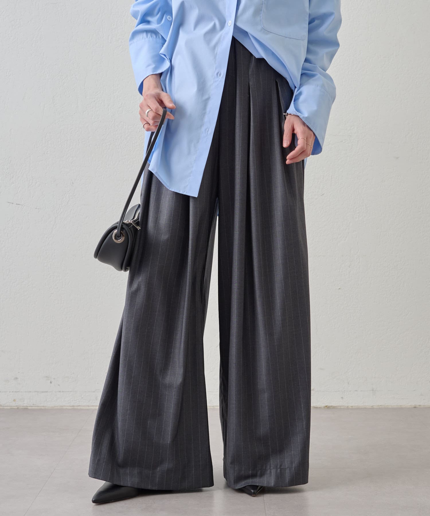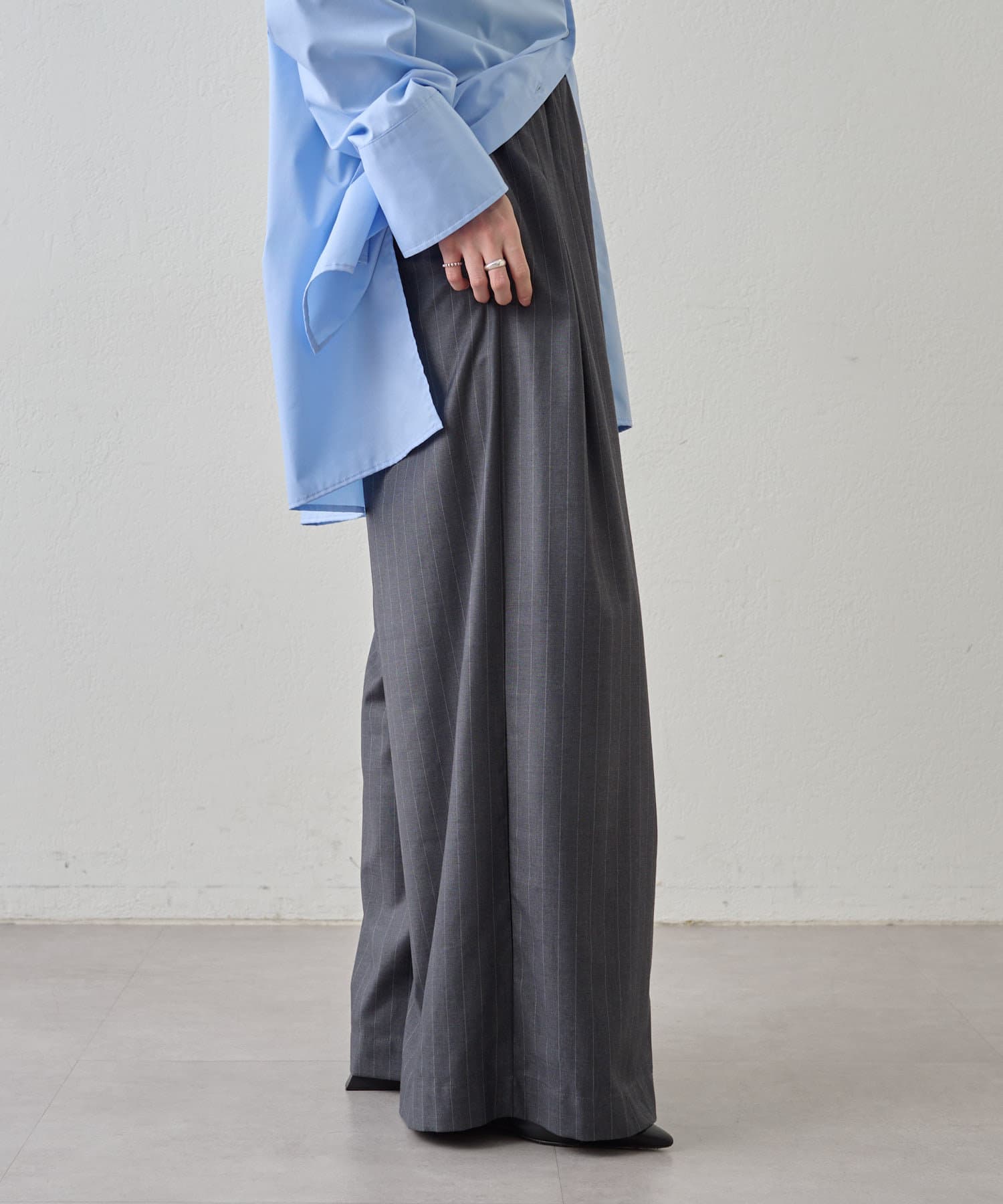 ・グレーは脚長効果も期待できるピンタックデザイン。