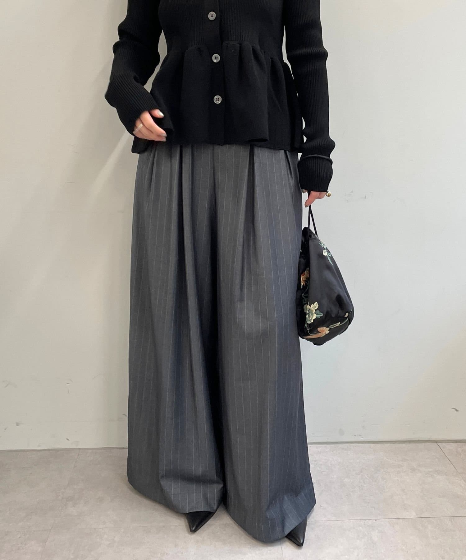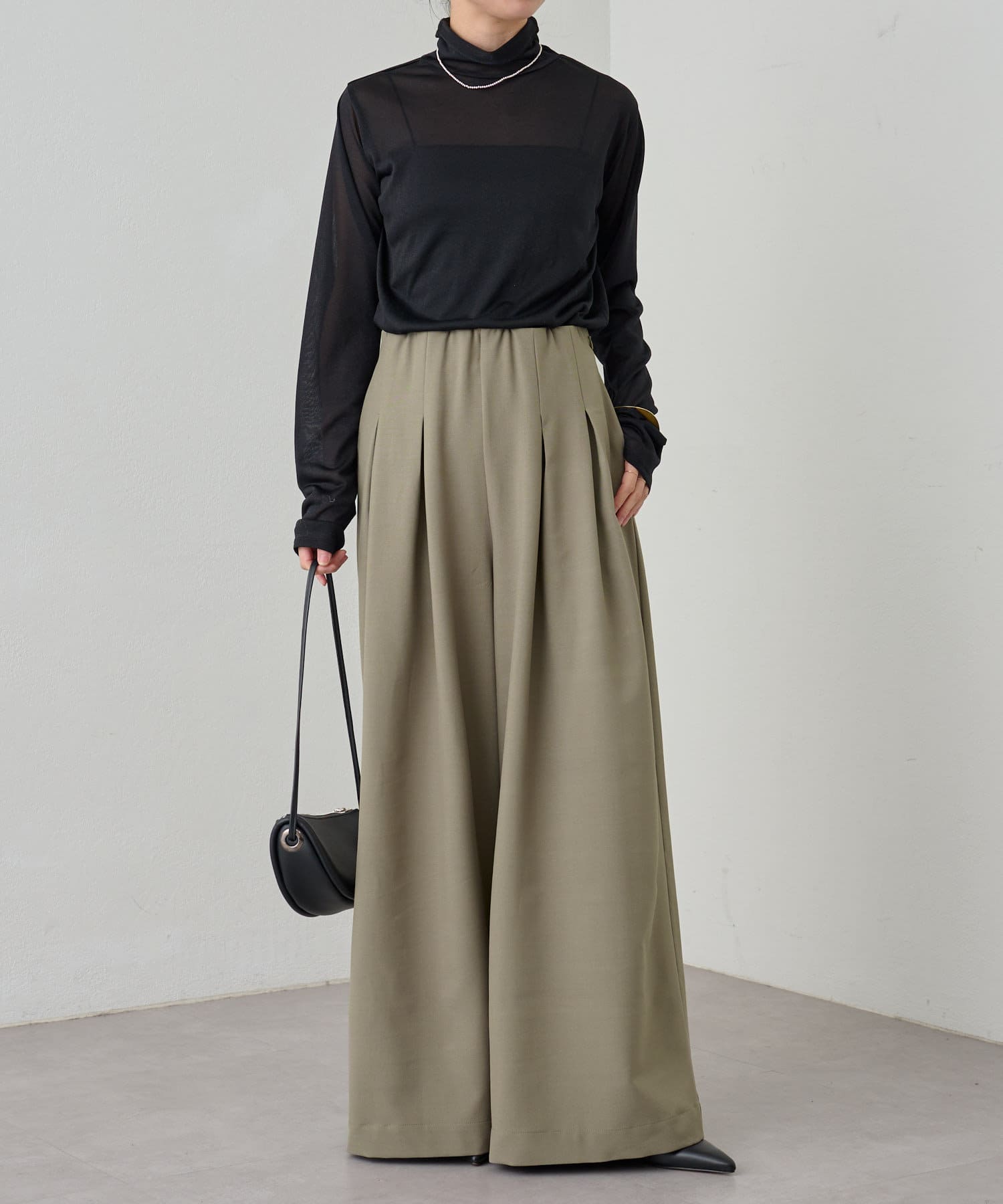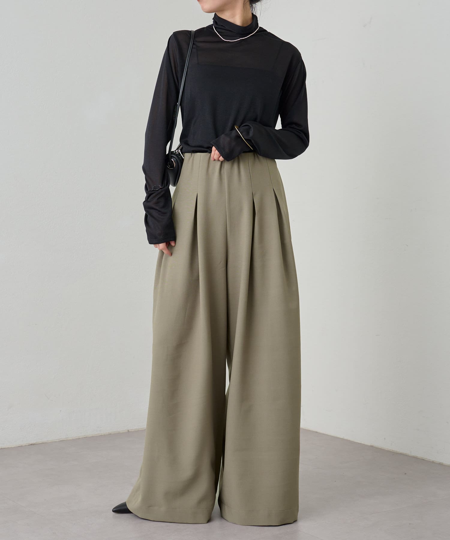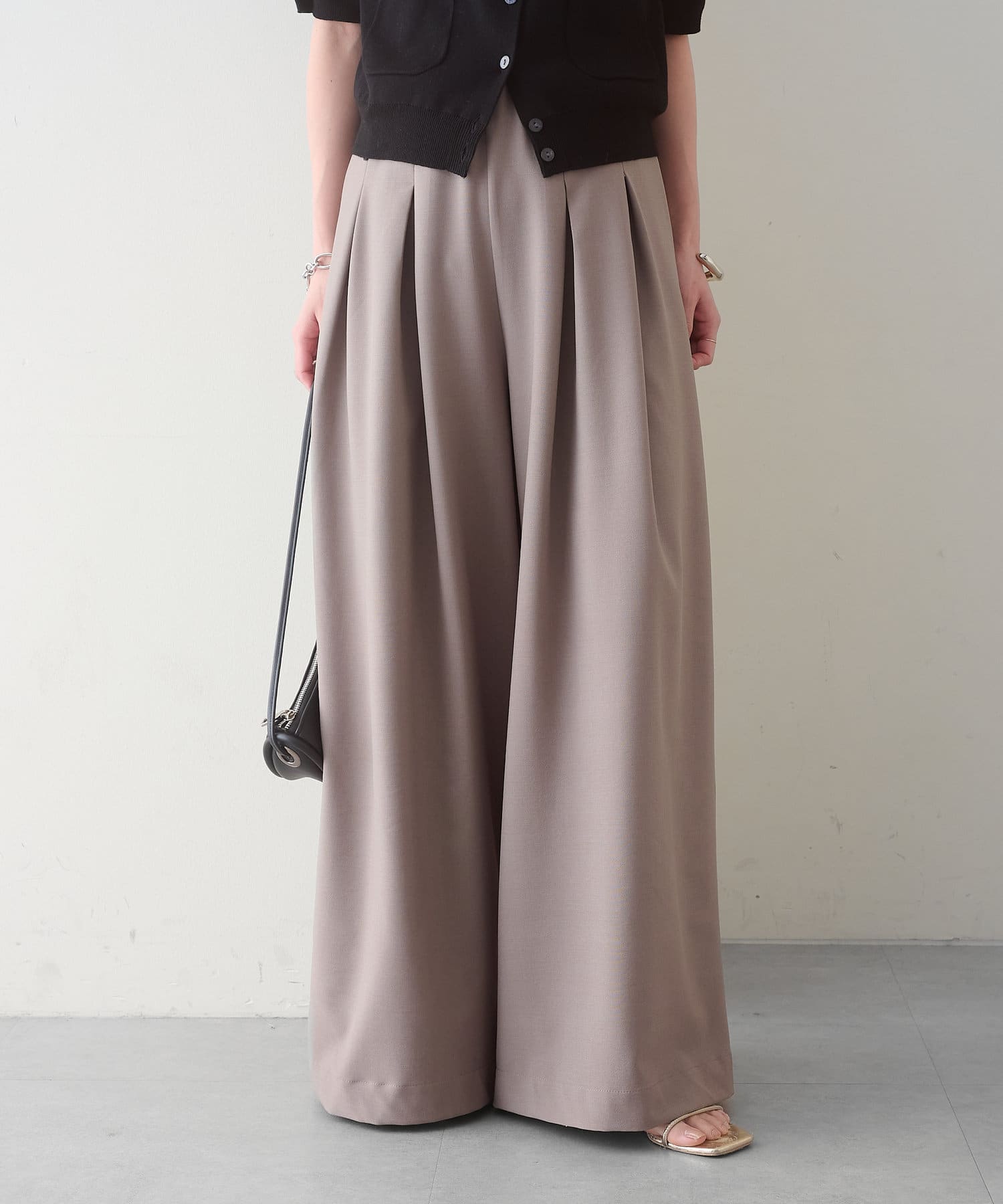 ・グレーは脚長効果も期待できるピンタックデザイン。