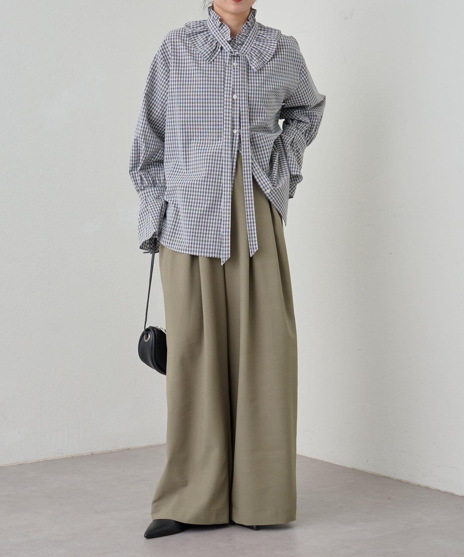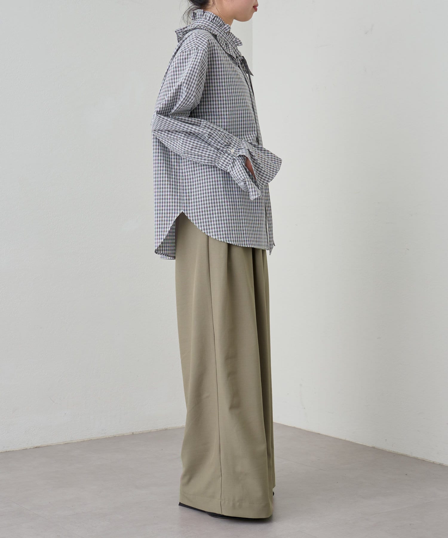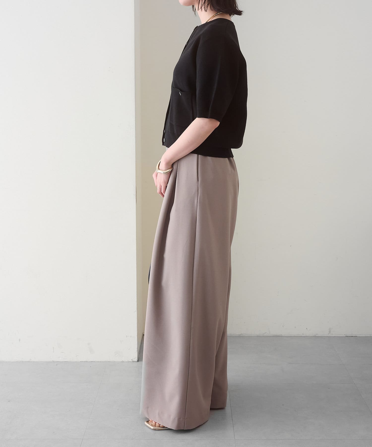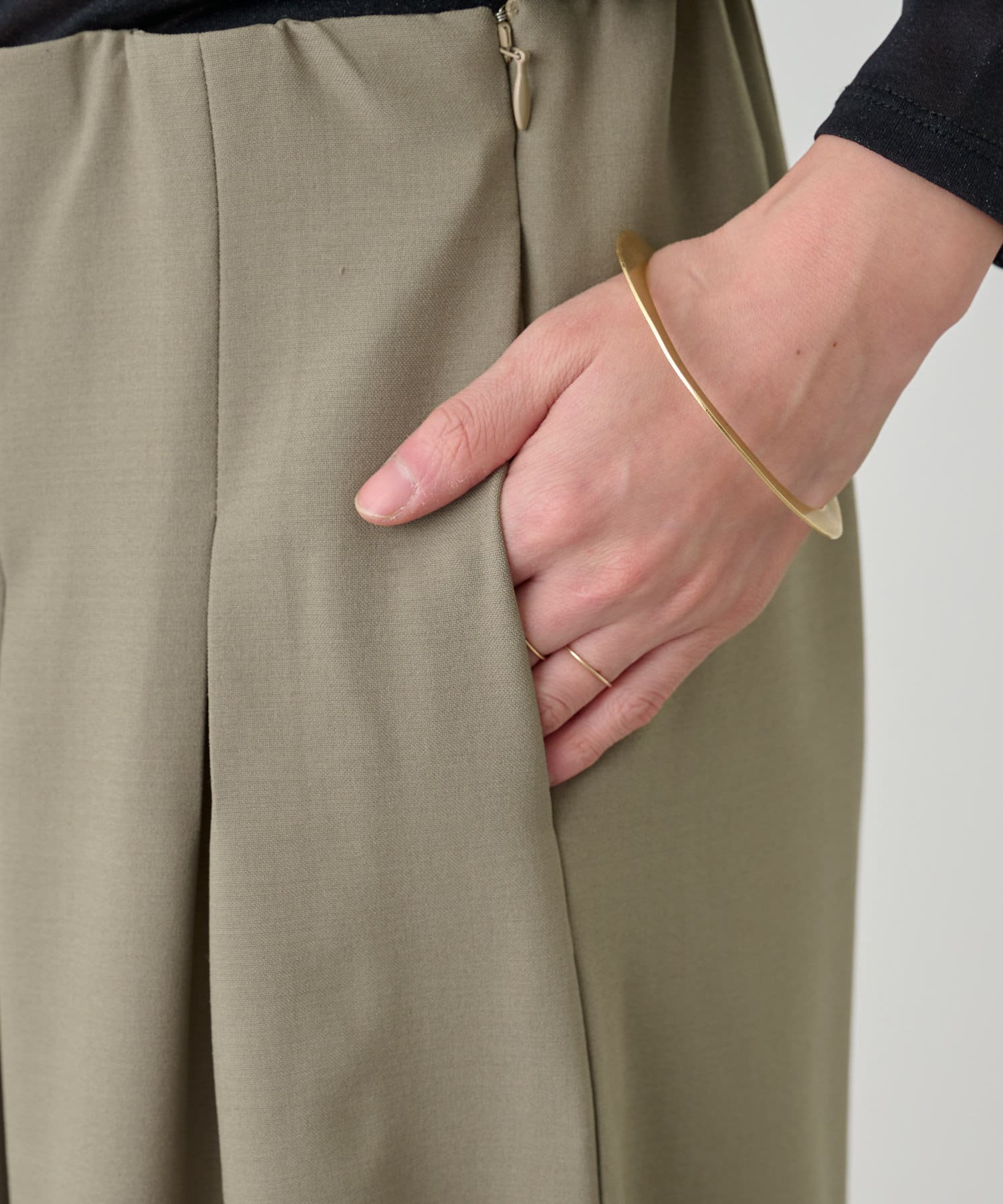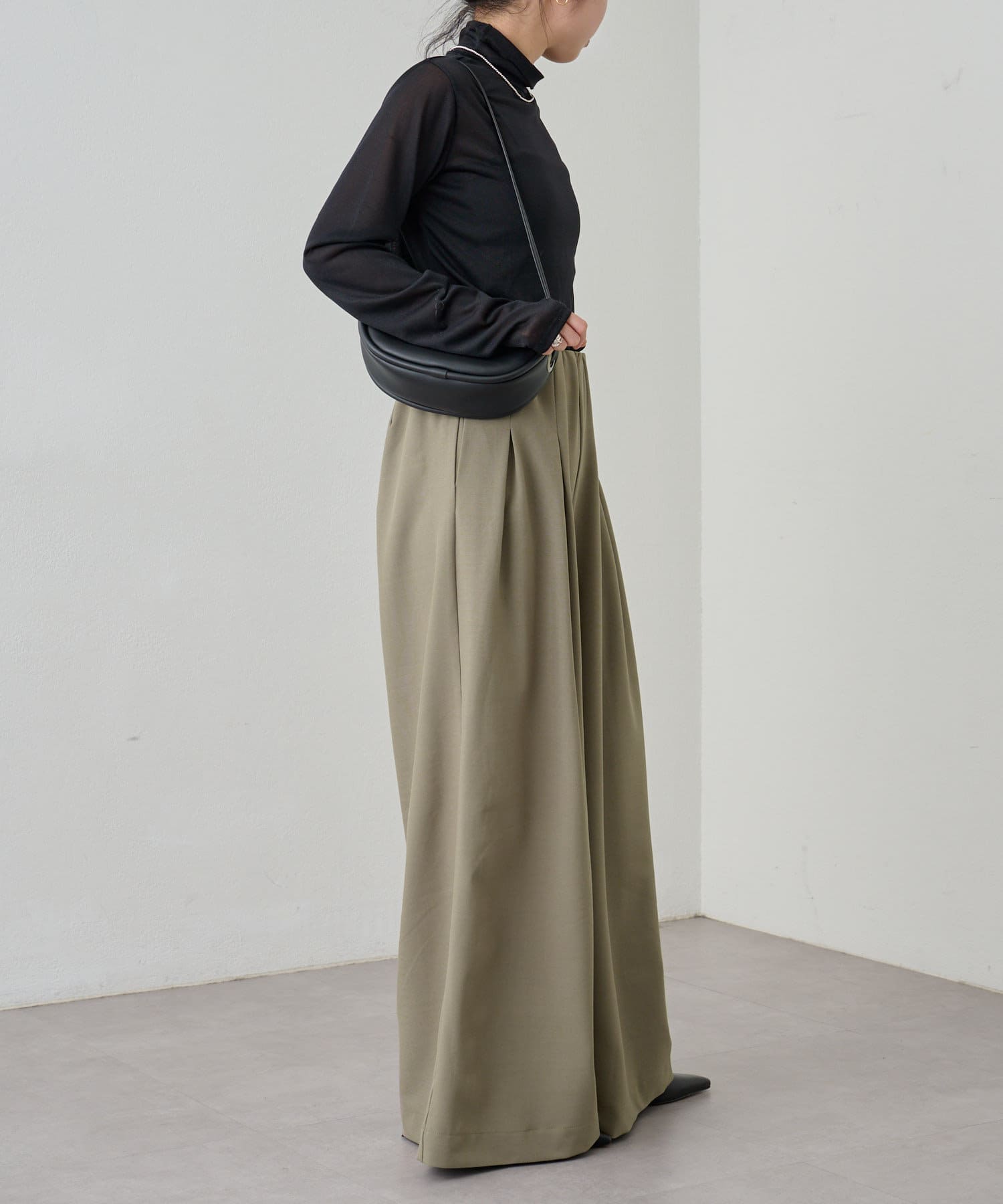 ・グレーは脚長効果も期待できるピンタックデザイン。