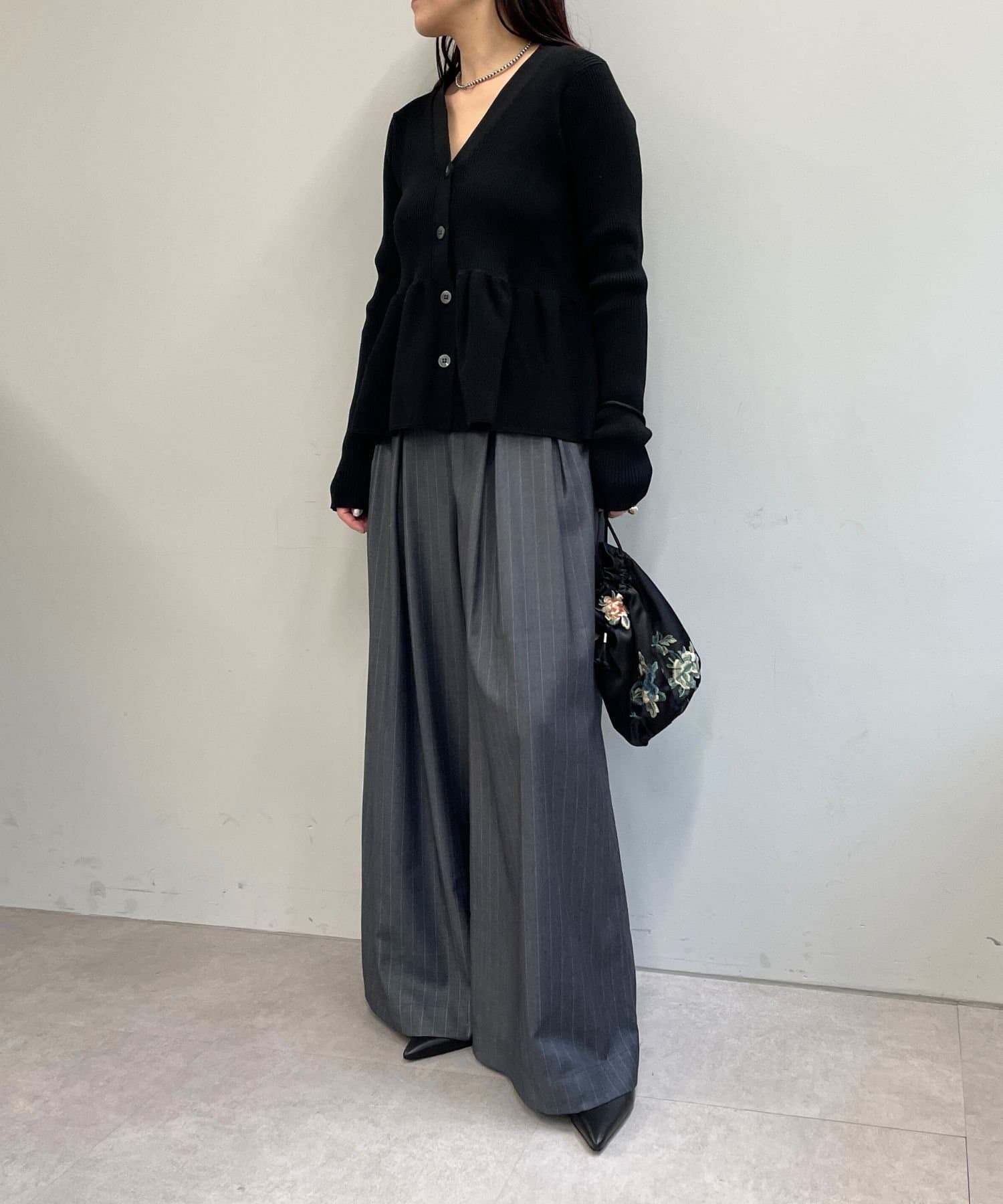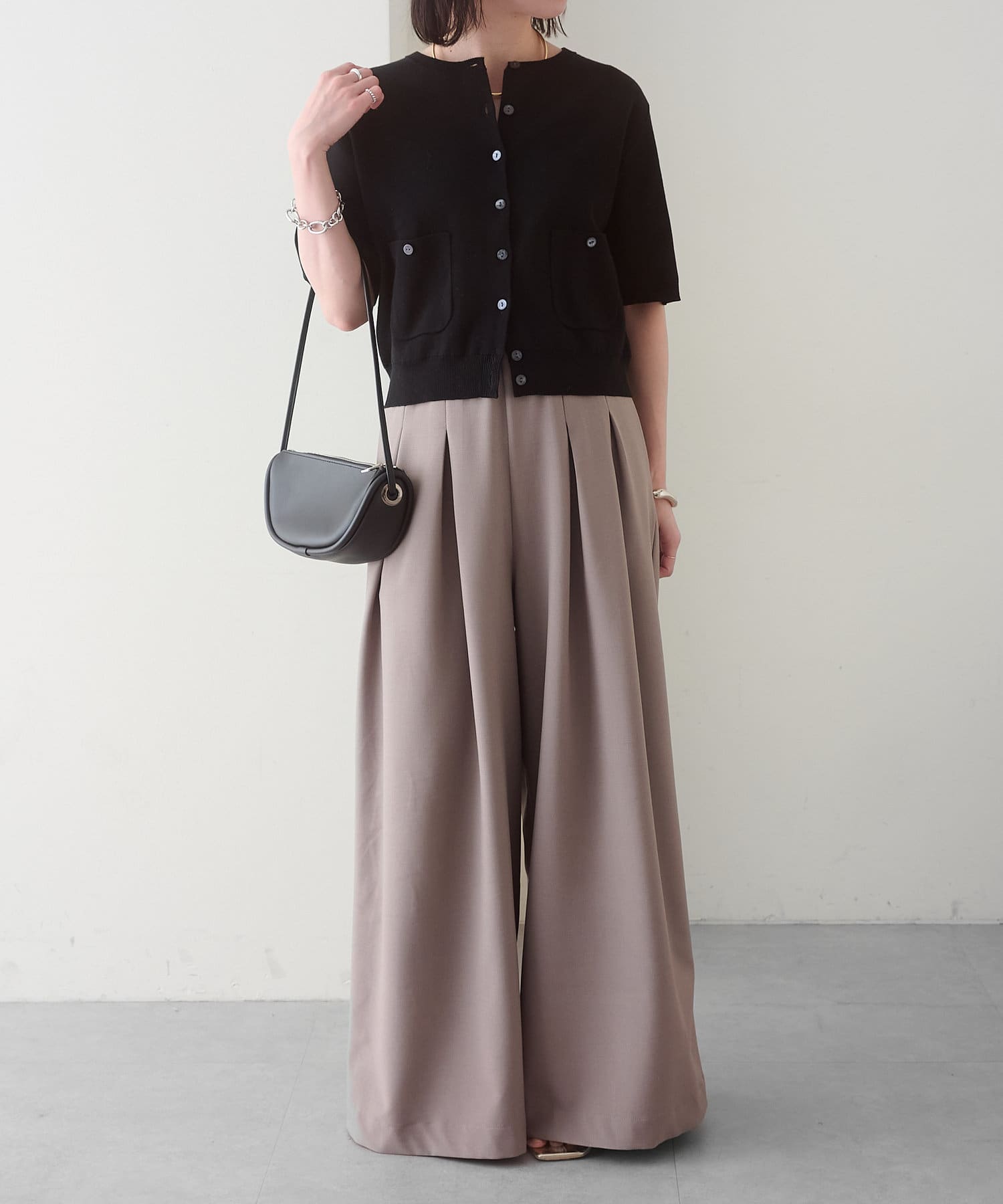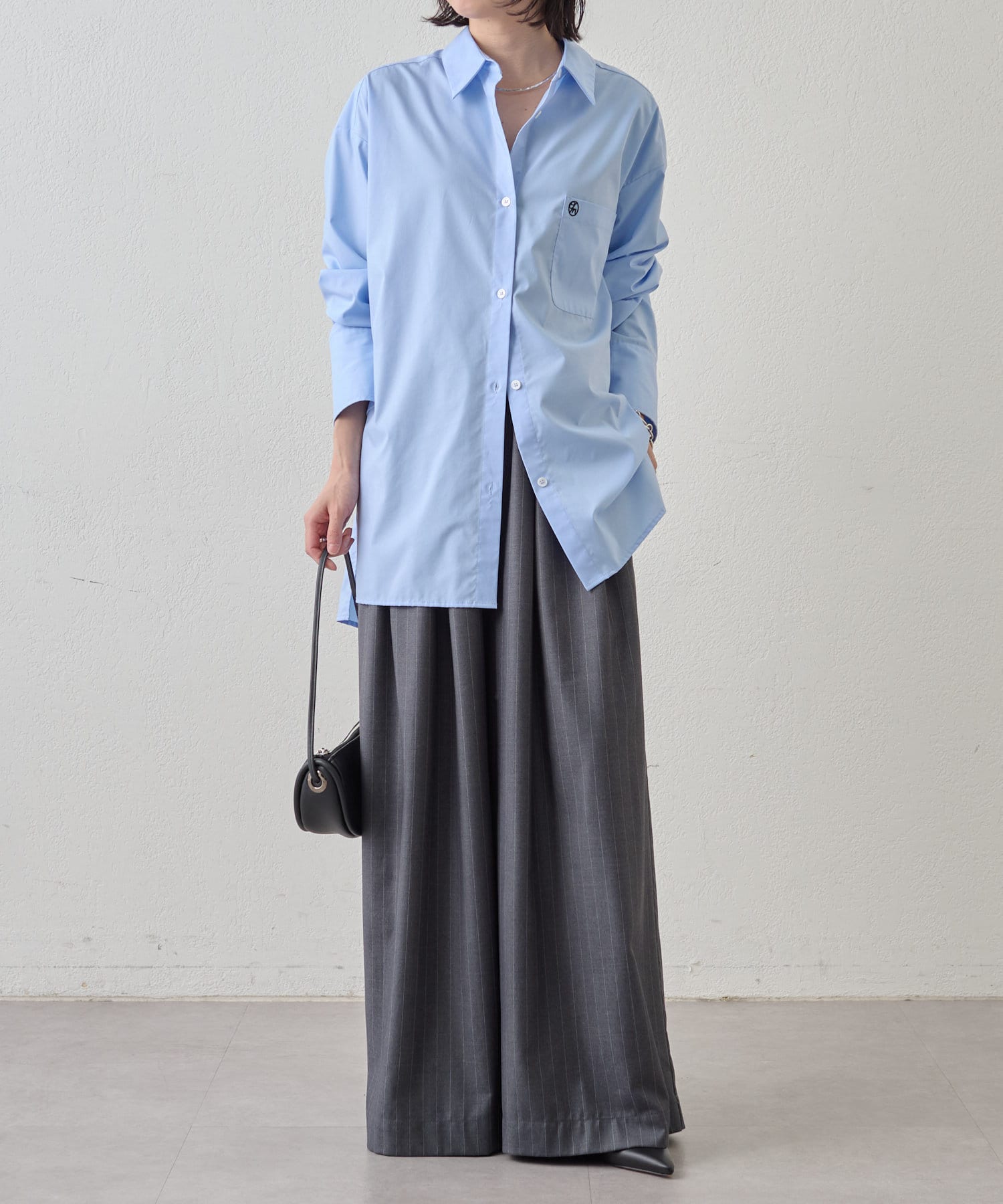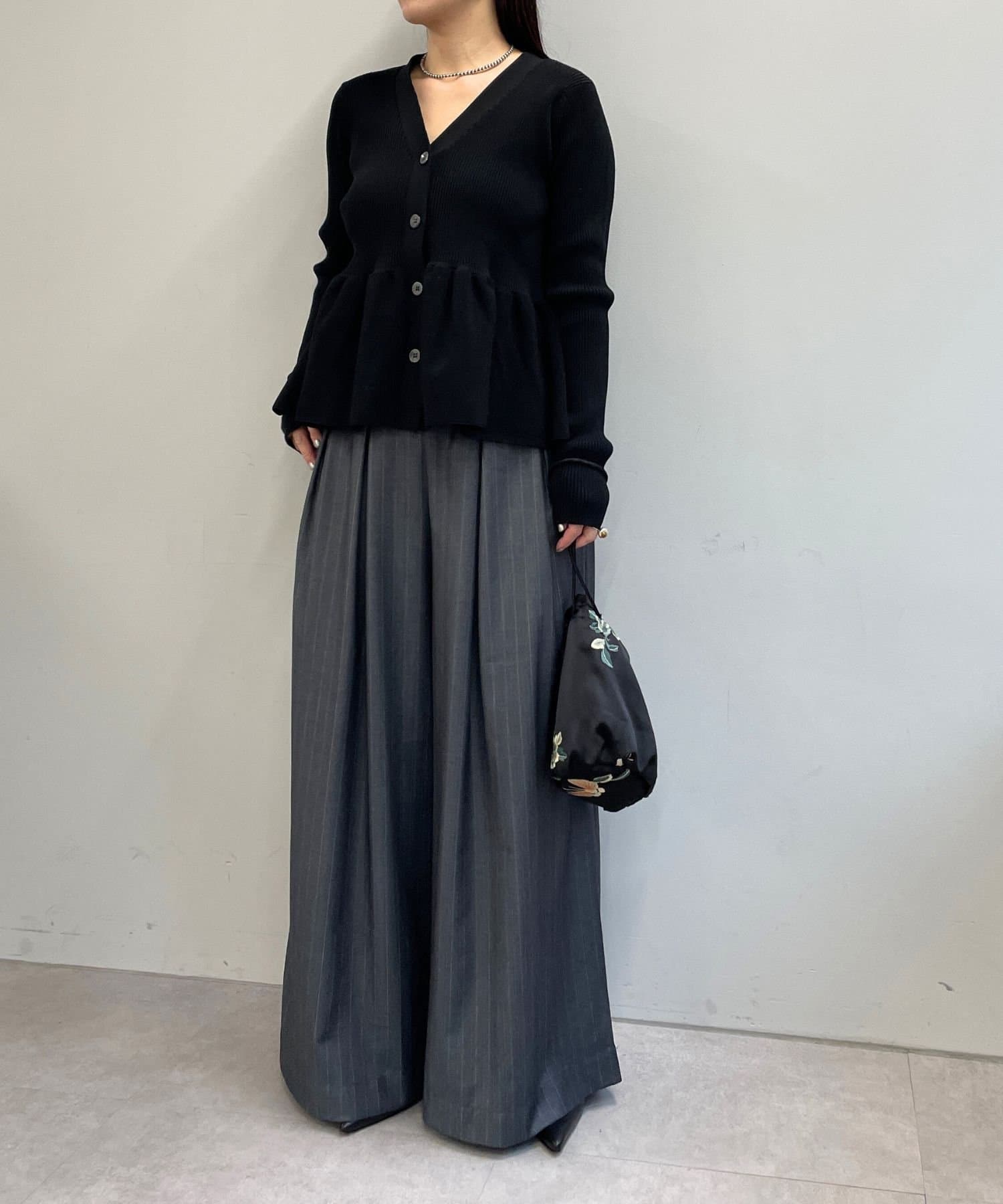 ・グレーは脚長効果も期待できるピンタックデザイン。
