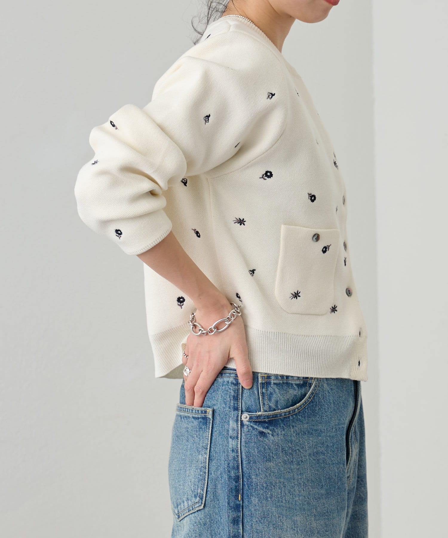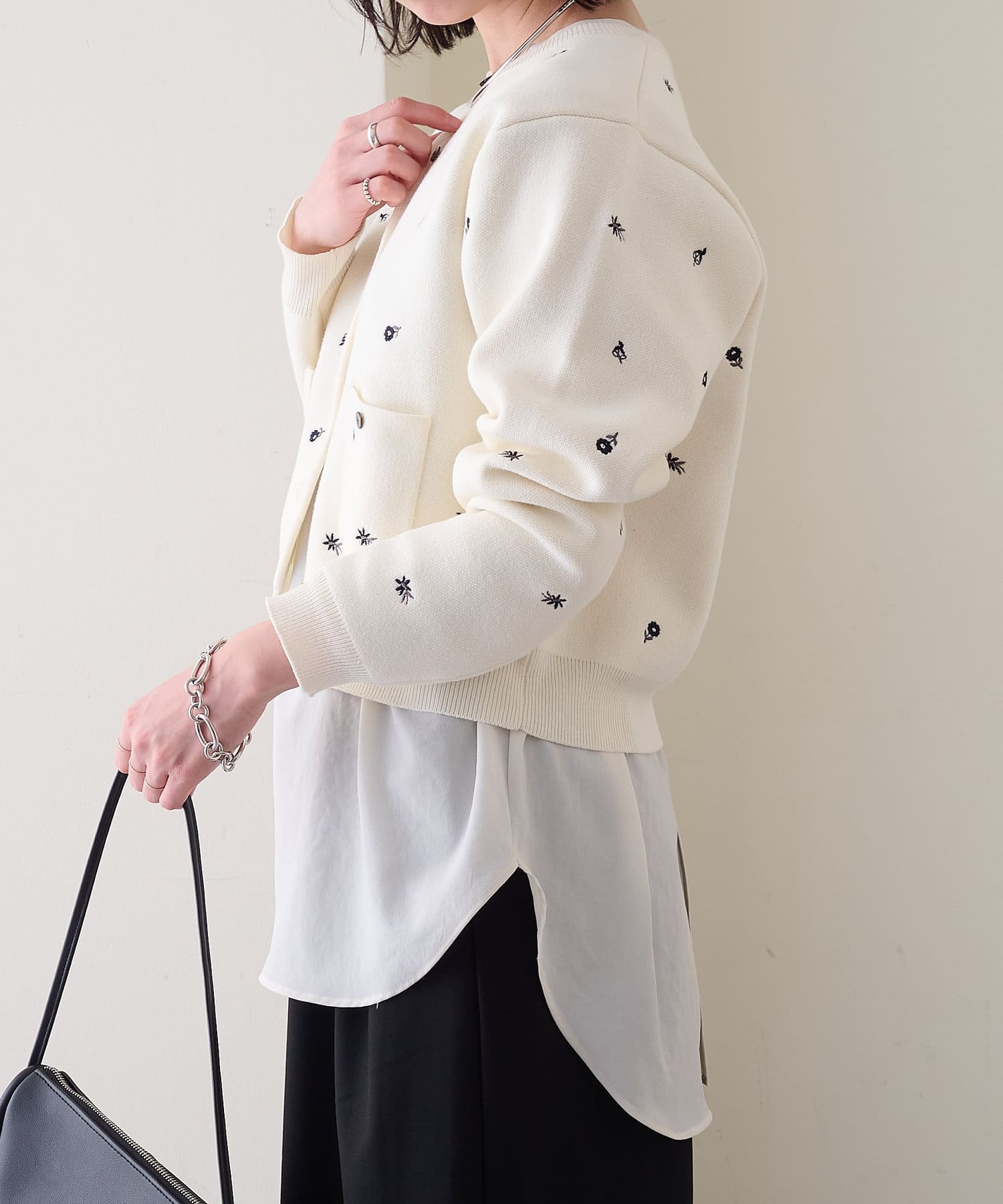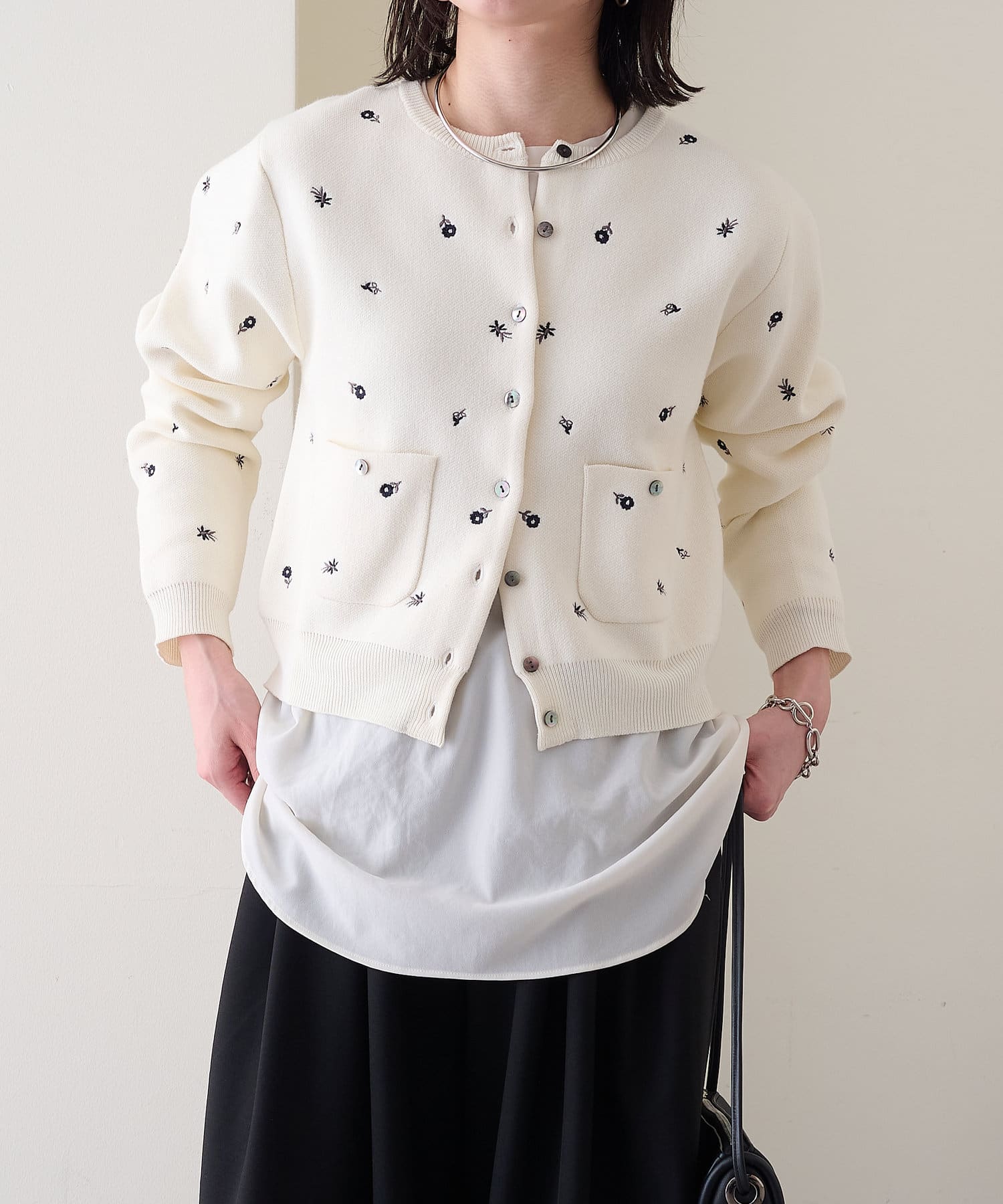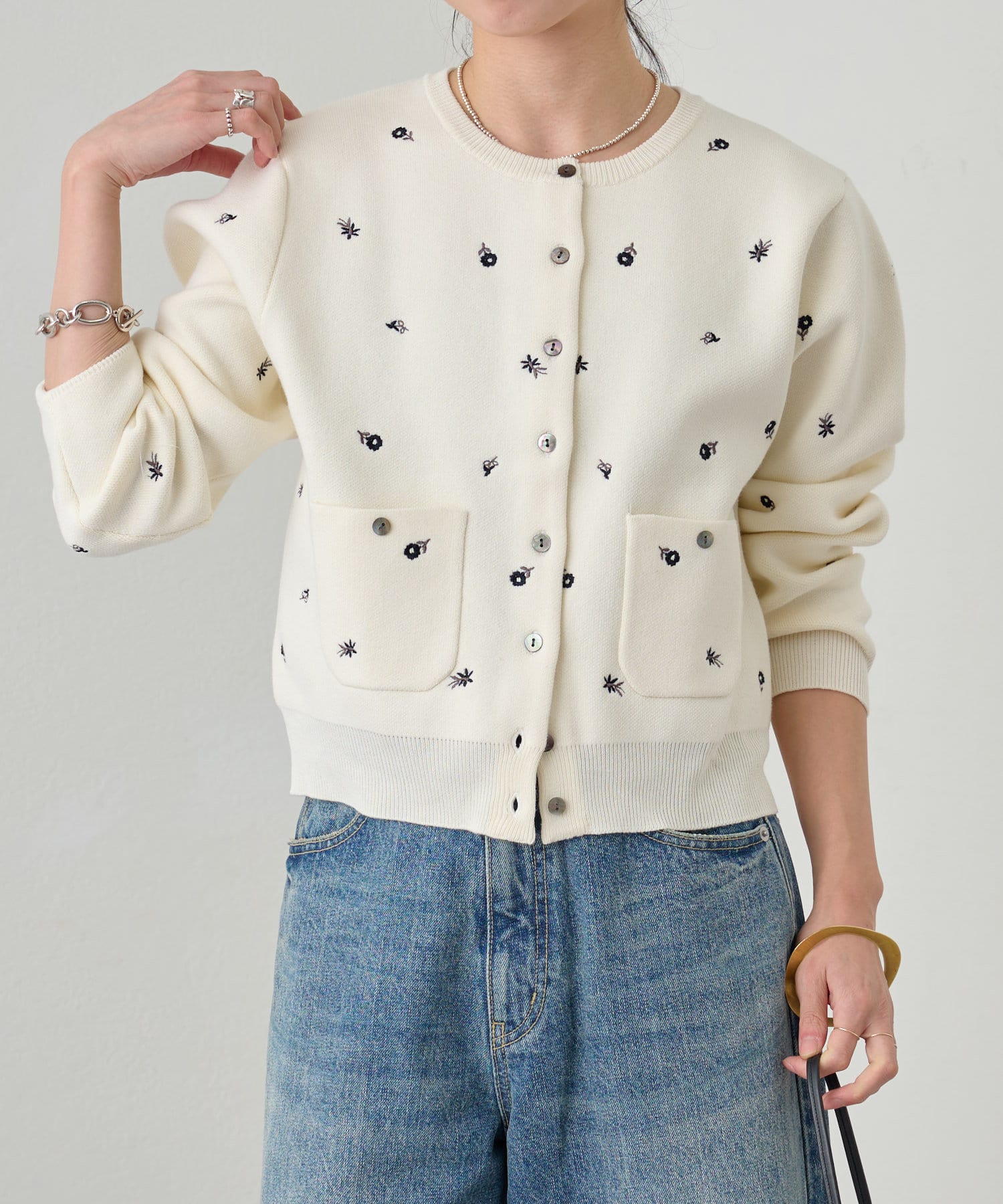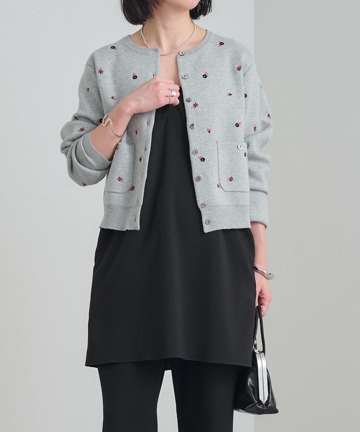【春の着映えアイテム◎】刺繍スウェットライクポケットカーディガン