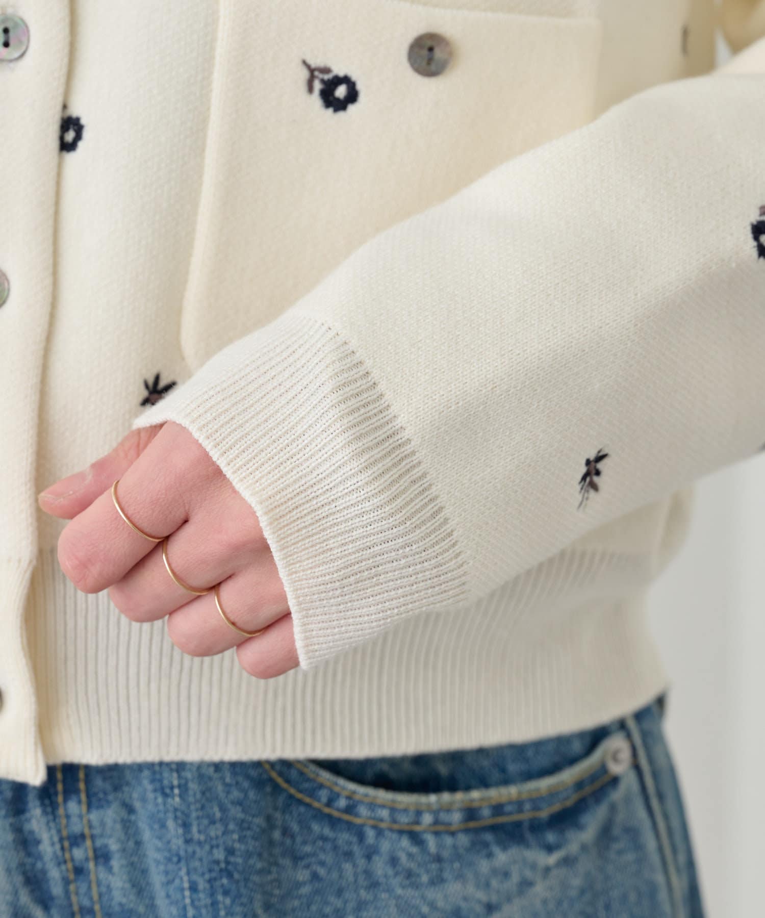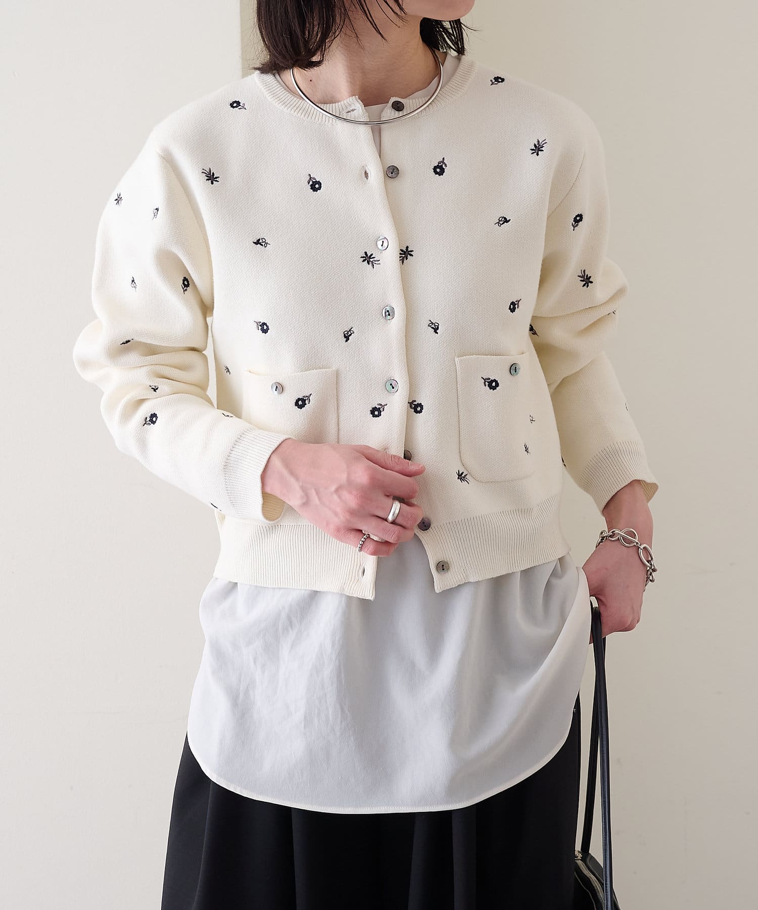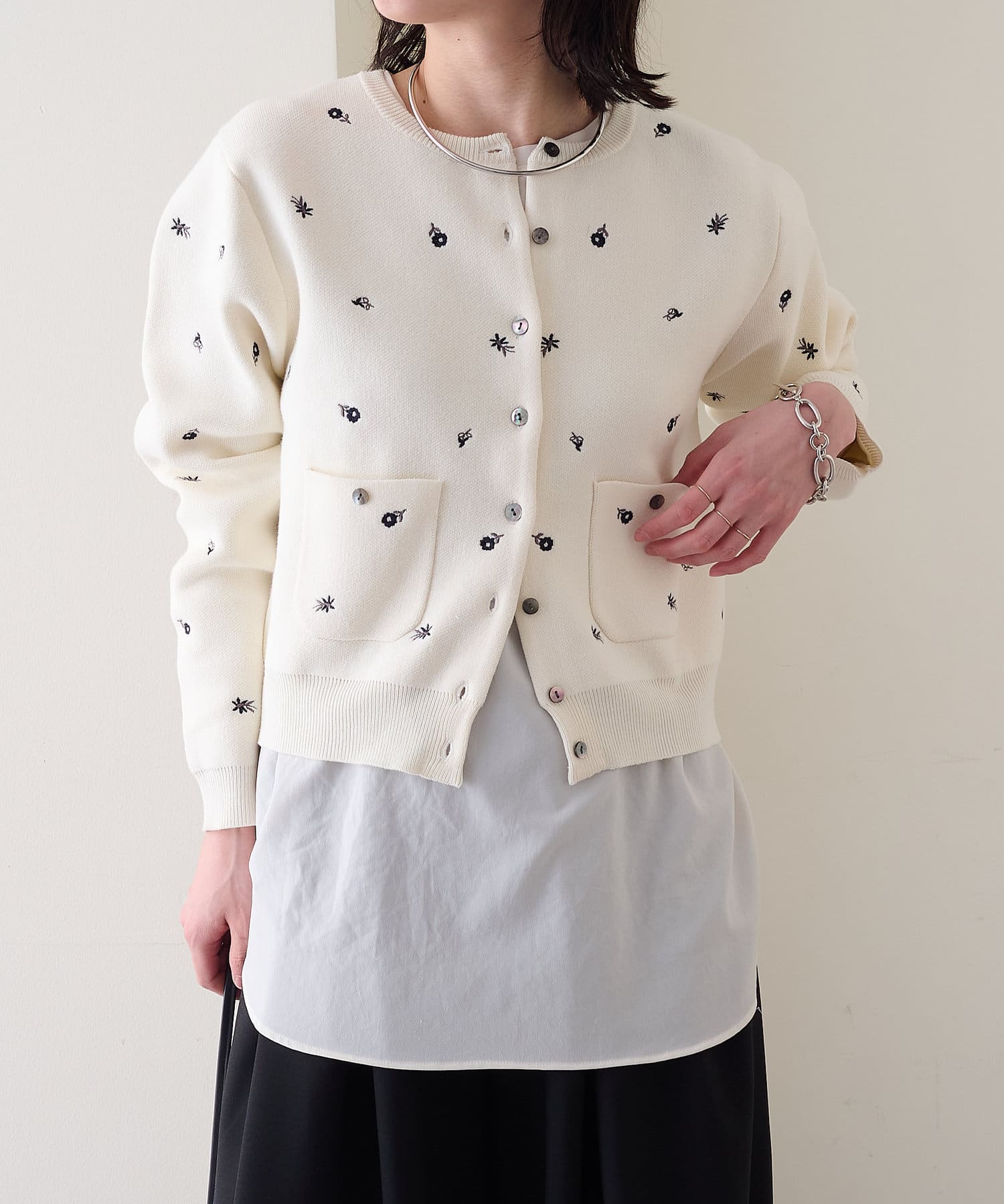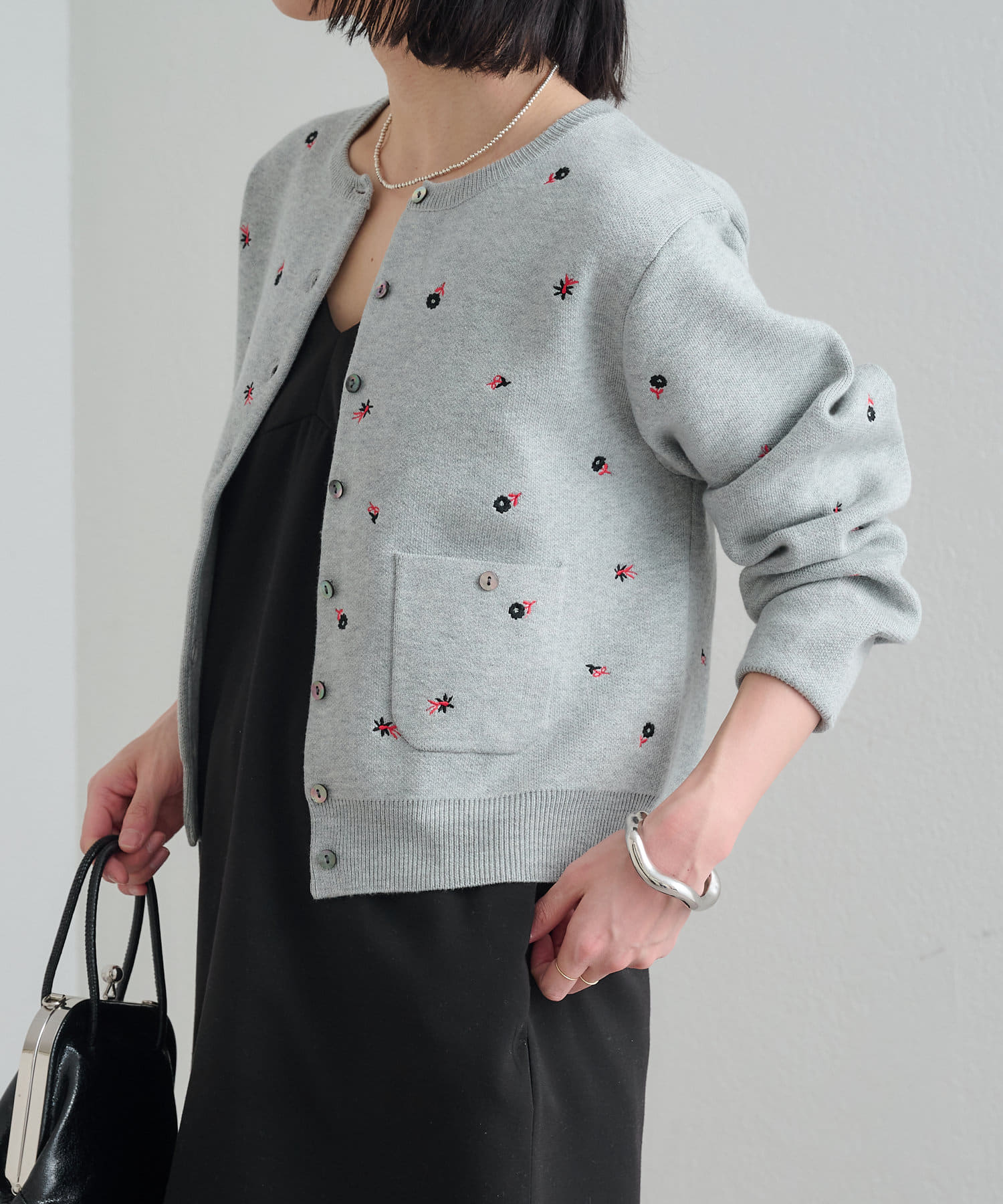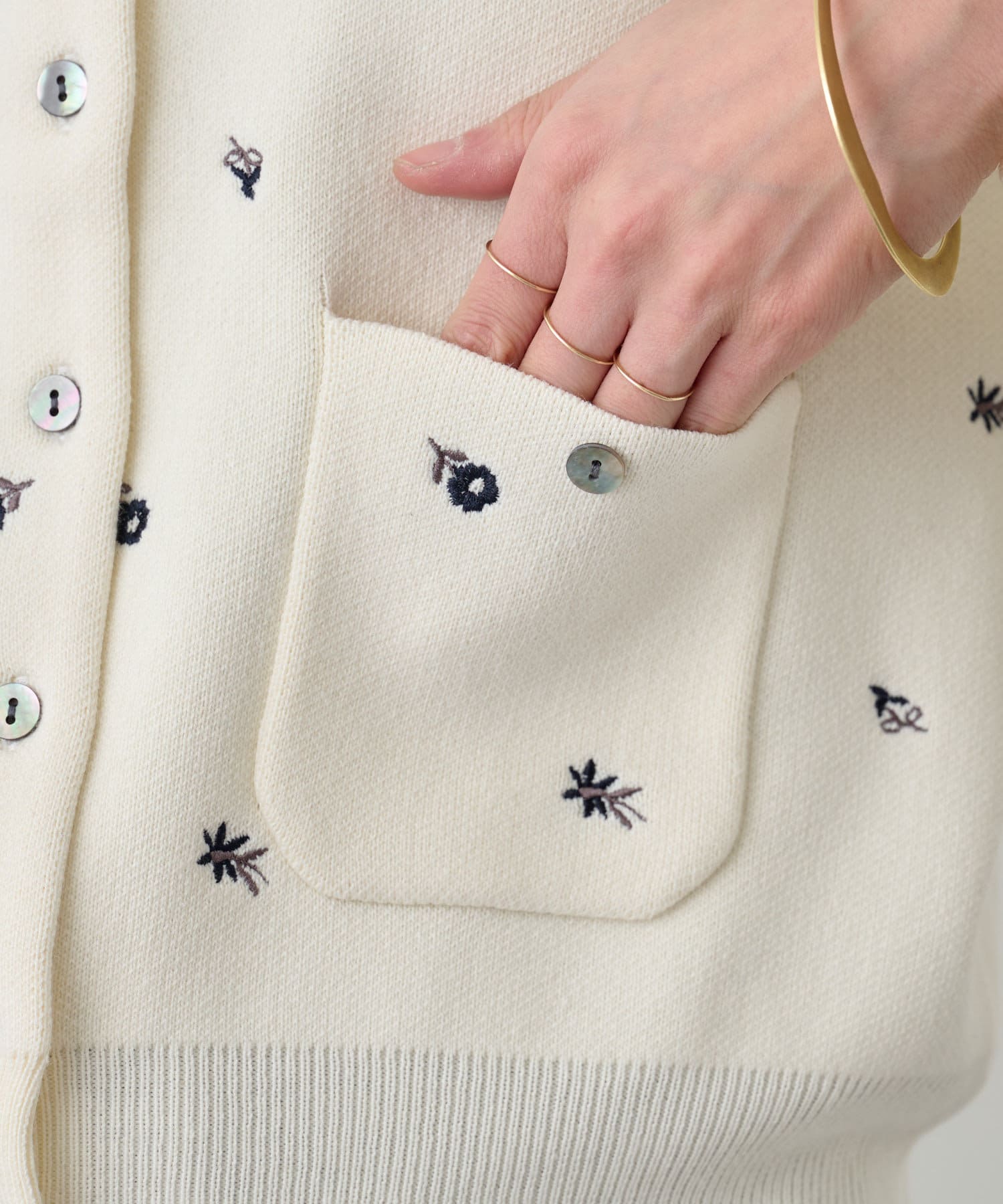 【春の着映えアイテム◎】刺繍スウェットライクポケットカーディガン