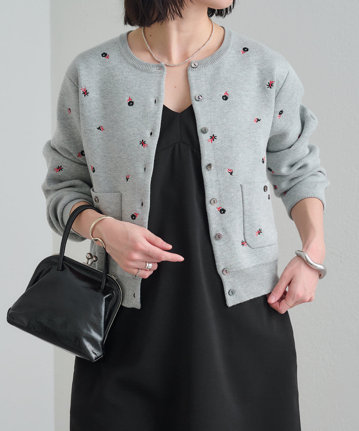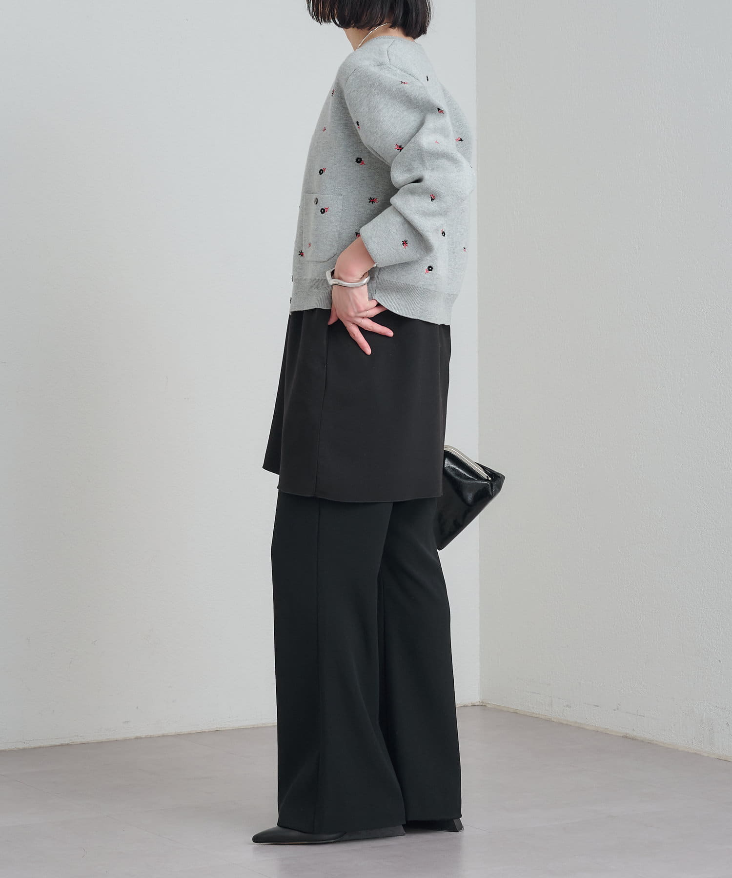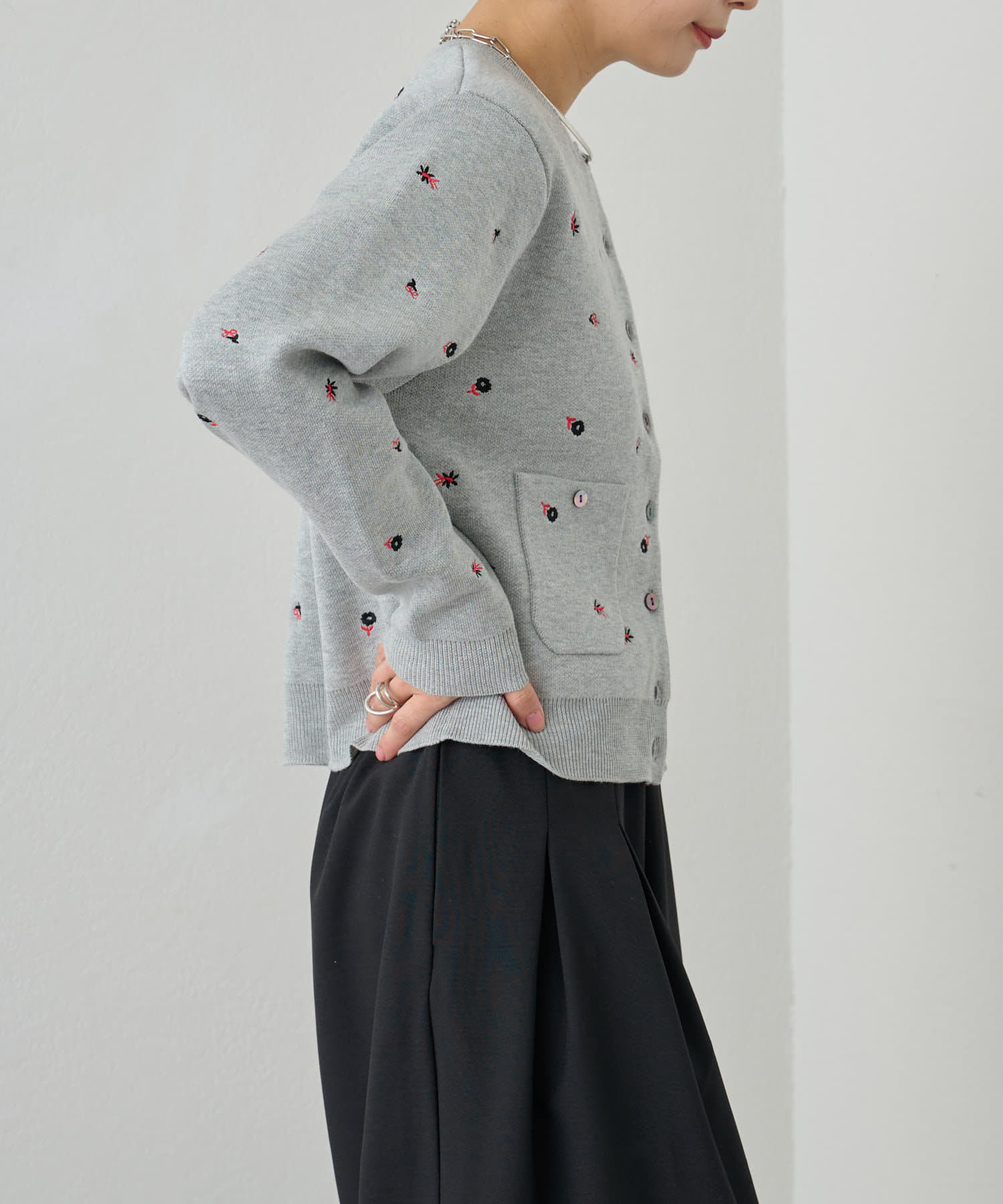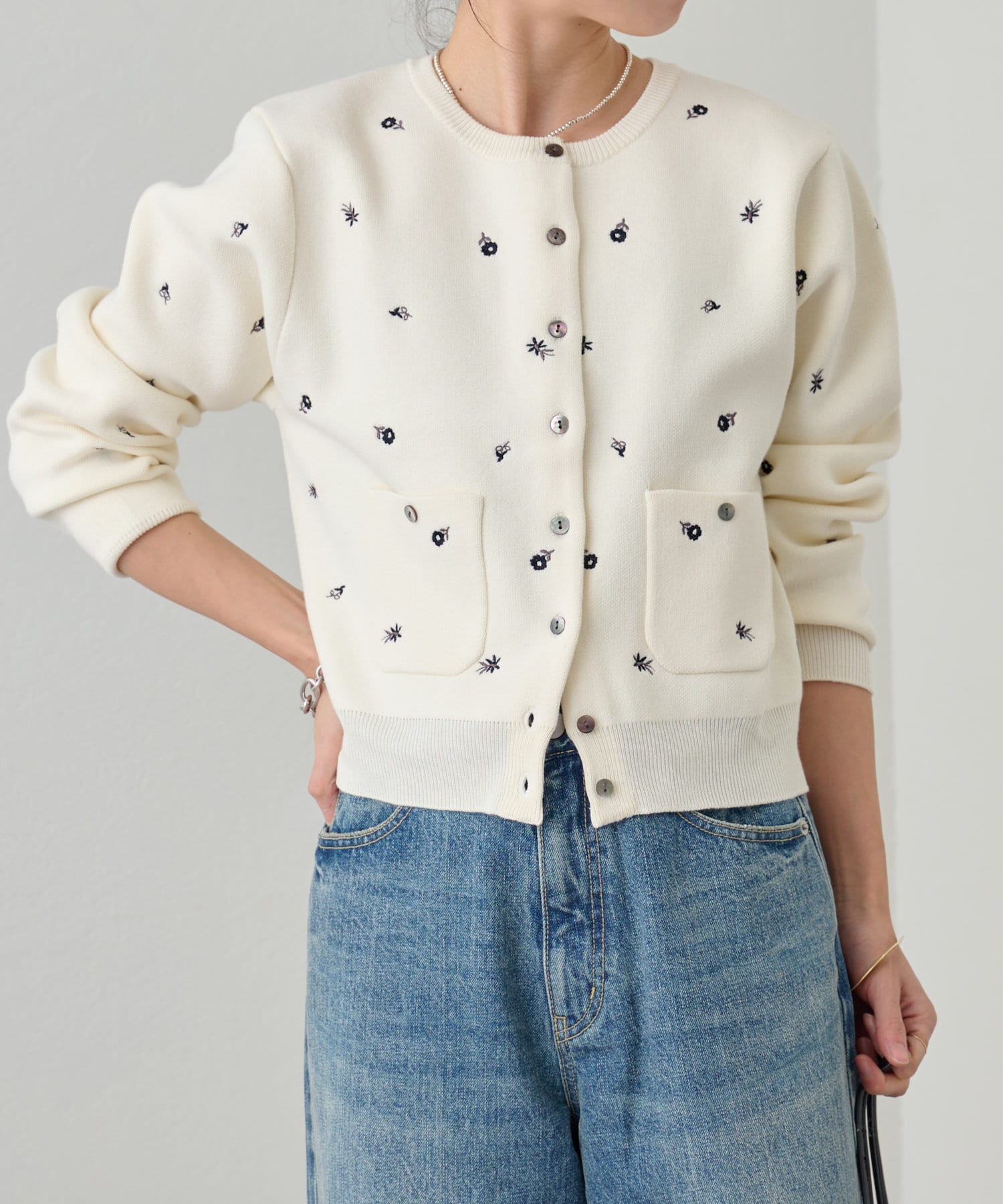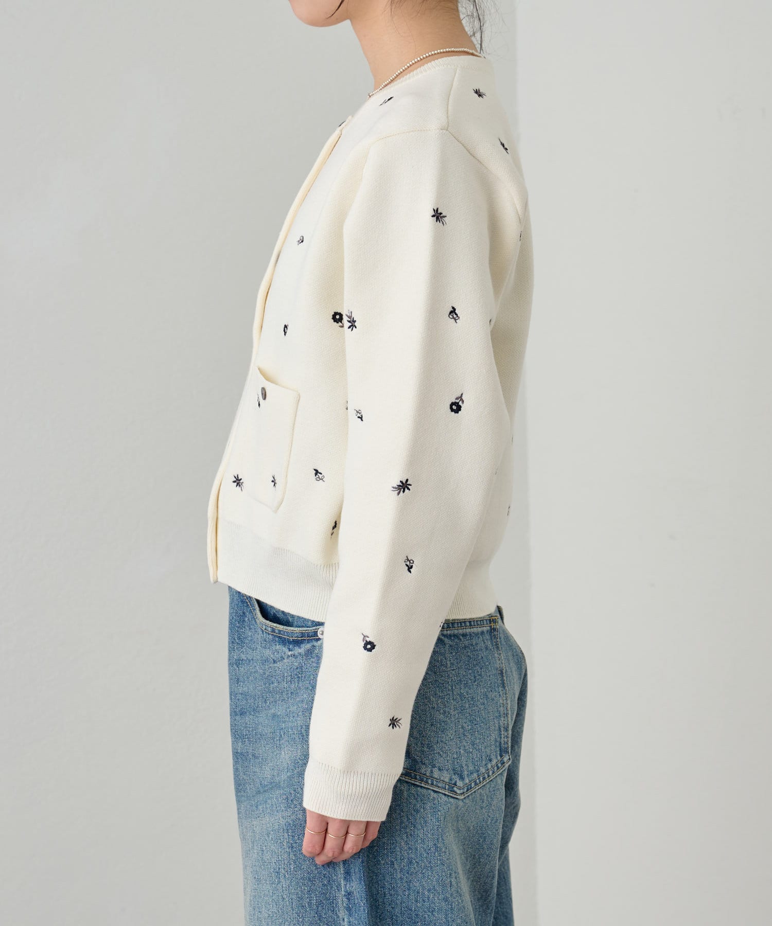 【春の着映えアイテム◎】刺繍スウェットライクポケットカーディガン