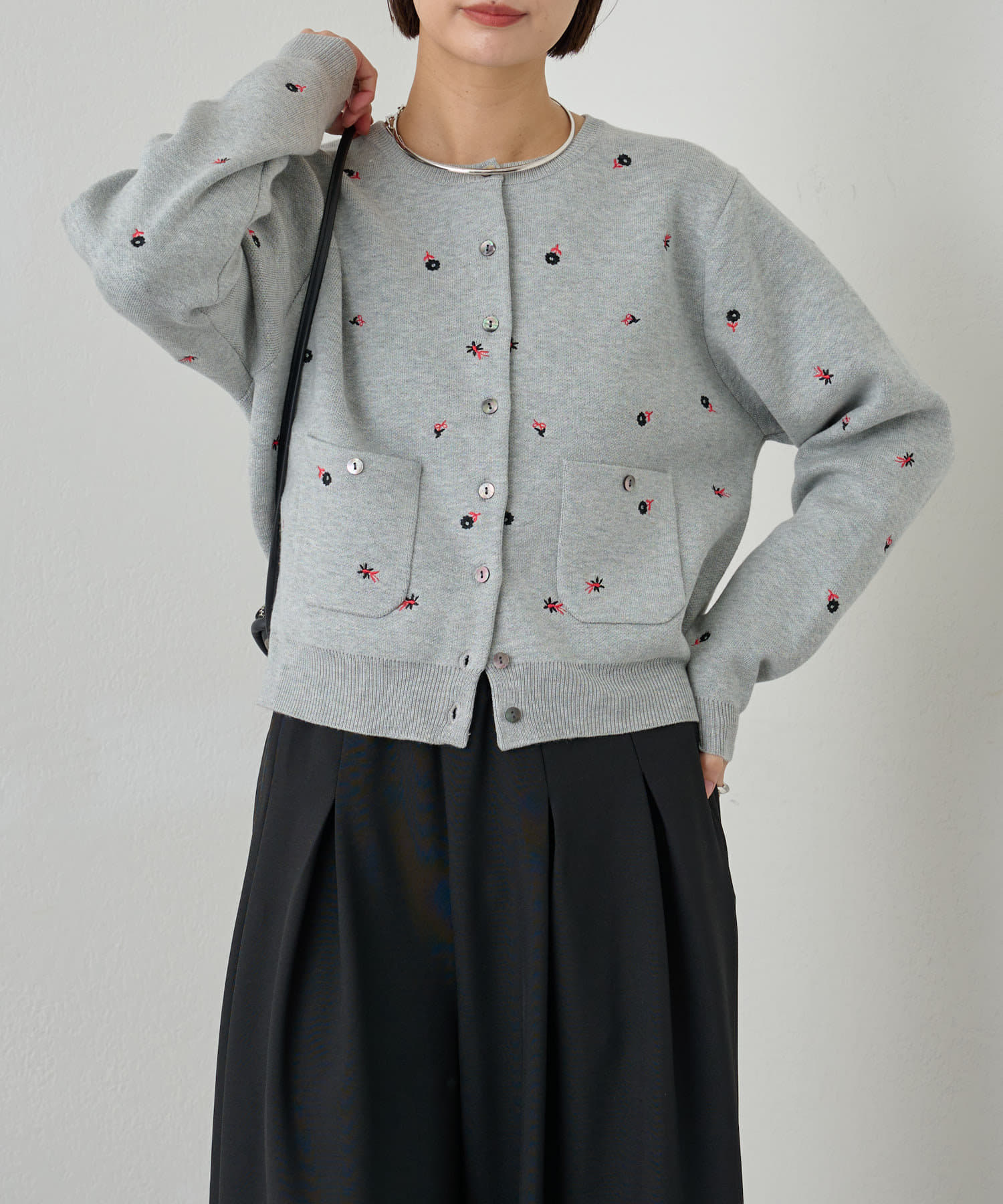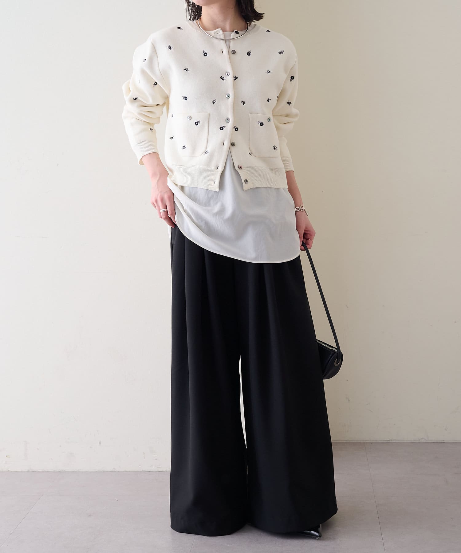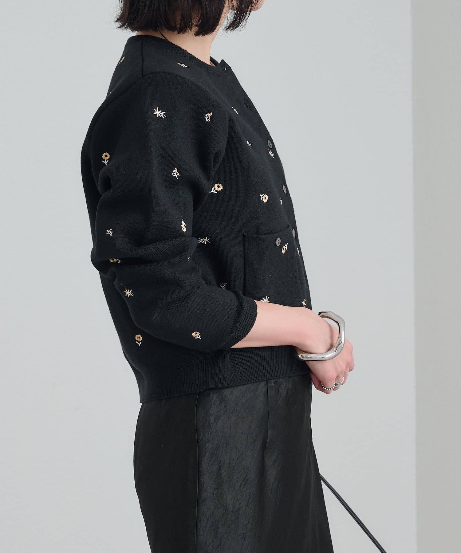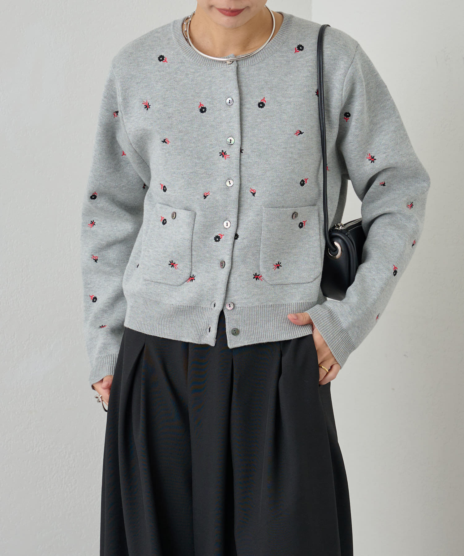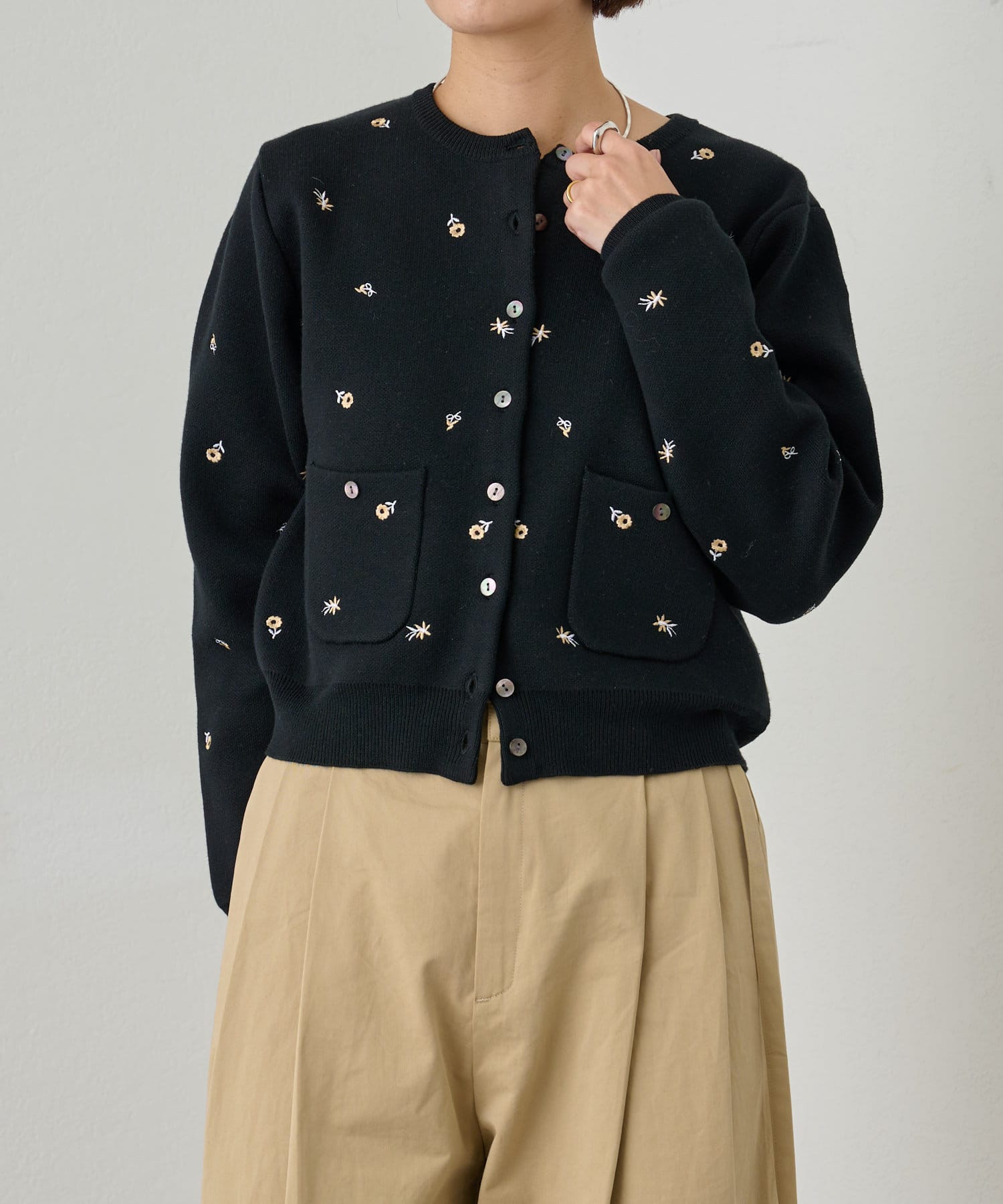 【春の着映えアイテム◎】刺繍スウェットライクポケットカーディガン