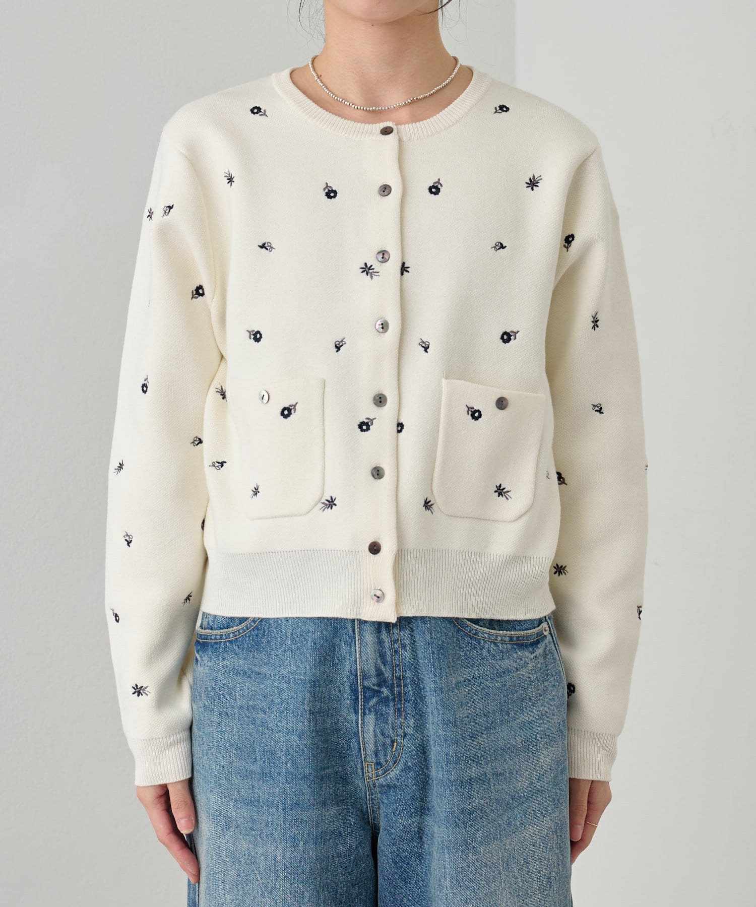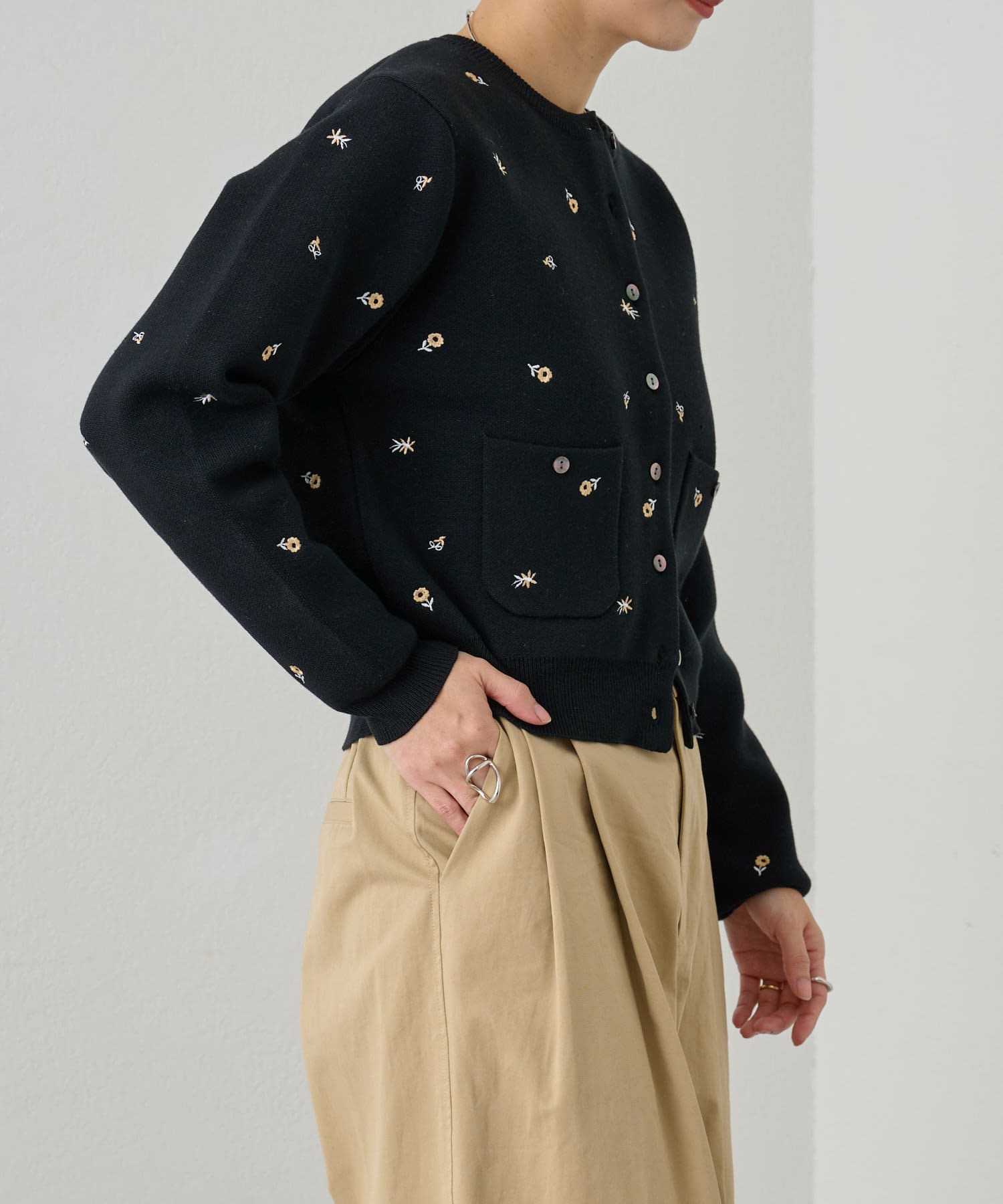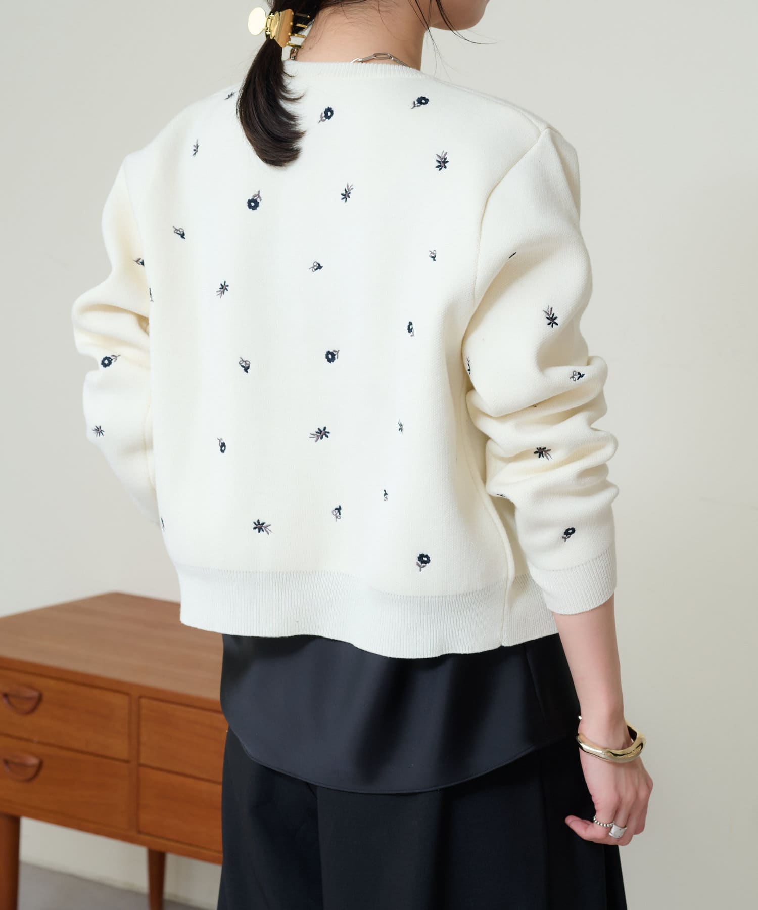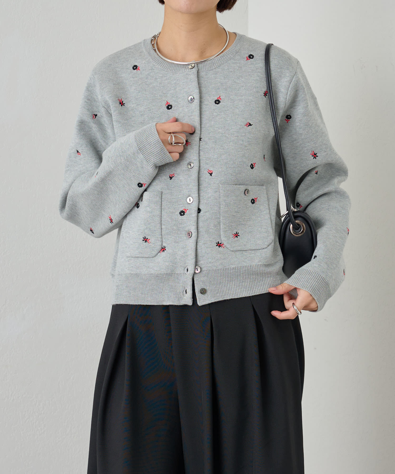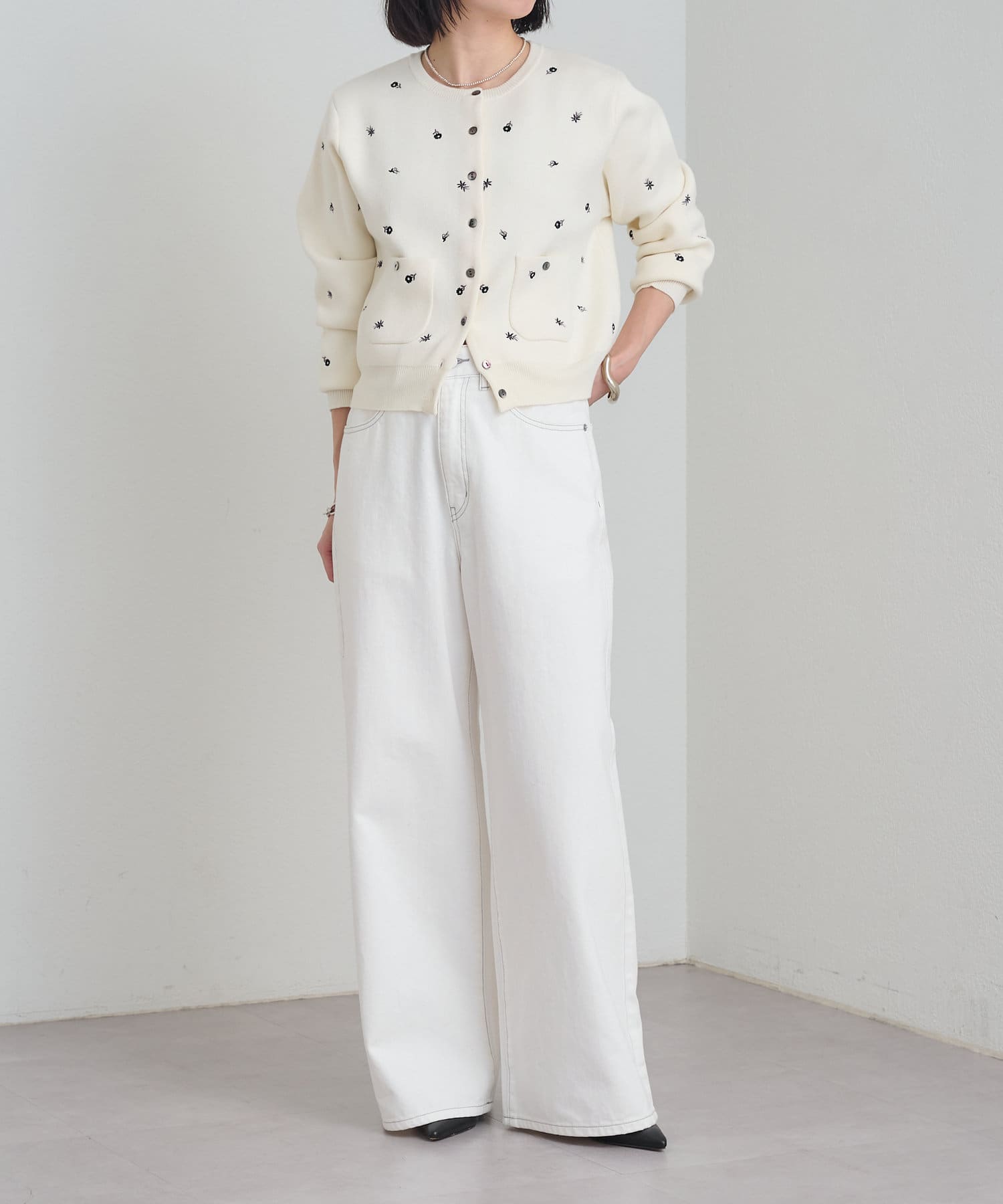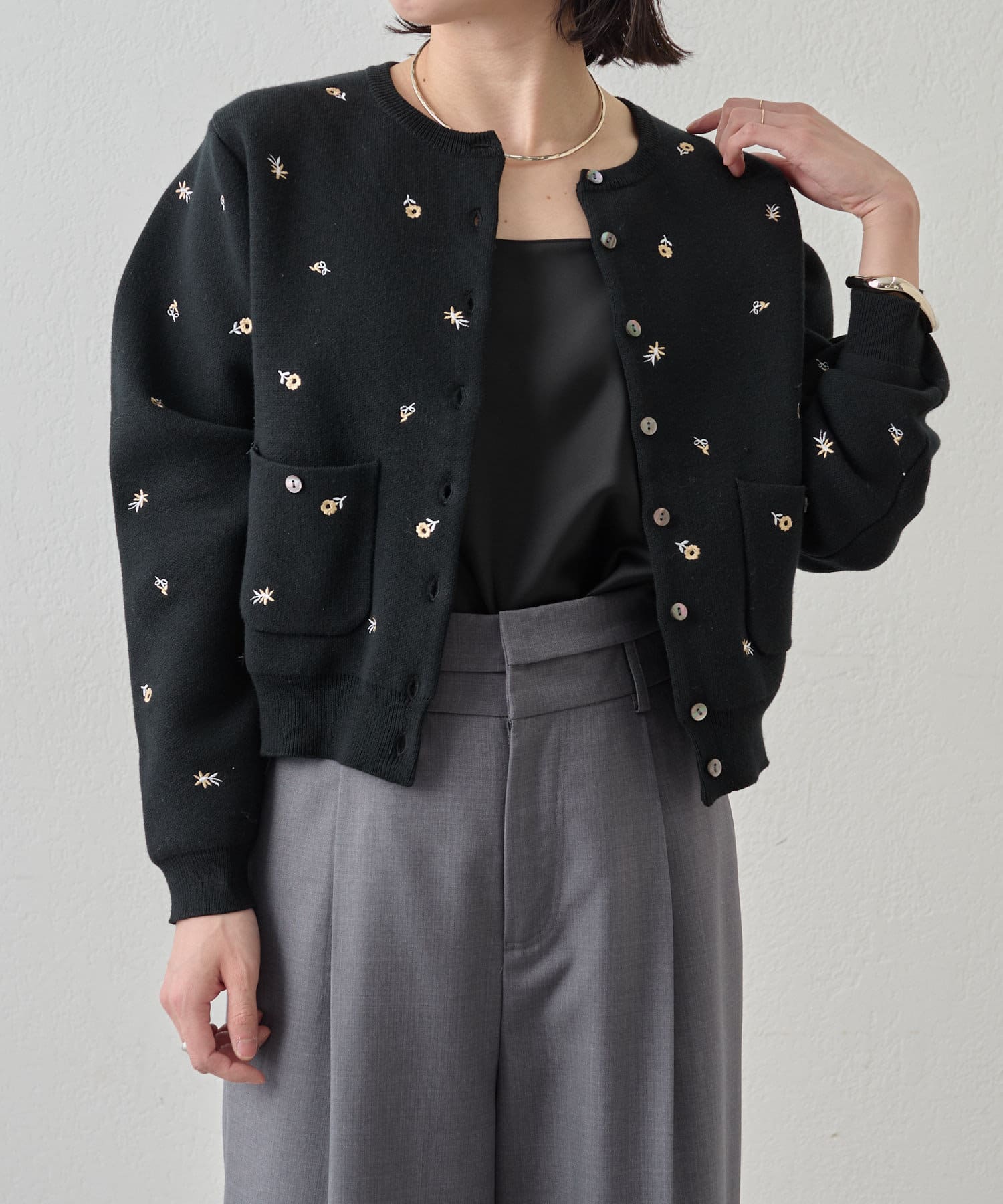 【春の着映えアイテム◎】刺繍スウェットライクポケットカーディガン