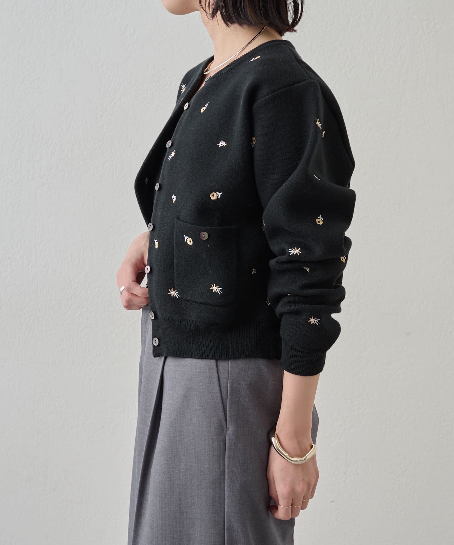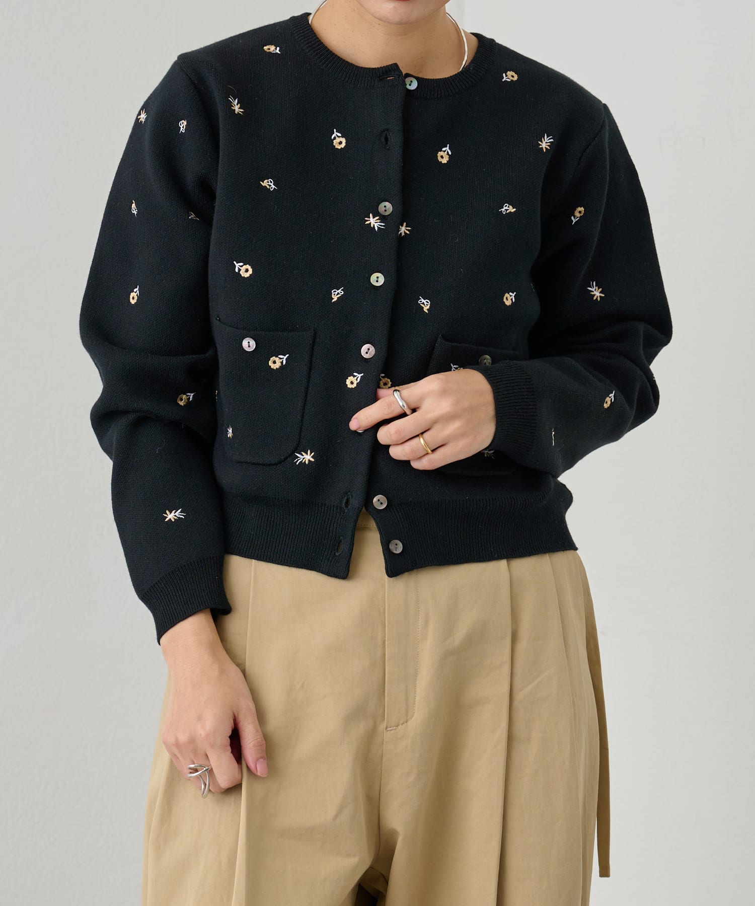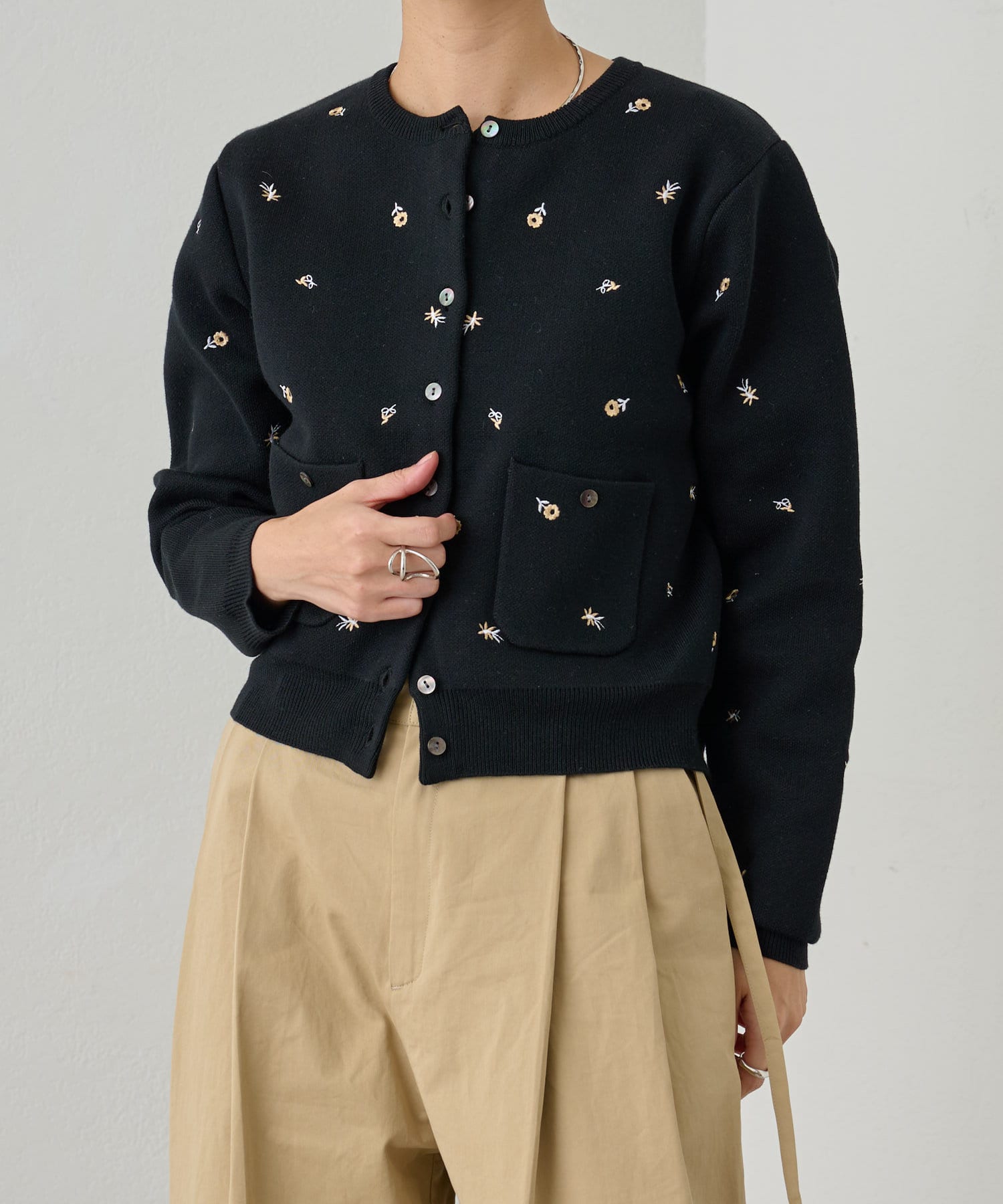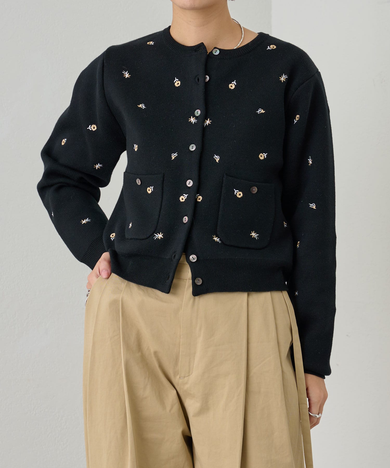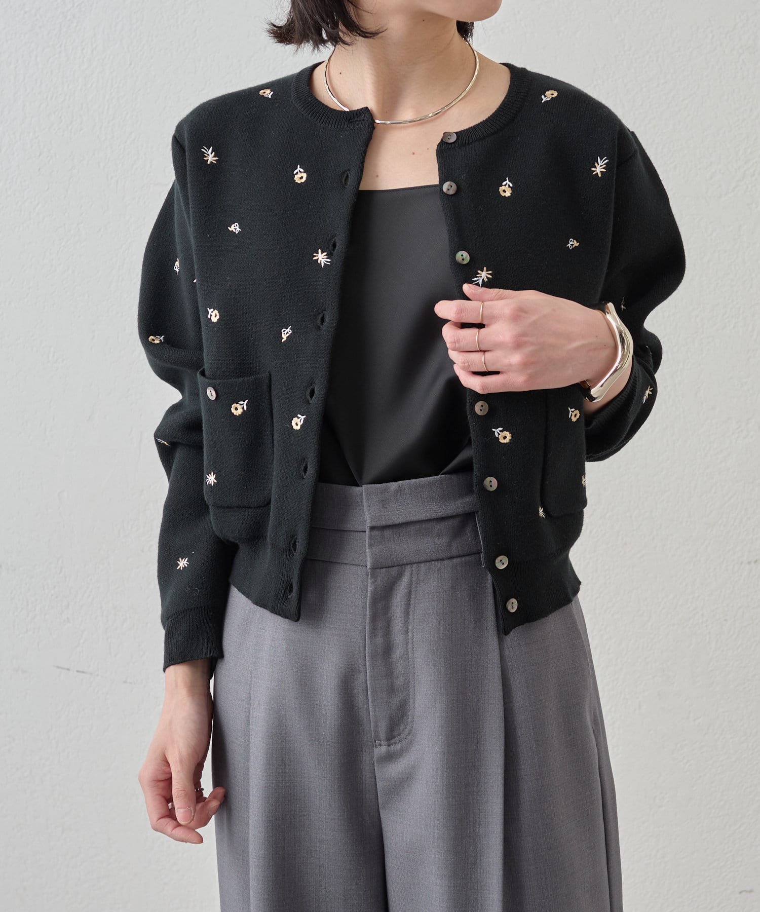 【春の着映えアイテム◎】刺繍スウェットライクポケットカーディガン