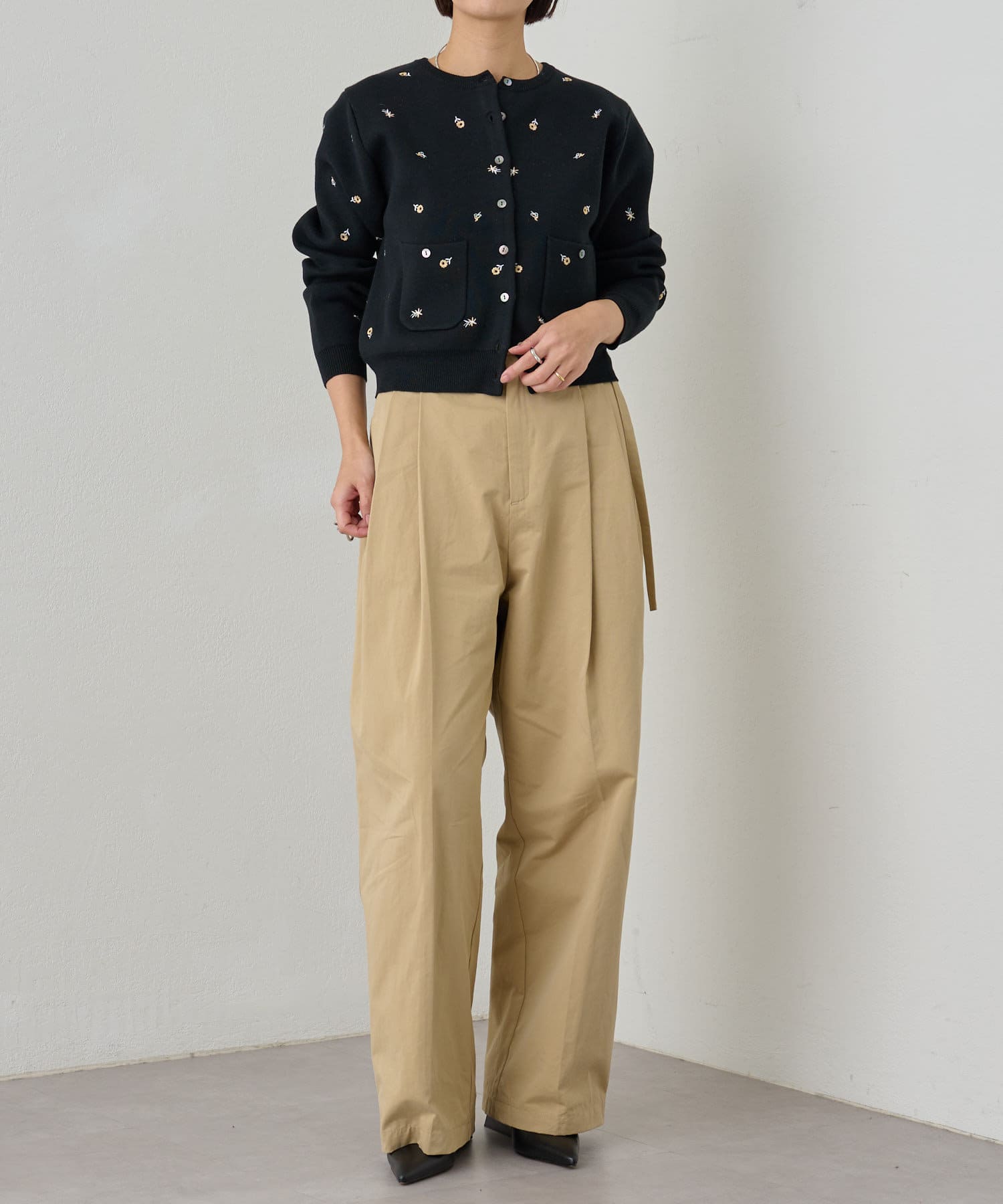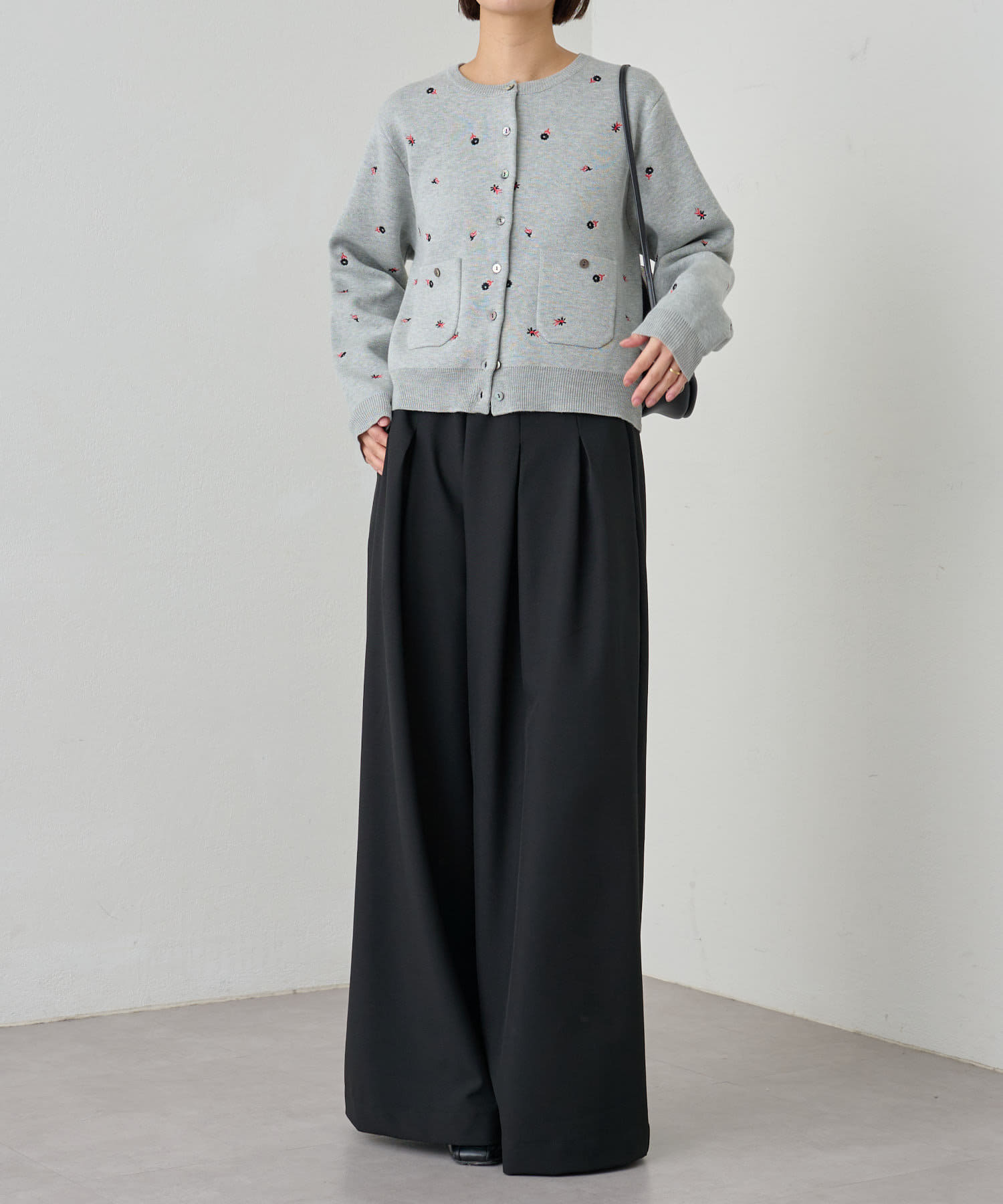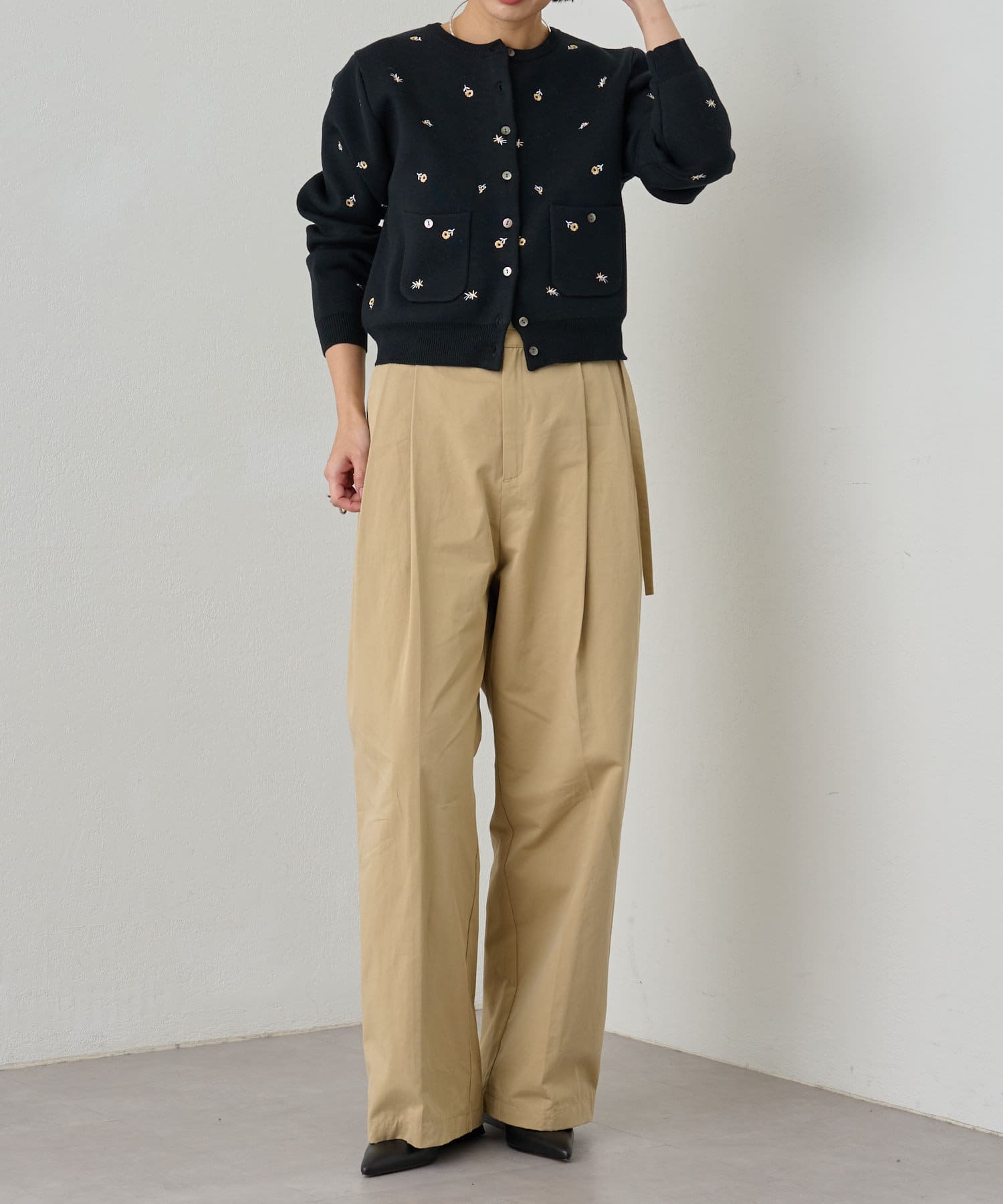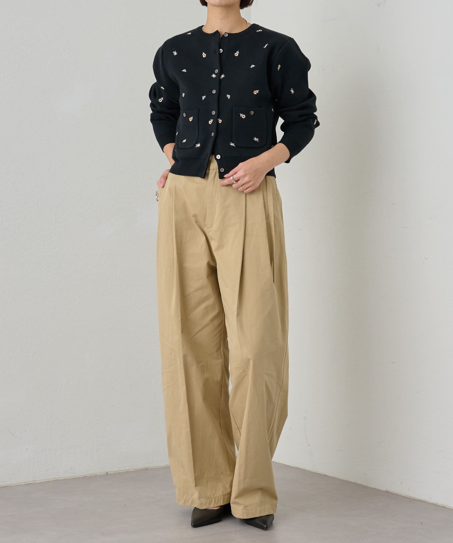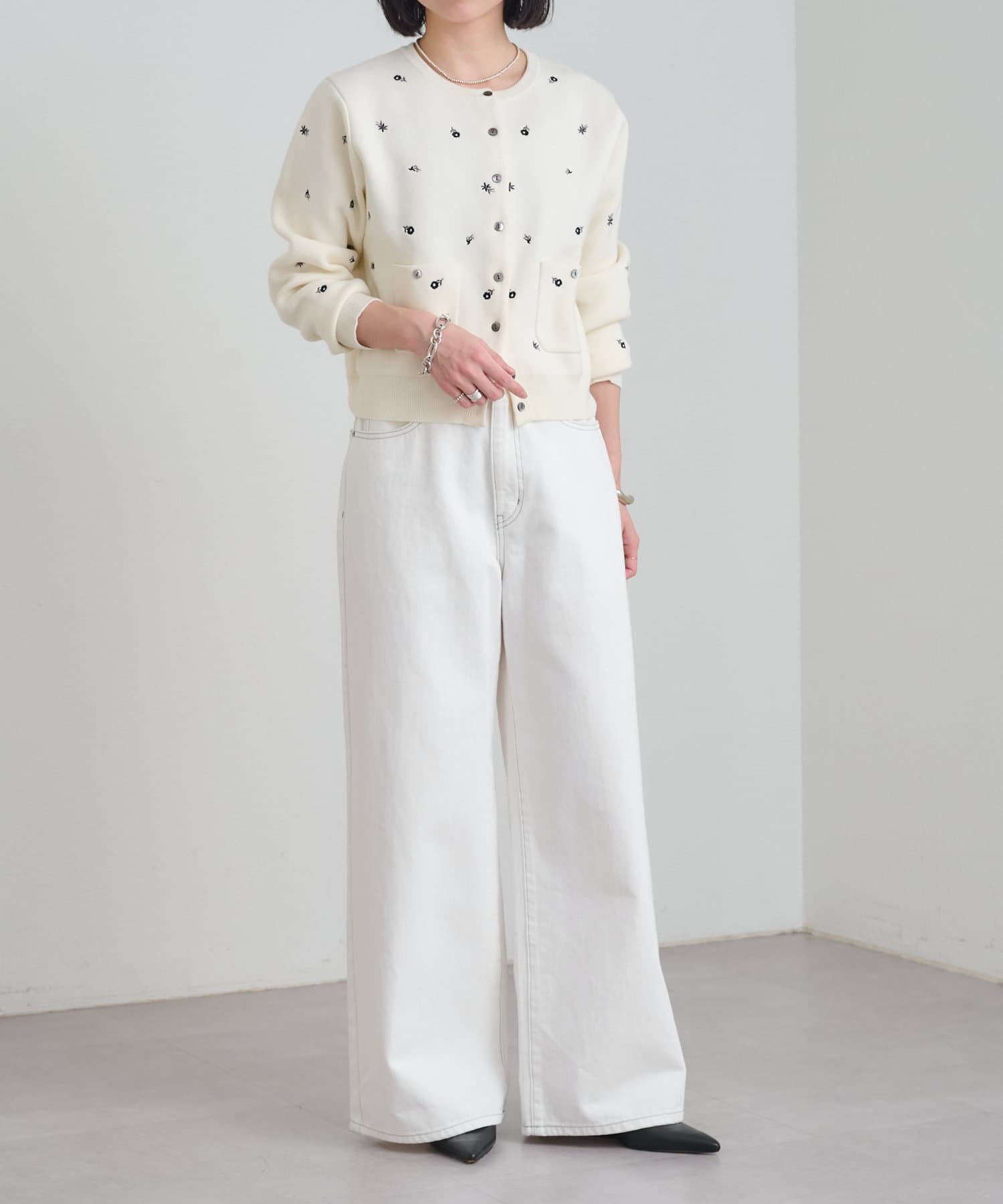 【春の着映えアイテム◎】刺繍スウェットライクポケットカーディガン