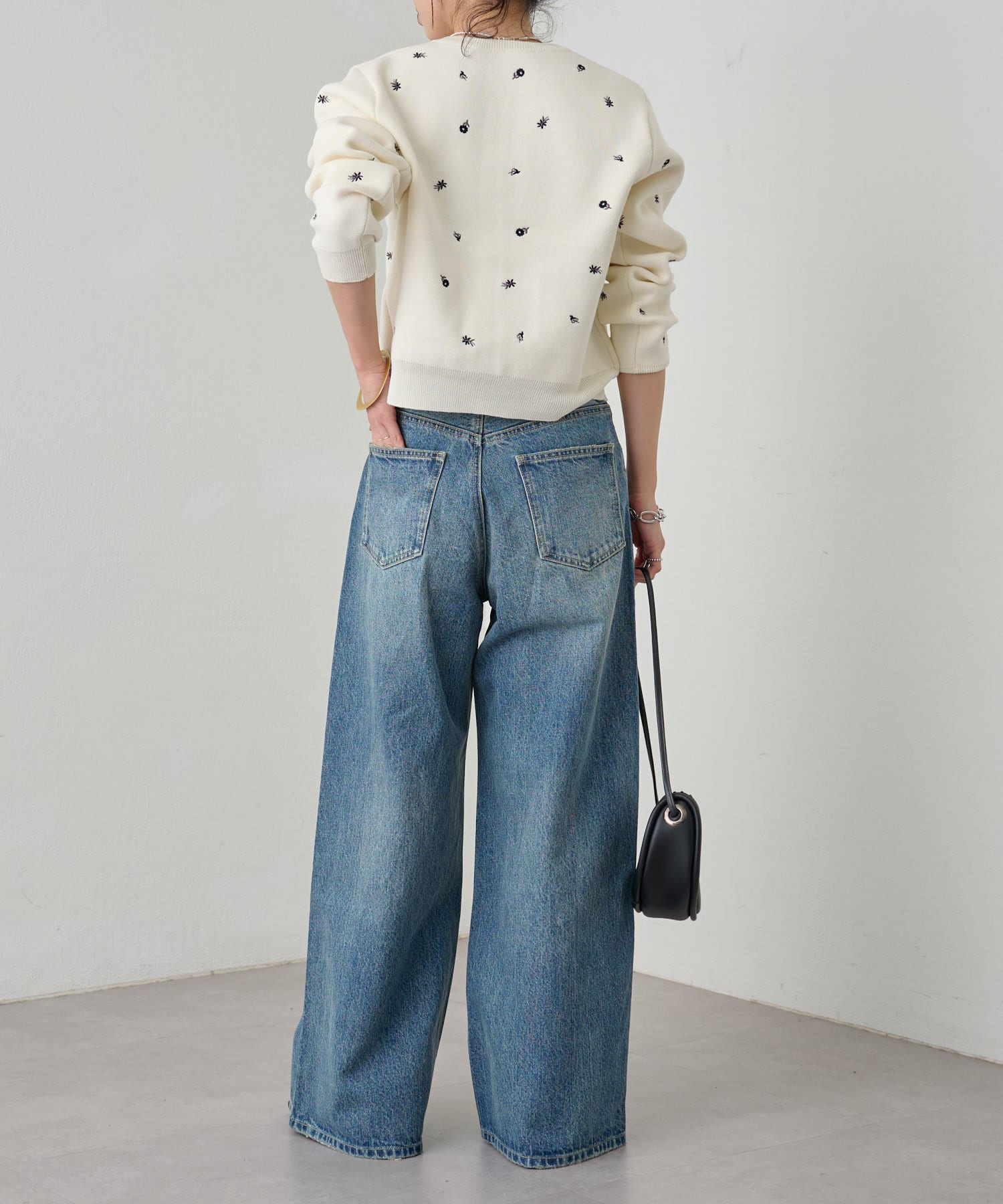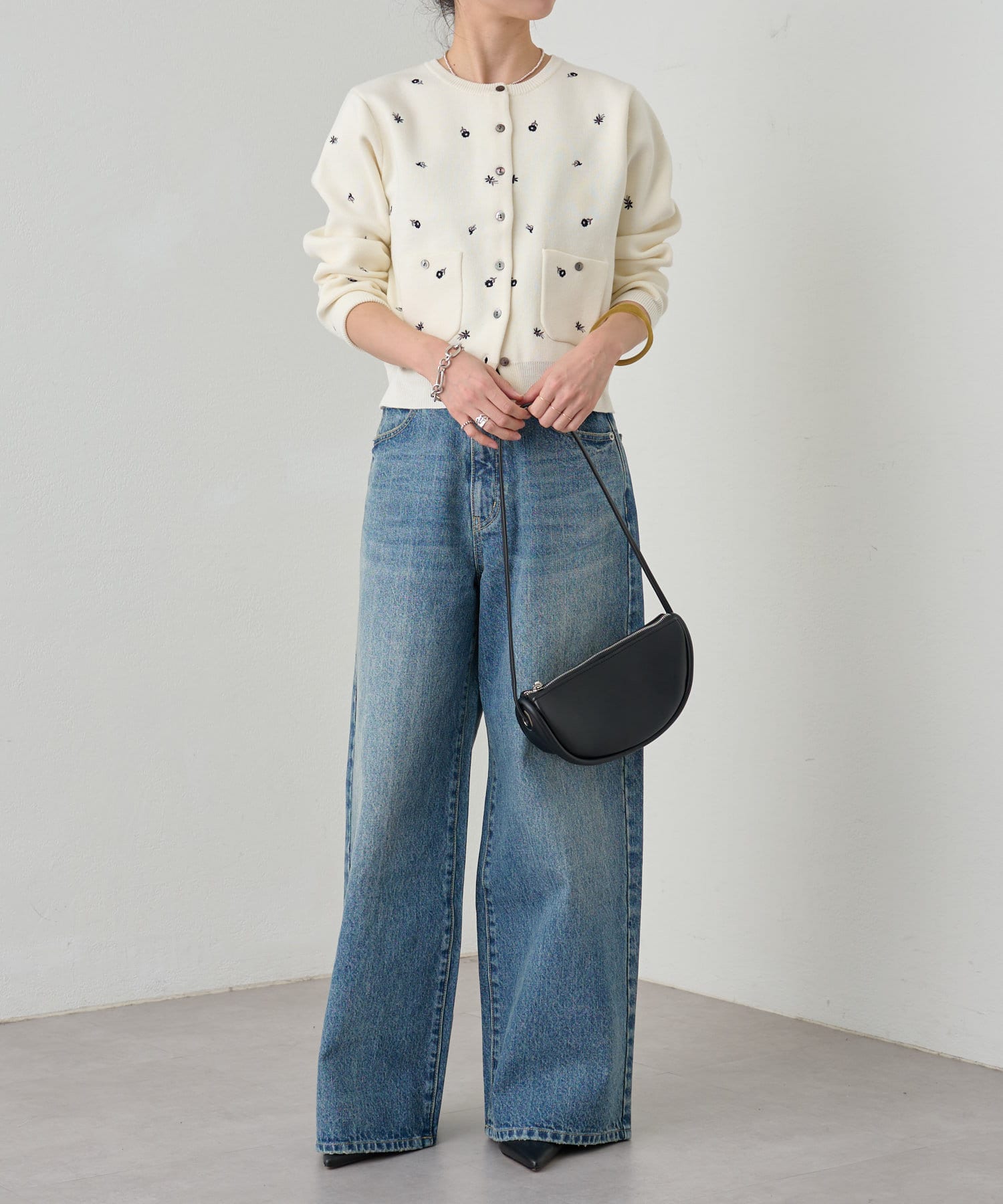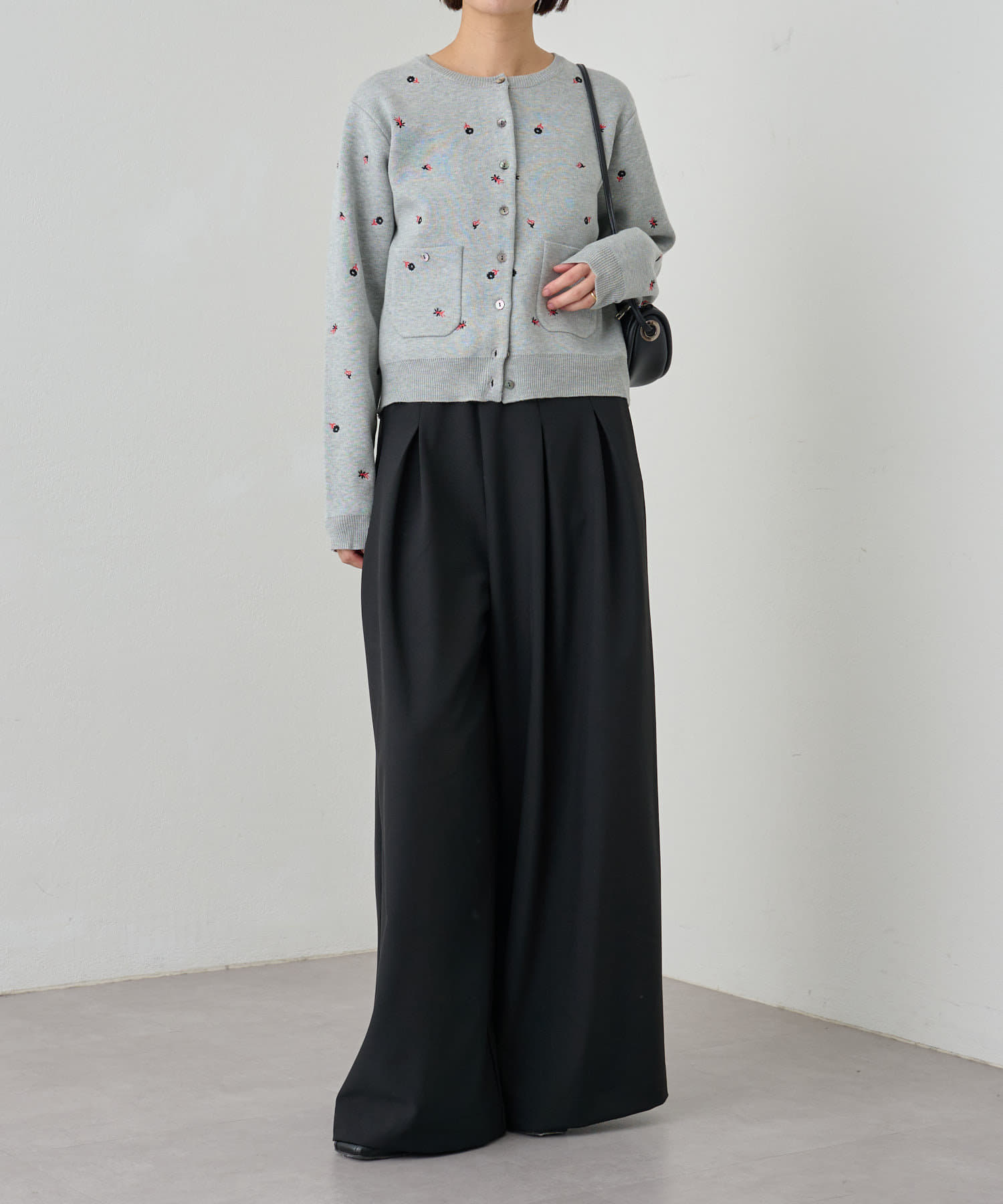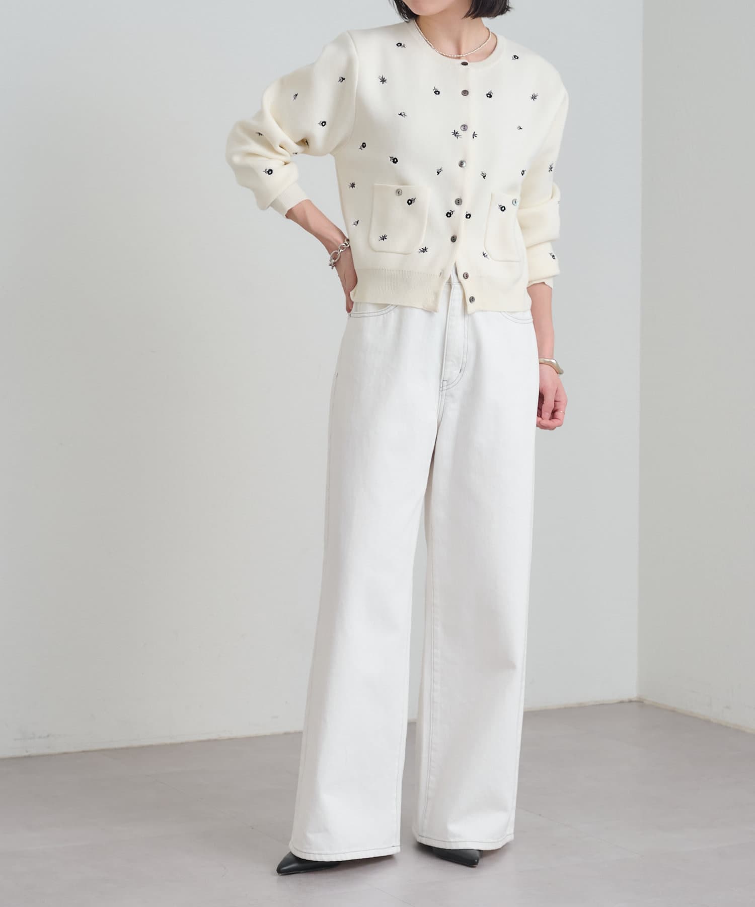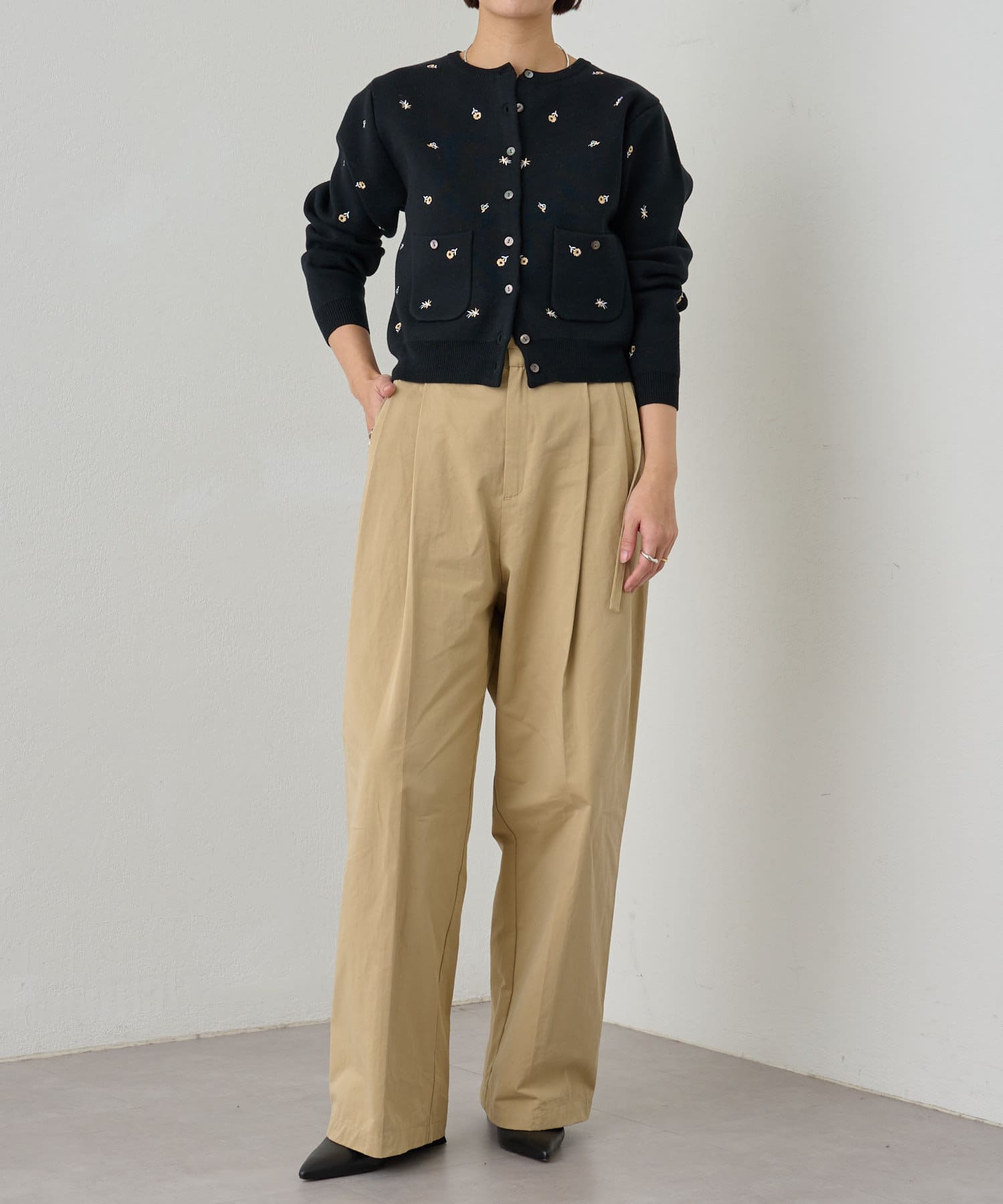 【春の着映えアイテム◎】刺繍スウェットライクポケットカーディガン