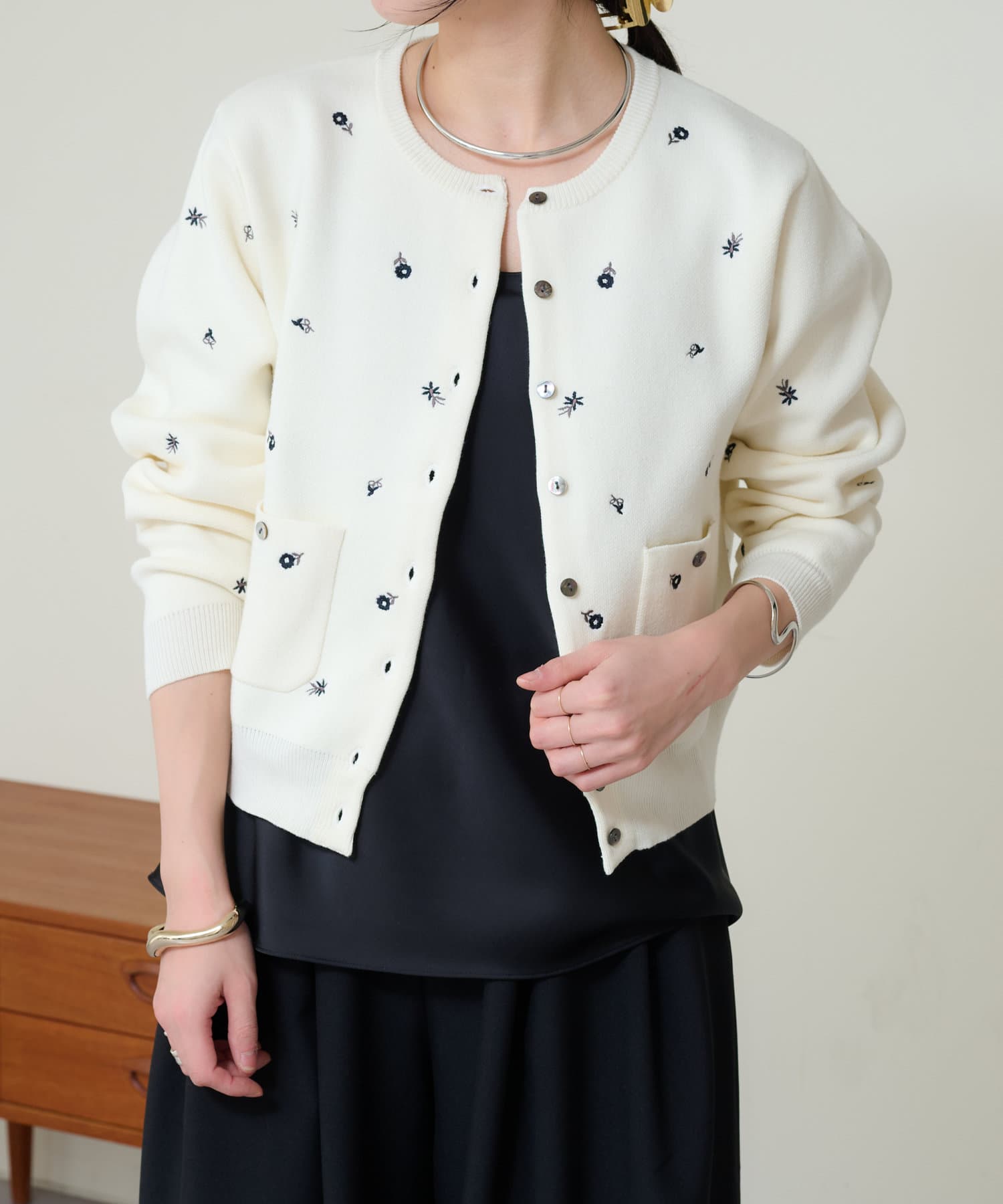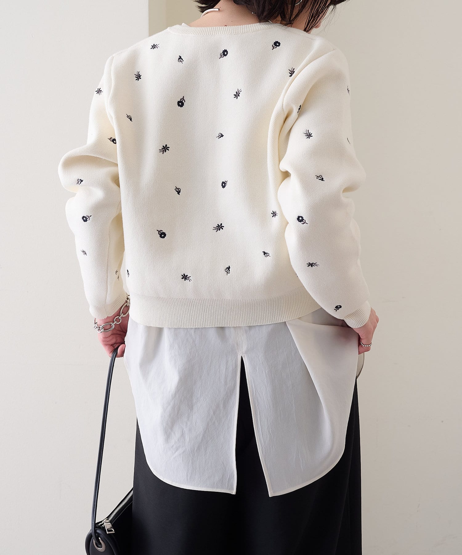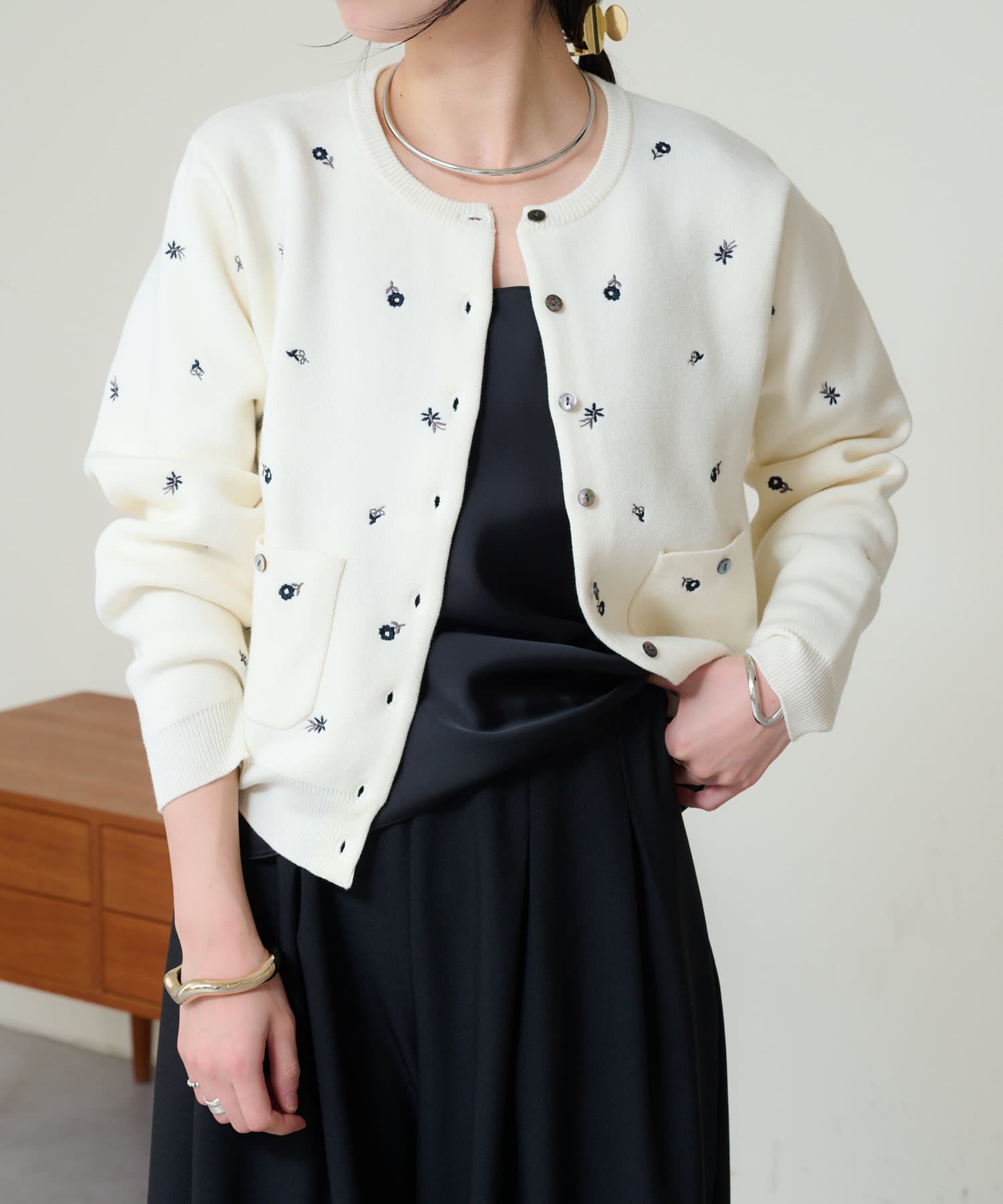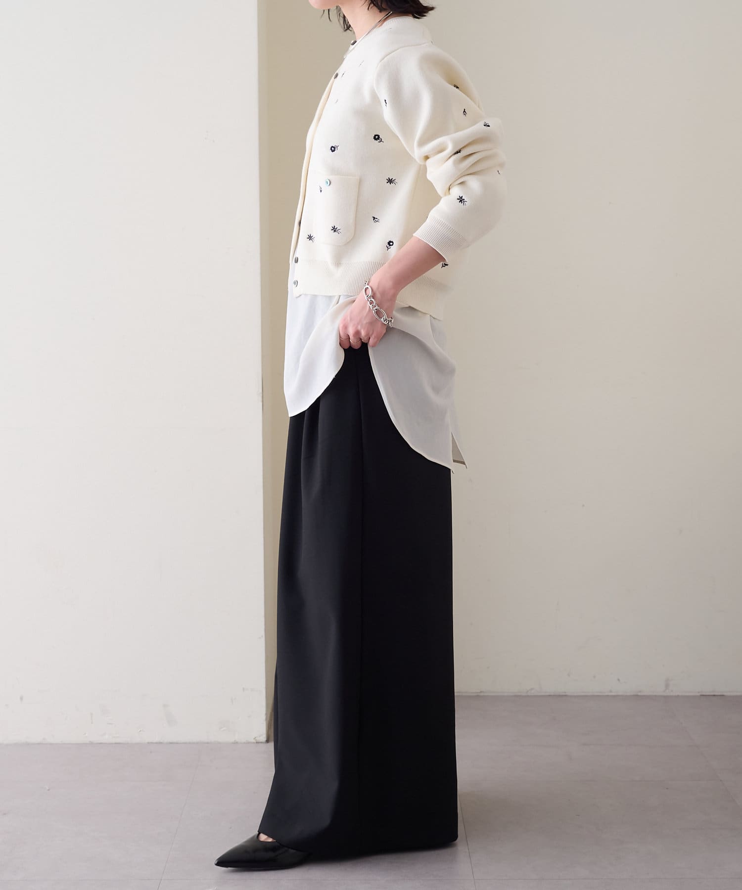 ・スタイリングの邪魔をしない、さり気なくも女性らしい刺繍柄。
