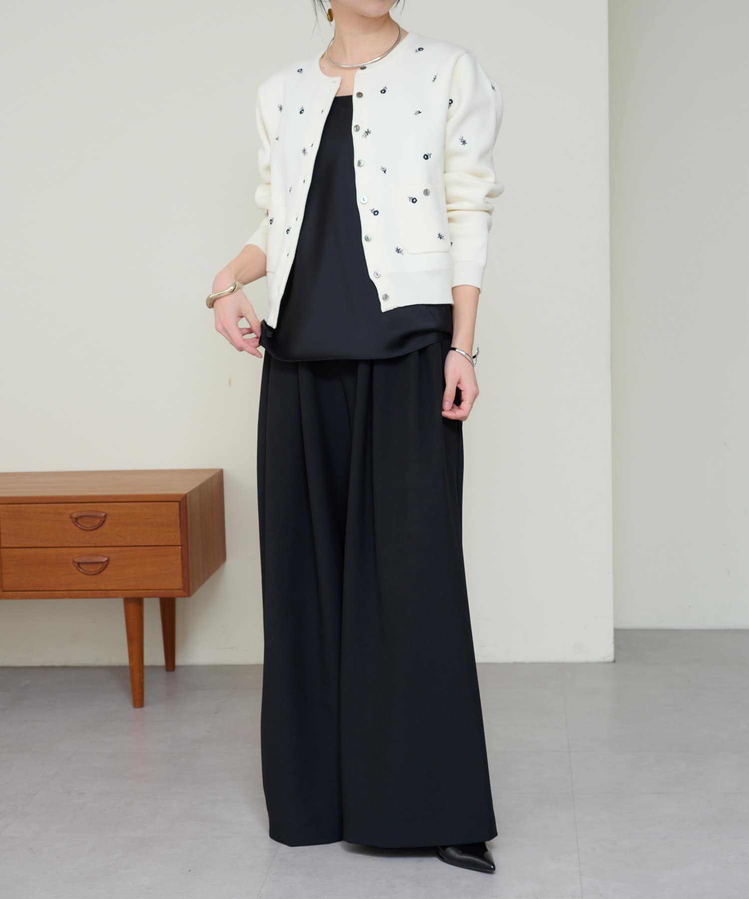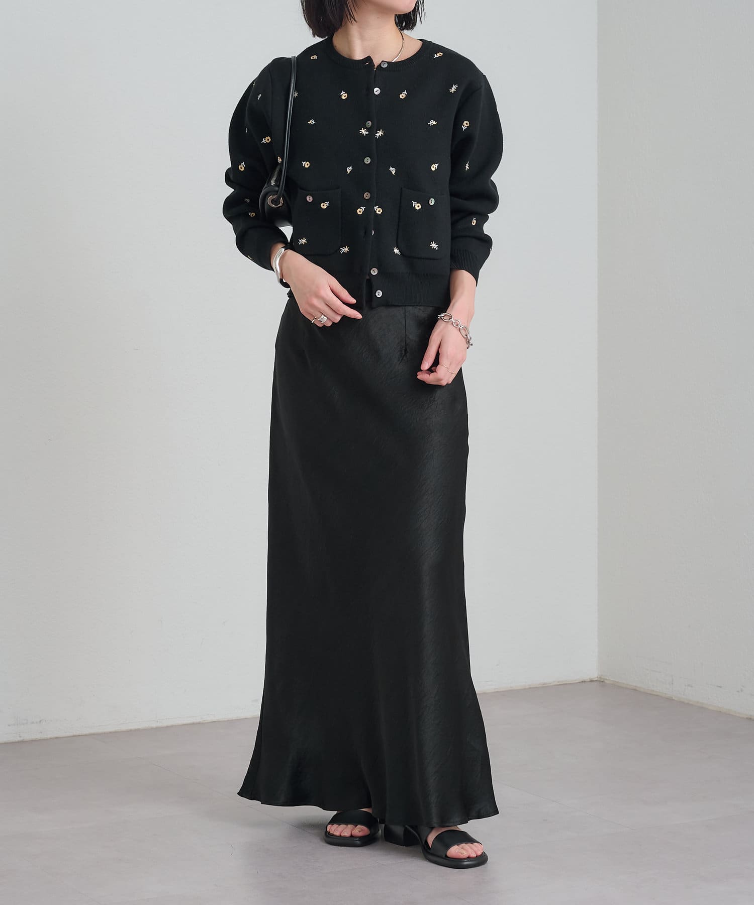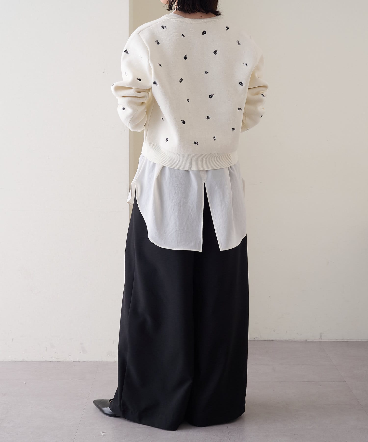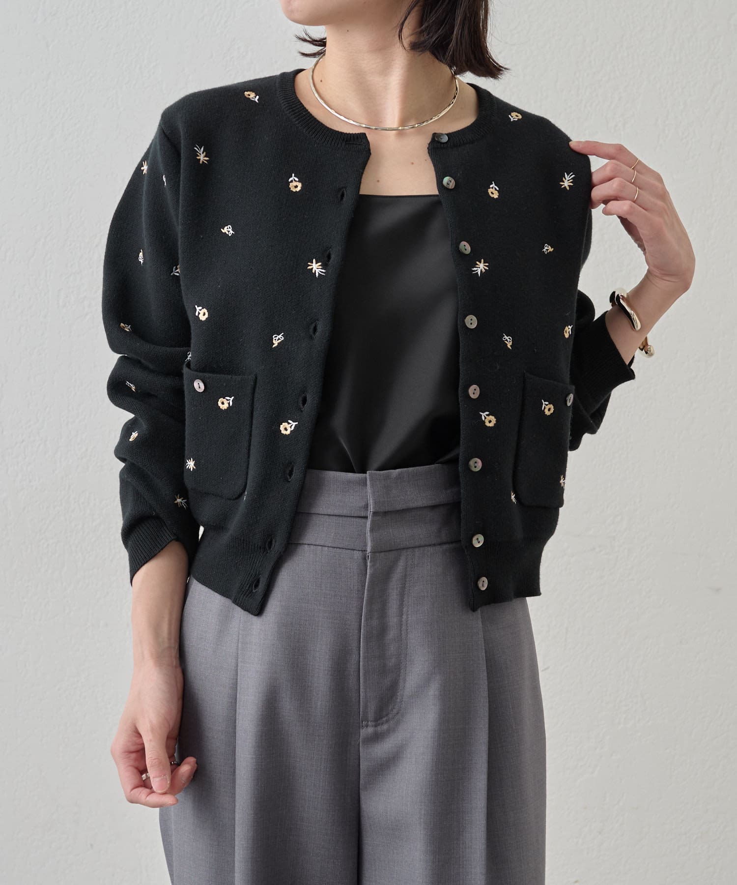 ・スタイリングの邪魔をしない、さり気なくも女性らしい刺繍柄。