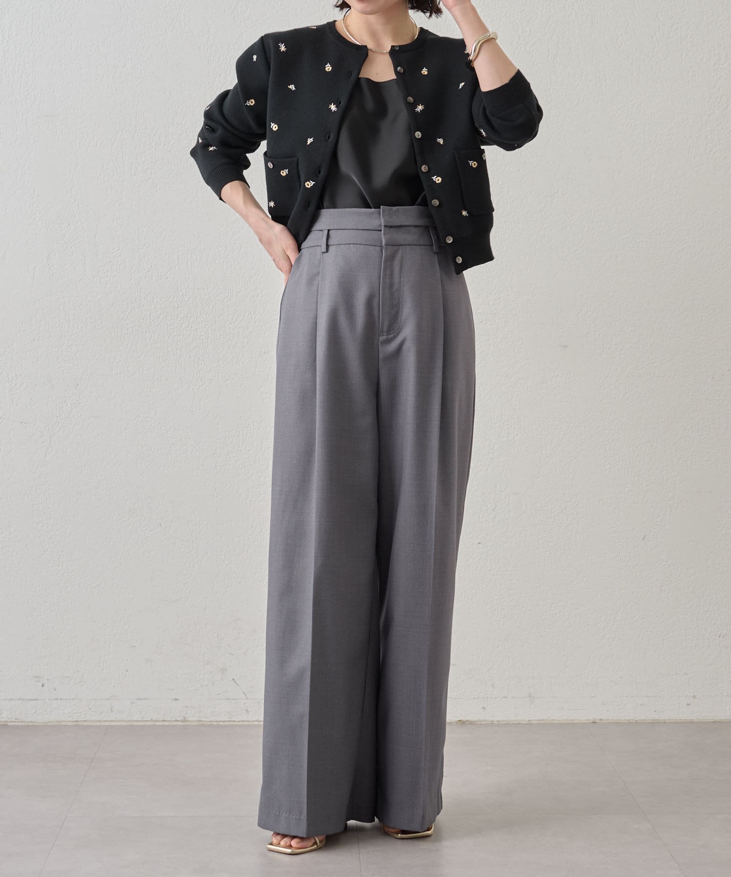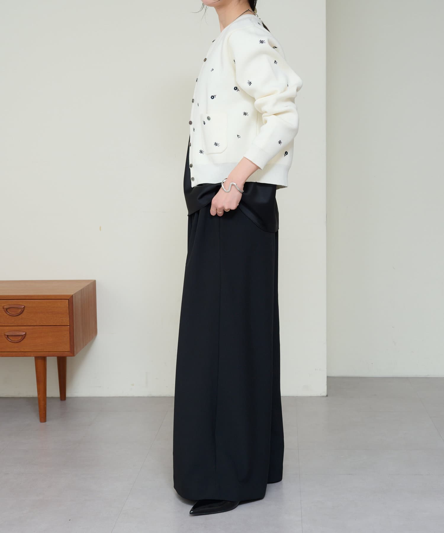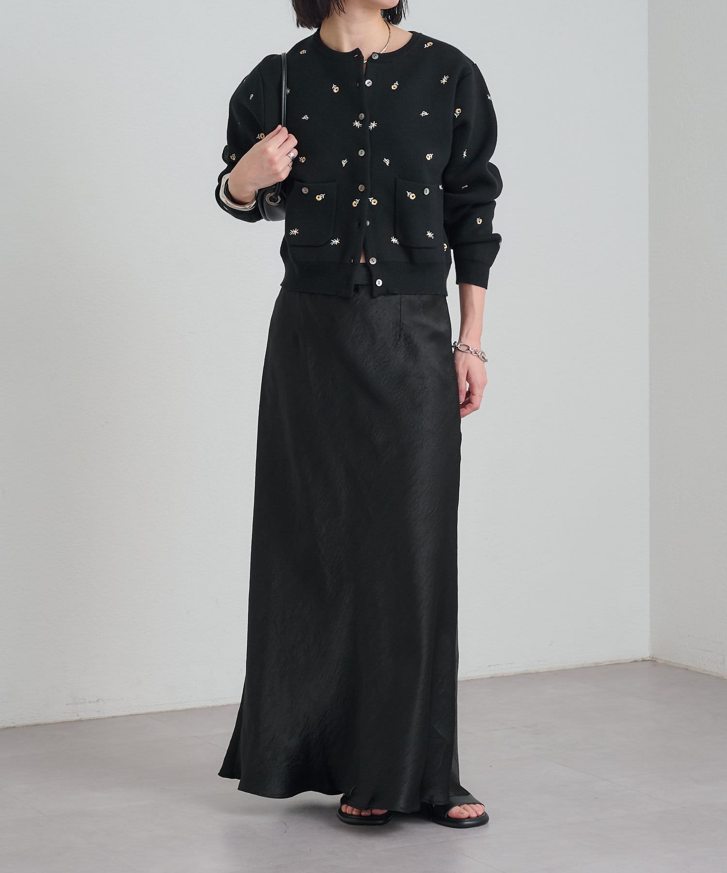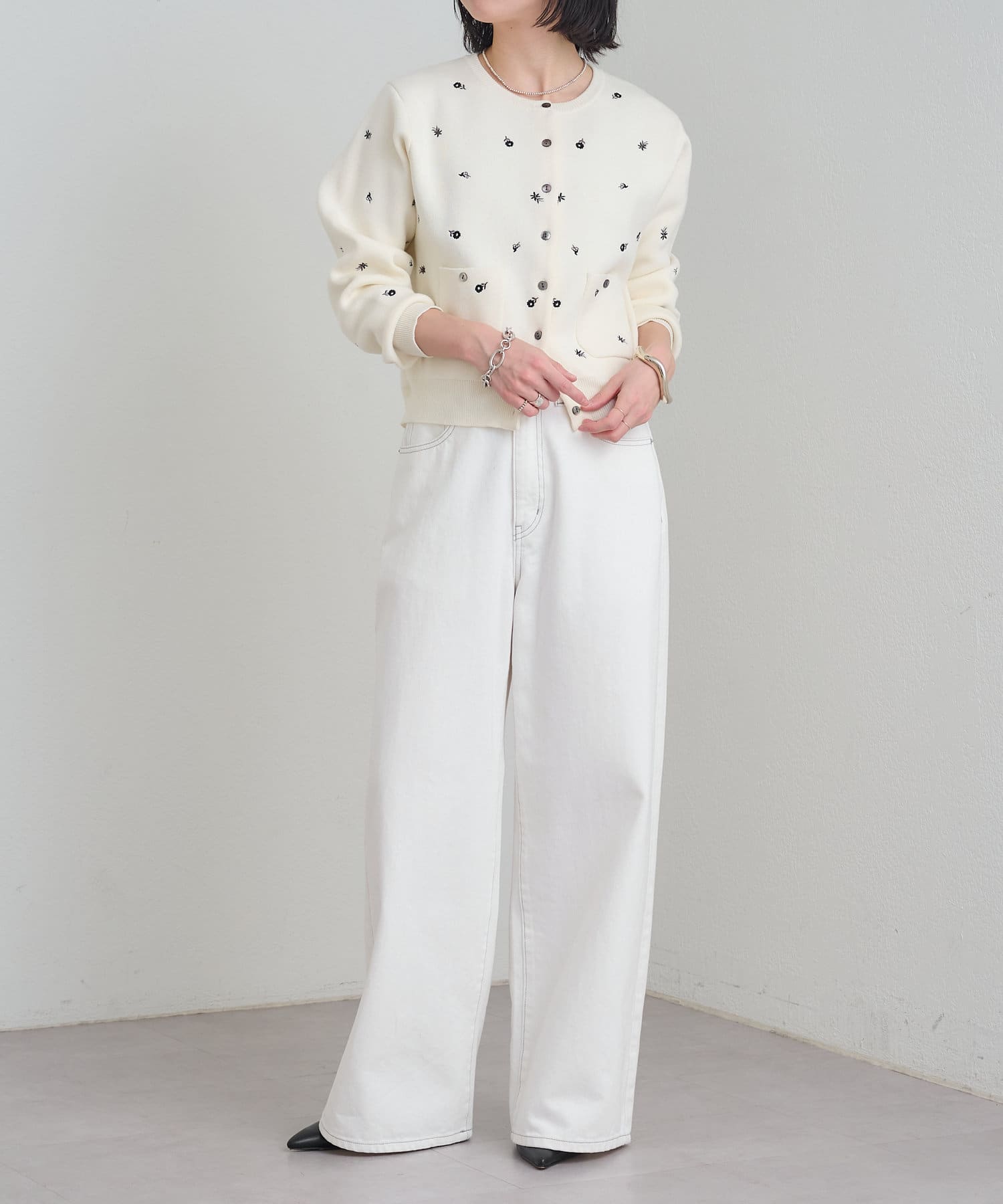 ・スタイリングの邪魔をしない、さり気なくも女性らしい刺繍柄。