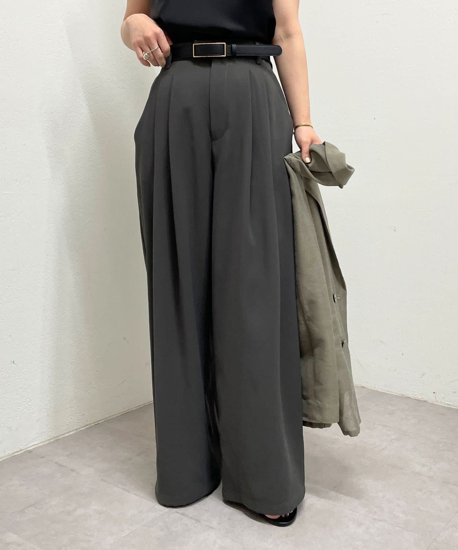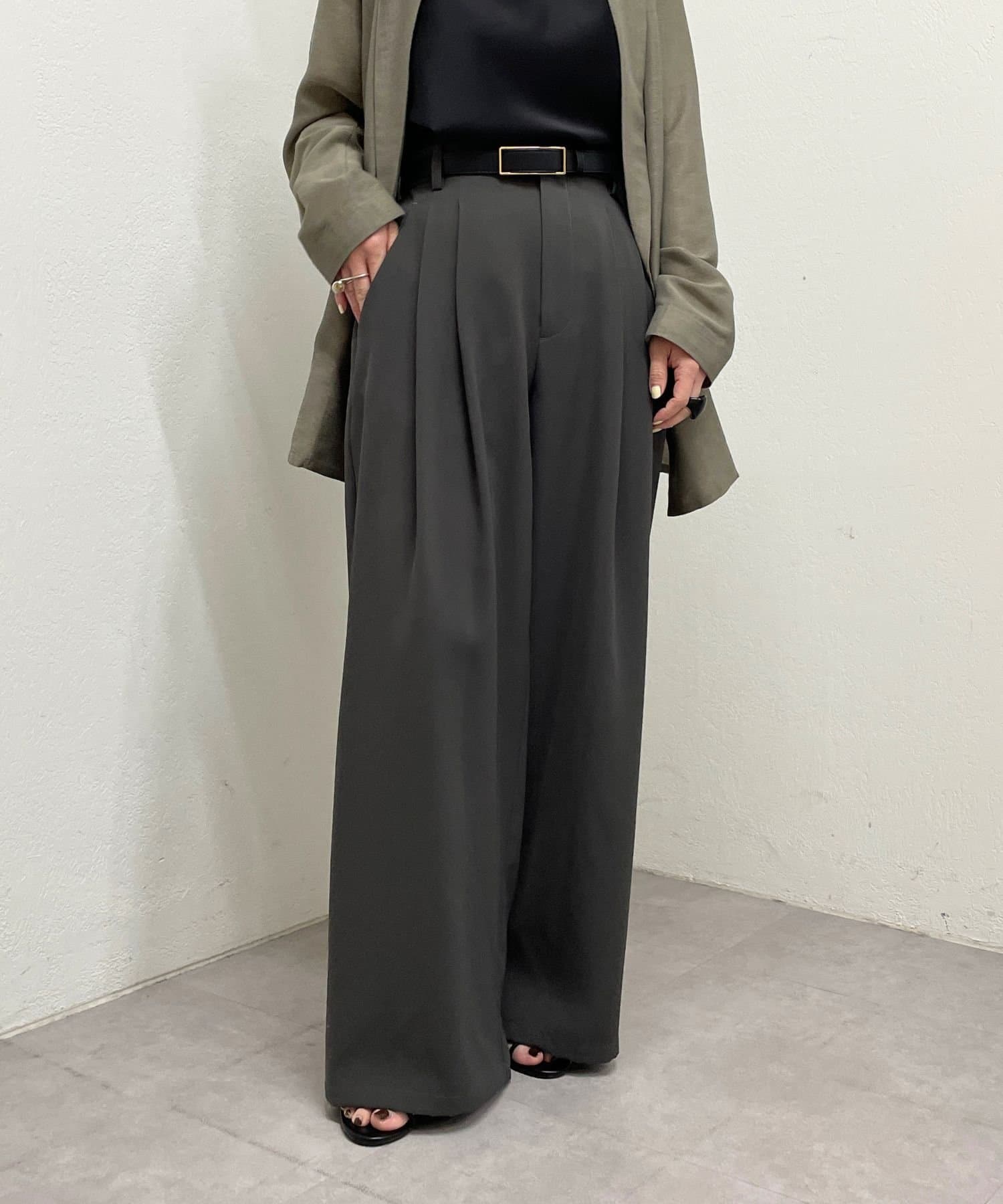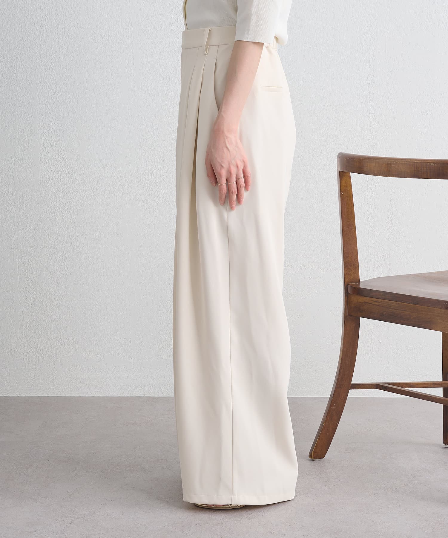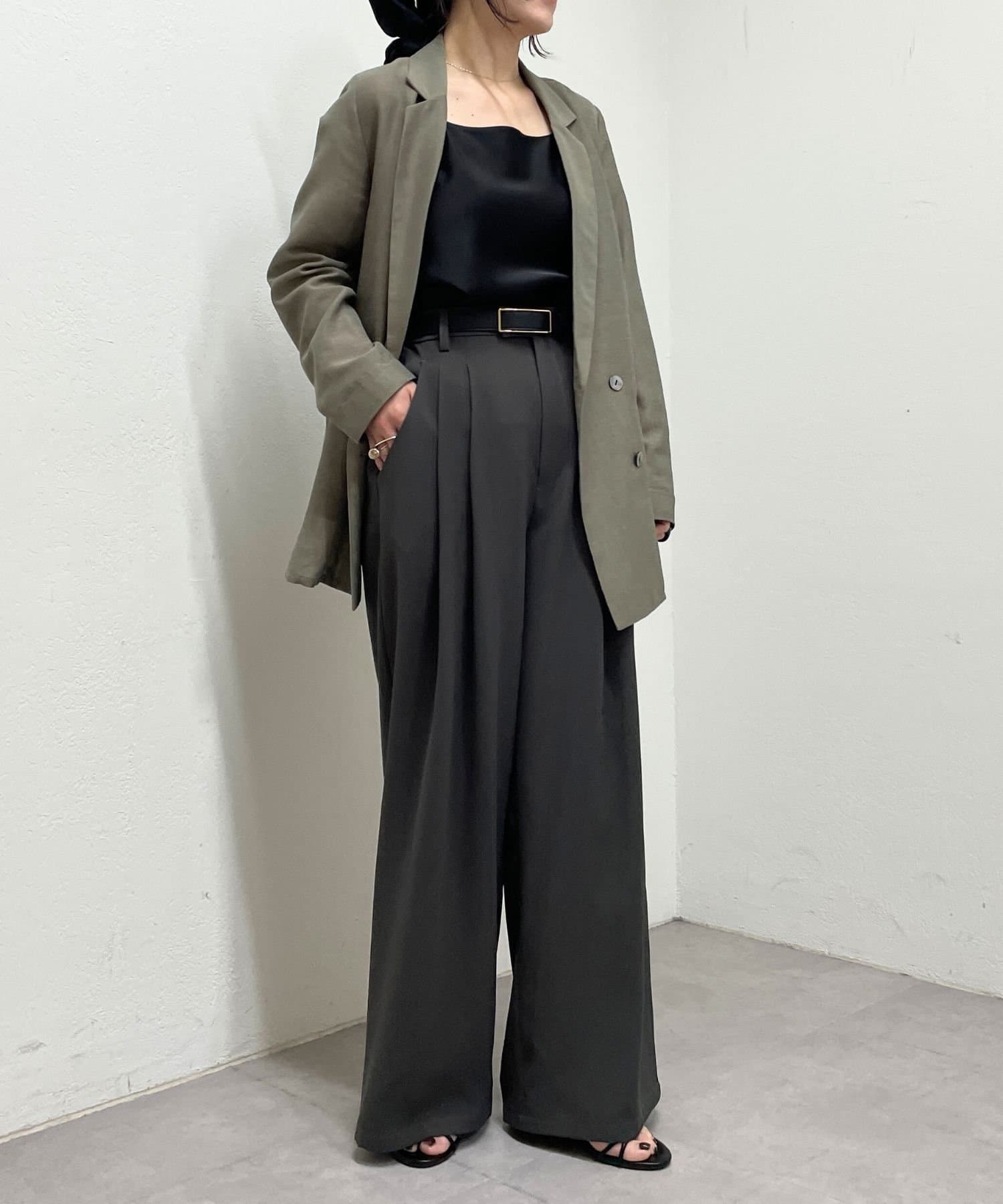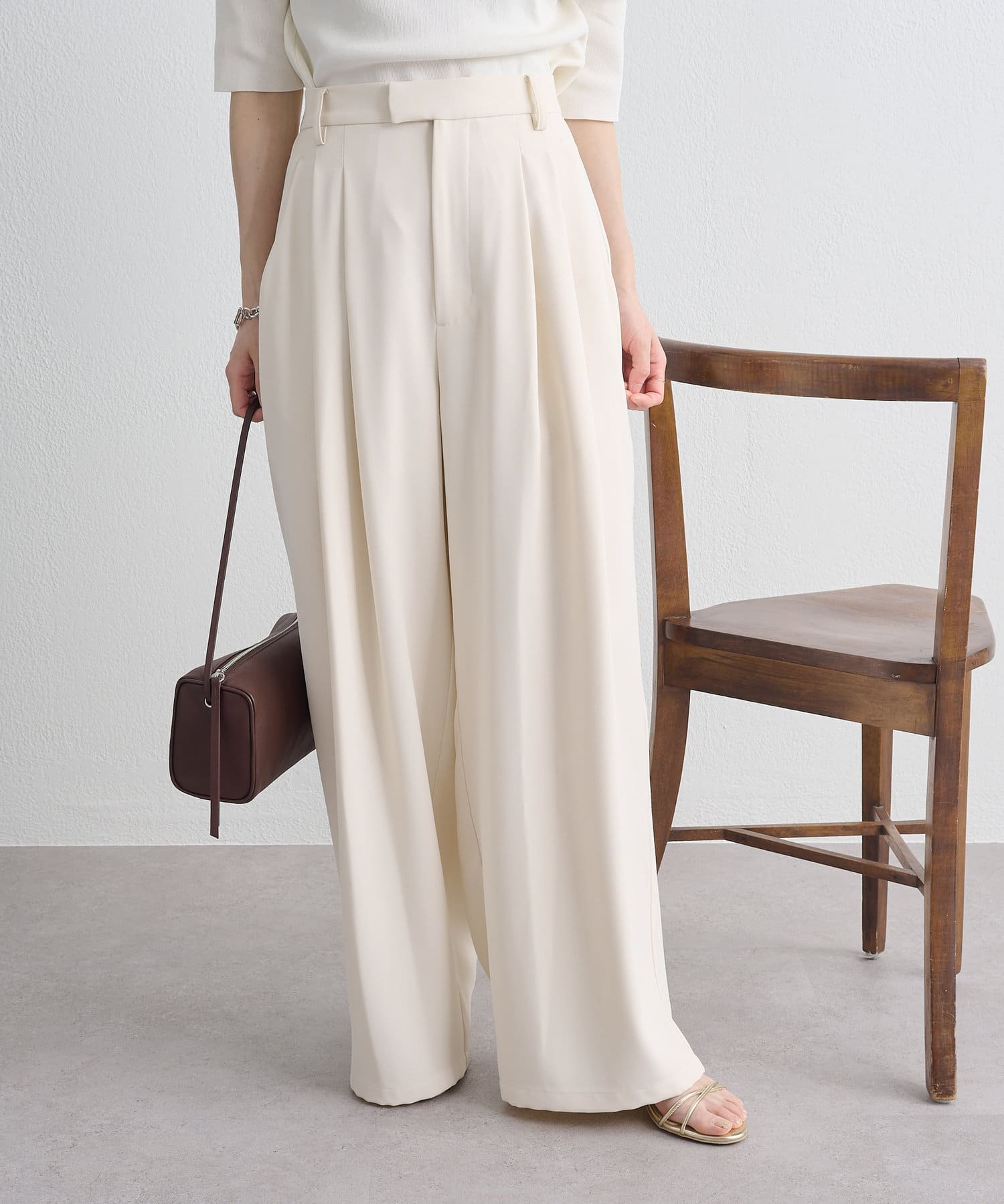 ・フロントのダブルタックが体型カバーと綺麗見えも叶えてくれる一枚。