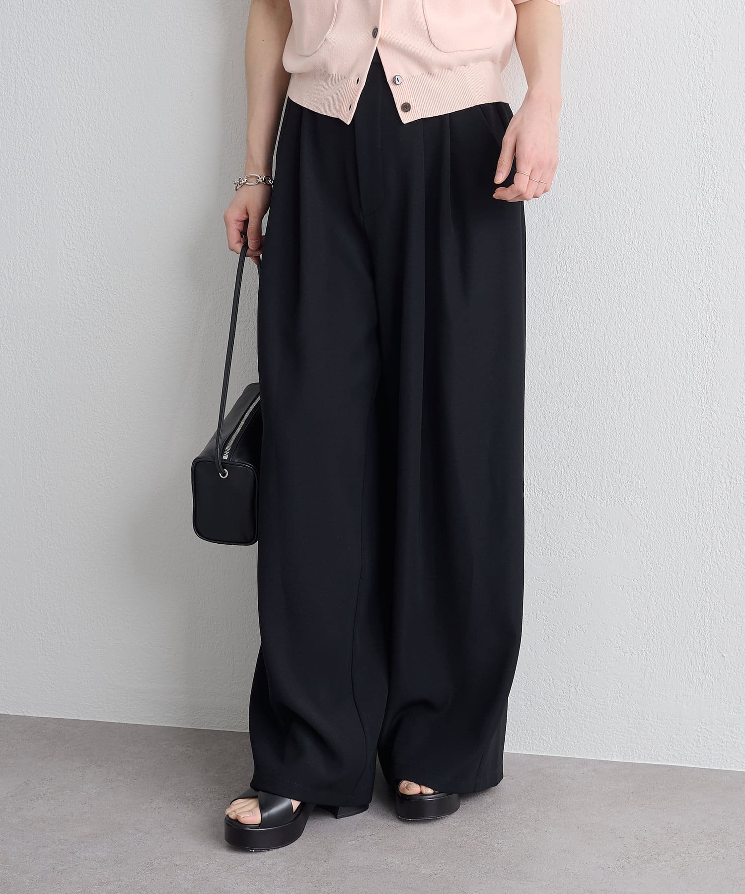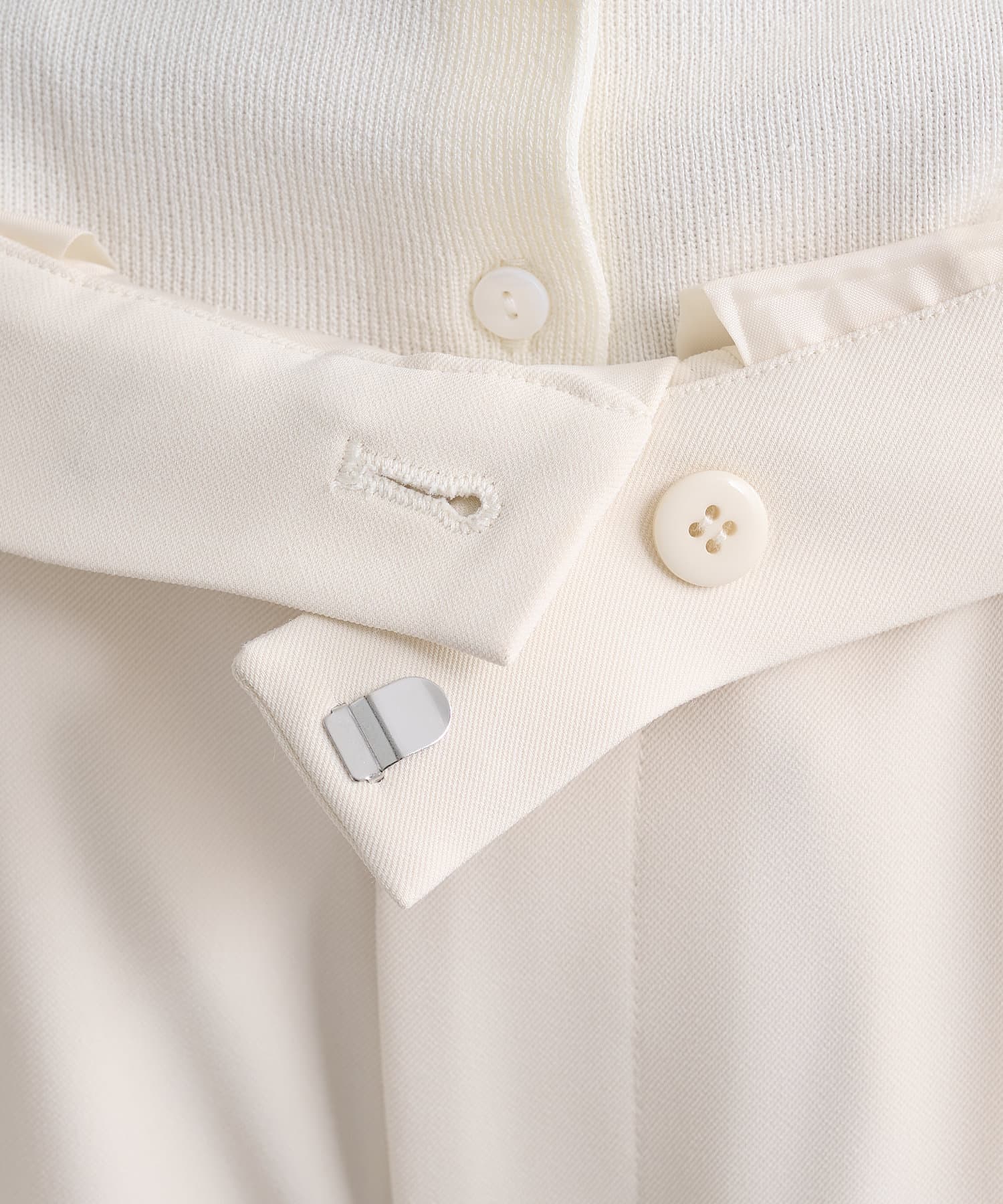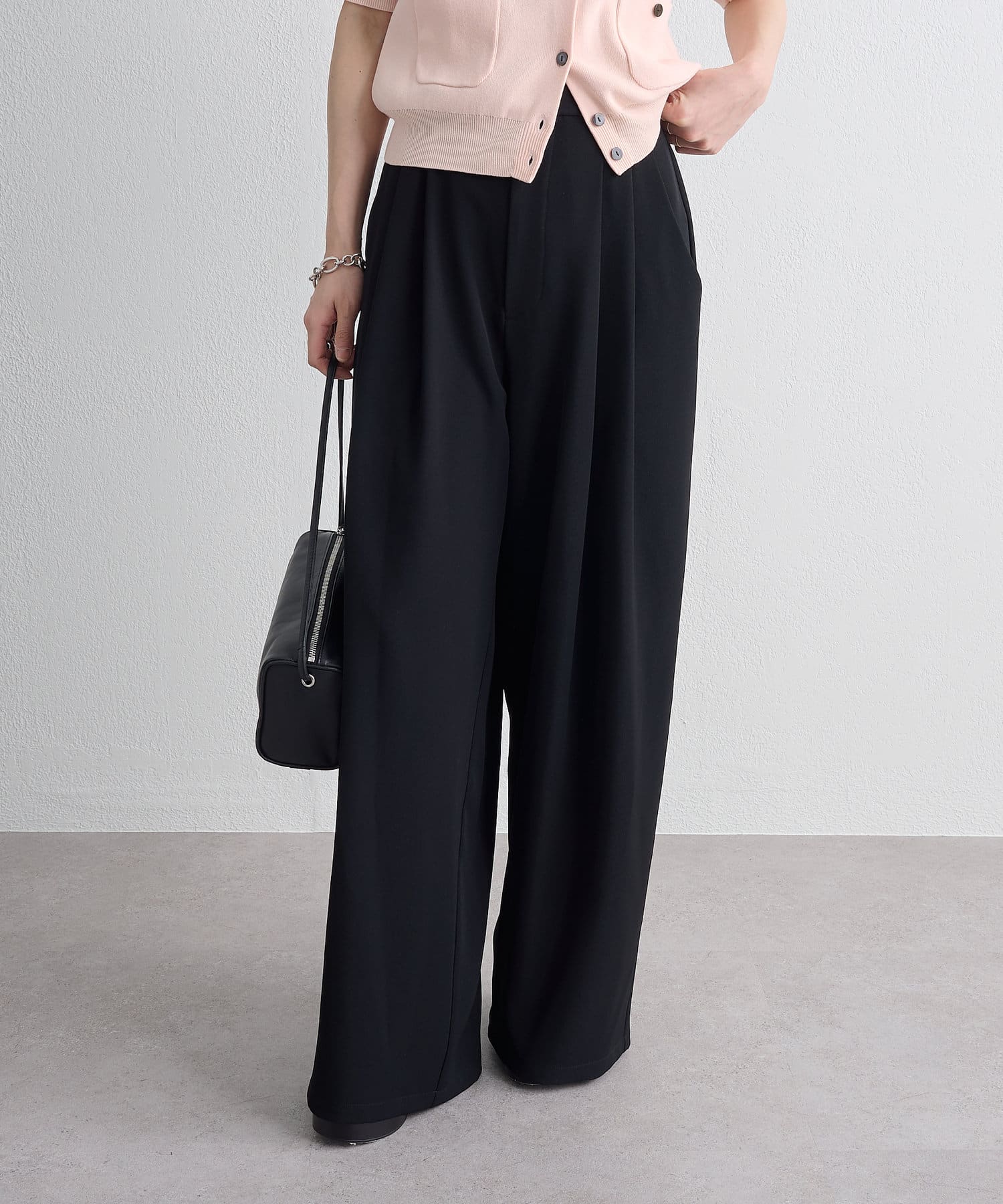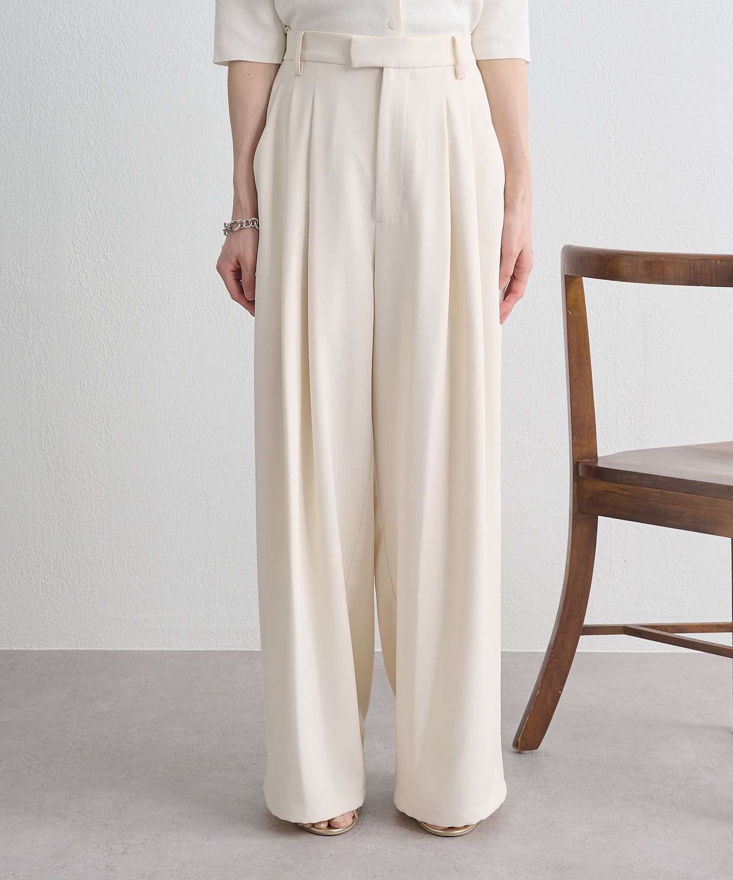 ・フロントのダブルタックが体型カバーと綺麗見えも叶えてくれる一枚。