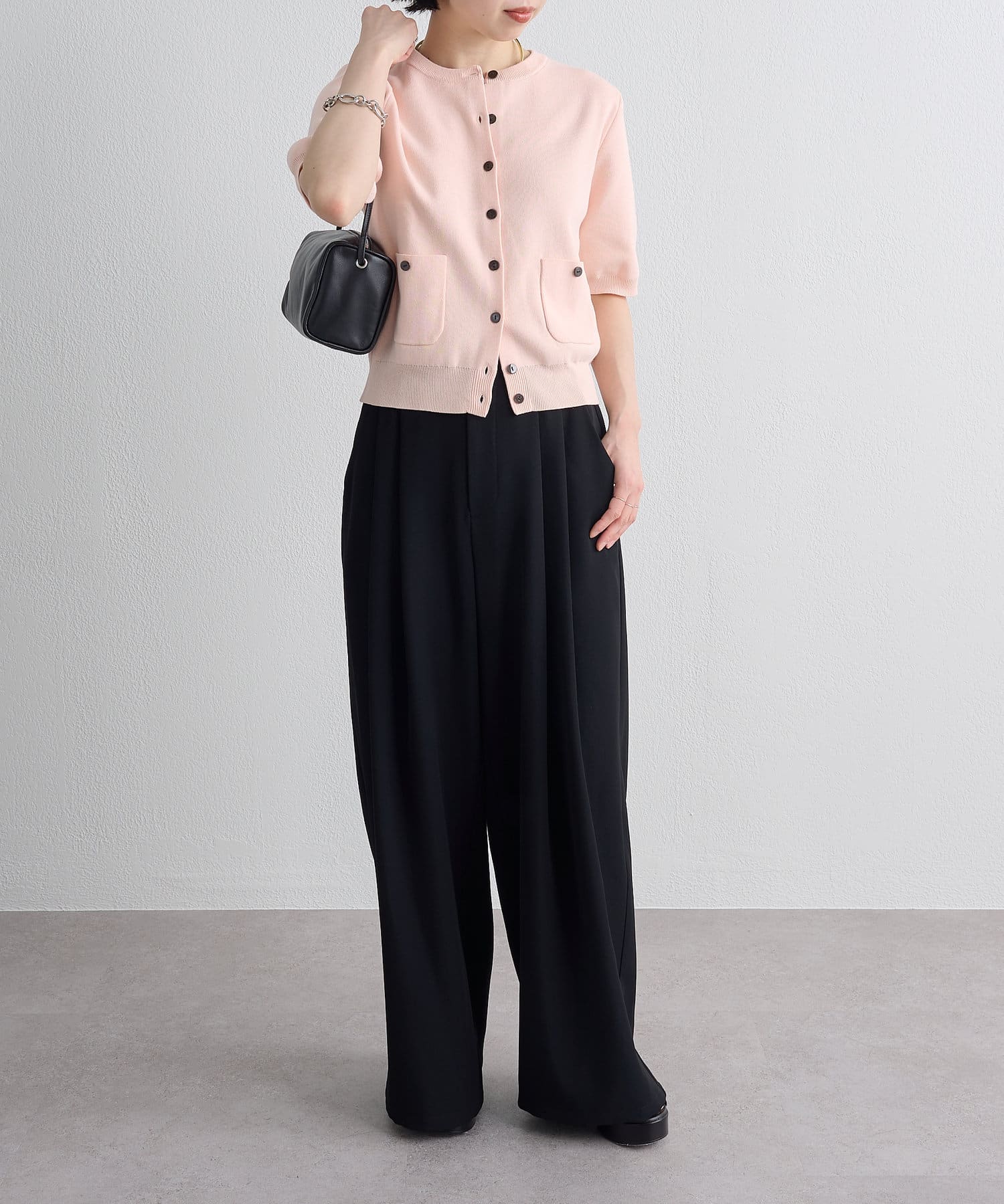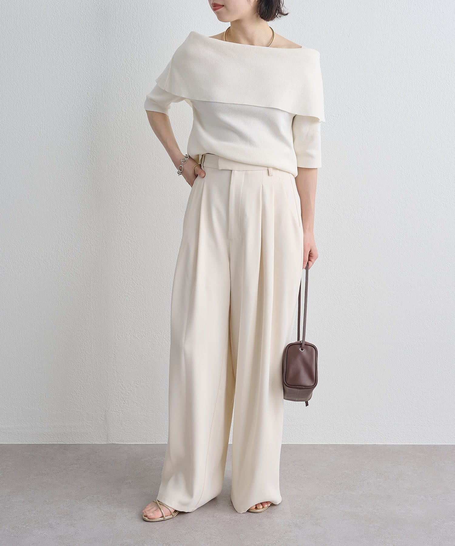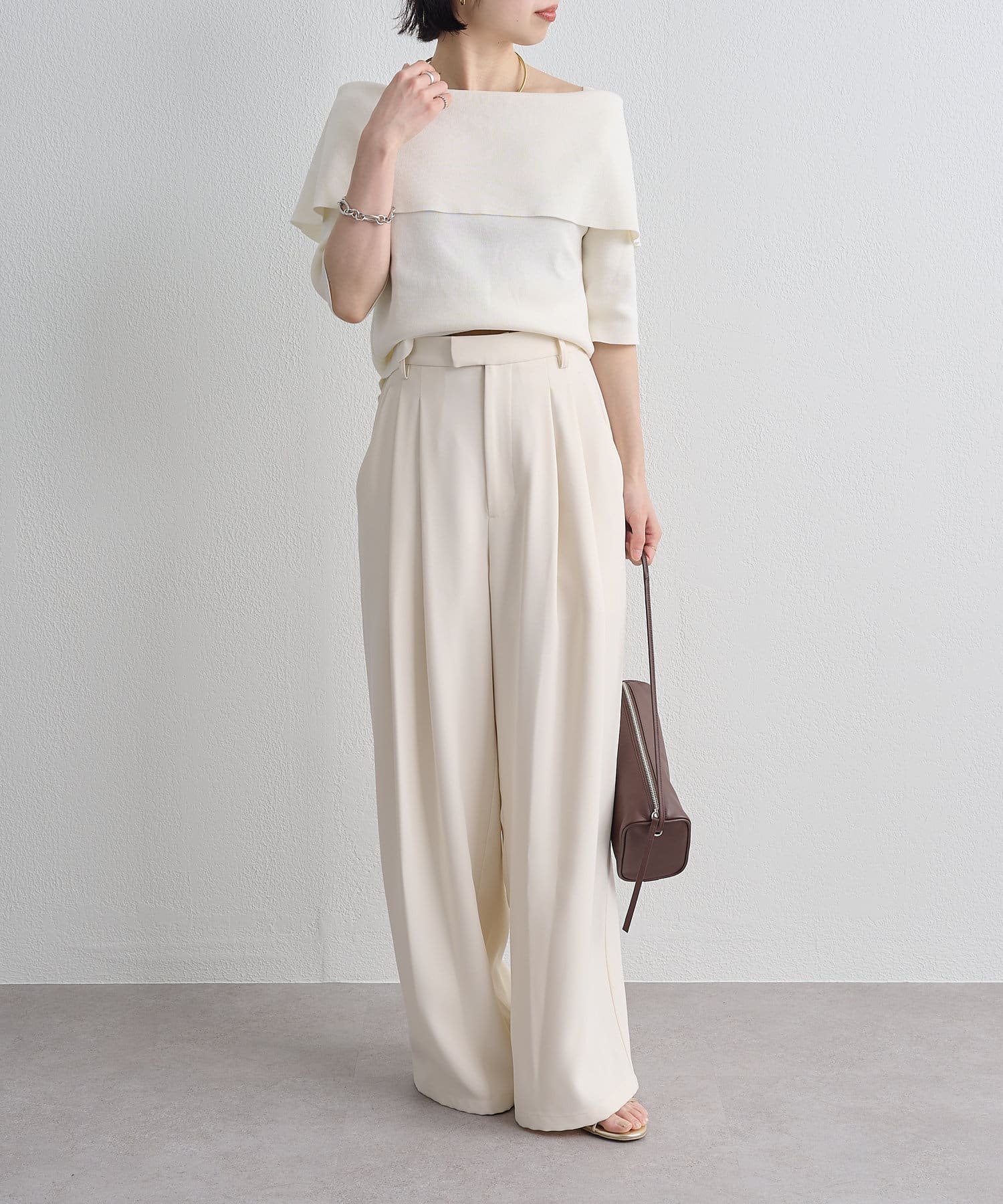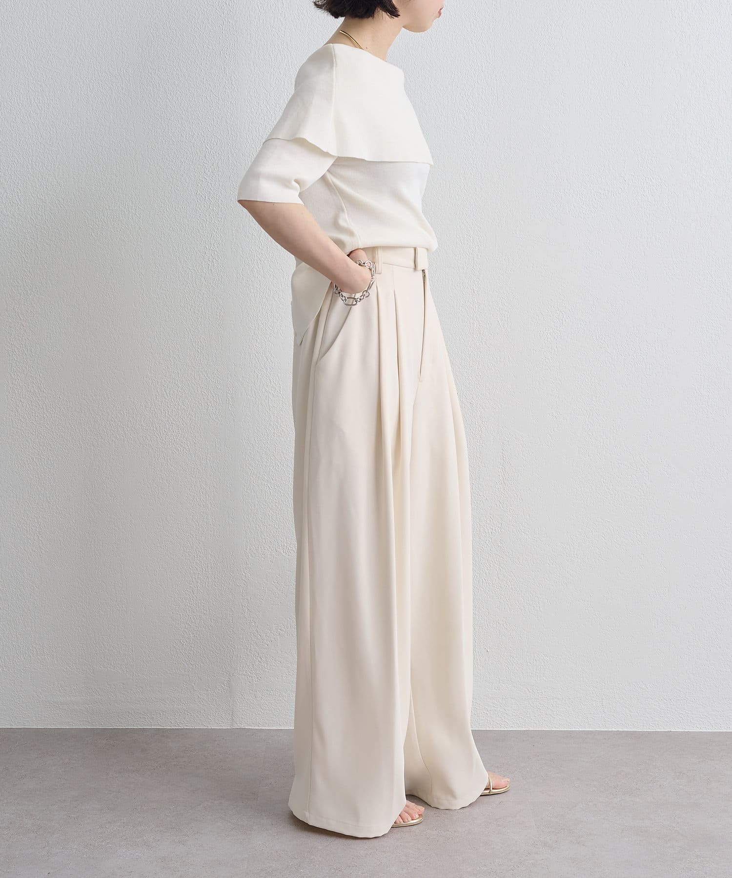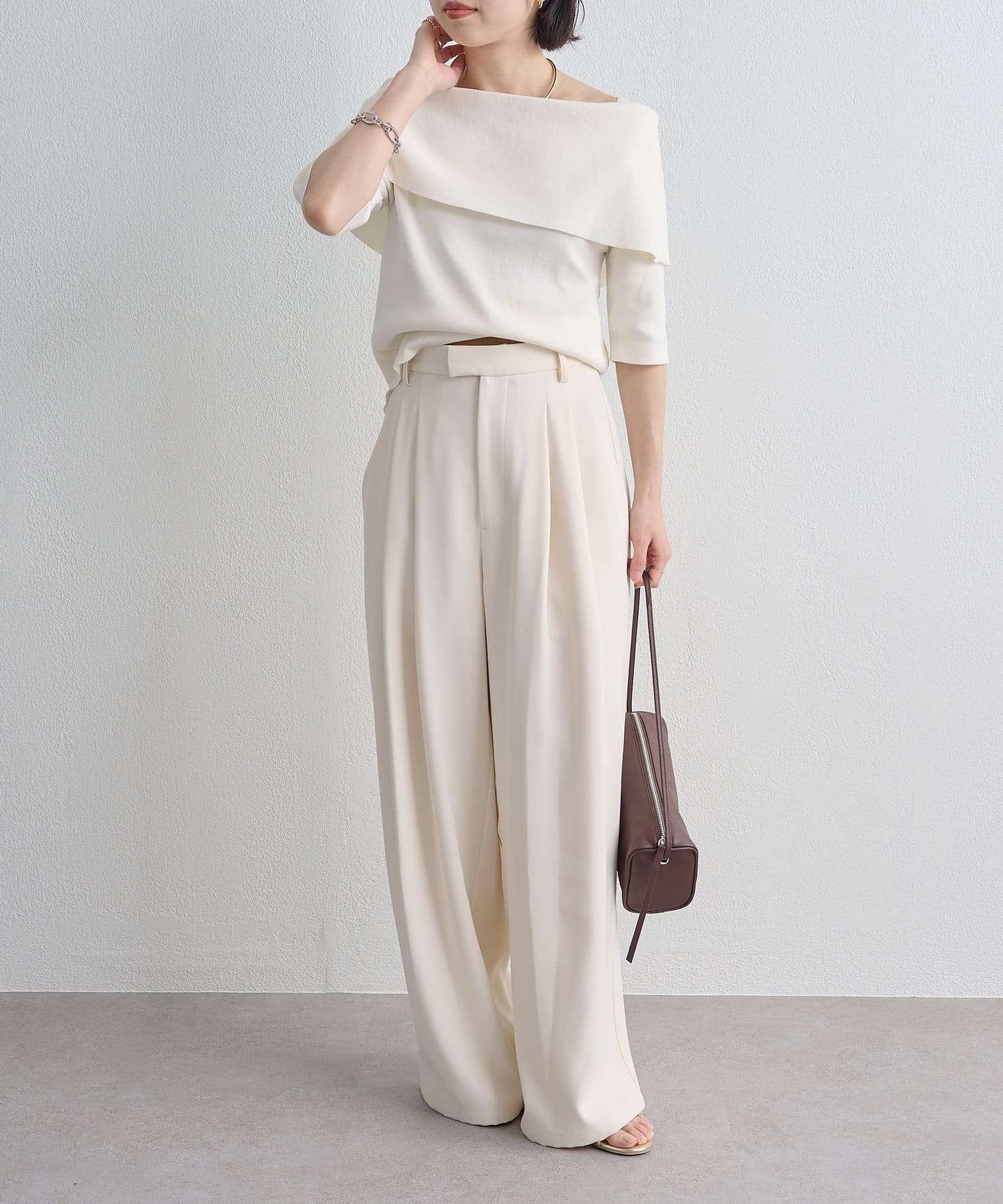 ・フロントのダブルタックが体型カバーと綺麗見えも叶えてくれる一枚。