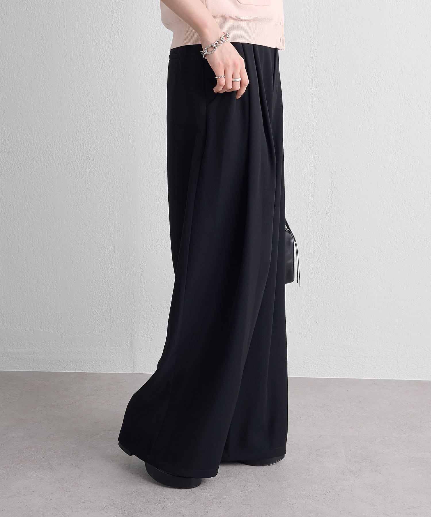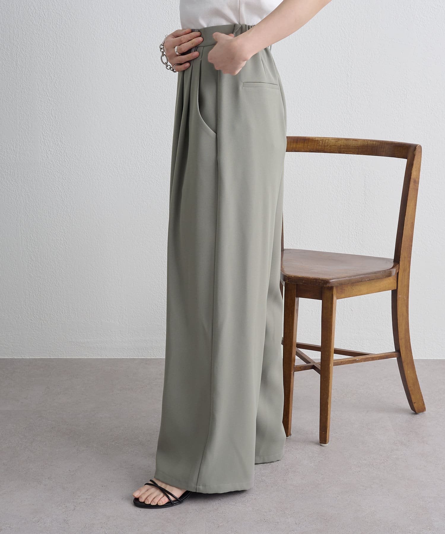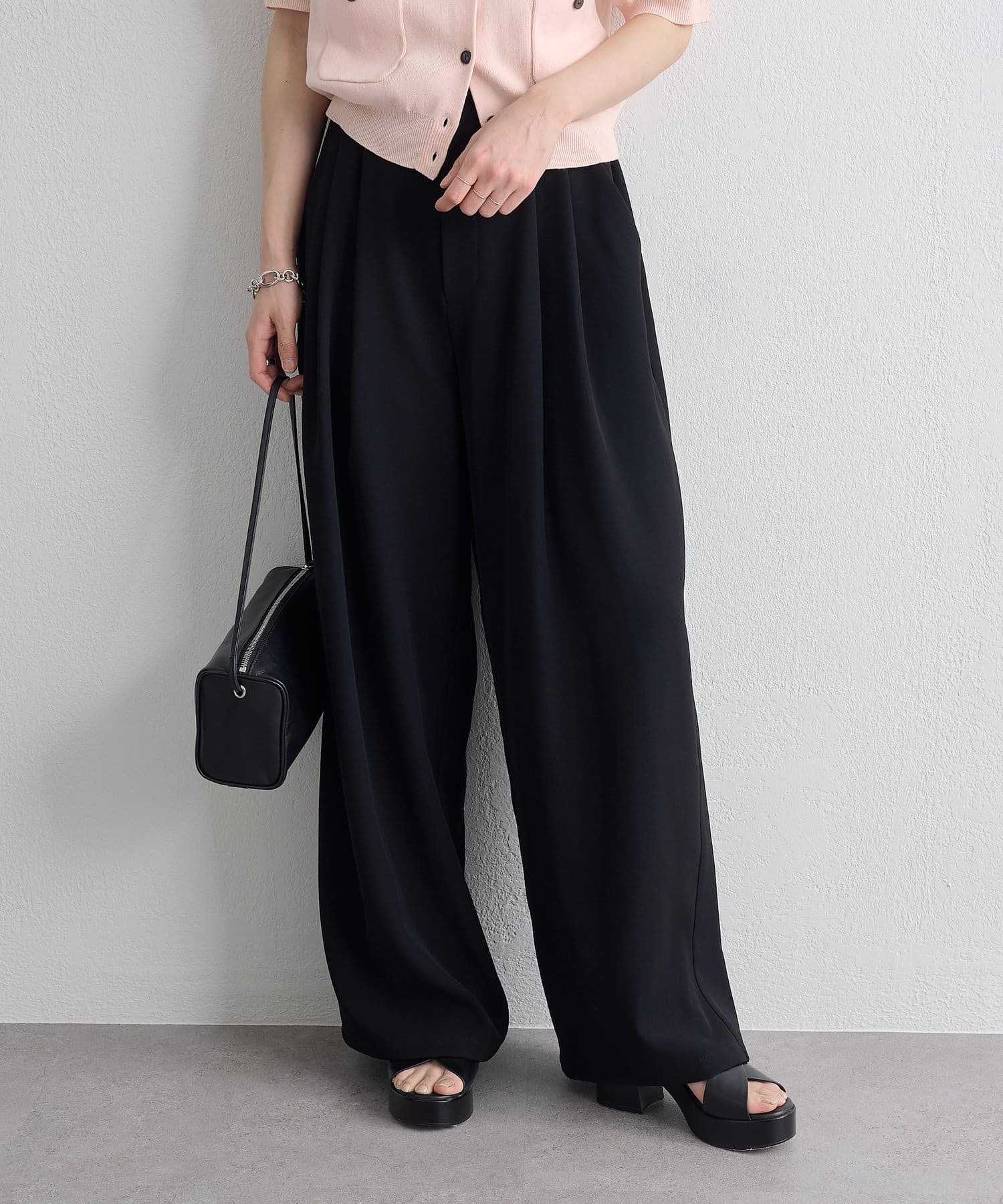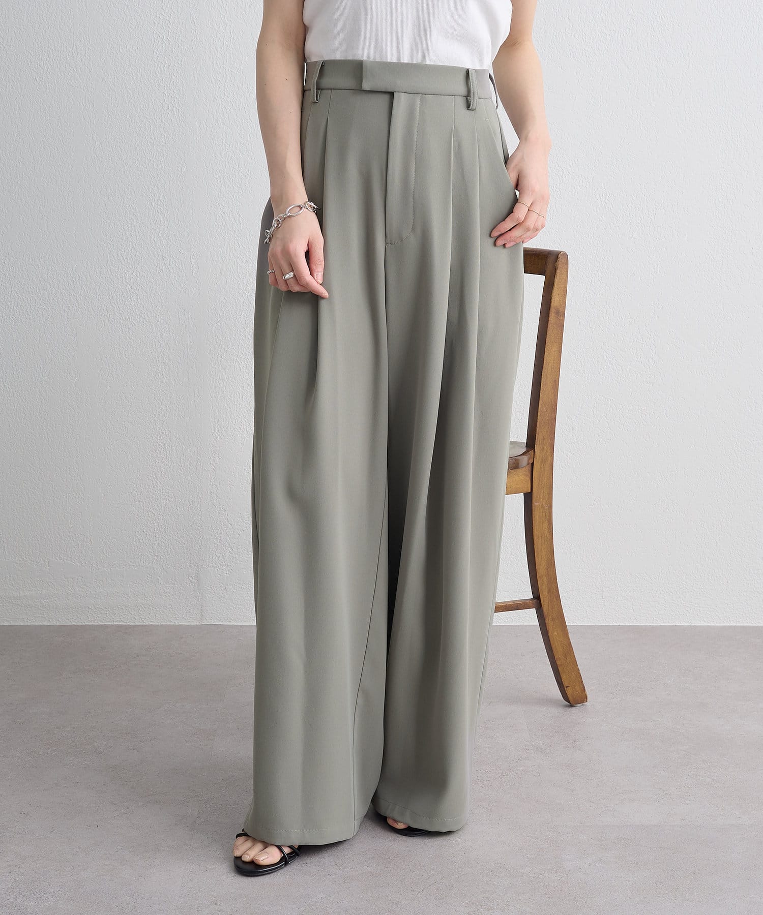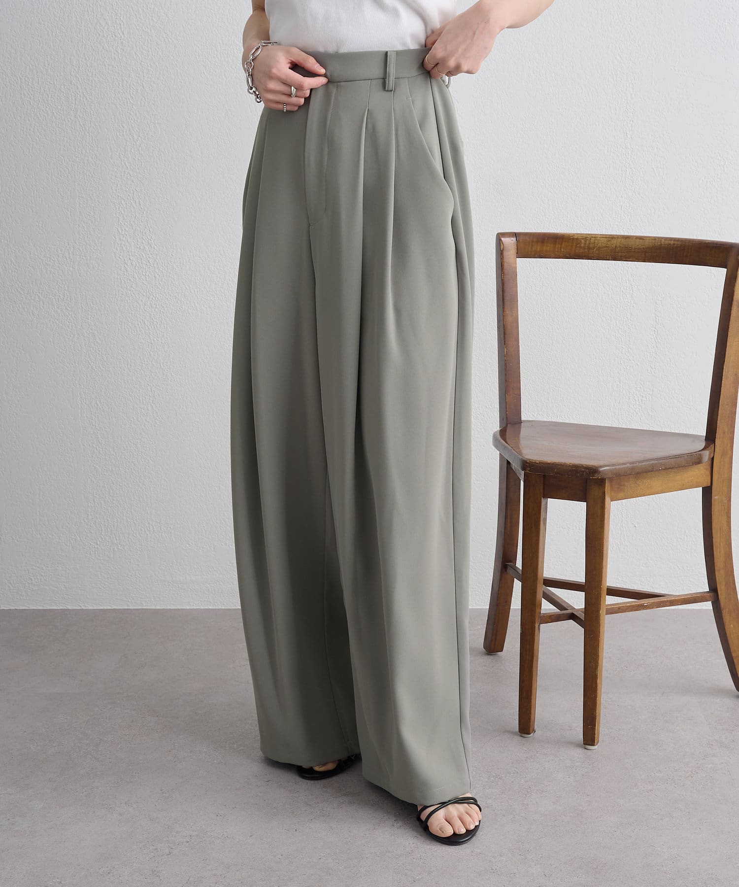 【期間限定20%OFF!タイムセール中!】【マイナス3キロ見え◎】タックワイドスラックス