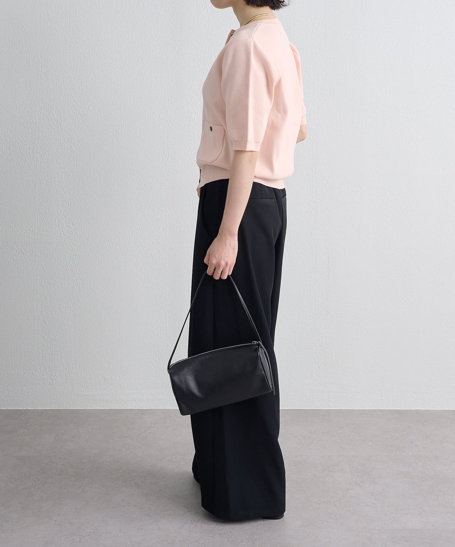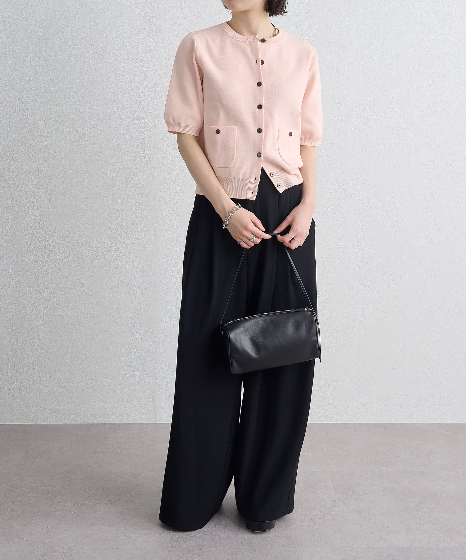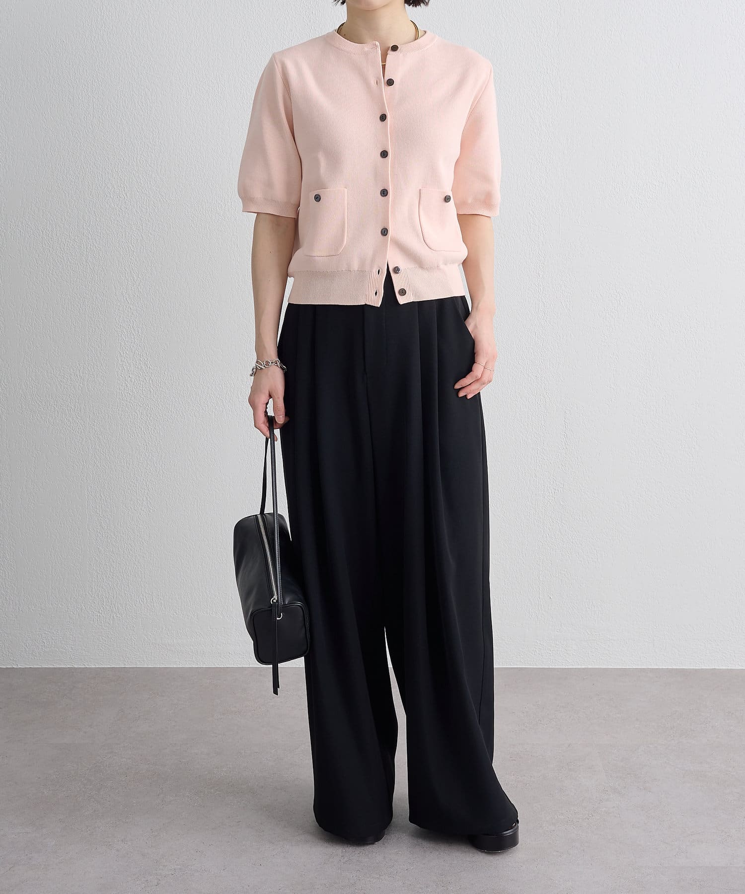 【ブラック】半袖強撚スウェットライクポケットカーディガン
