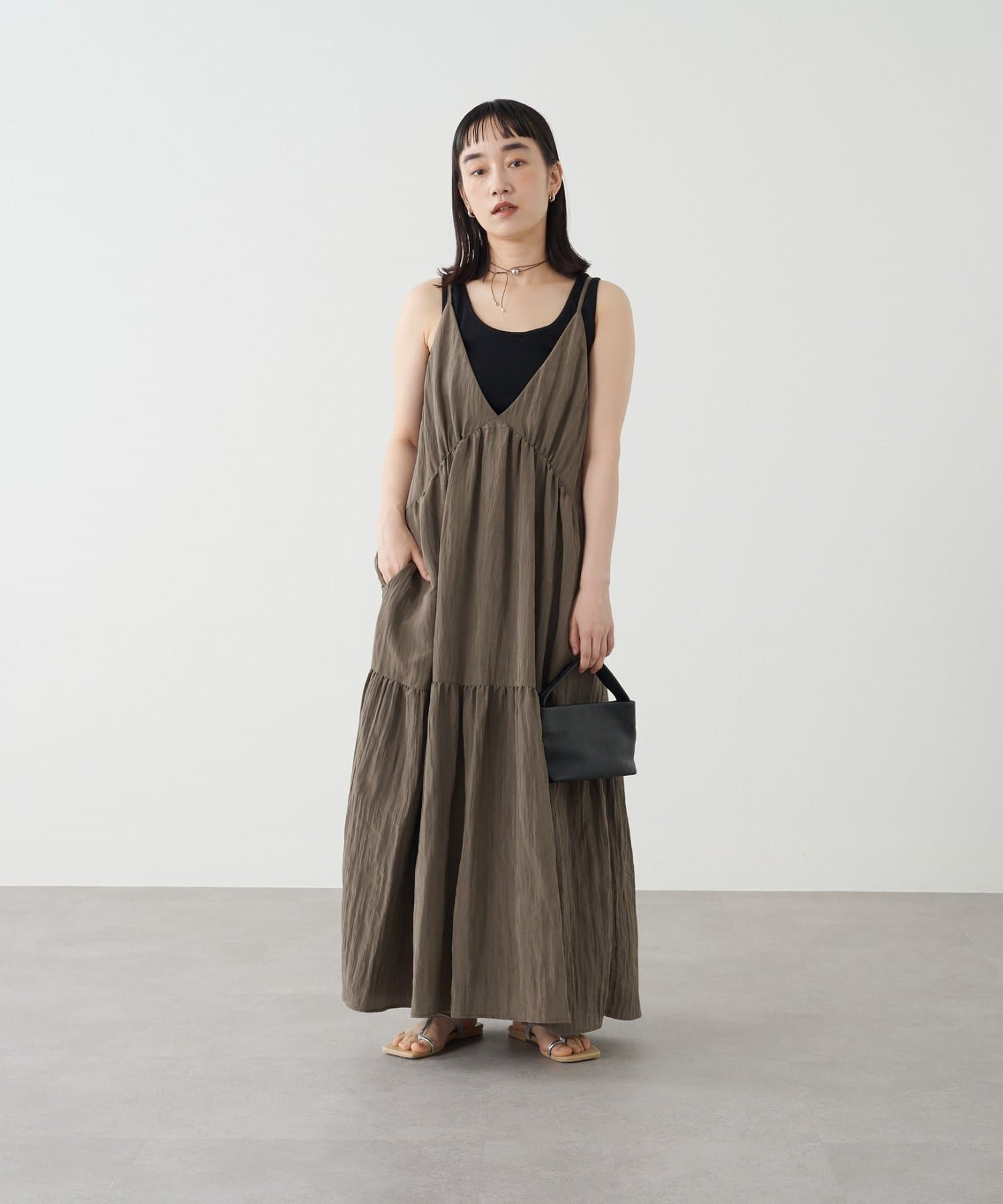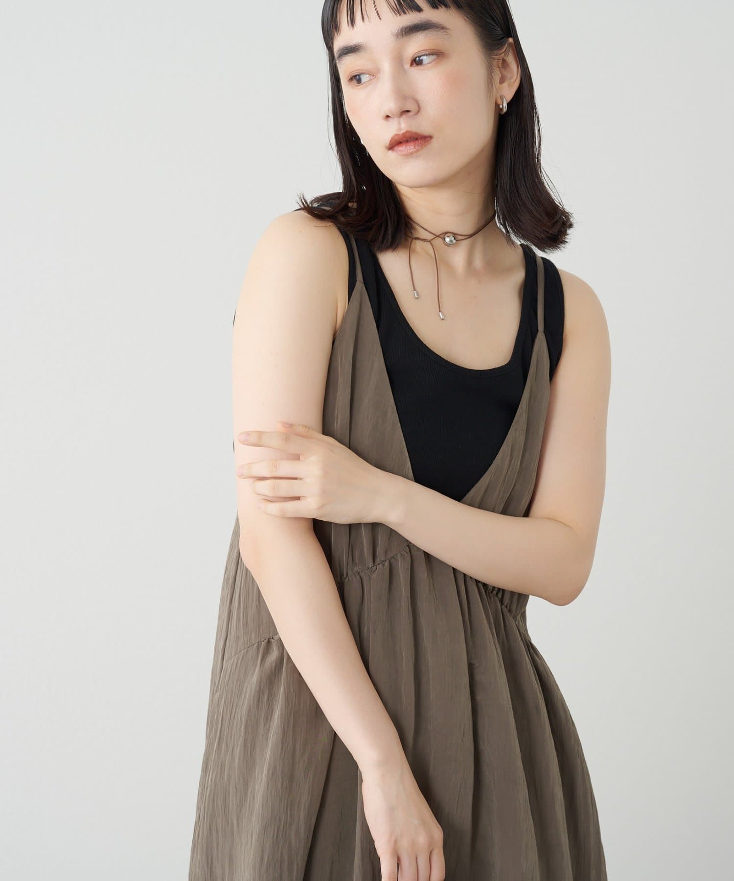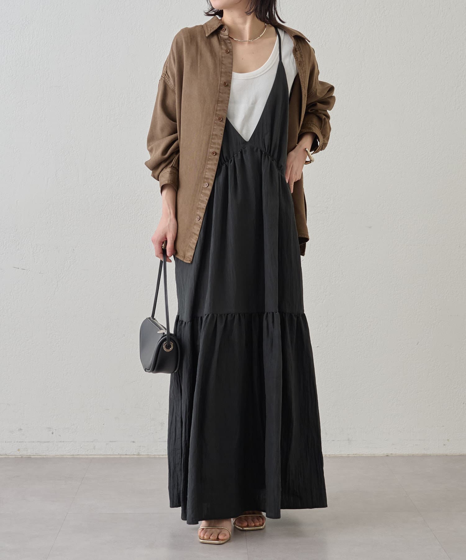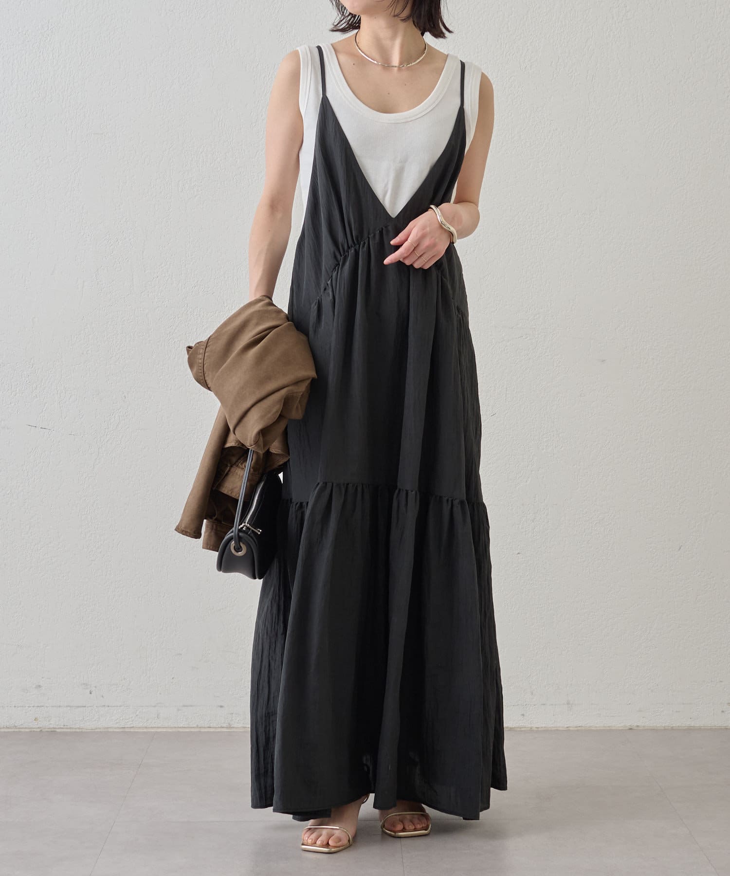 ・着回し力に優れ、さらっとした着心地のキャミワンピース。