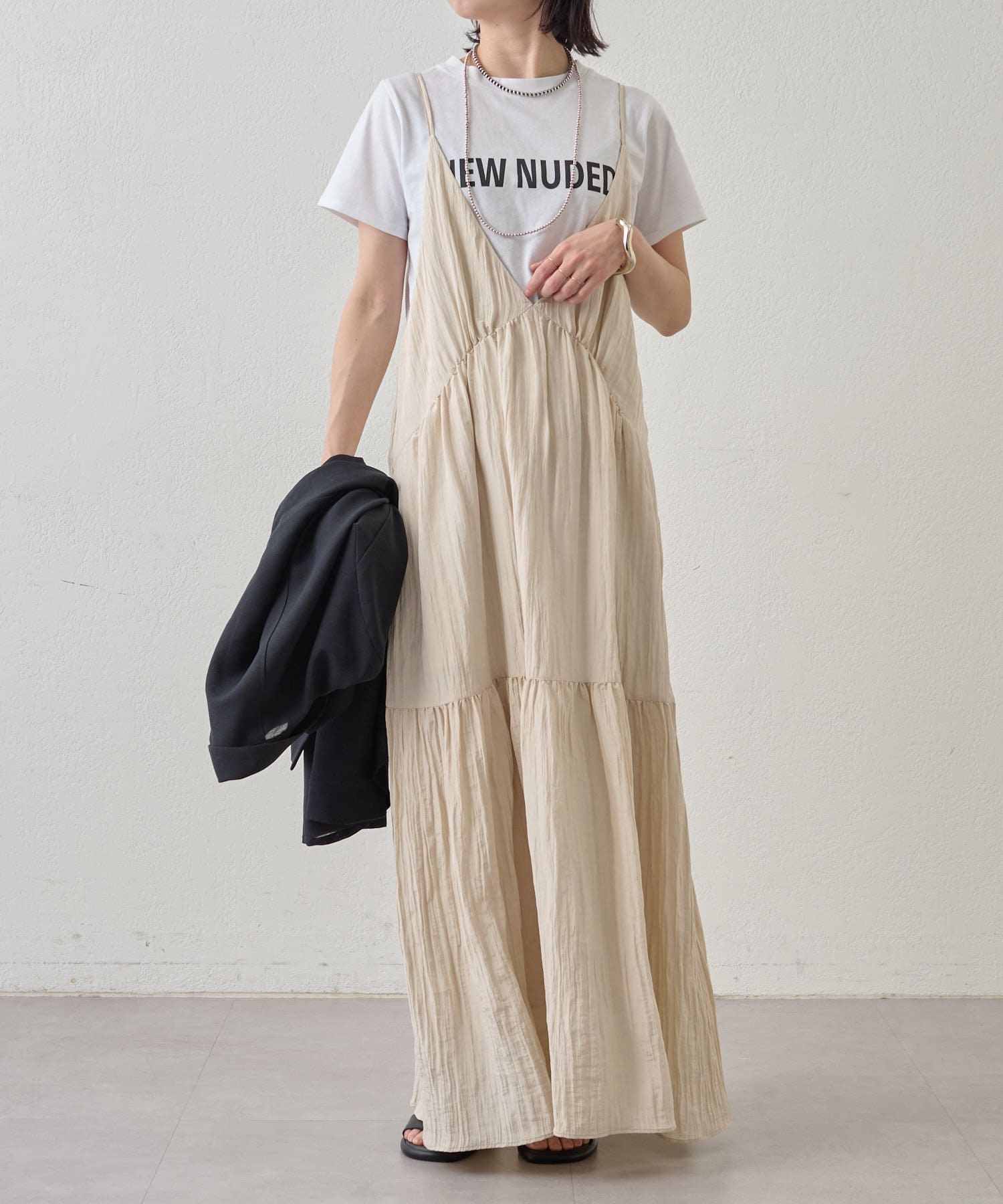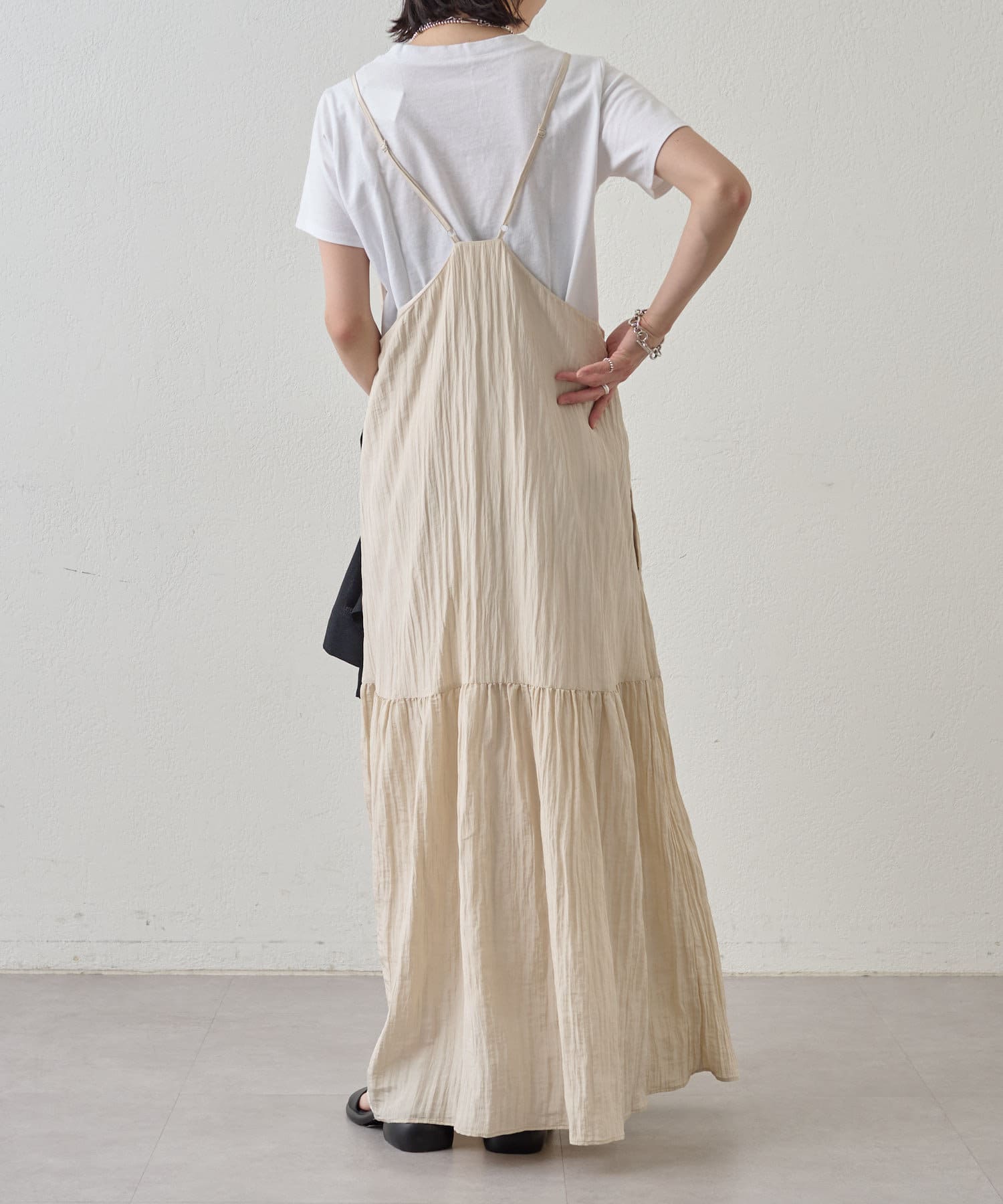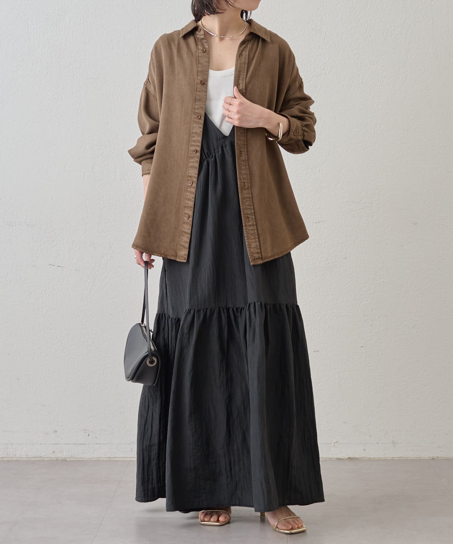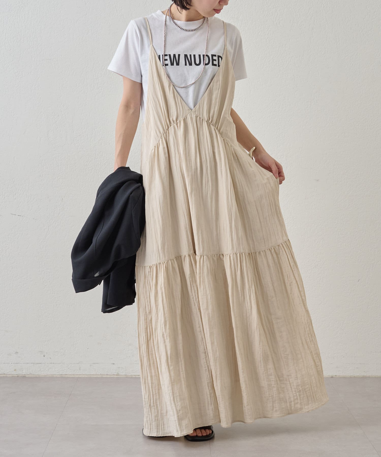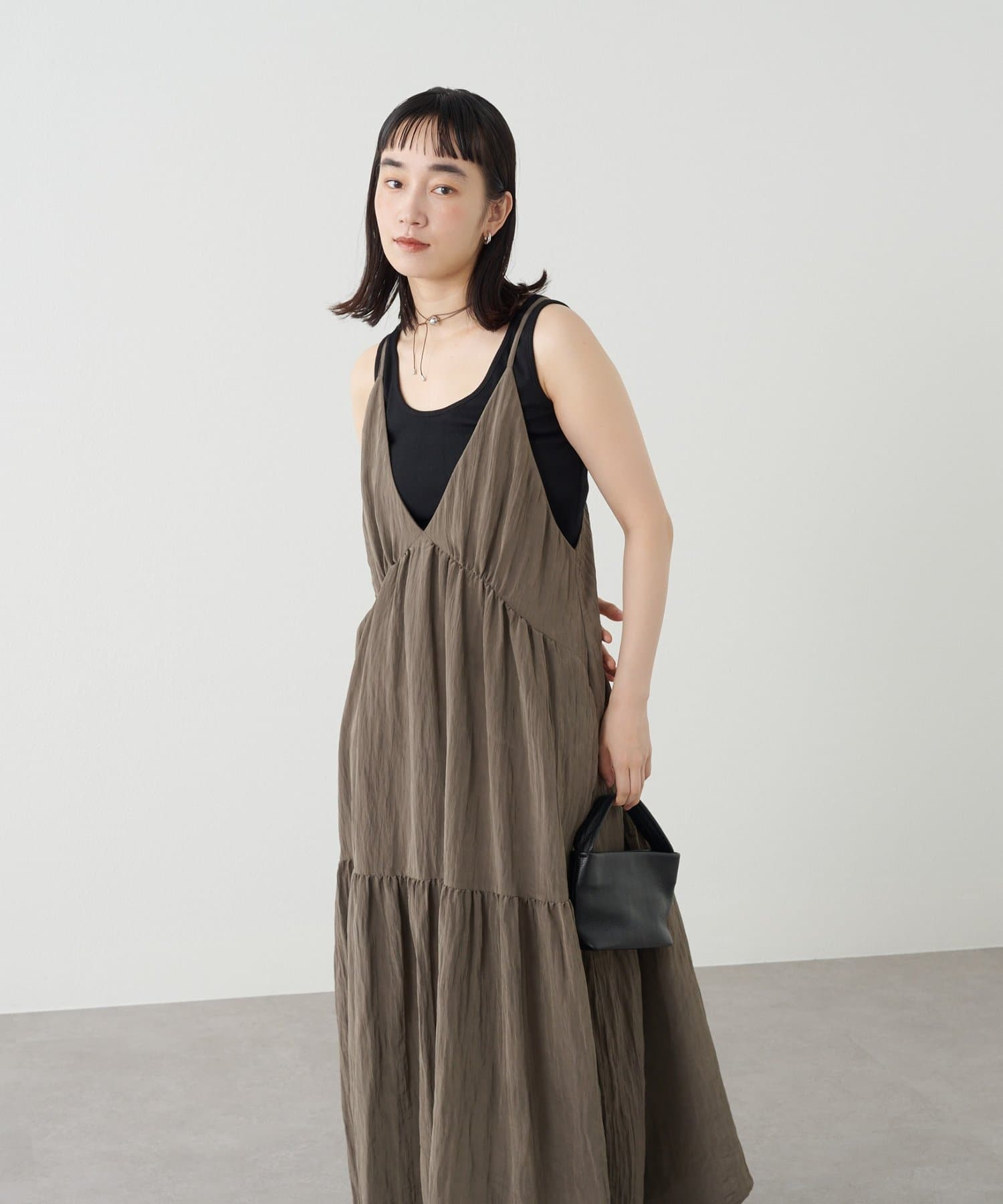 ・着回し力に優れ、さらっとした着心地のキャミワンピース。