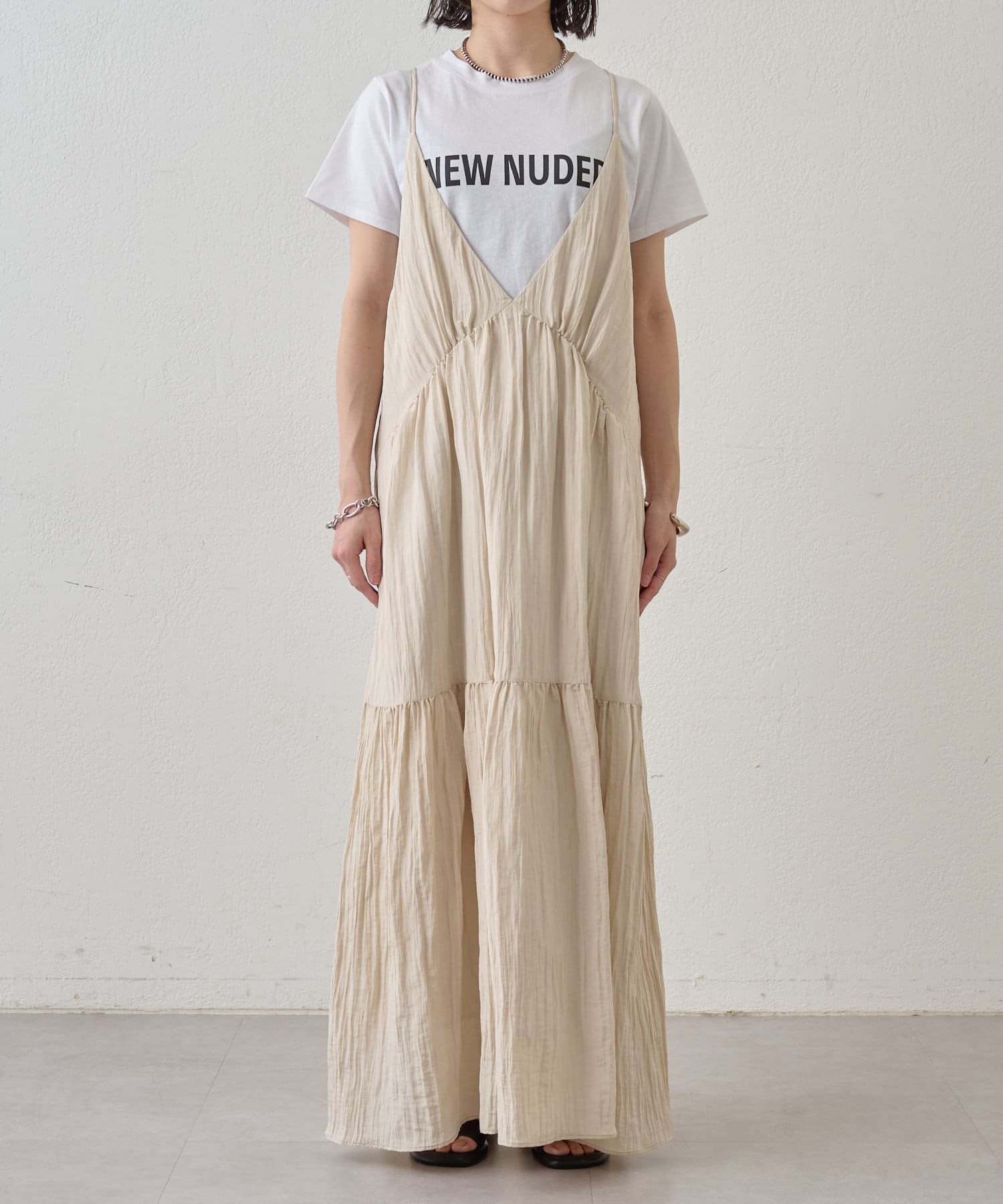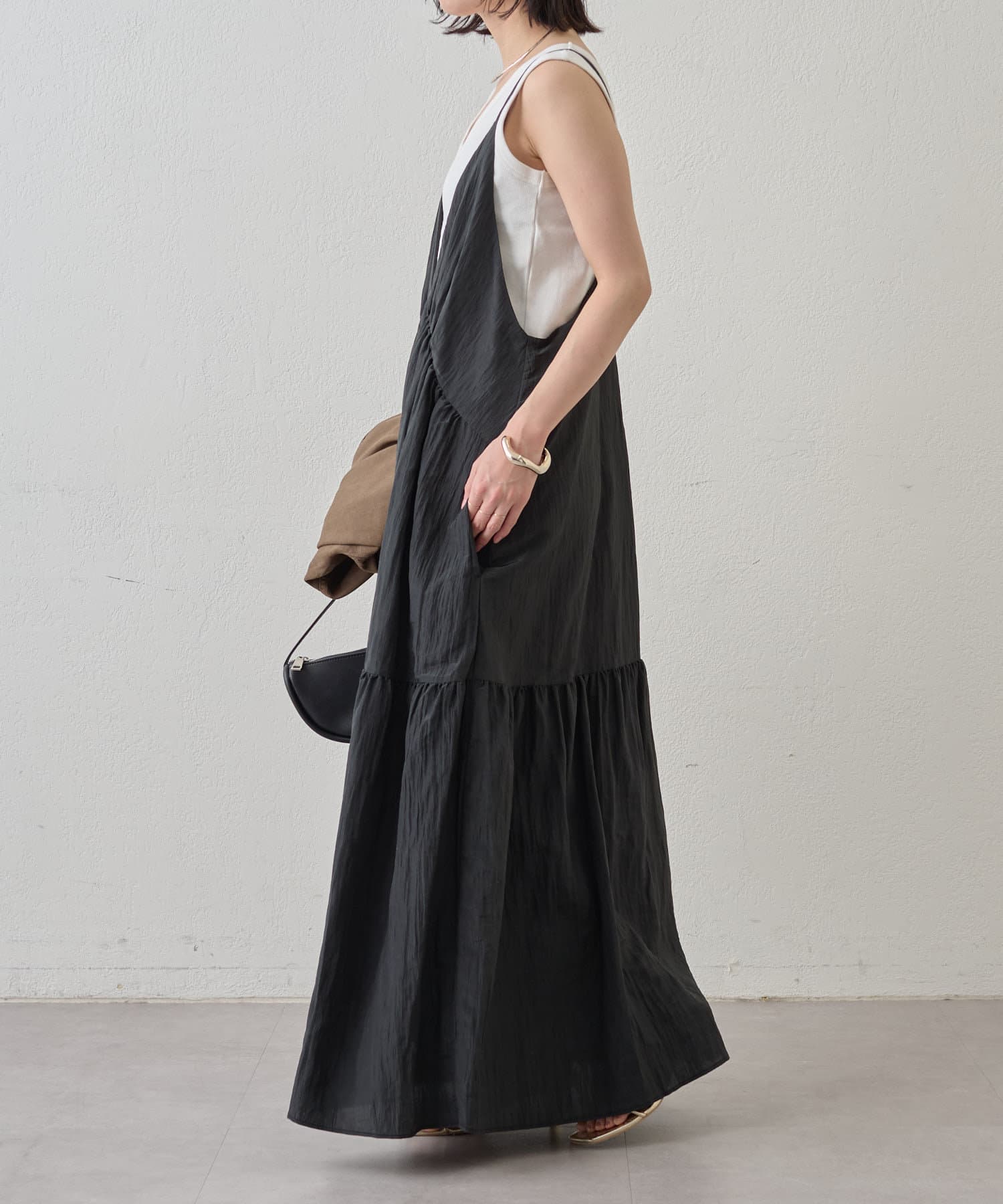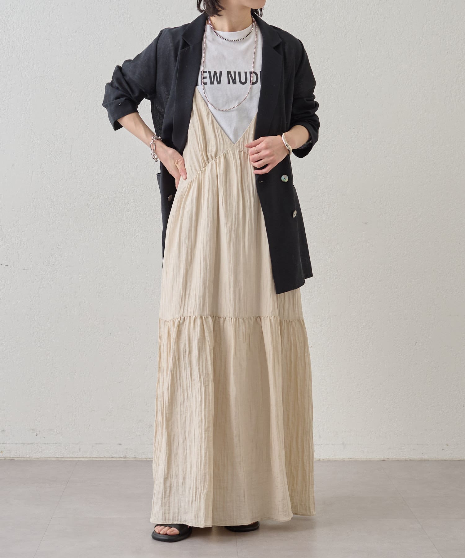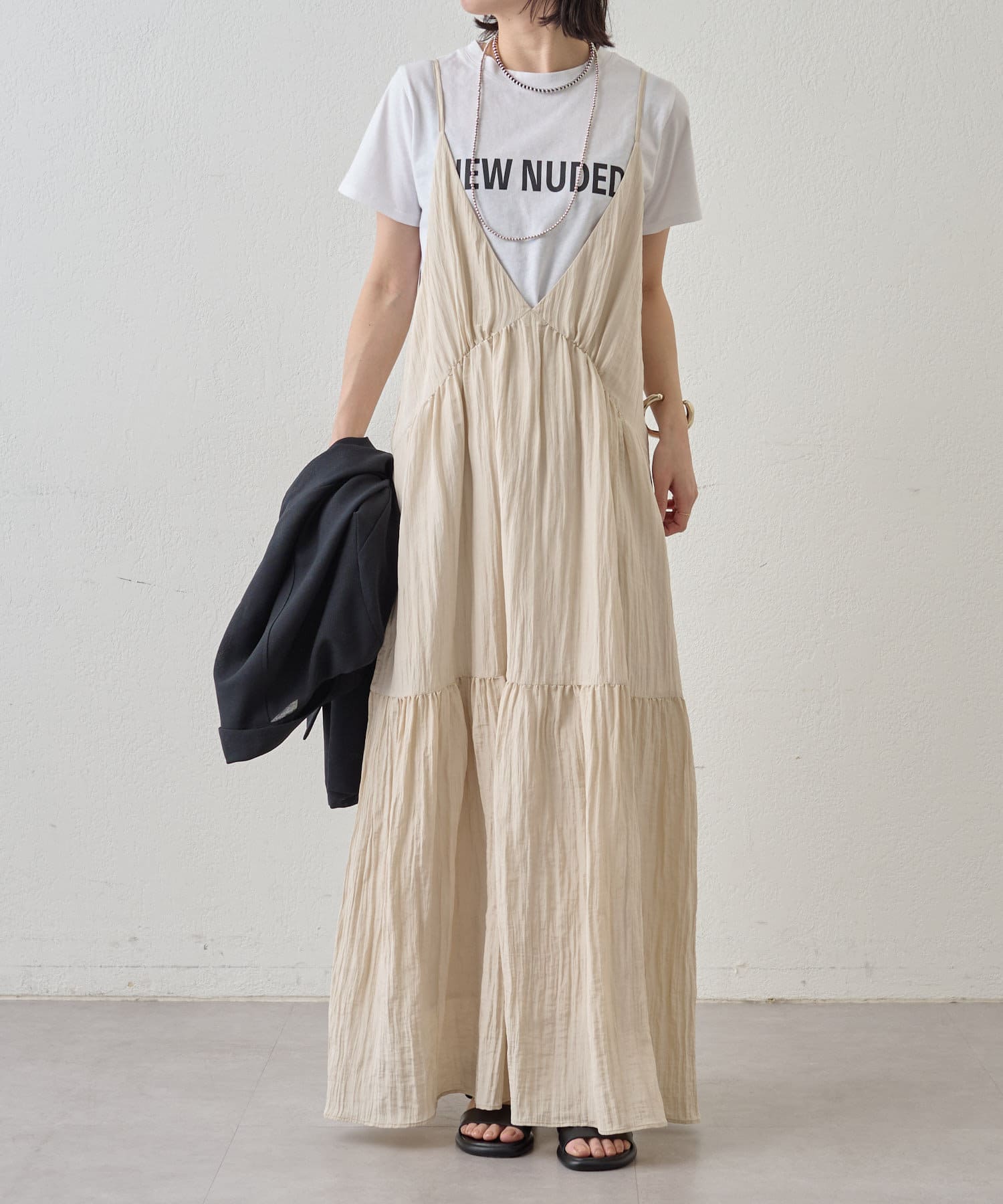 ・着回し力に優れ、さらっとした着心地のキャミワンピース。