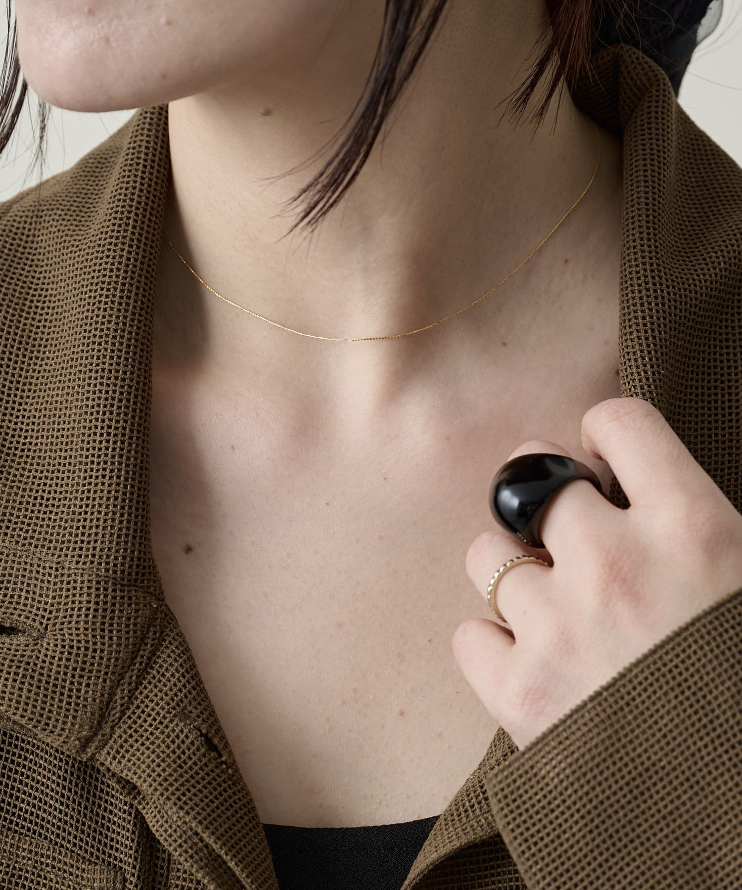 ・チョーカーや長めのネックレスとの重ねつけもおすすめです。